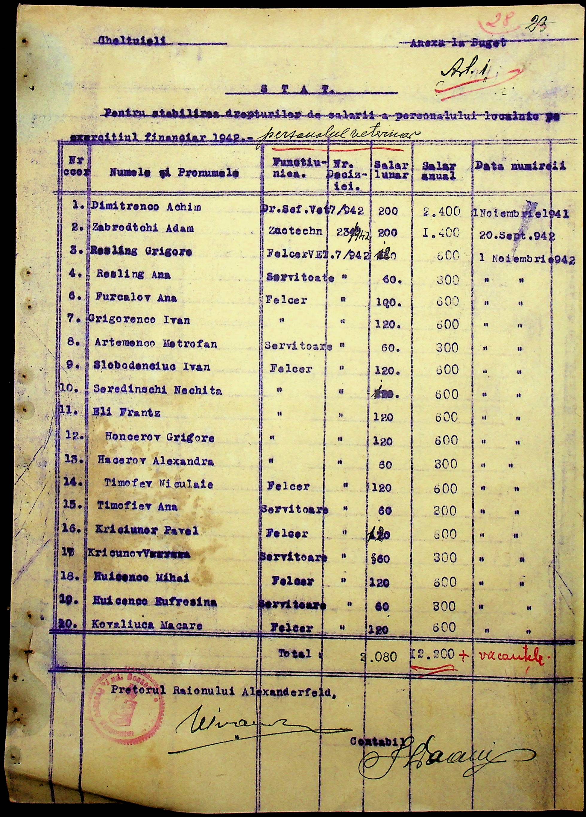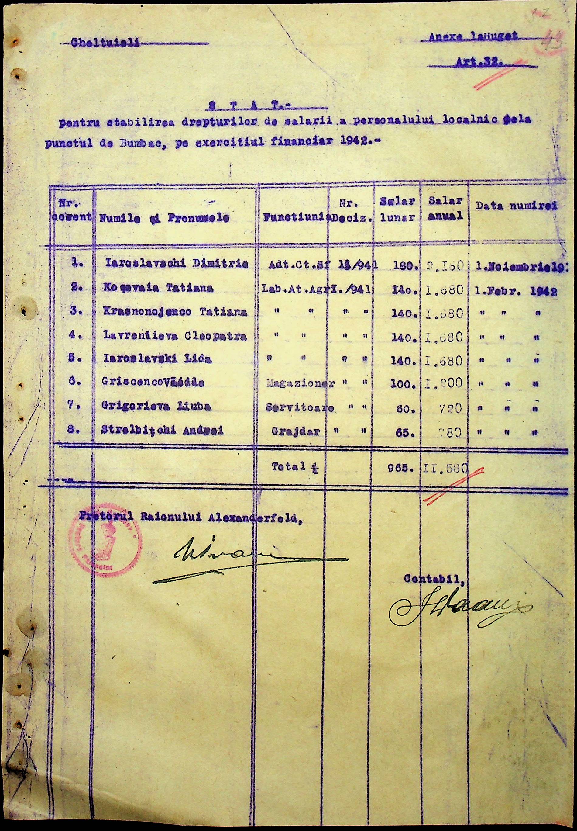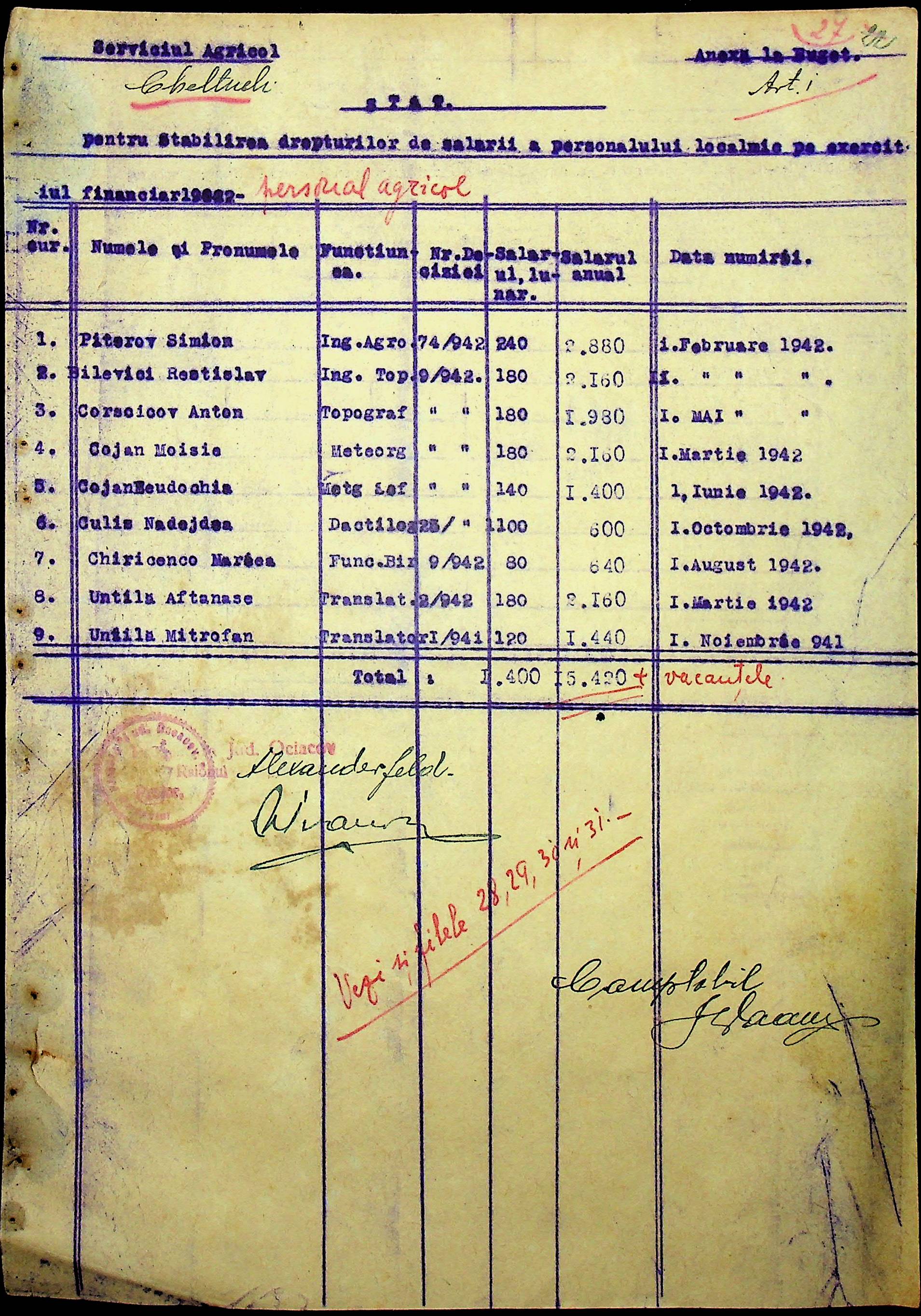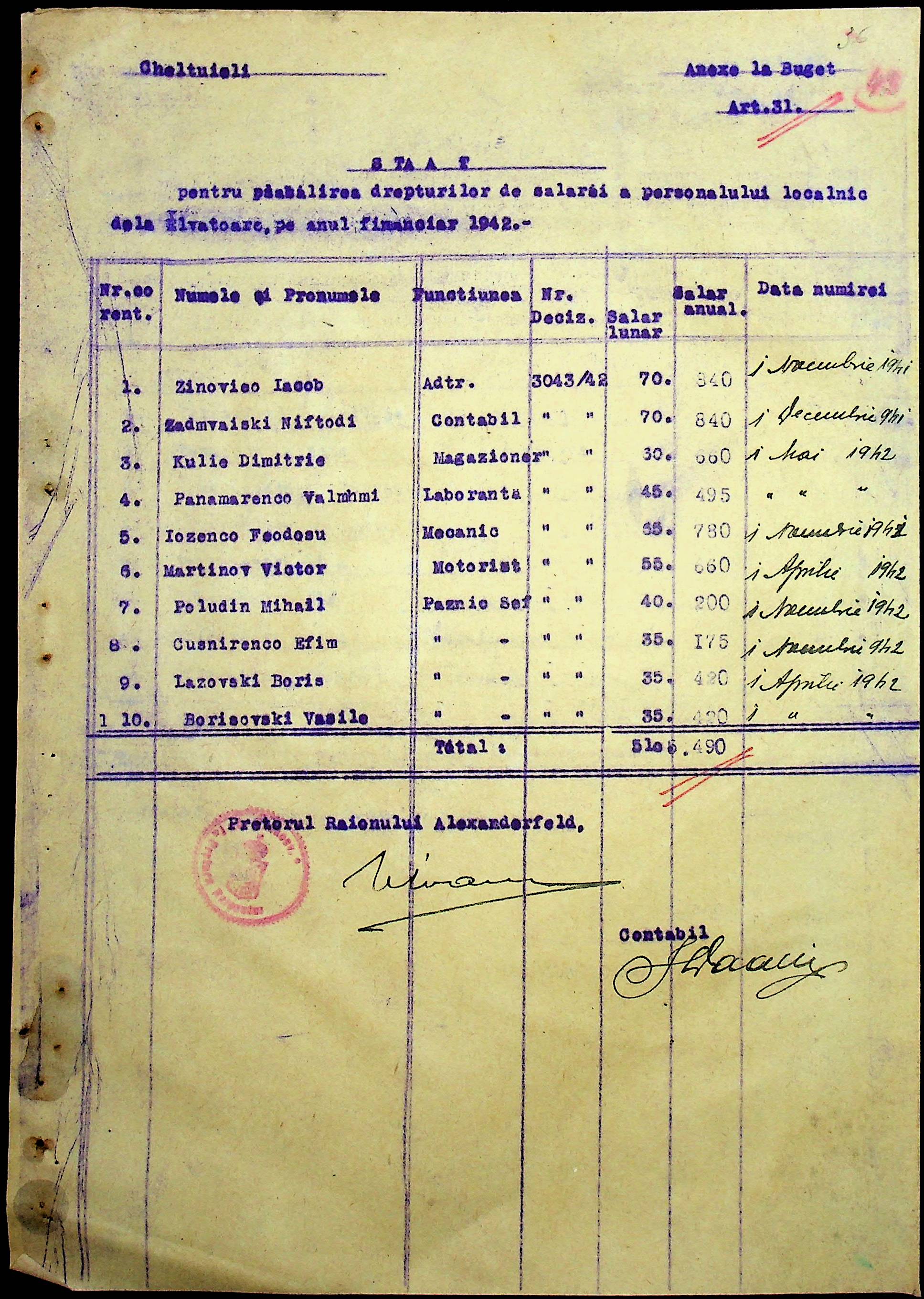 • • • • Справа № 16 “Фінансовий бюджет, штатний розпис установ району на 1942-1943 роки”