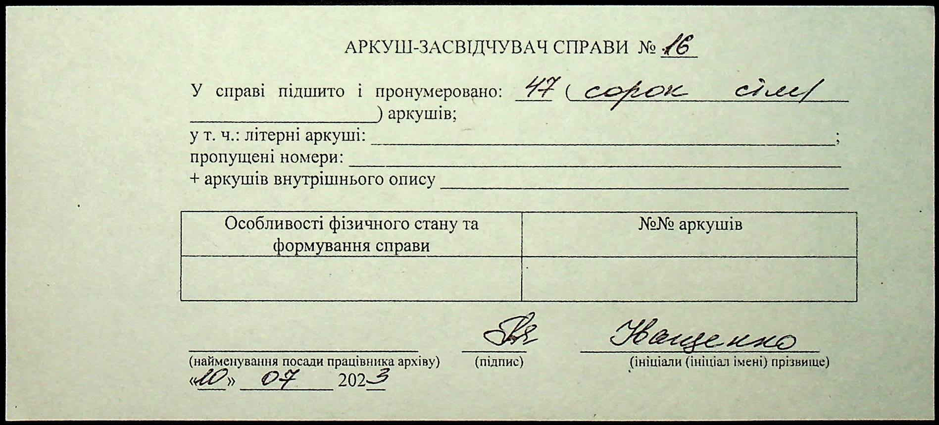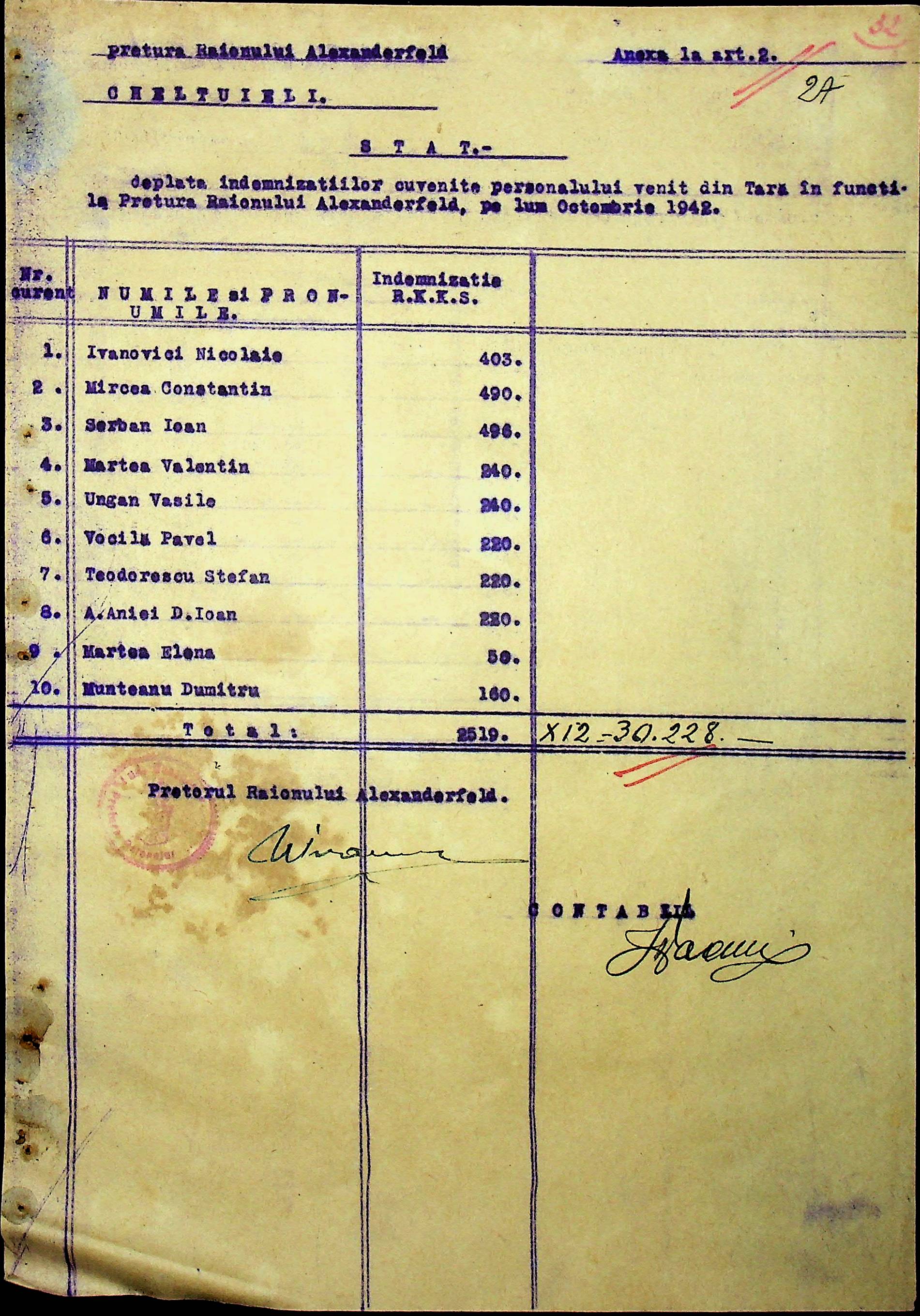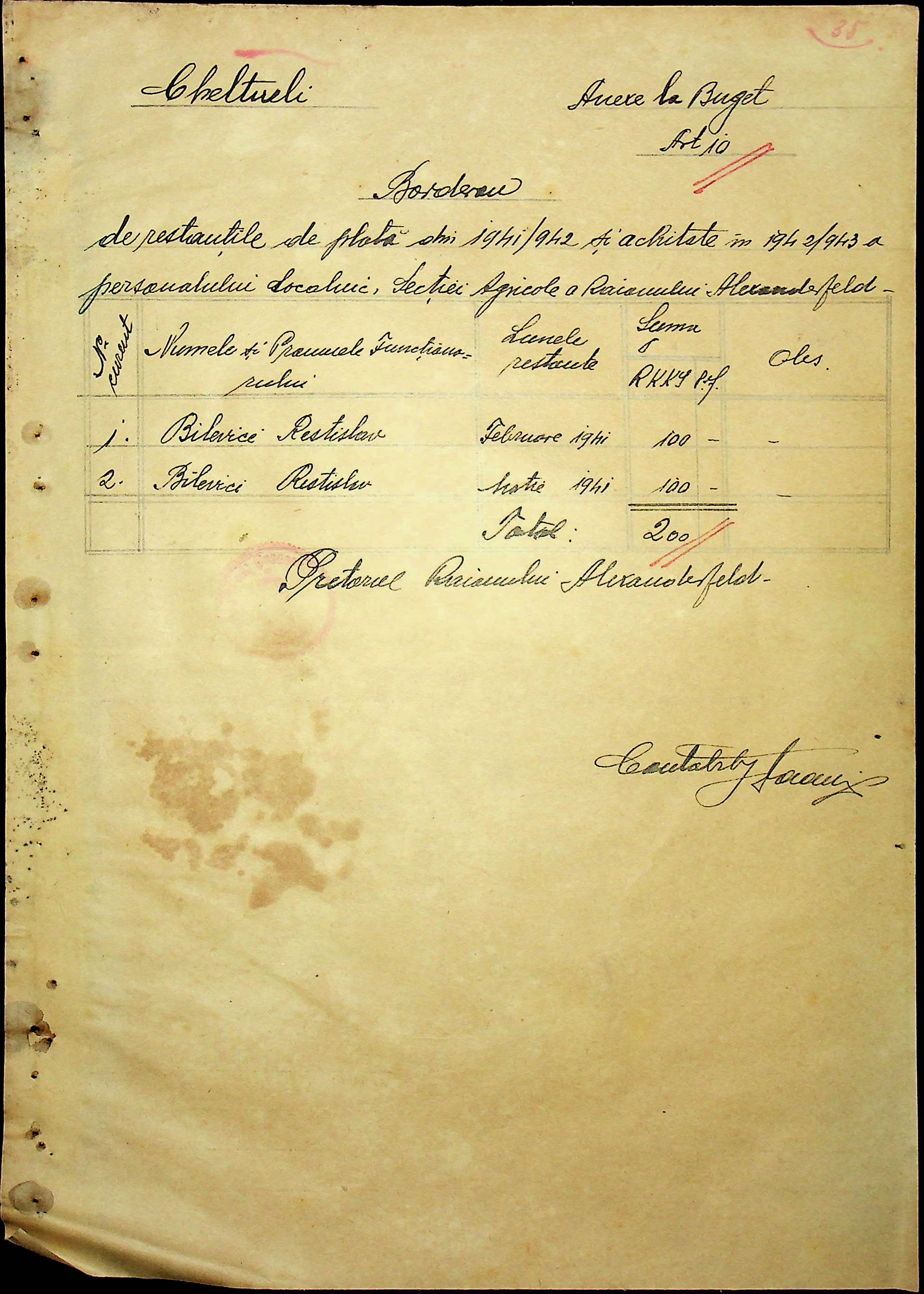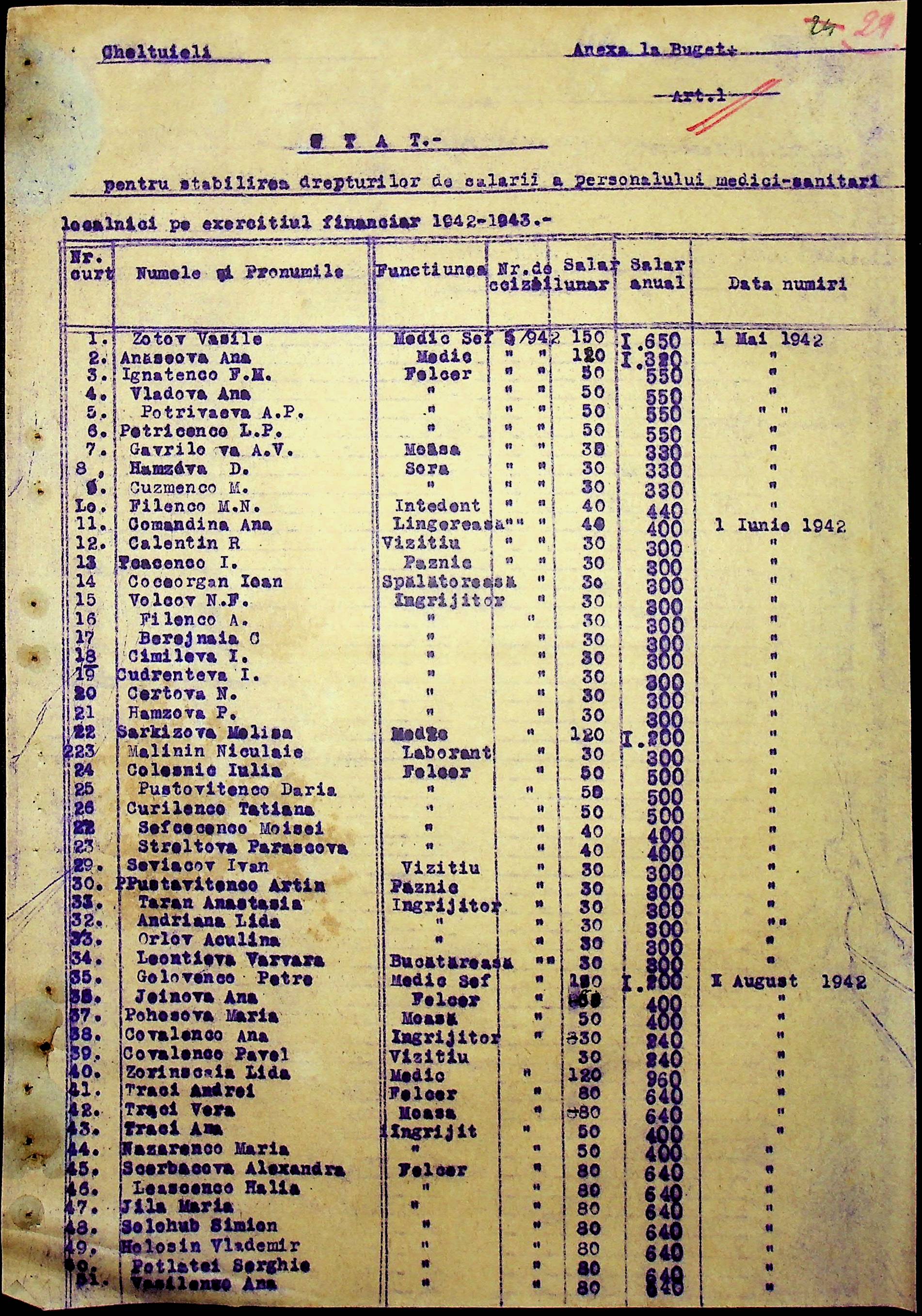 • • • • Справа № 16 “Фінансовий бюджет, штатний розпис установ району на 1942-1943 роки”