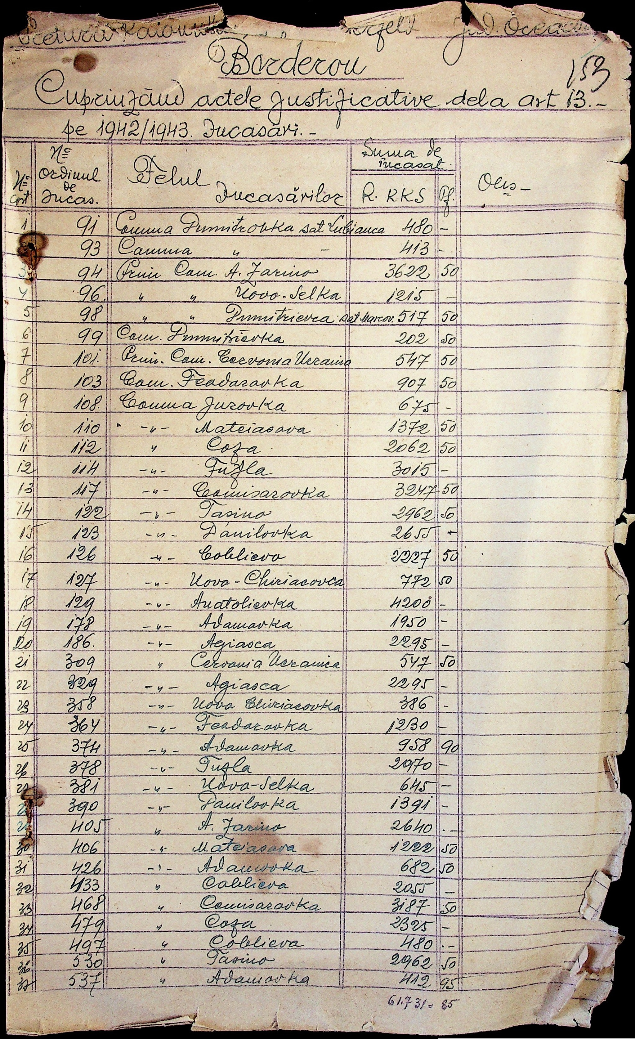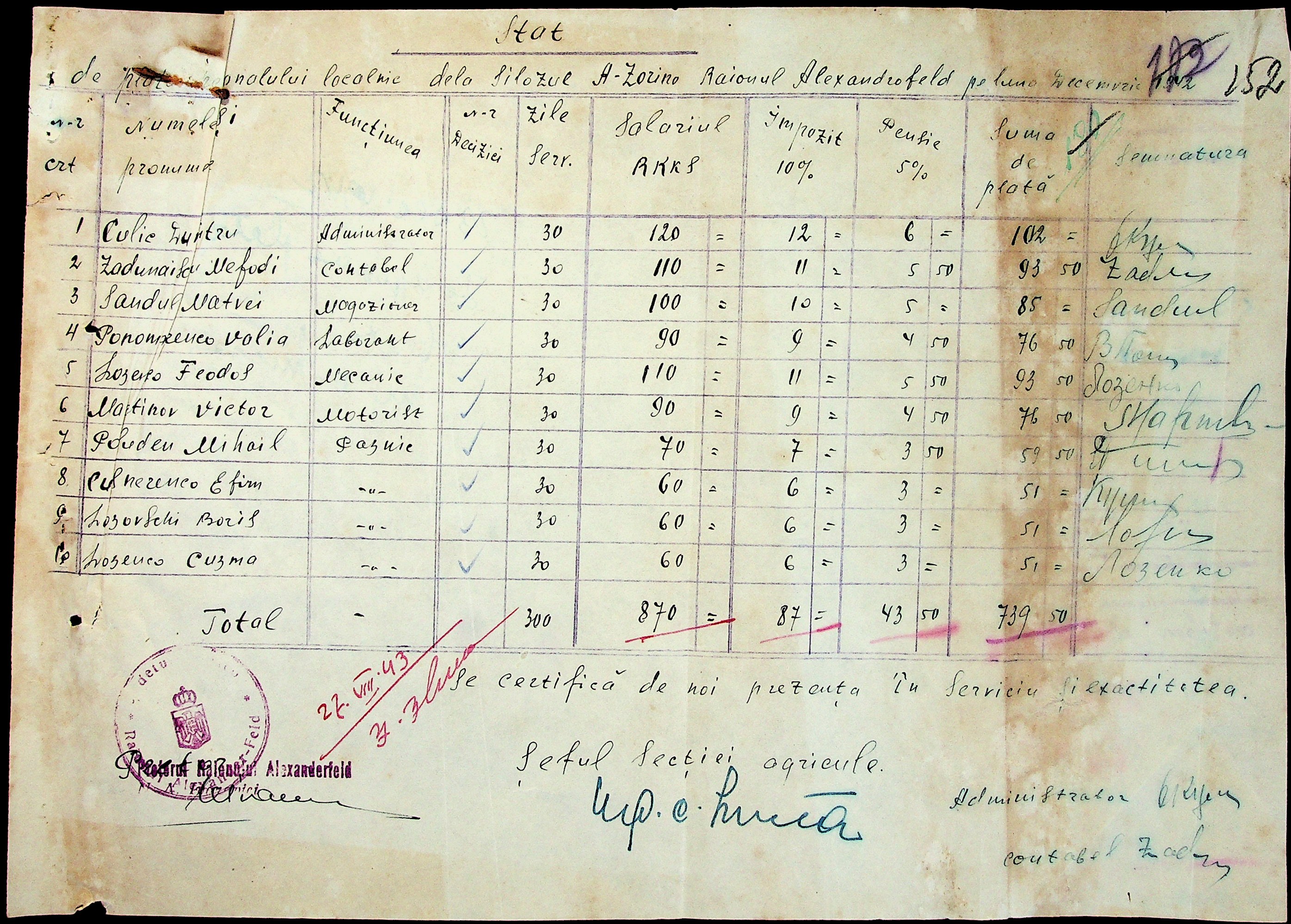 • • • • Справа № 24 “Відомості на видачу заробітної робітникам та службовцям елеваторів району за 1942-1943 роки”