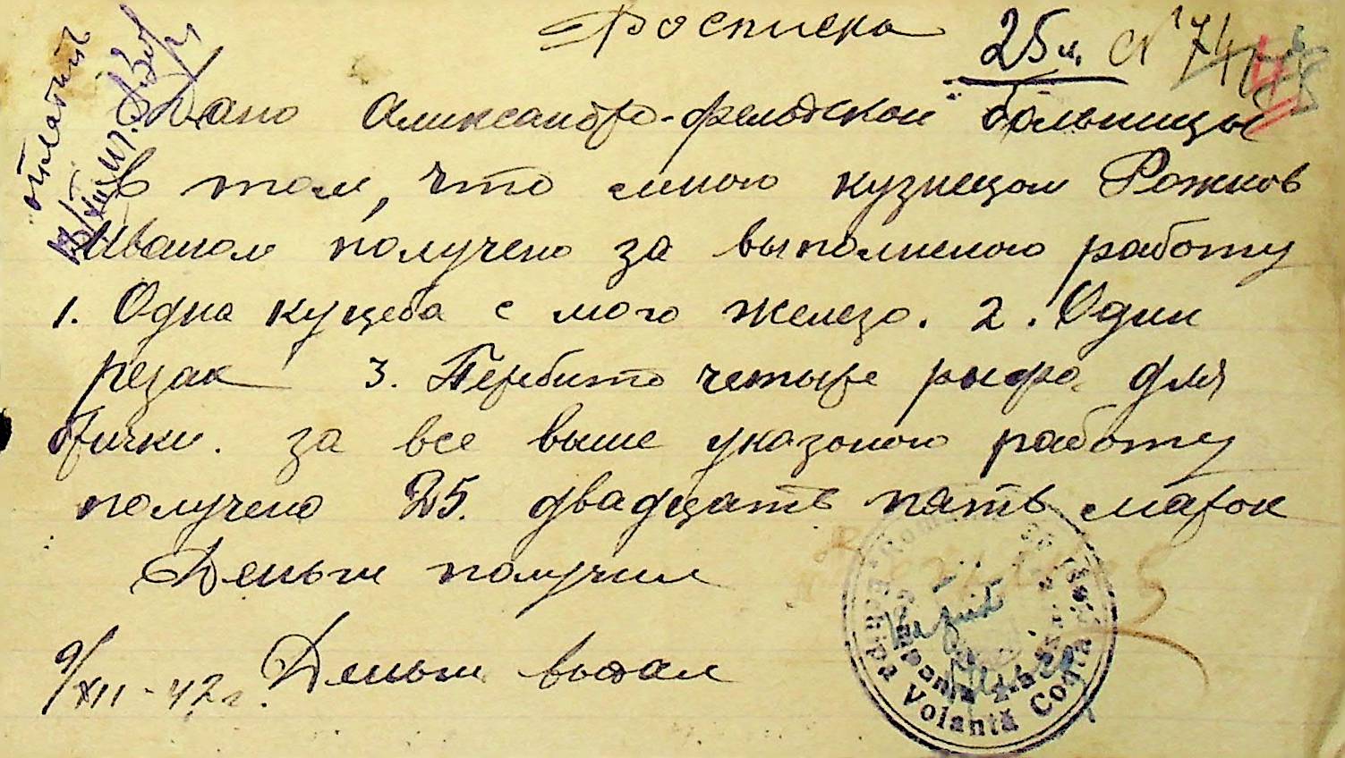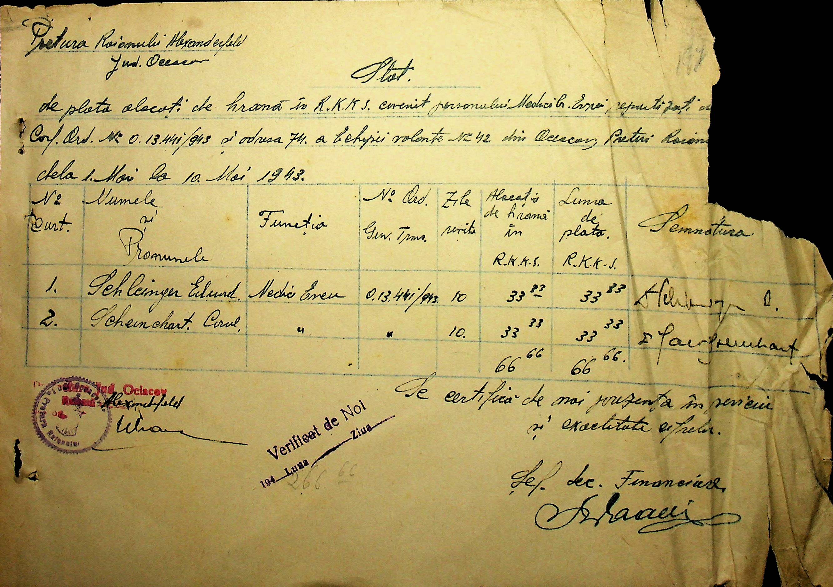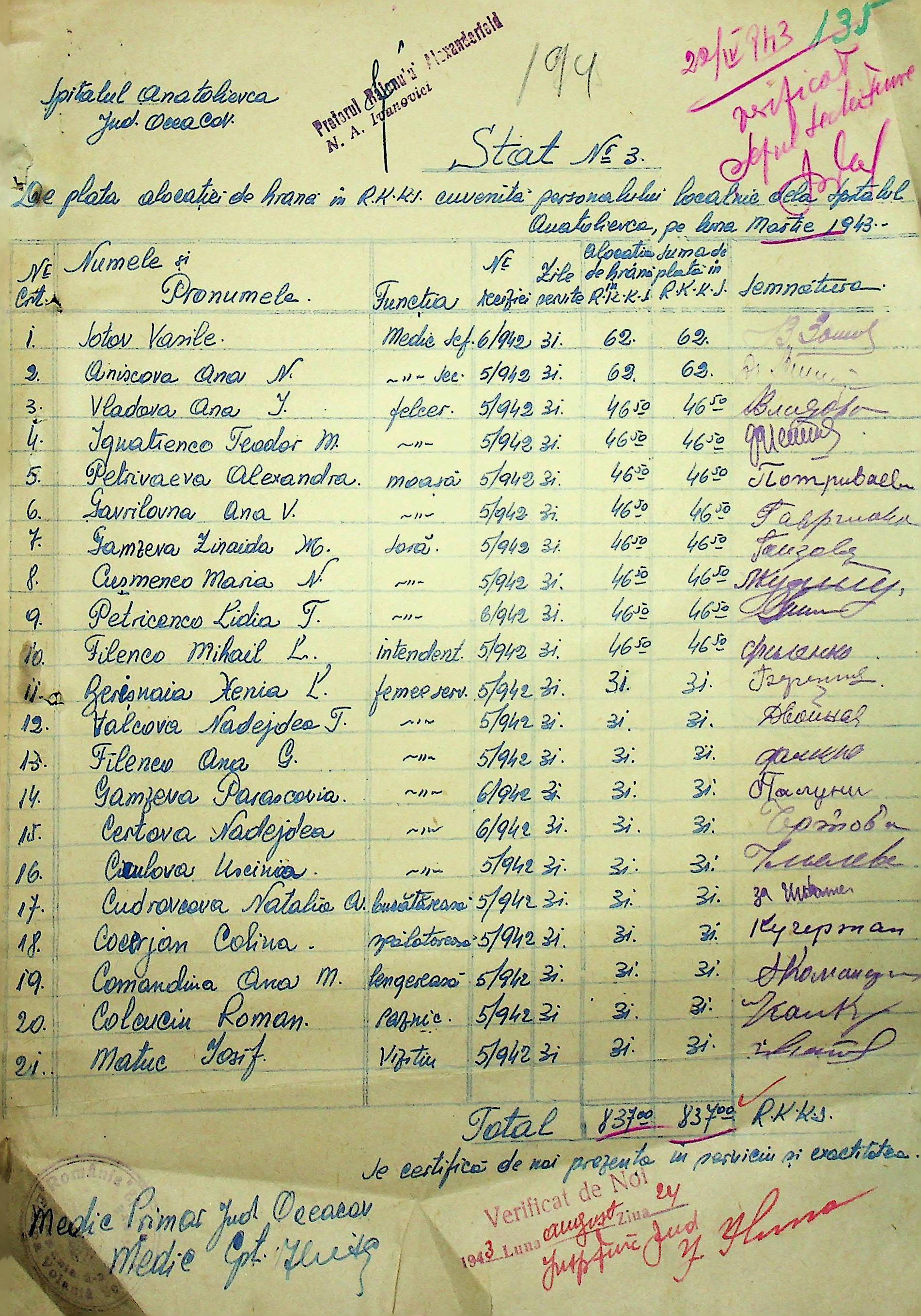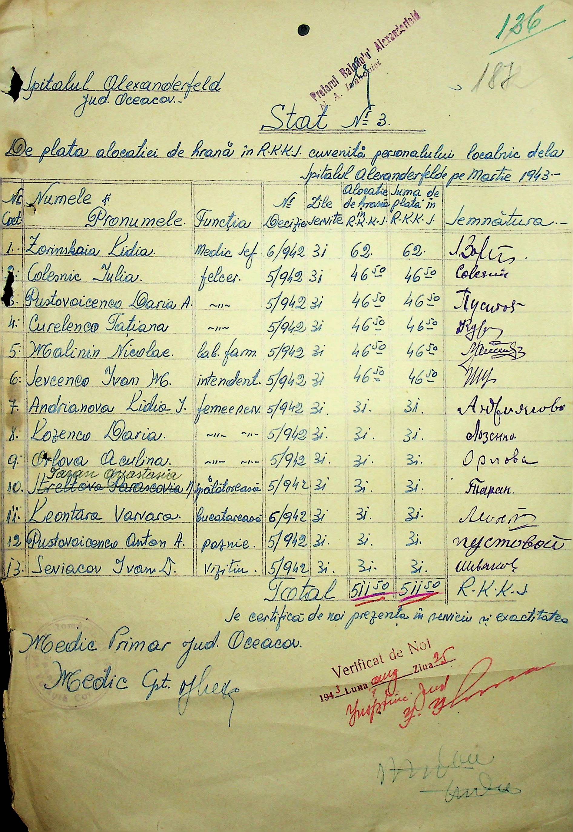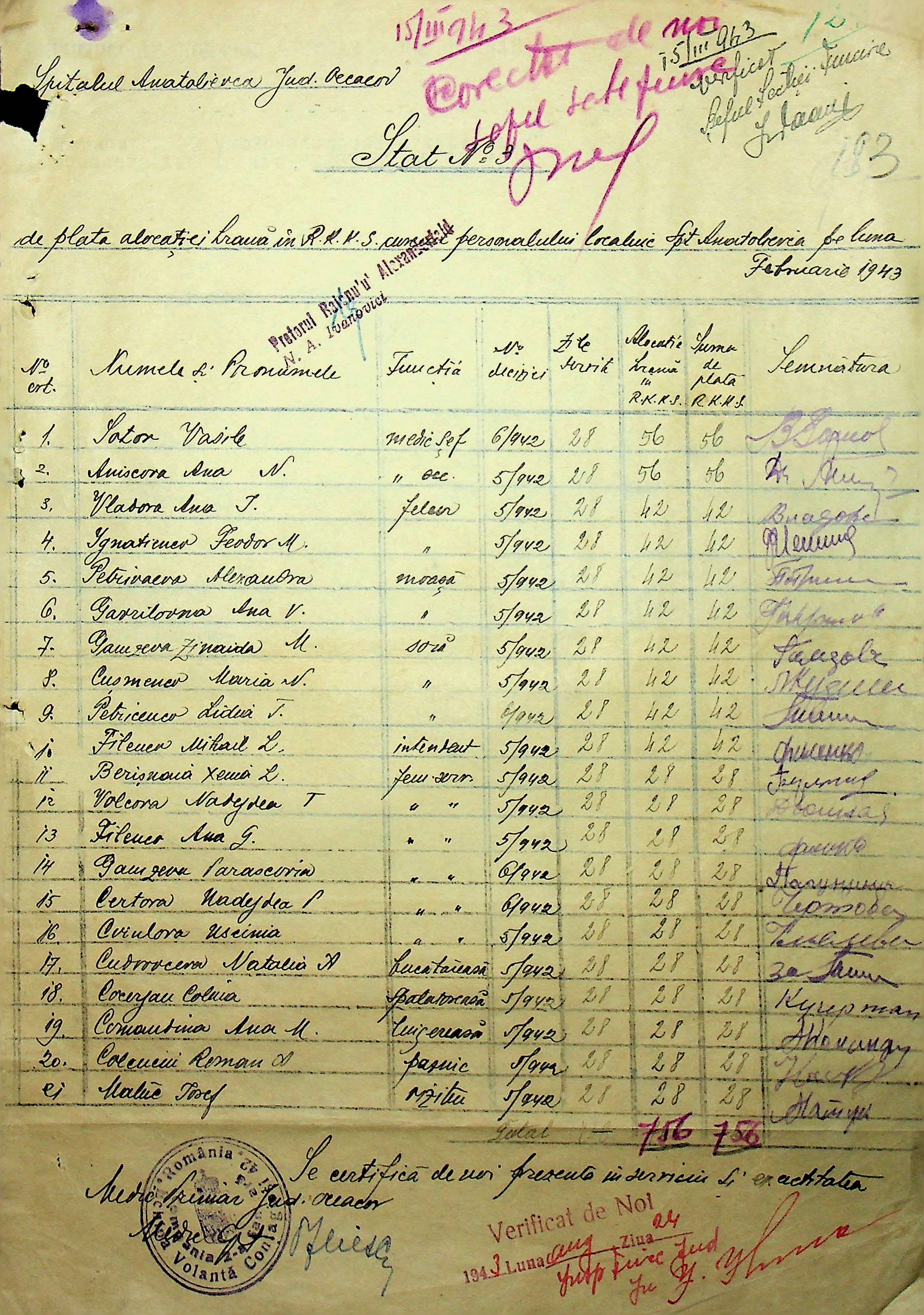 • • • • Справа № 26 “Відомості на видачу заробітної плати працівникам лікарень району за 1942-1943 роки”