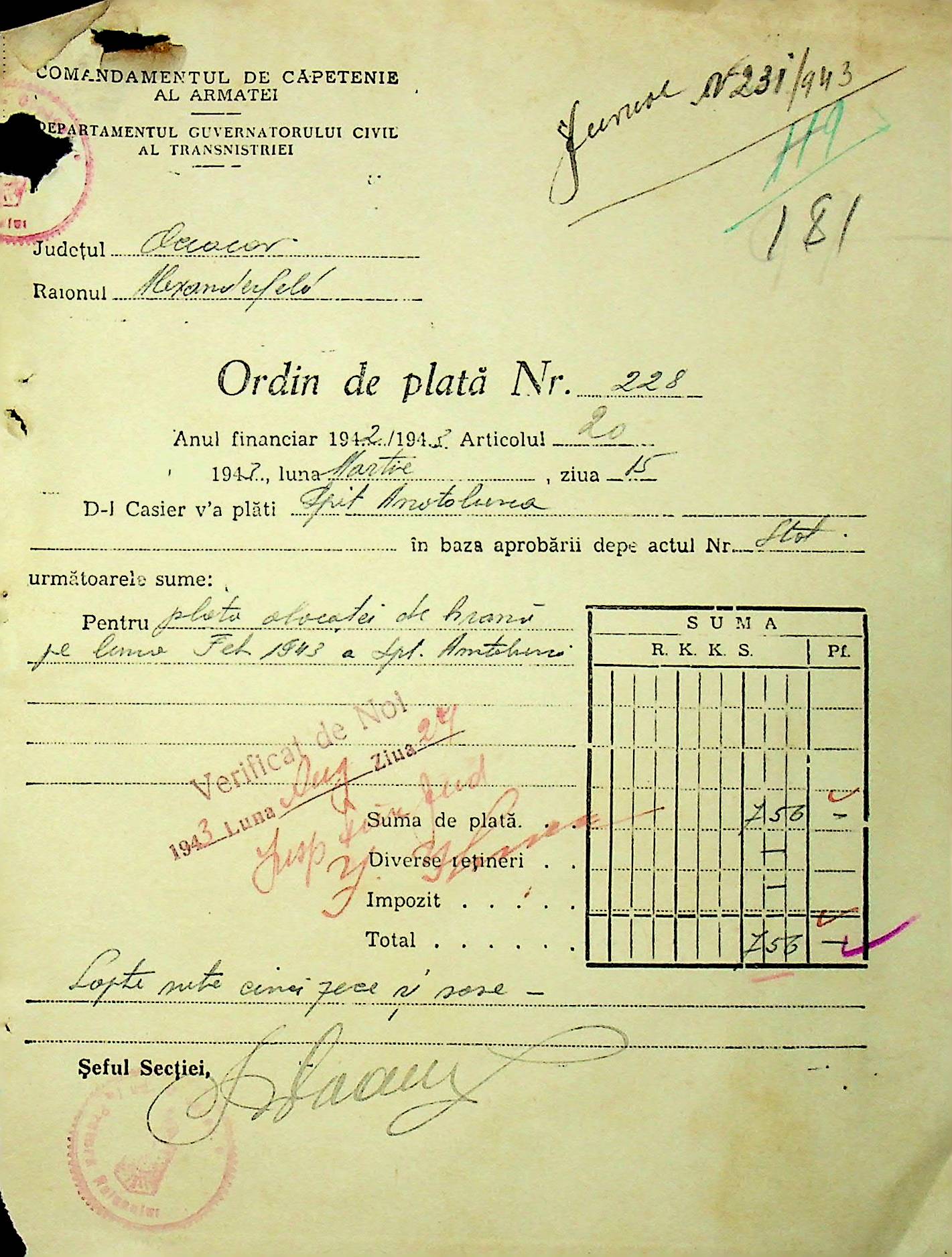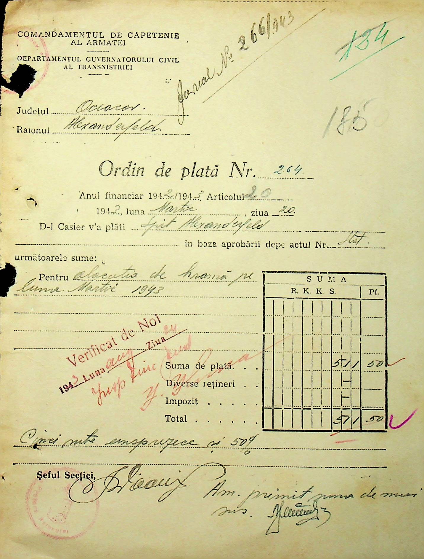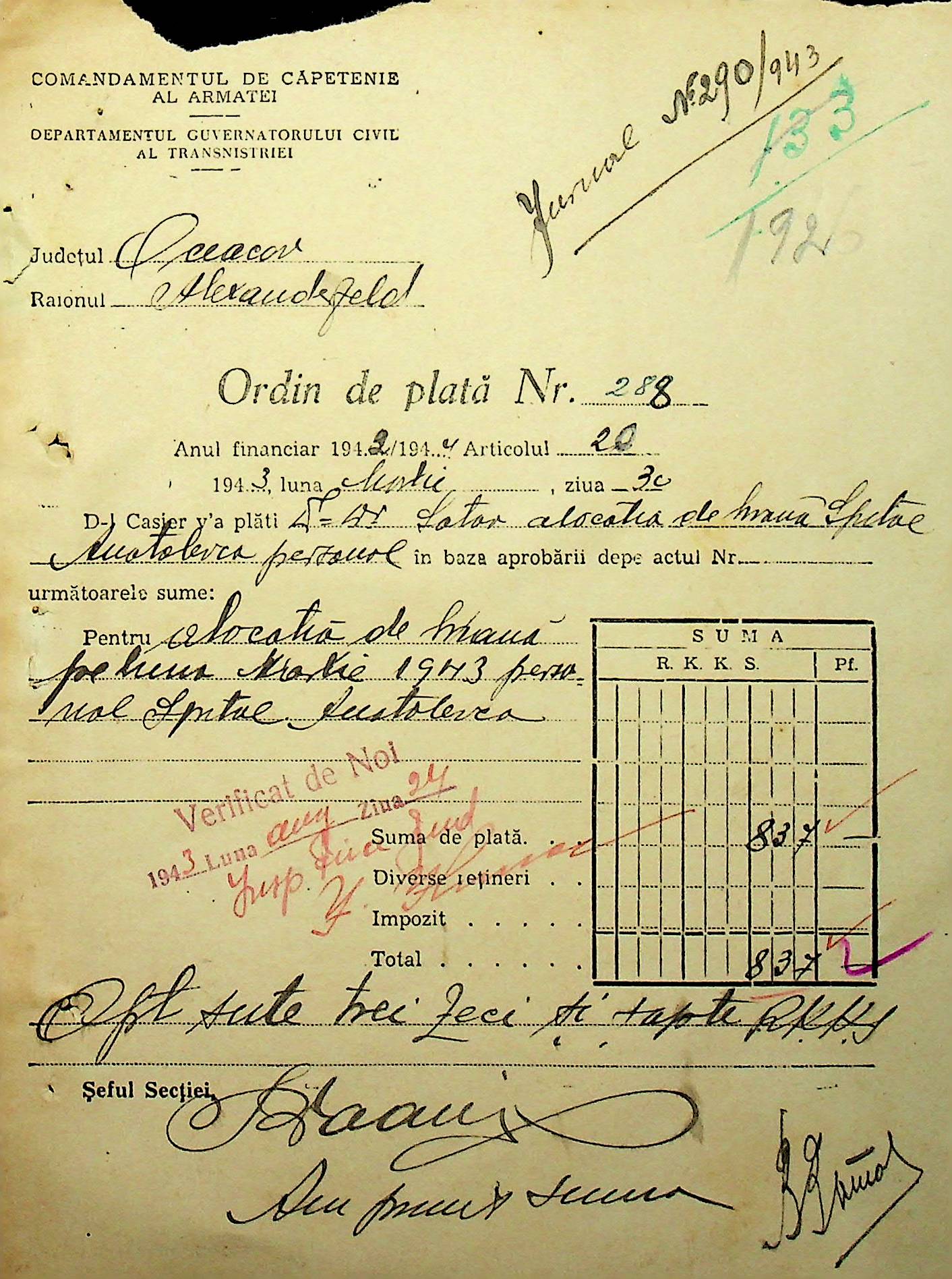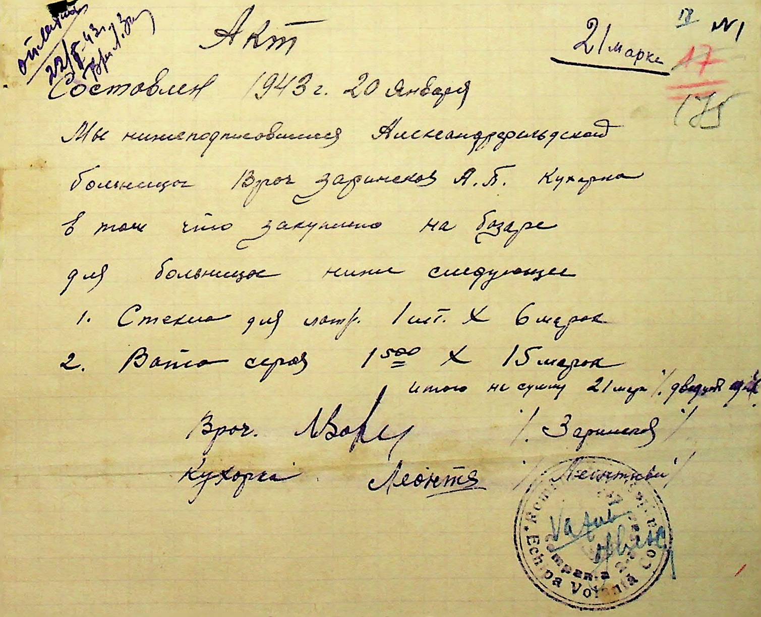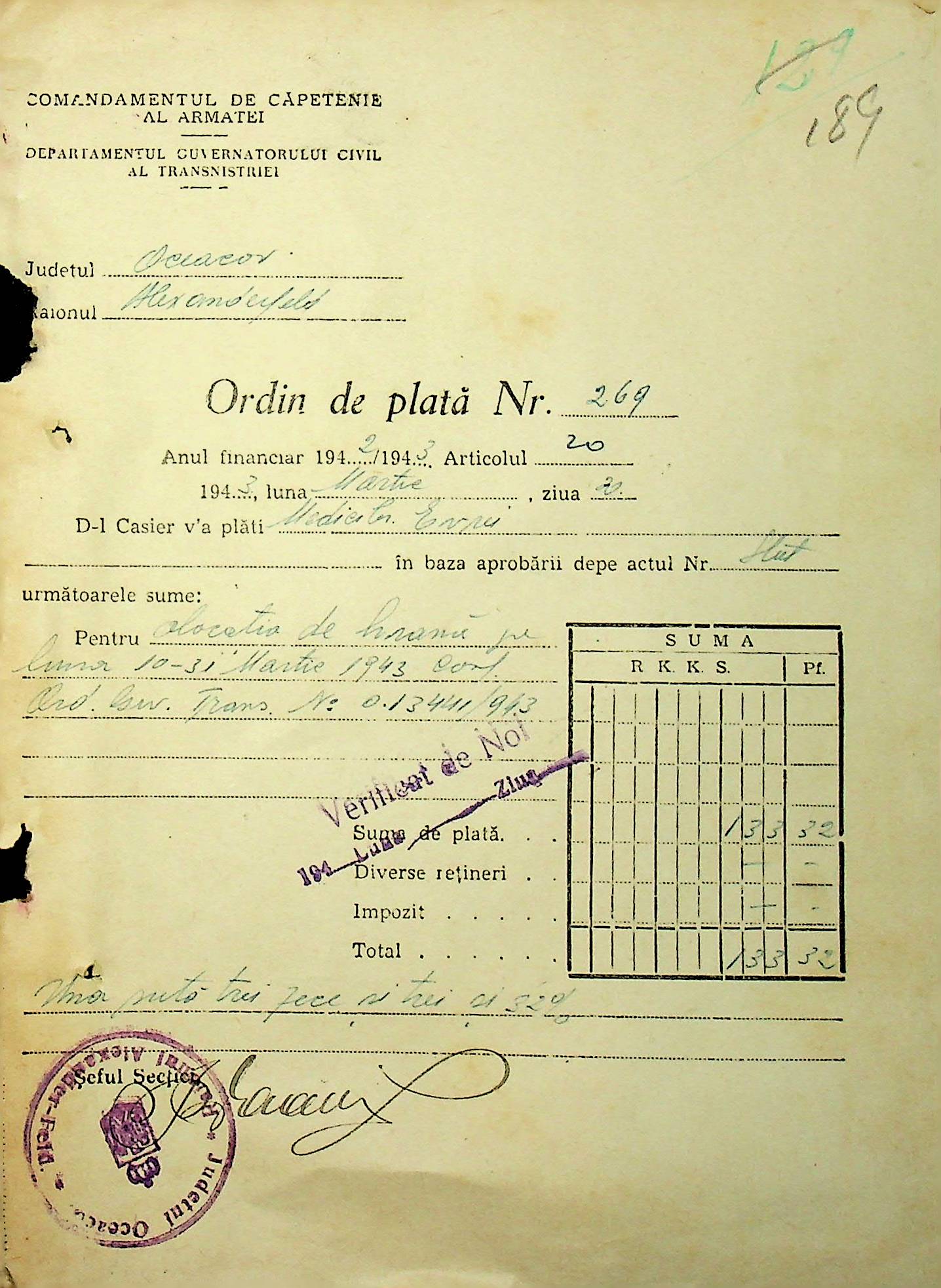 • • • • Справа № 26 “Відомості на видачу заробітної плати працівникам лікарень району за 1942-1943 роки”