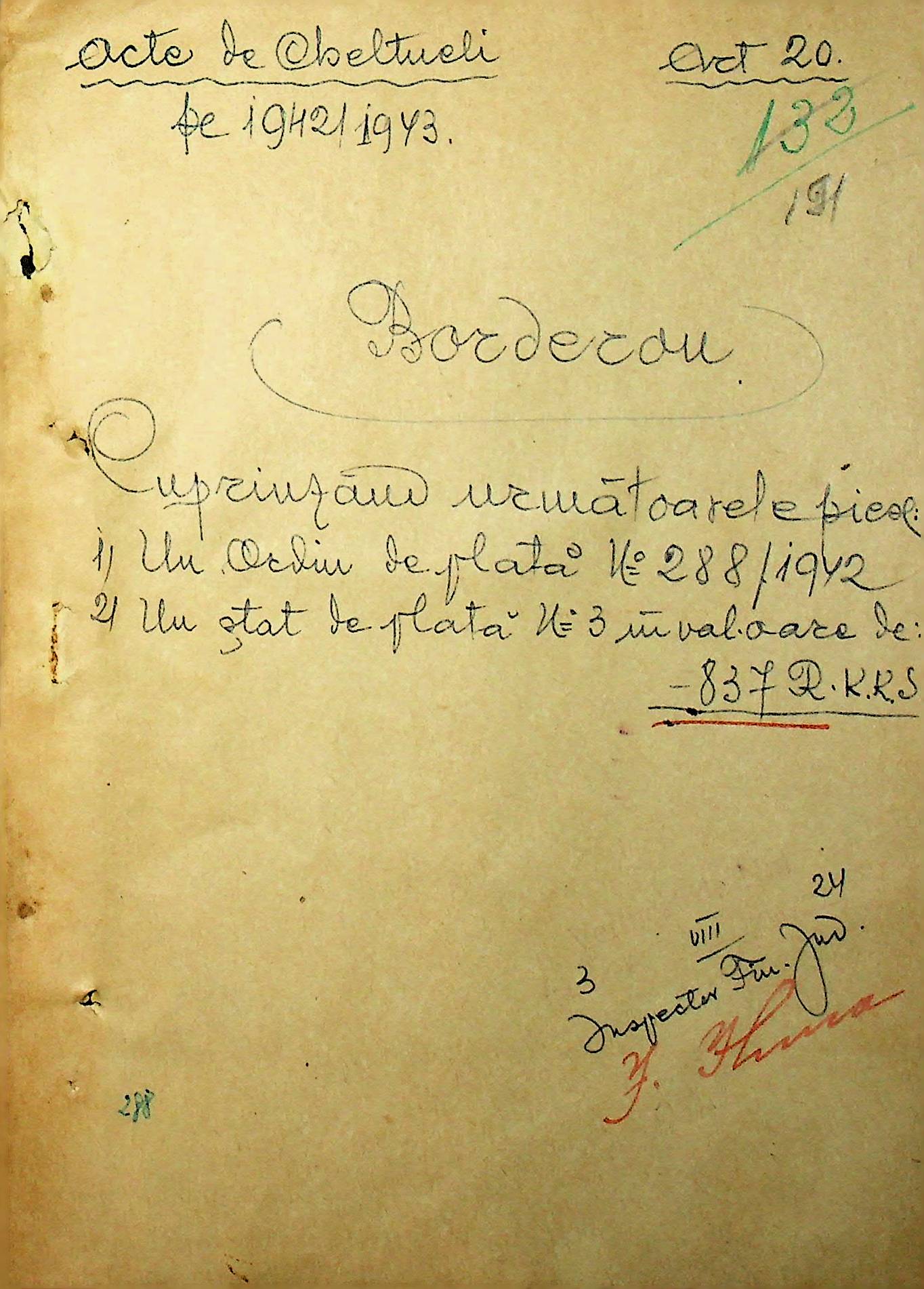 ◦ ◦ ◦ Опис № 5 справ постійного зберігання за 1942–1943 роки