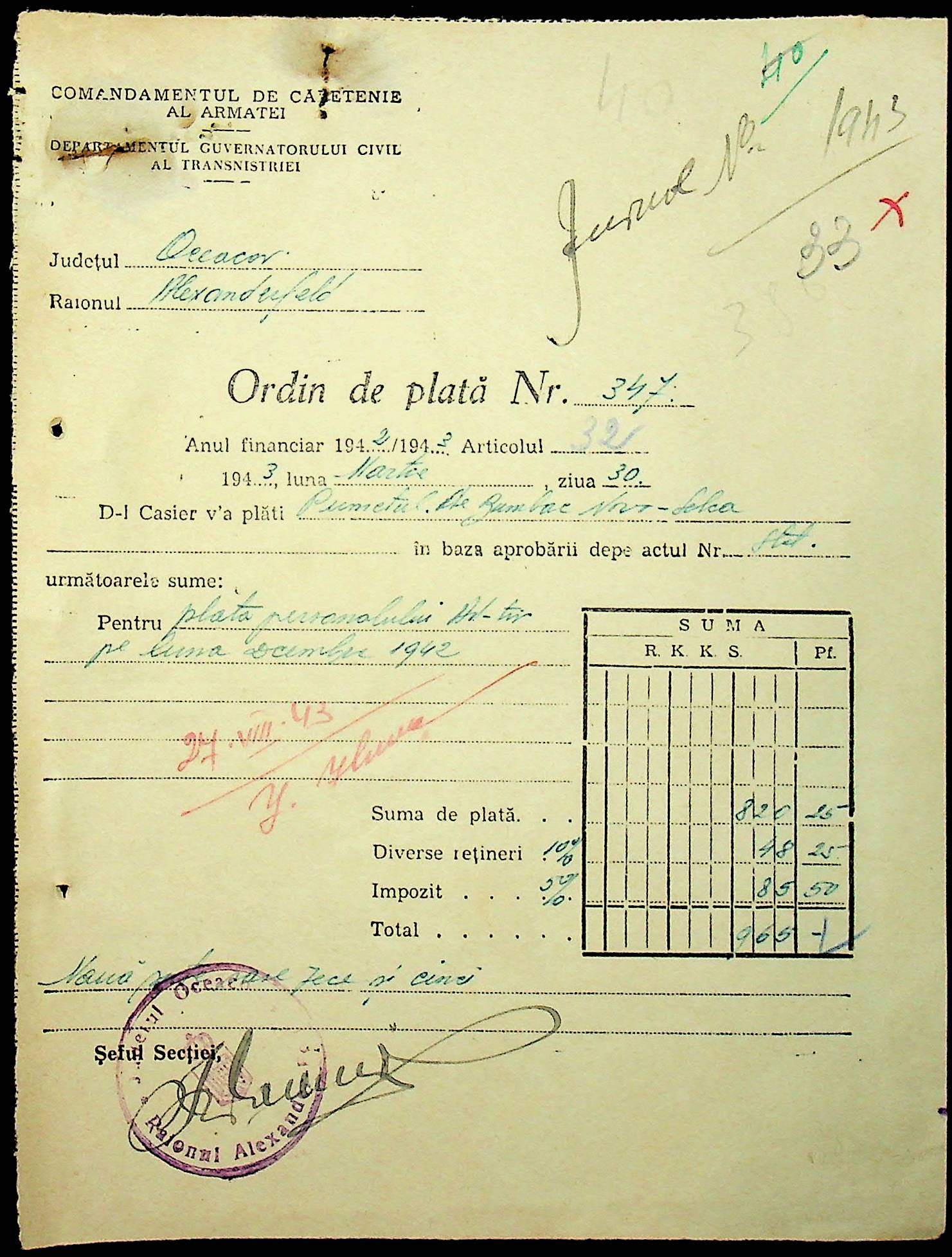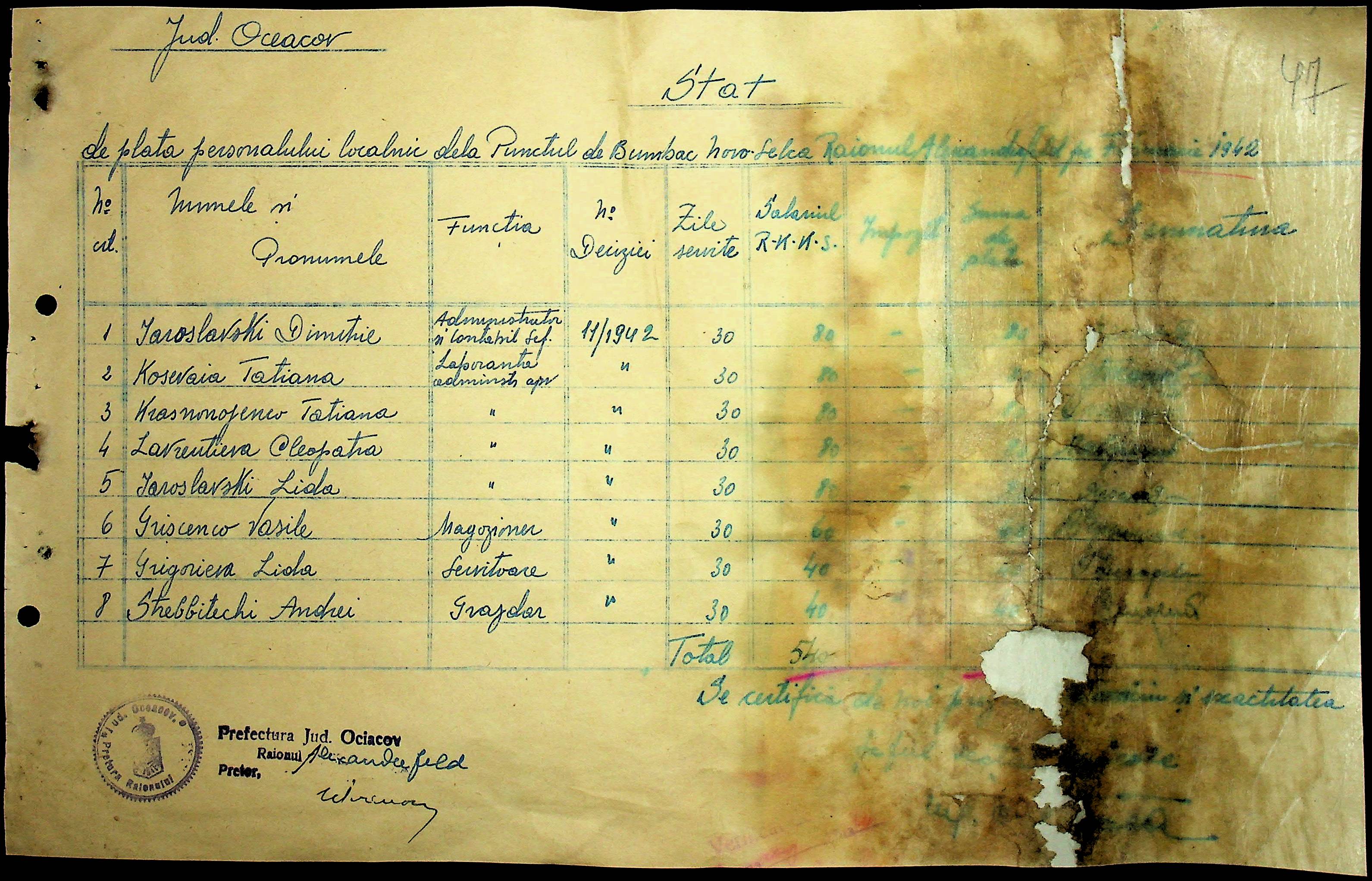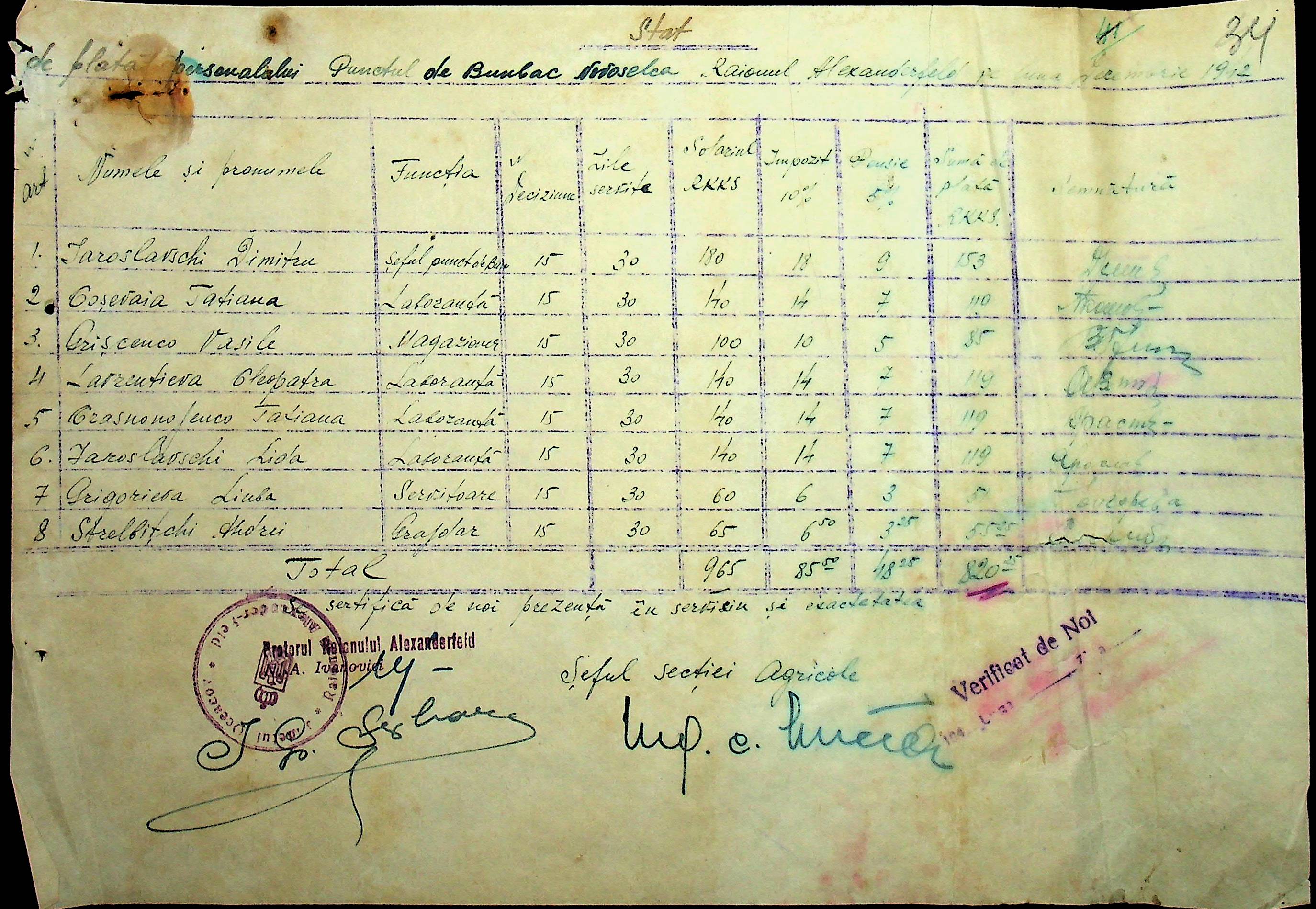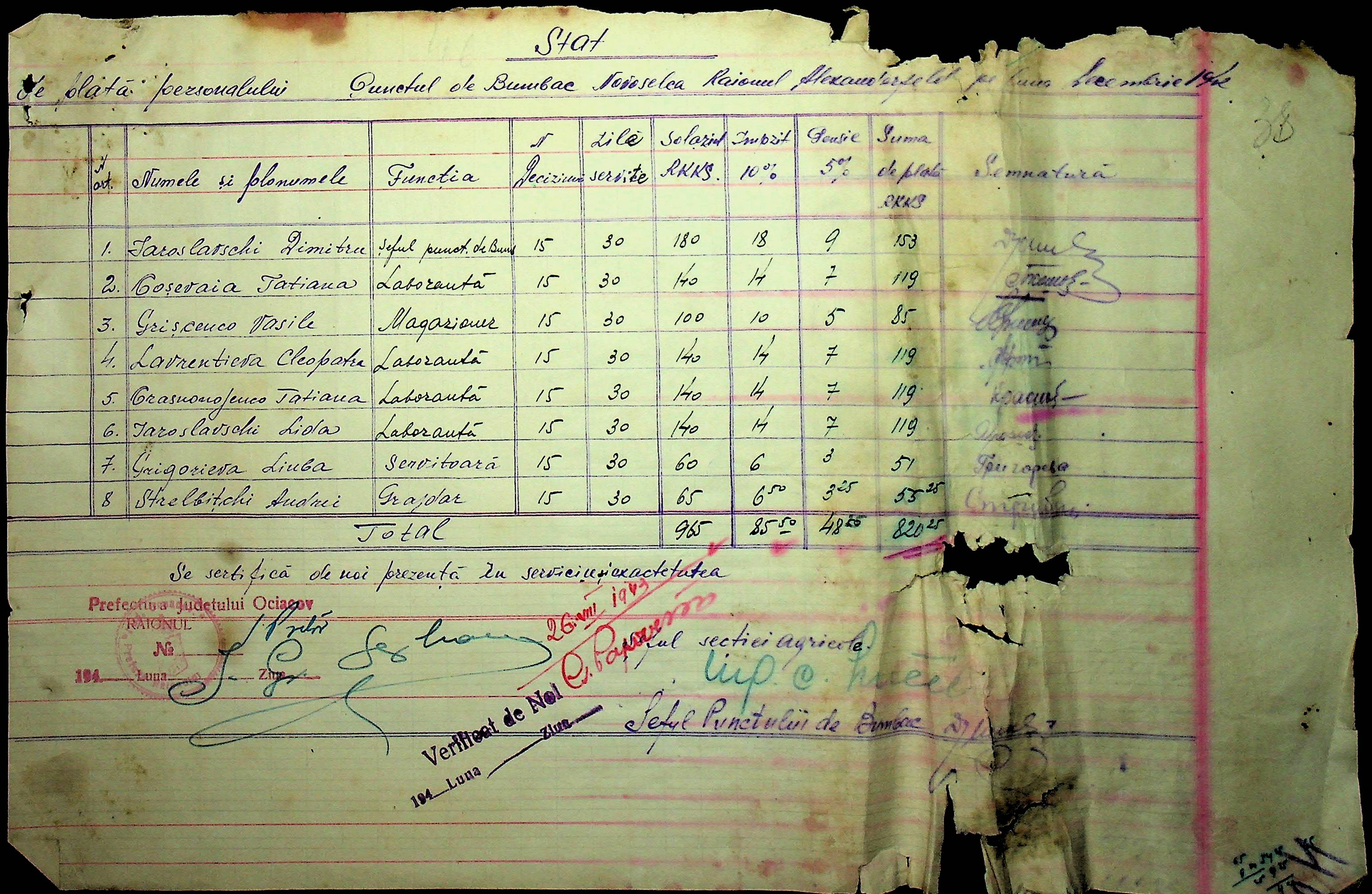 • • • • Справа № 28 “Відомості на видачу заробітної плати робітникам бавовняних плантацій с. Новоселівка за 1942-1943 роки”