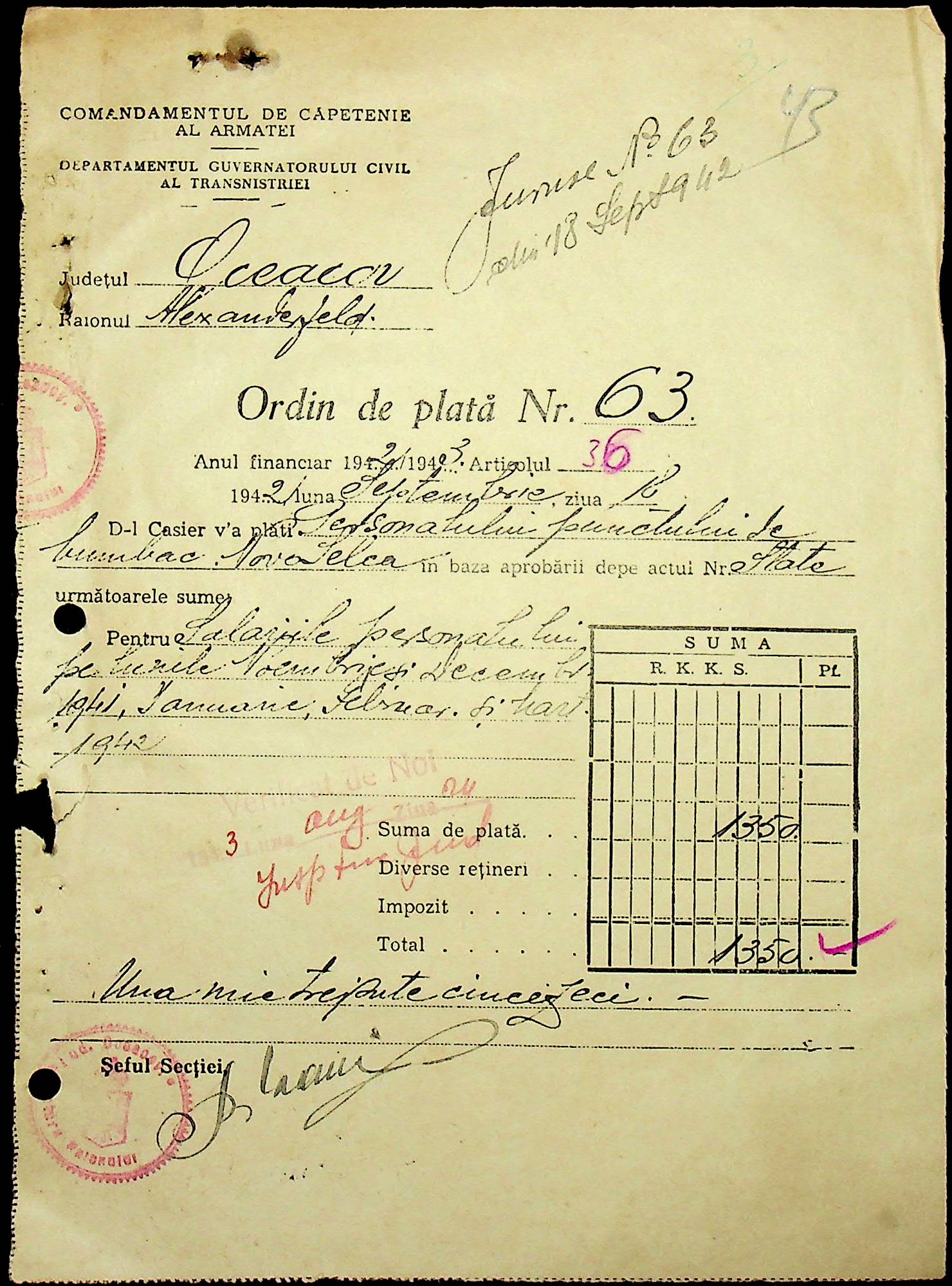 ◦ ◦ Фонд № Н-1588 “Претура Александерфельдського району Очаківського повіту”