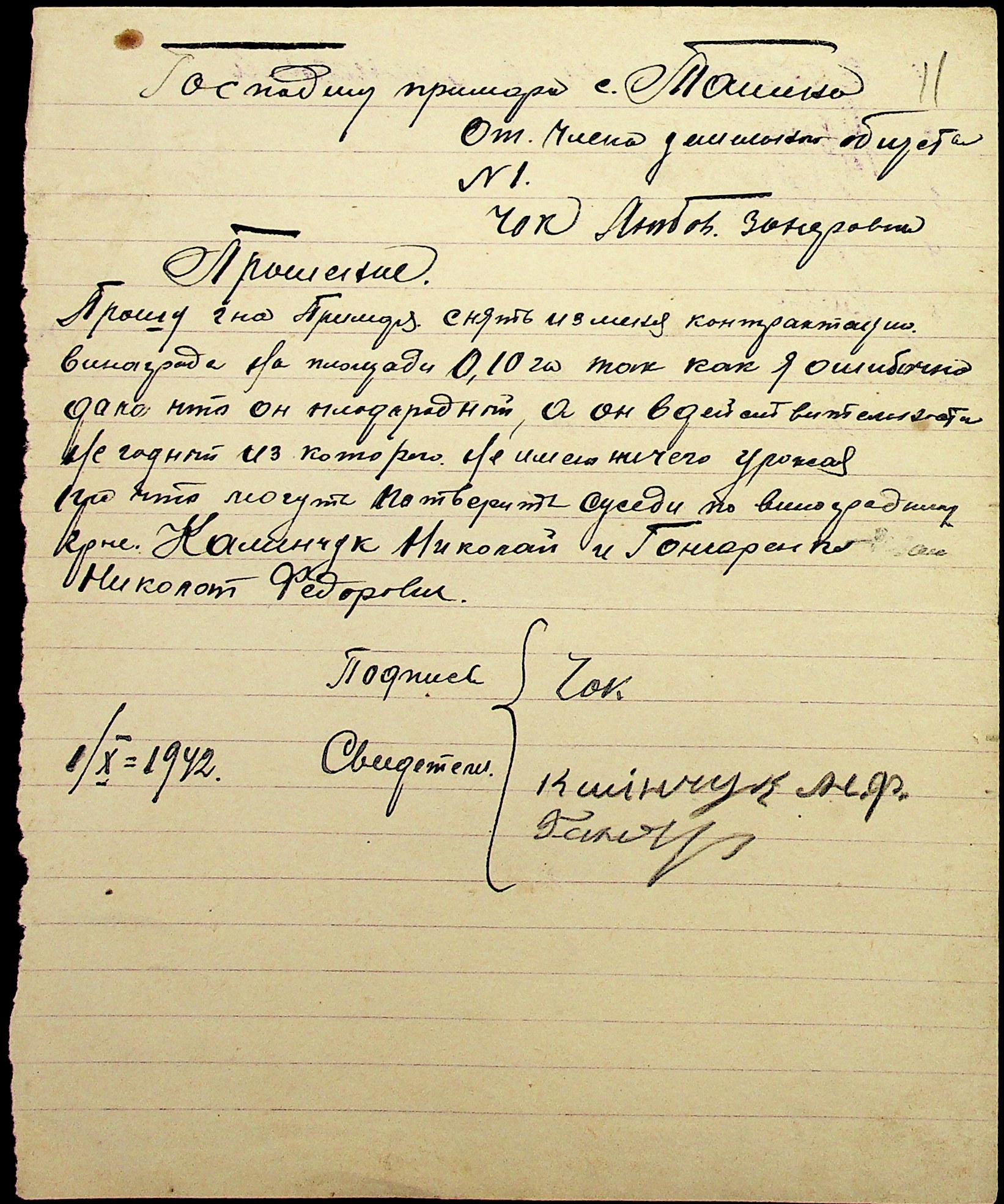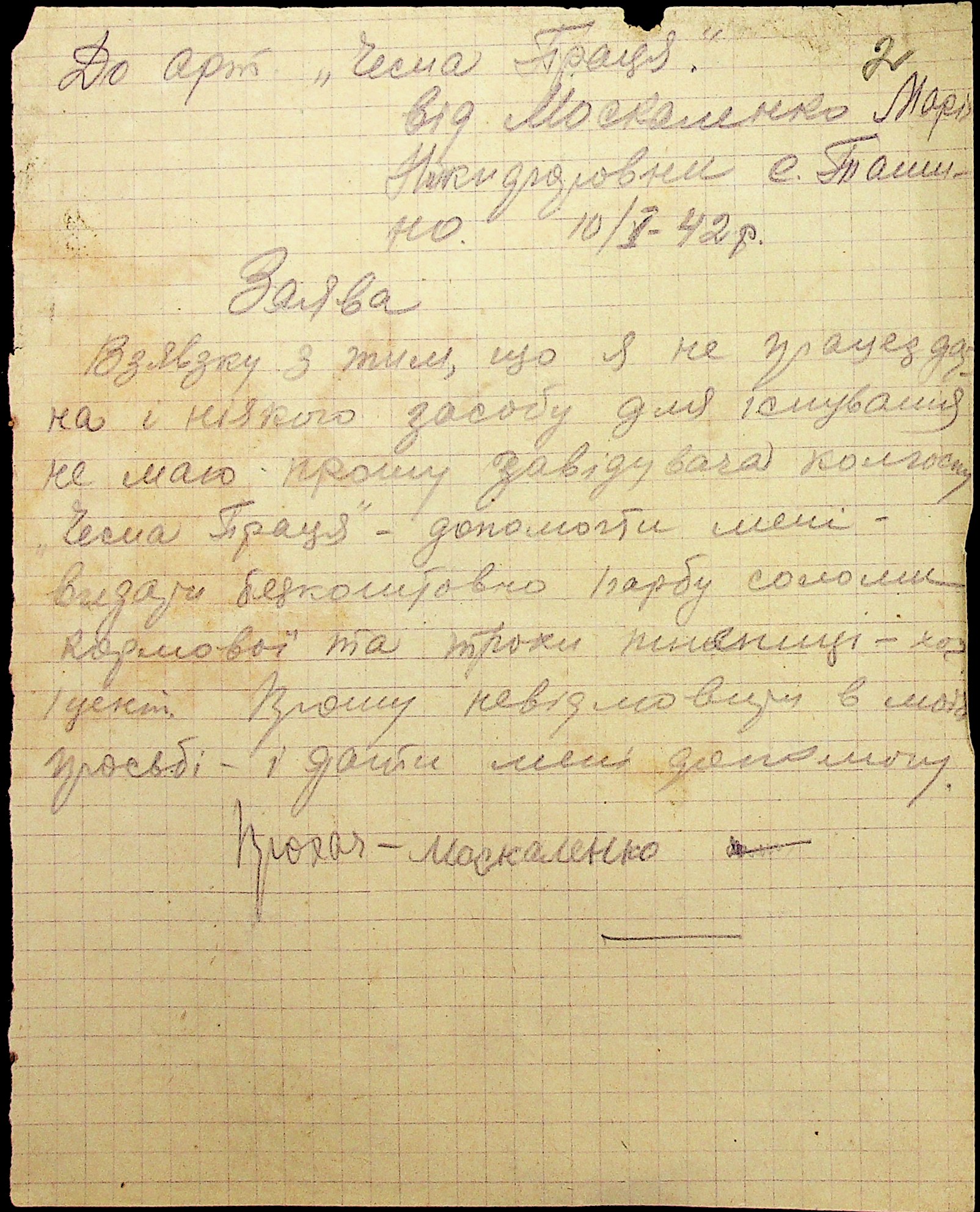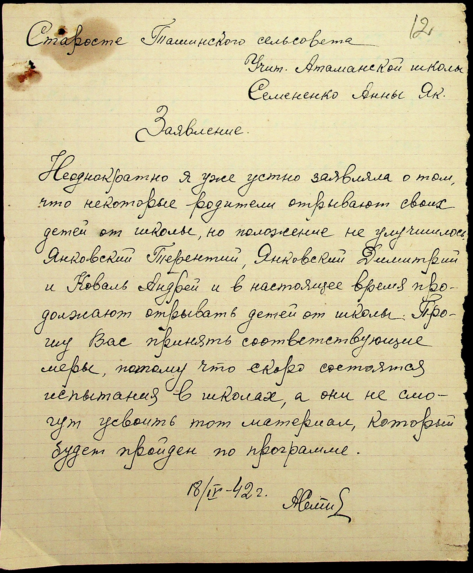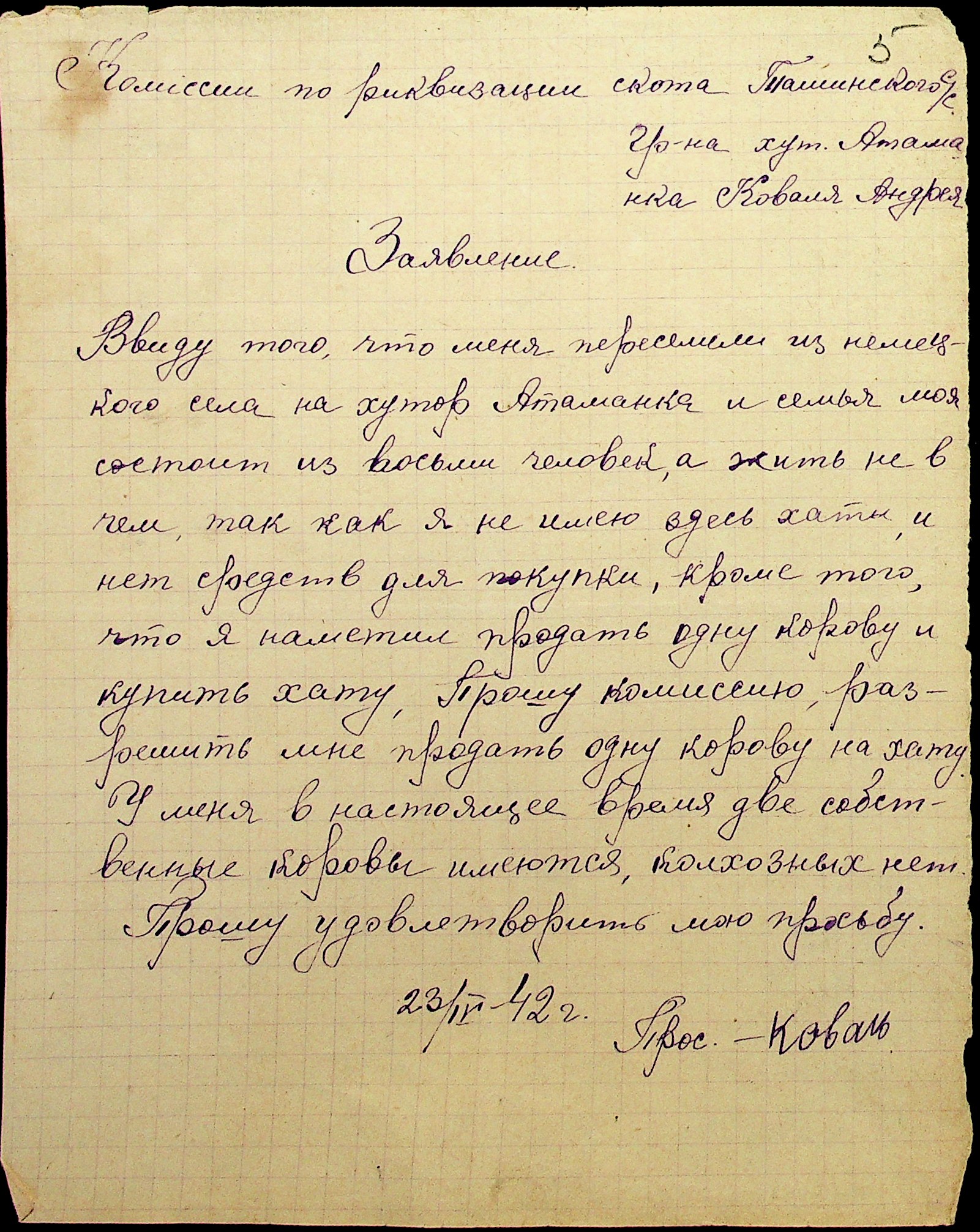 • • • • Справа № 29 “Заяви та прохання мешканців сіл Ташине та Атаманка про звільнення від податків та надання квартир за 1942-1943 роки”
