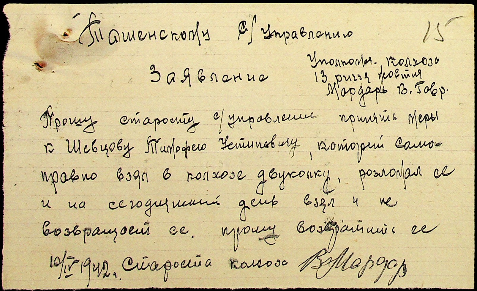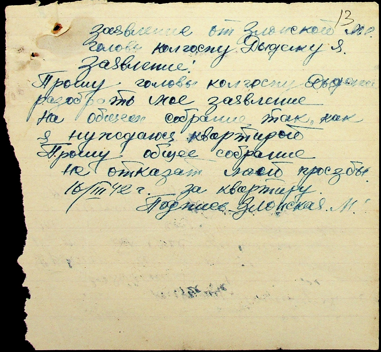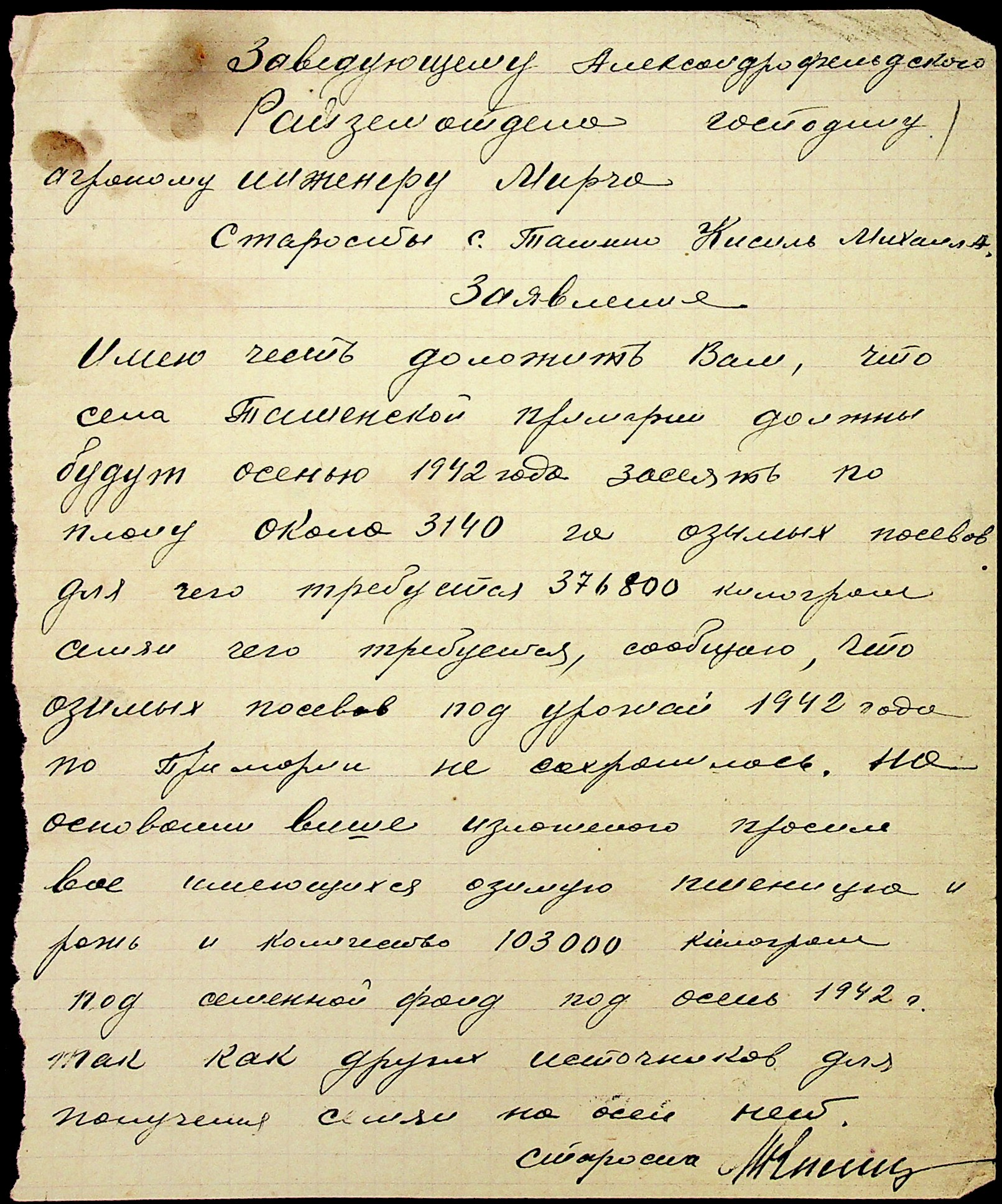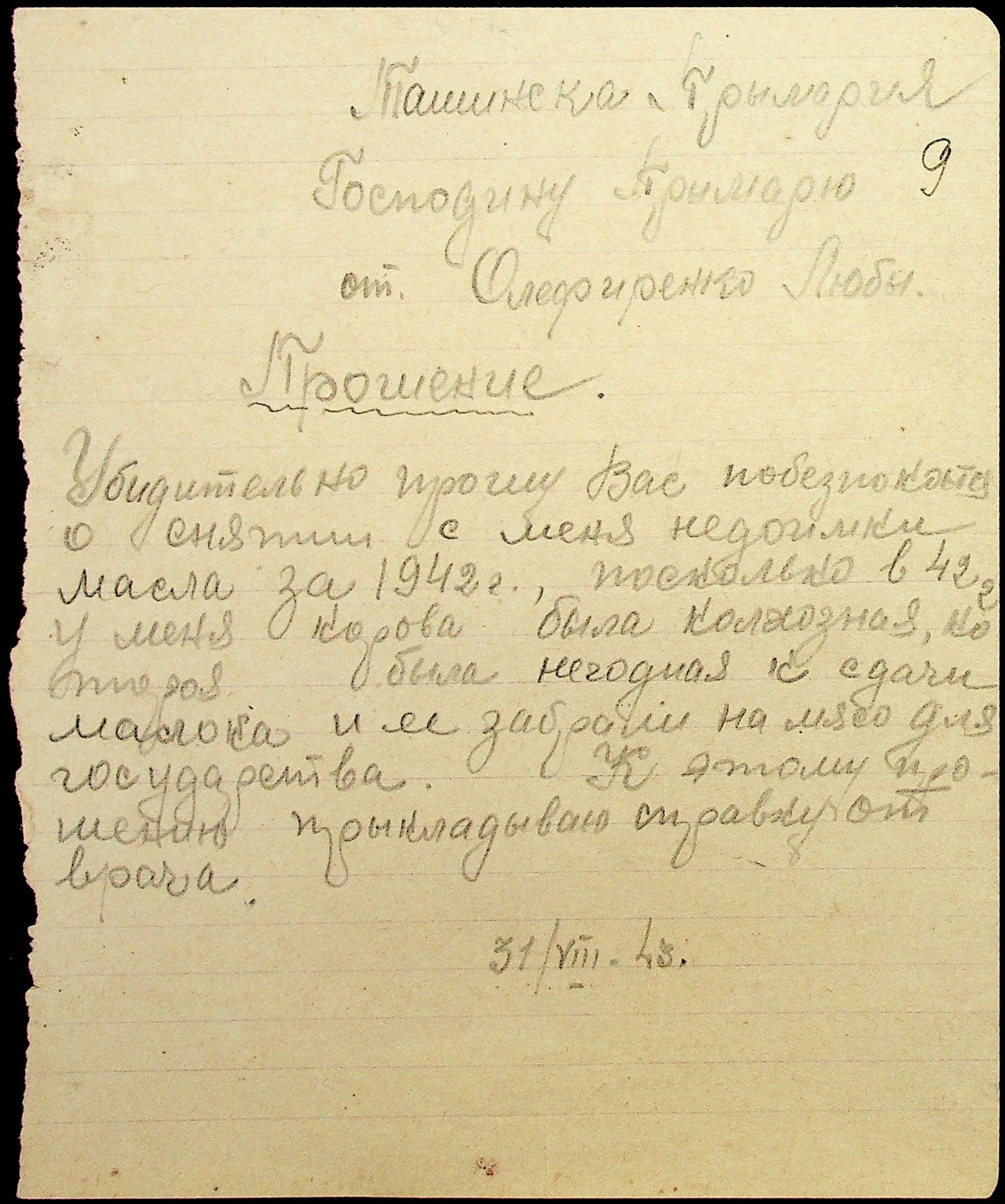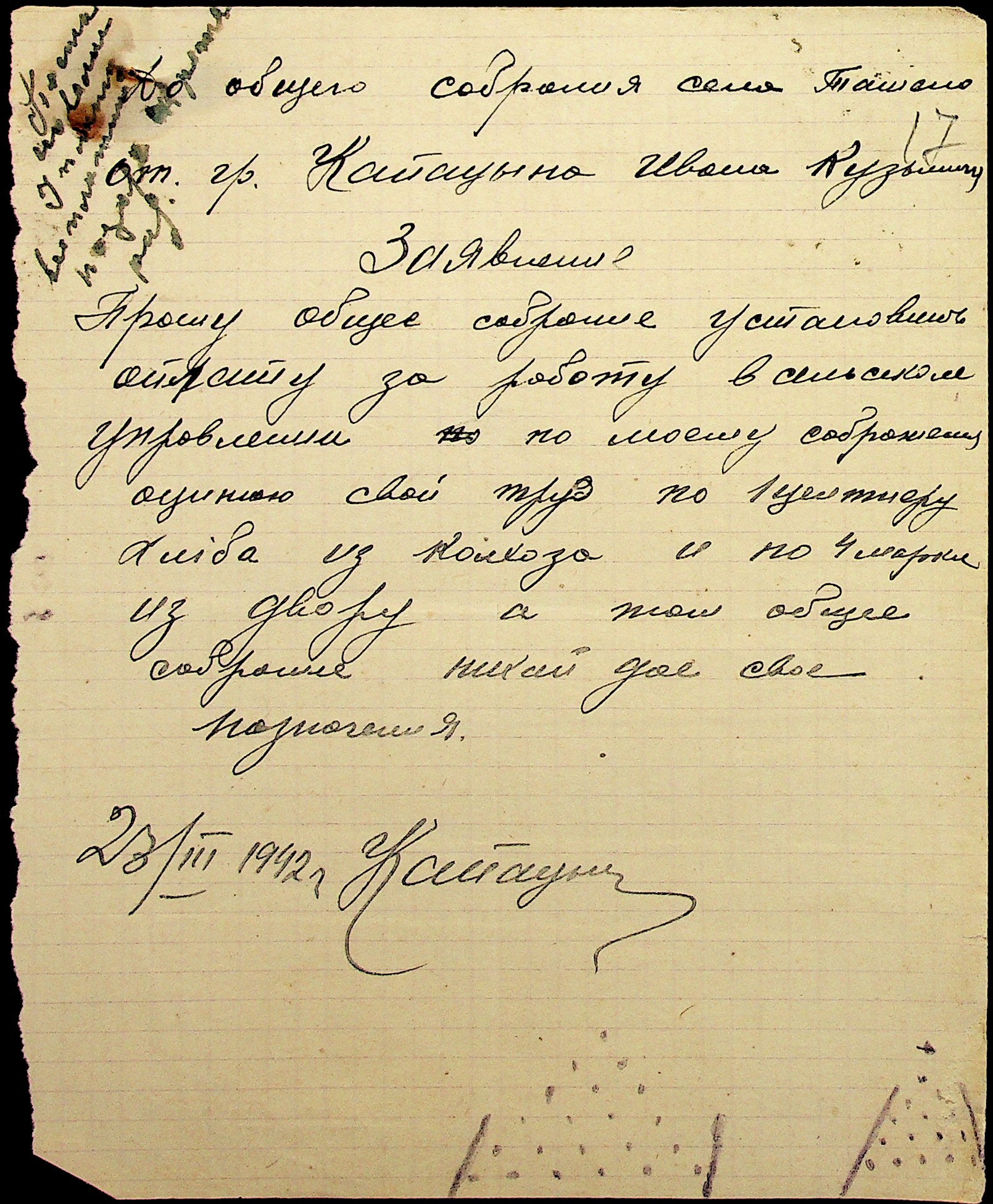 • • • • Справа № 29 “Заяви та прохання мешканців сіл Ташине та Атаманка про звільнення від податків та надання квартир за 1942-1943 роки”