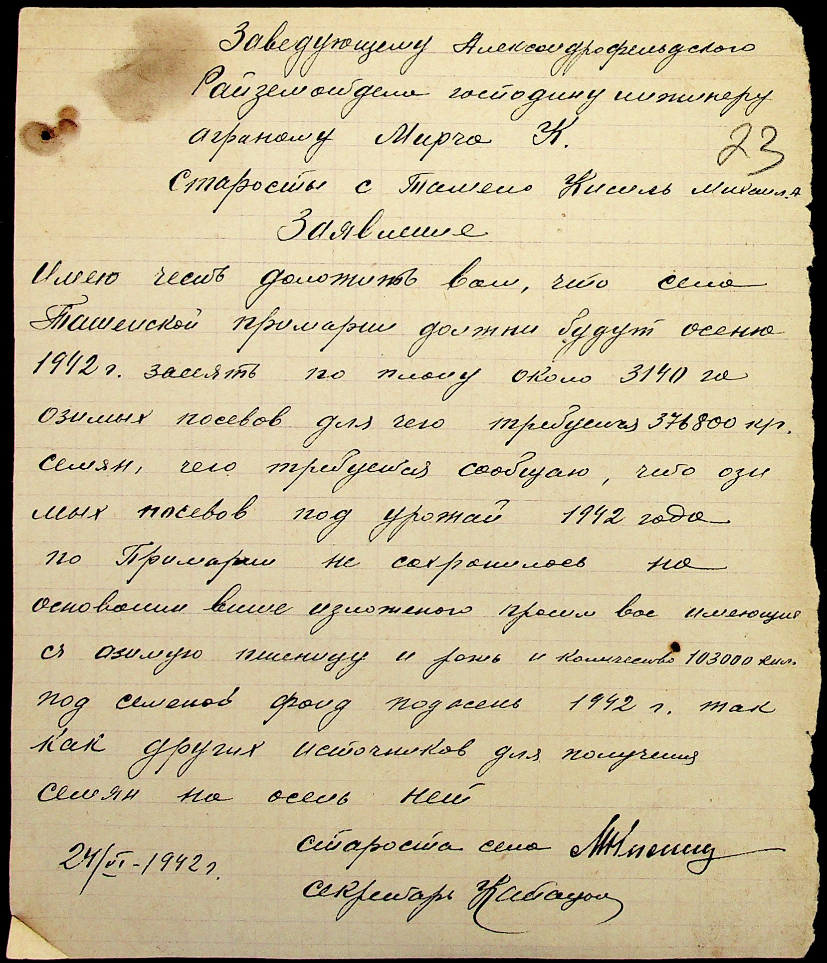 • • • • Справа № 29 “Заяви та прохання мешканців сіл Ташине та Атаманка про звільнення від податків та надання квартир за 1942-1943 роки”