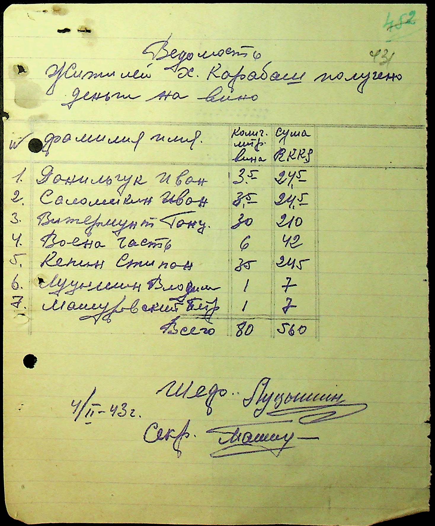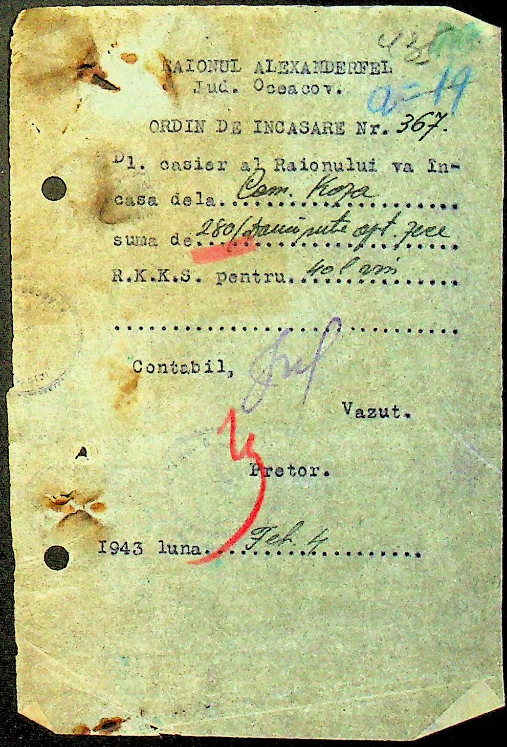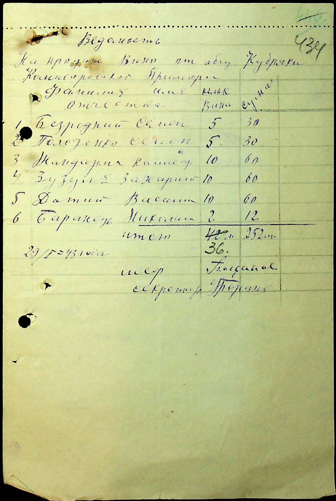 • • • • Справа № 36 “Документи (рапорти, списки службовців примарій, шкіл, працівників МТС, елеваторів, трудових товариств та мешканців сіл району, заяви, відомості про отримання продуктів, зерна, ячменю та грошей, продаж вина, ордери, листування з різних питань) про роботу Александерфельдської претури”