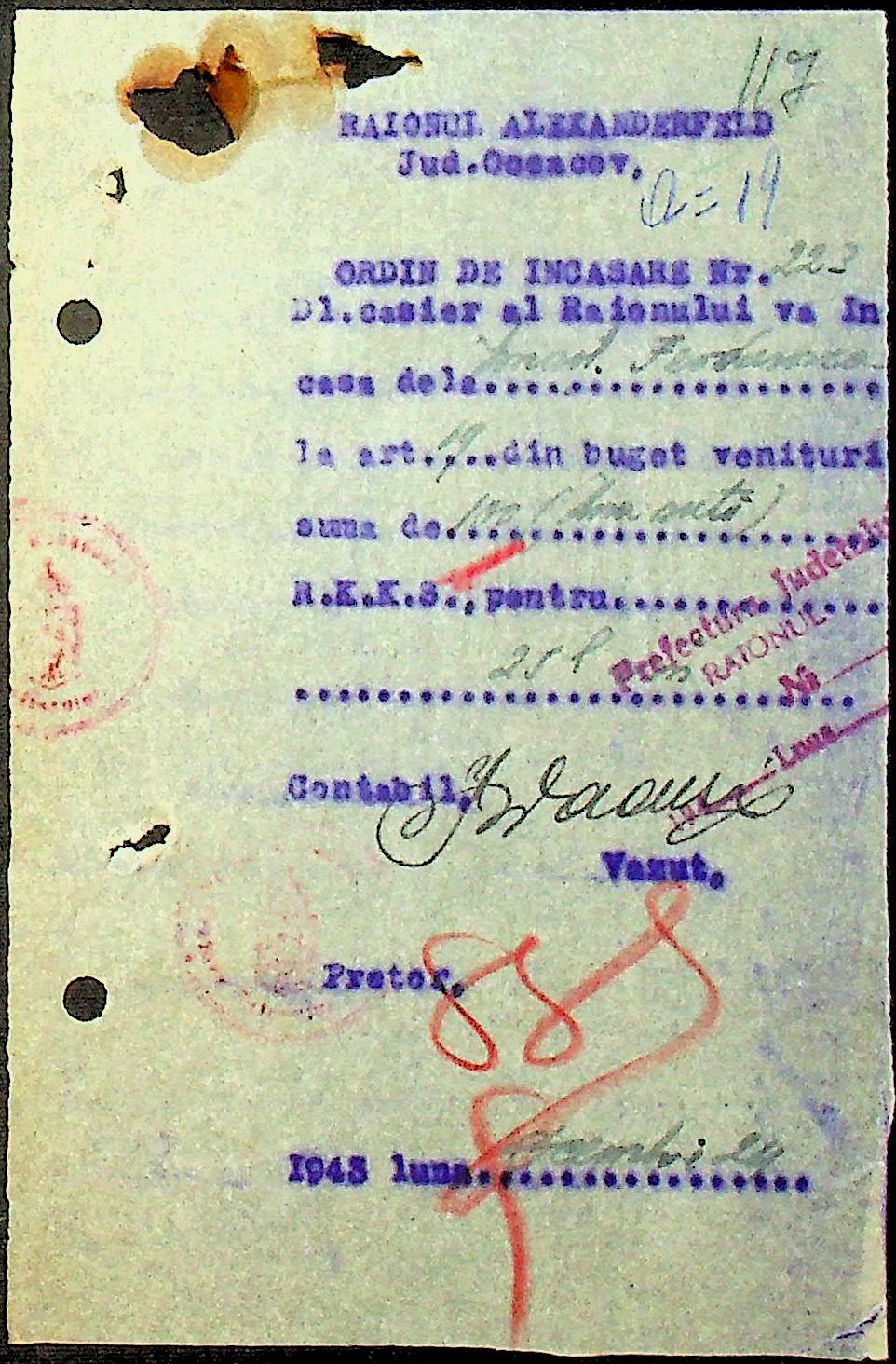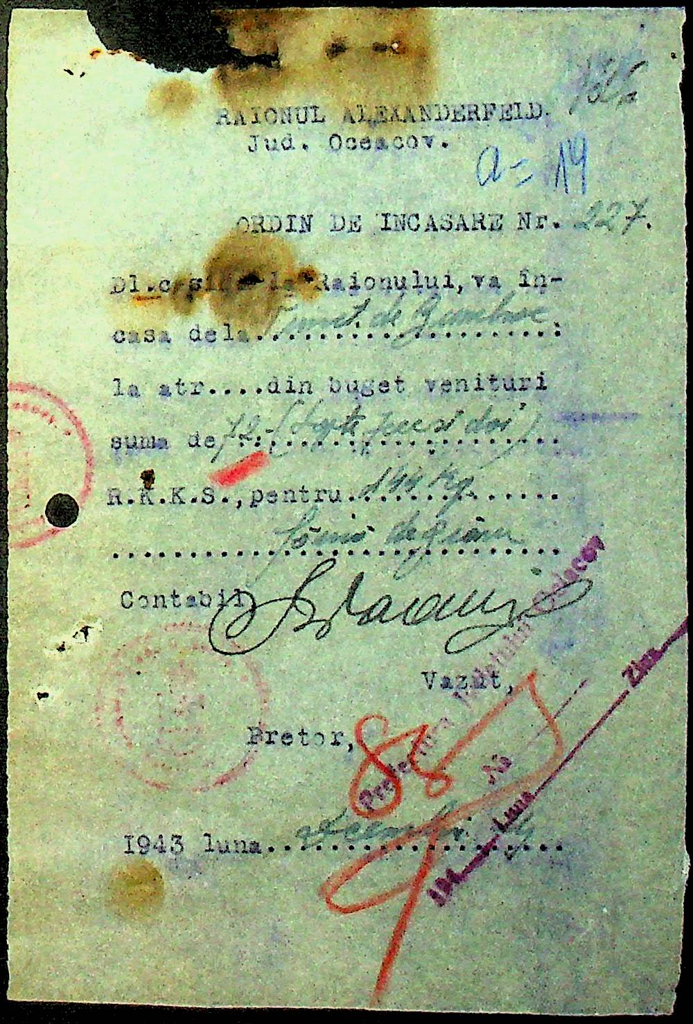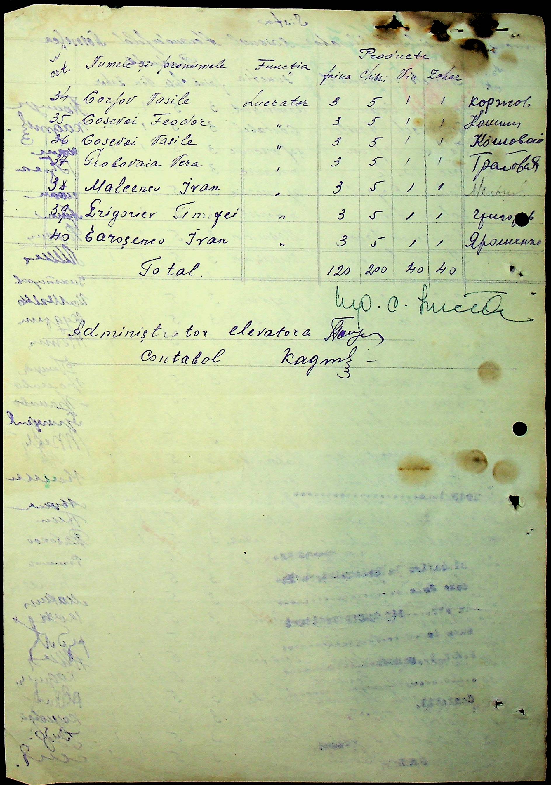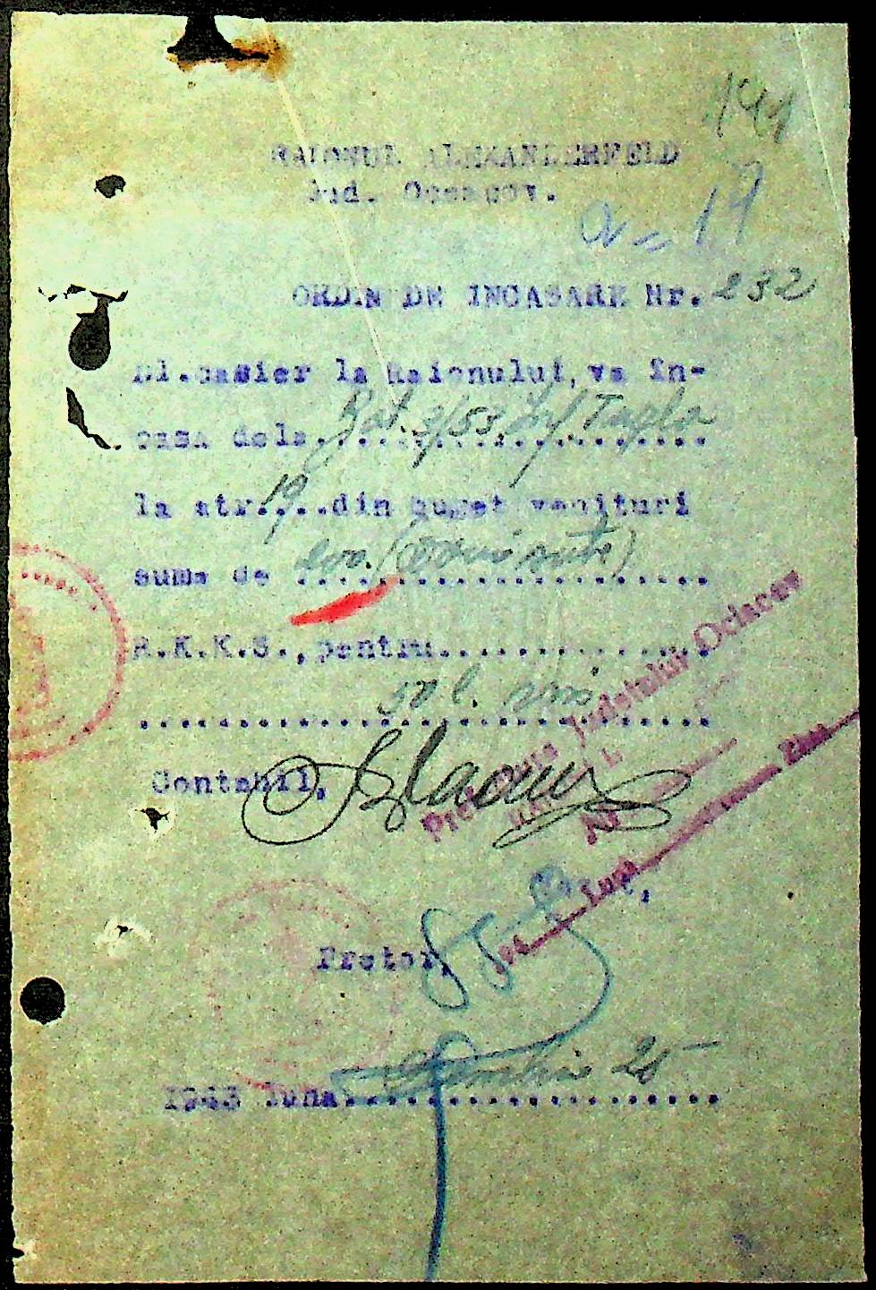 • • • • Справа № 36 “Документи (рапорти, списки службовців примарій, шкіл, працівників МТС, елеваторів, трудових товариств та мешканців сіл району, заяви, відомості про отримання продуктів, зерна, ячменю та грошей, продаж вина, ордери, листування з різних питань) про роботу Александерфельдської претури”