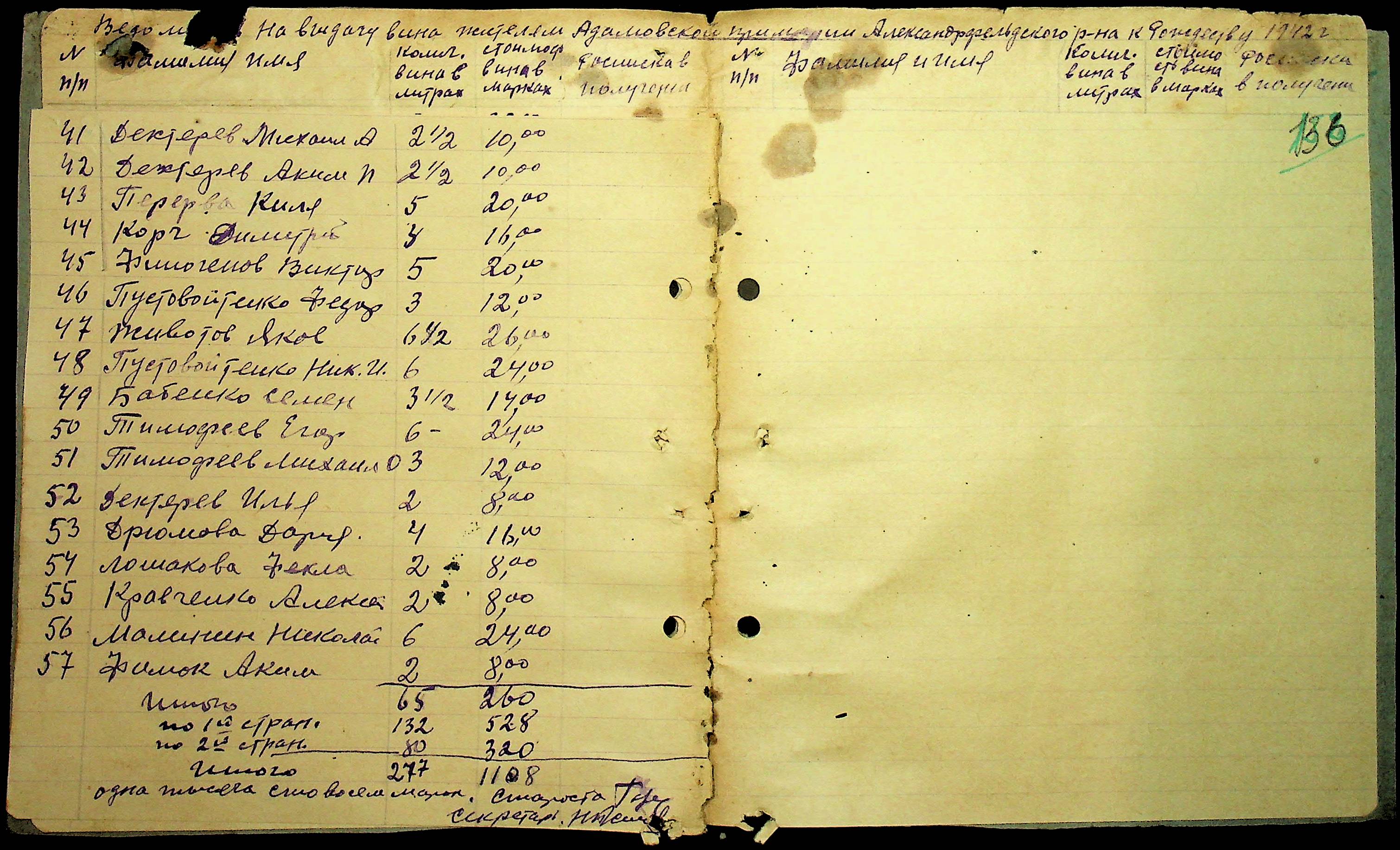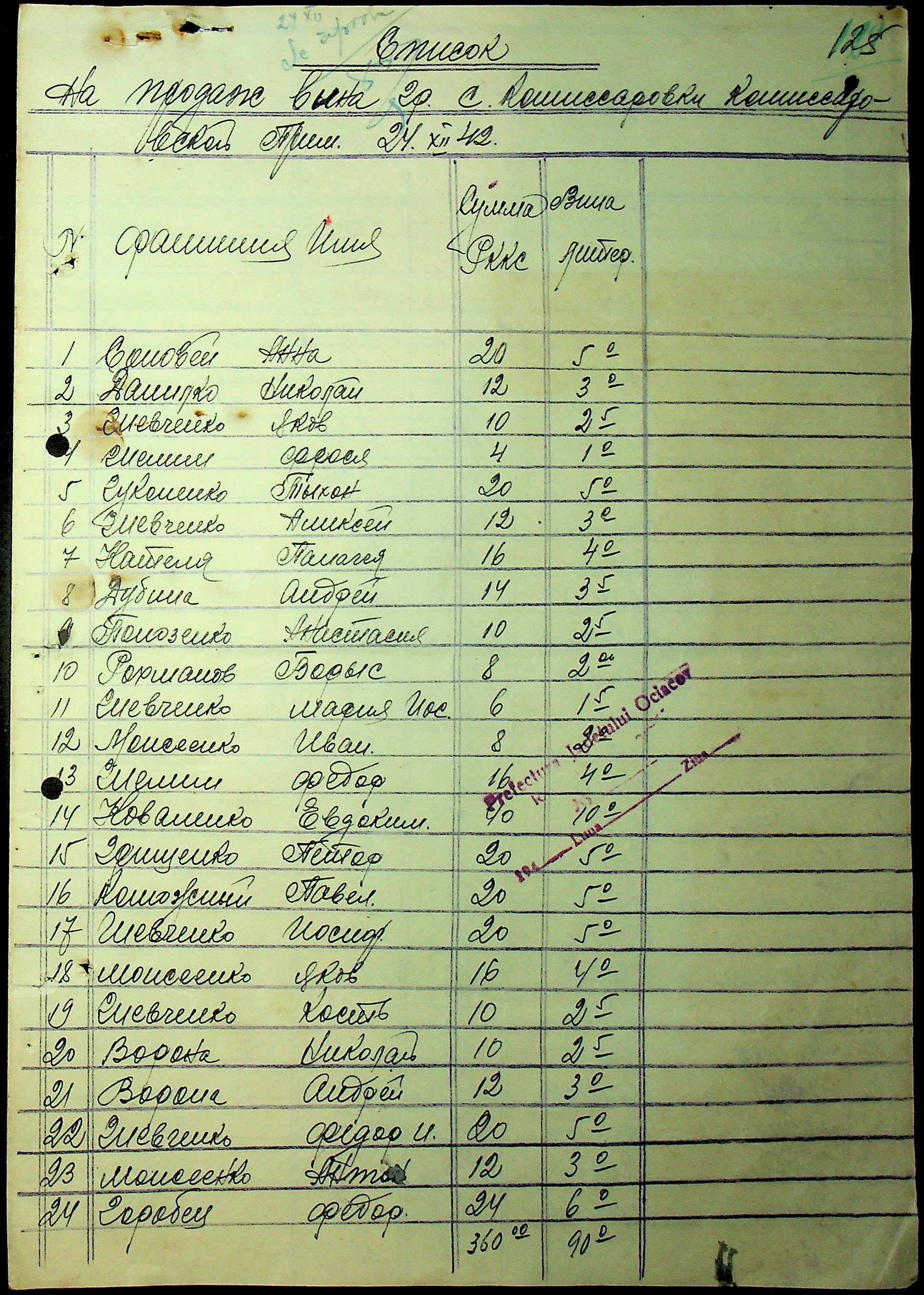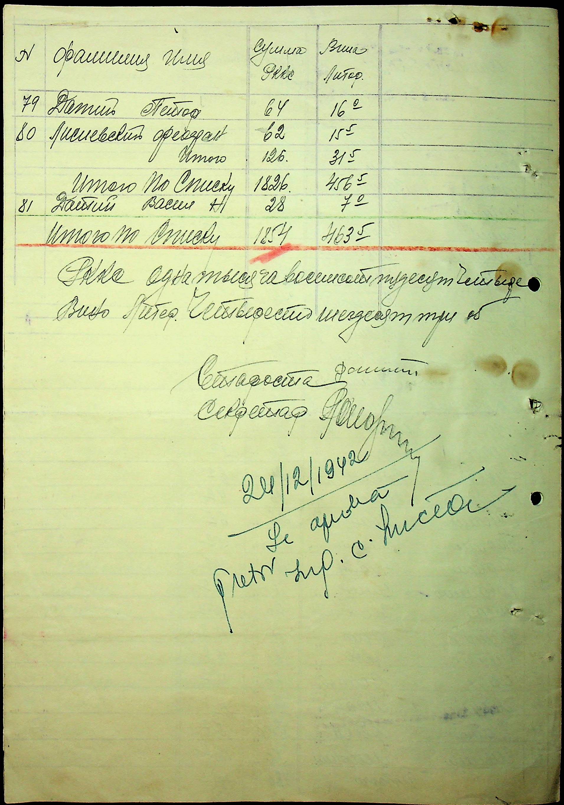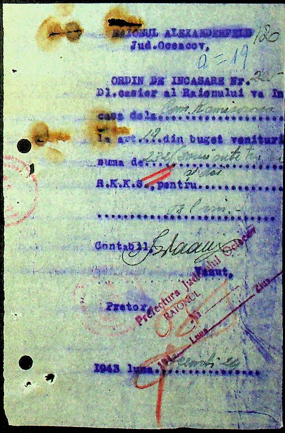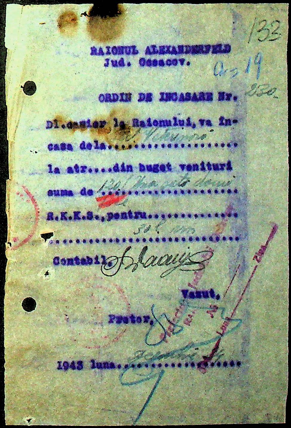 • • • • Справа № 36 “Документи (рапорти, списки службовців примарій, шкіл, працівників МТС, елеваторів, трудових товариств та мешканців сіл району, заяви, відомості про отримання продуктів, зерна, ячменю та грошей, продаж вина, ордери, листування з різних питань) про роботу Александерфельдської претури”