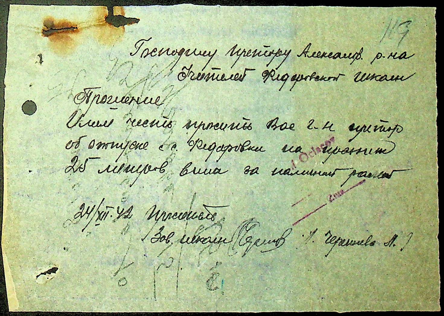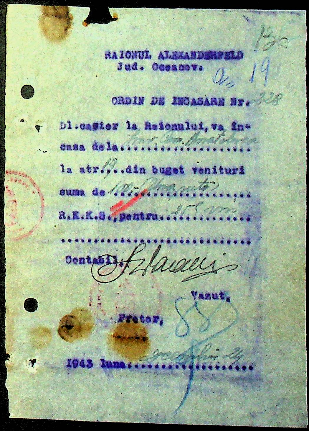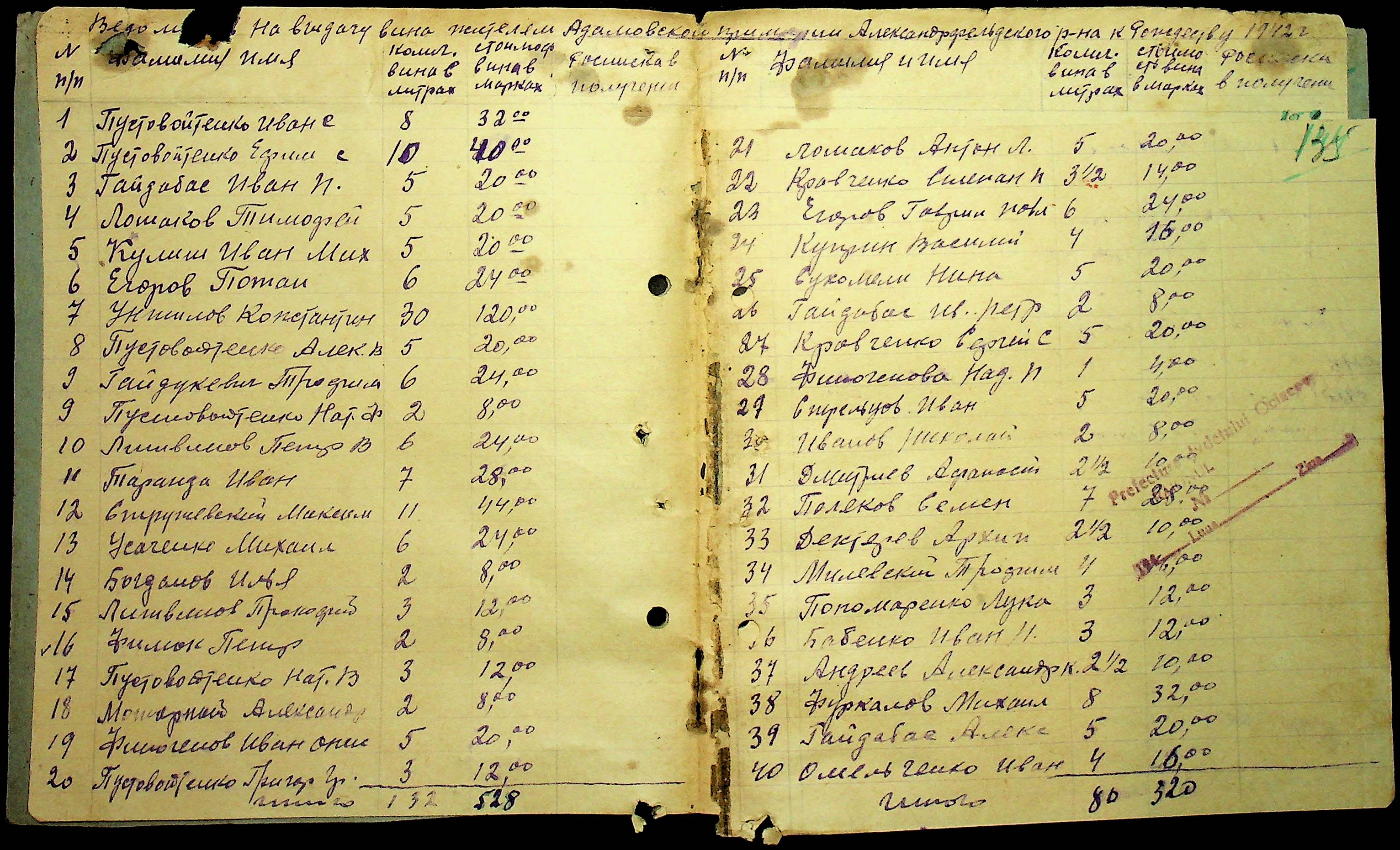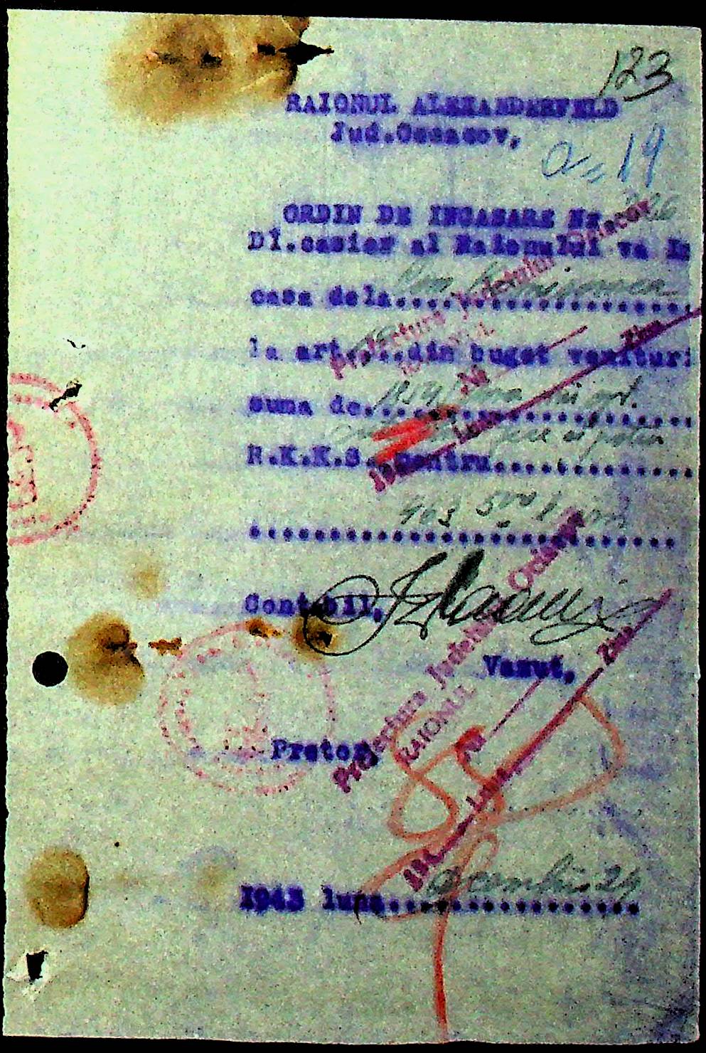 • • • • Справа № 36 “Документи (рапорти, списки службовців примарій, шкіл, працівників МТС, елеваторів, трудових товариств та мешканців сіл району, заяви, відомості про отримання продуктів, зерна, ячменю та грошей, продаж вина, ордери, листування з різних питань) про роботу Александерфельдської претури”
