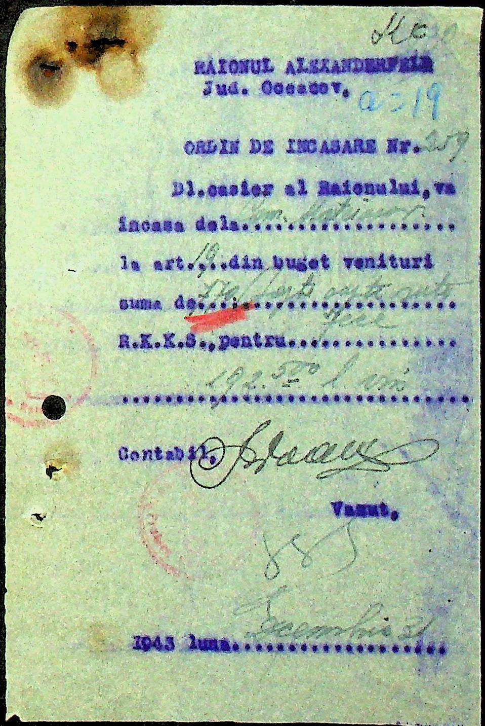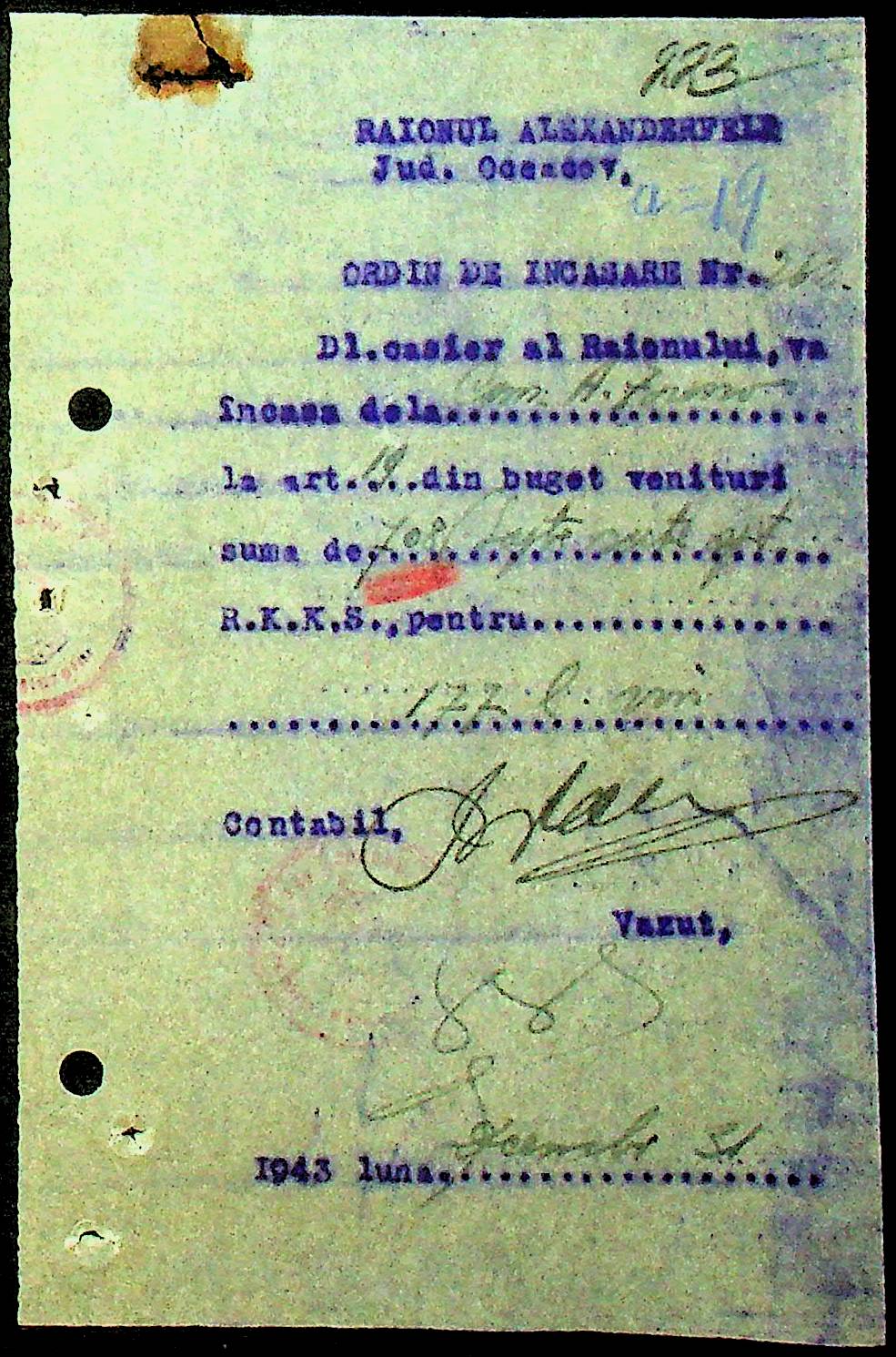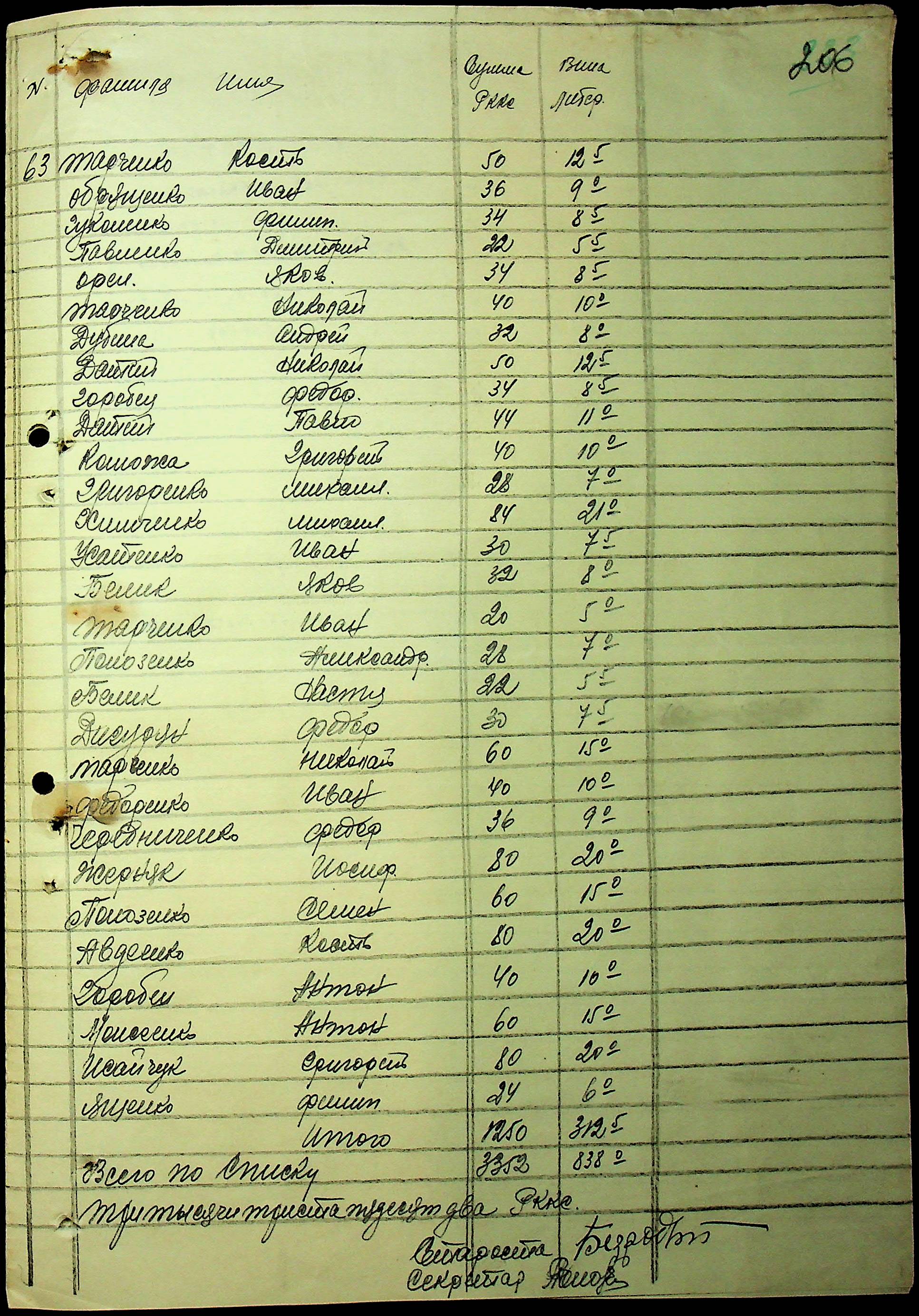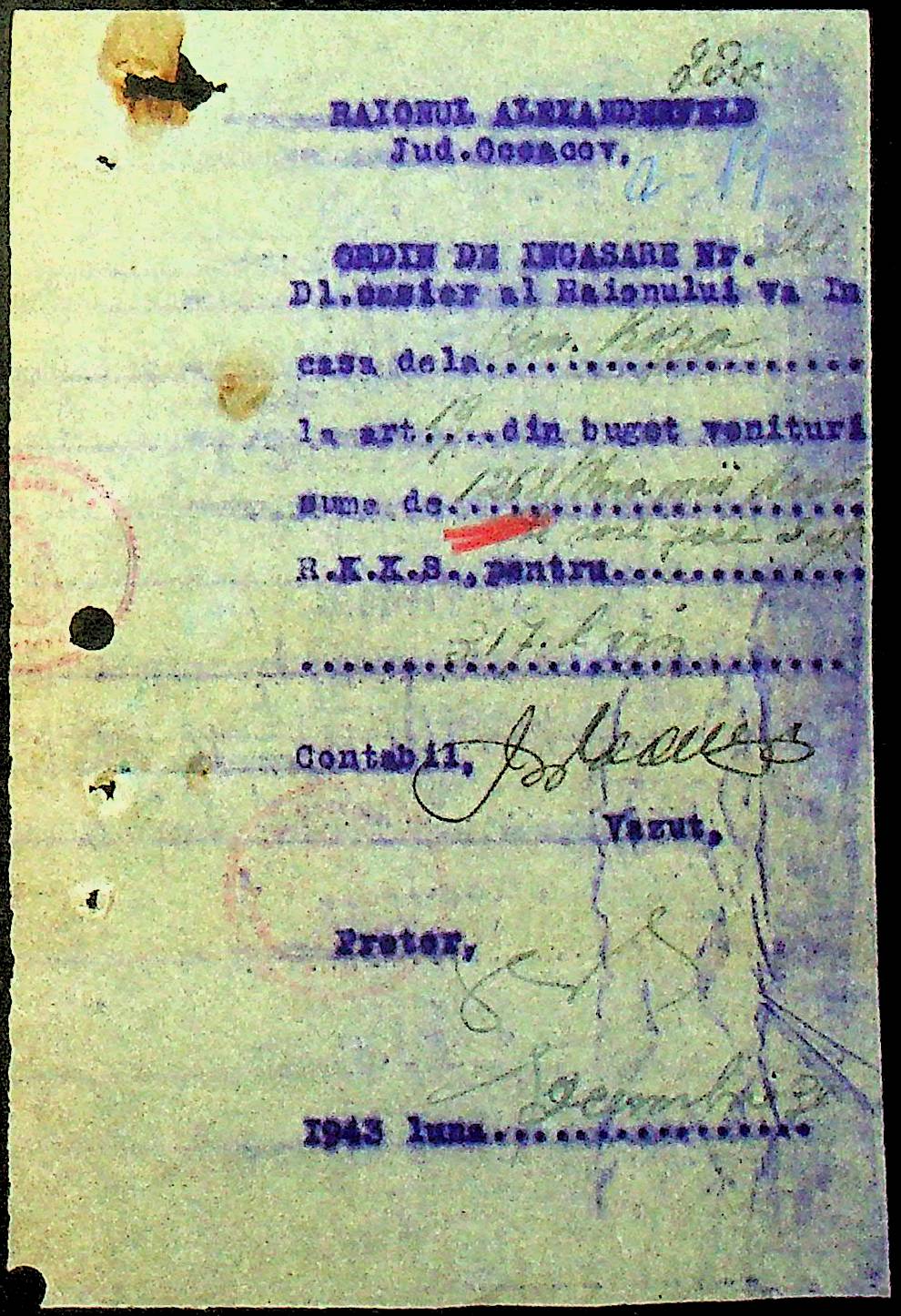 • • • • Справа № 36 “Документи (рапорти, списки службовців примарій, шкіл, працівників МТС, елеваторів, трудових товариств та мешканців сіл району, заяви, відомості про отримання продуктів, зерна, ячменю та грошей, продаж вина, ордери, листування з різних питань) про роботу Александерфельдської претури”