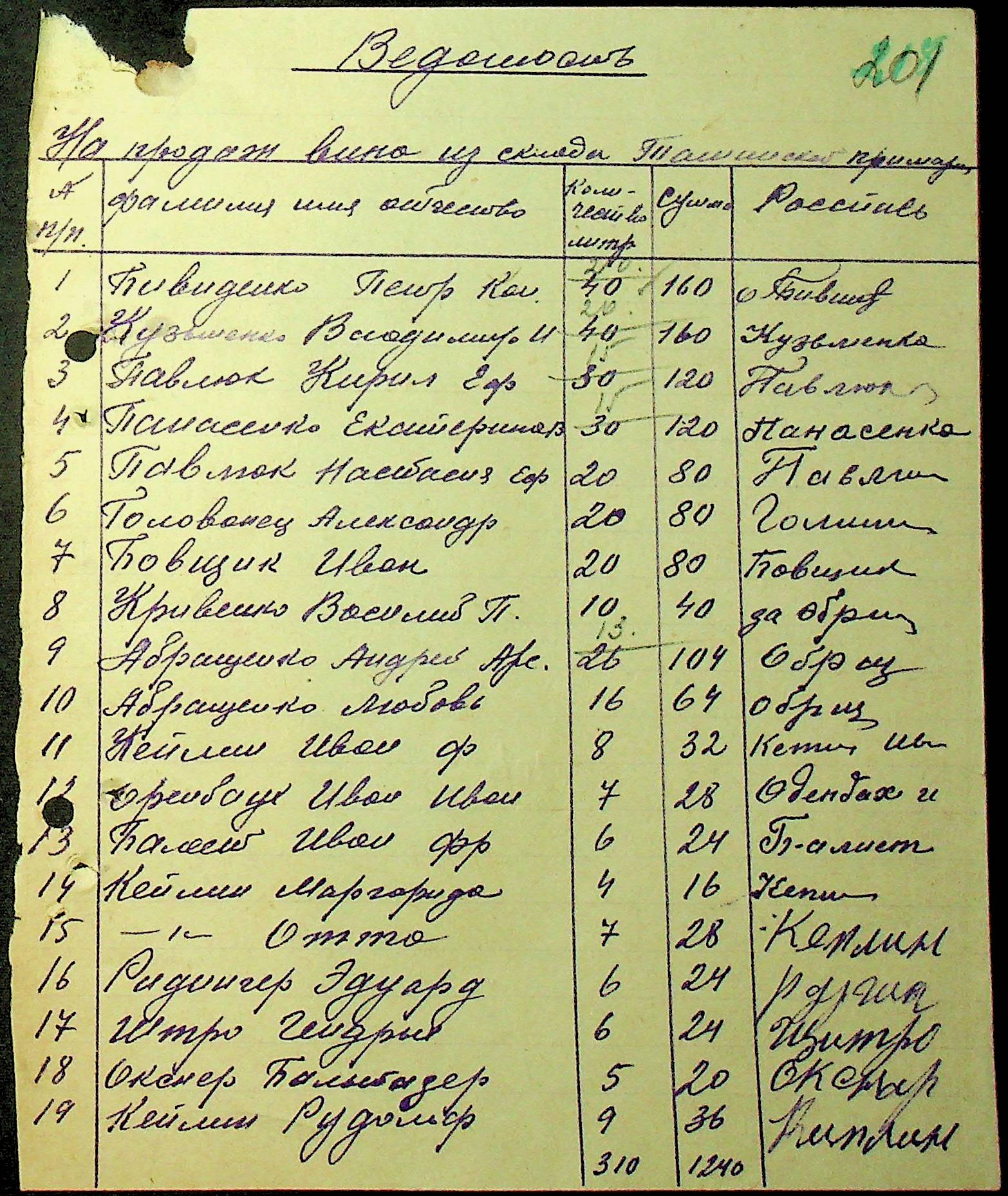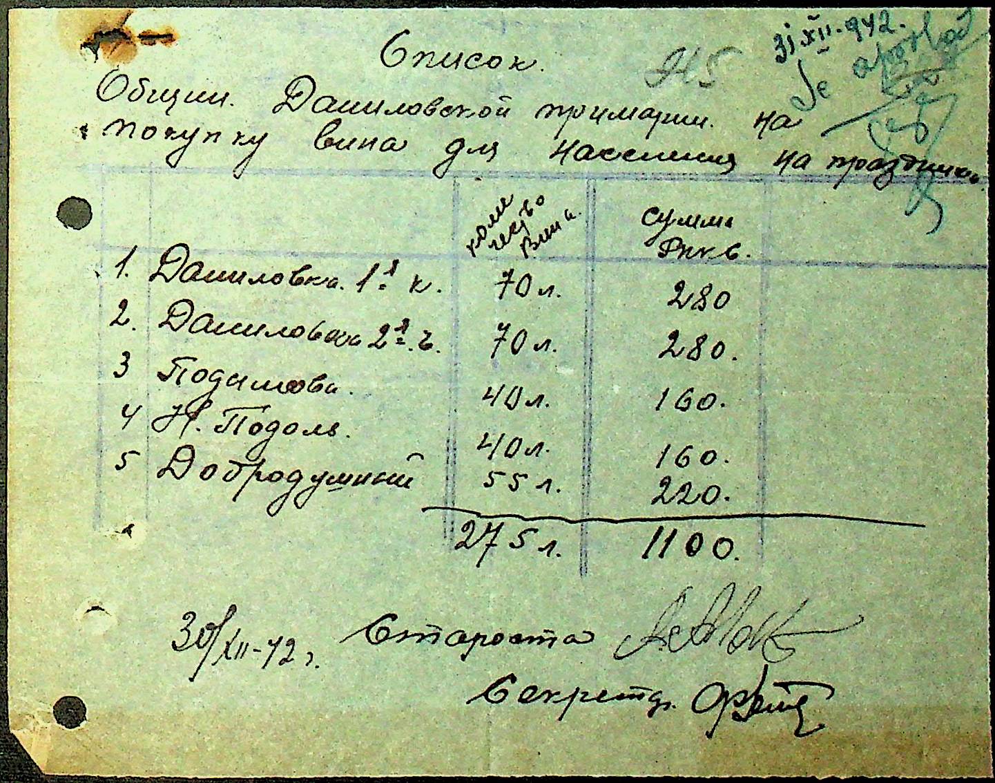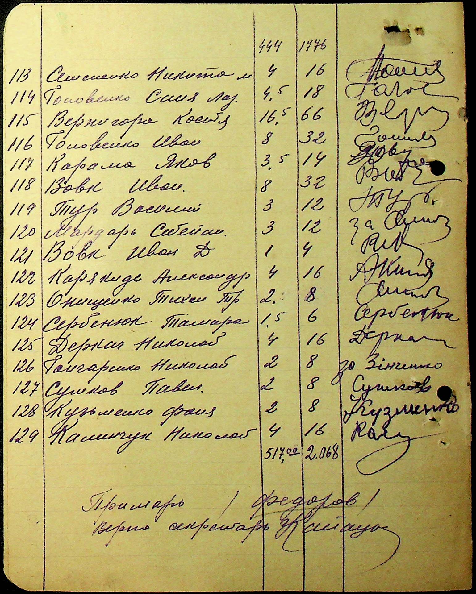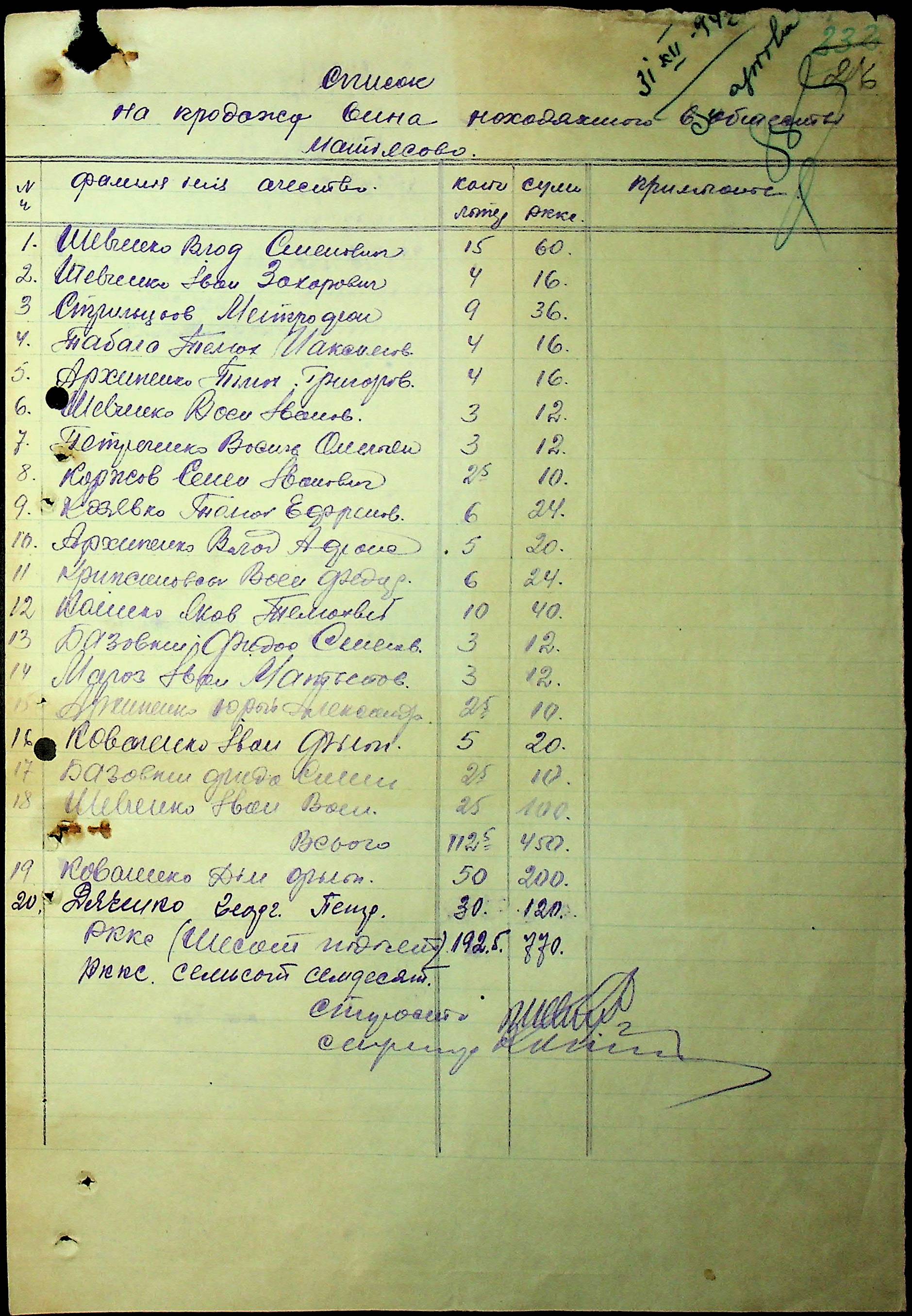 • • • • Справа № 36 “Документи (рапорти, списки службовців примарій, шкіл, працівників МТС, елеваторів, трудових товариств та мешканців сіл району, заяви, відомості про отримання продуктів, зерна, ячменю та грошей, продаж вина, ордери, листування з різних питань) про роботу Александерфельдської претури”