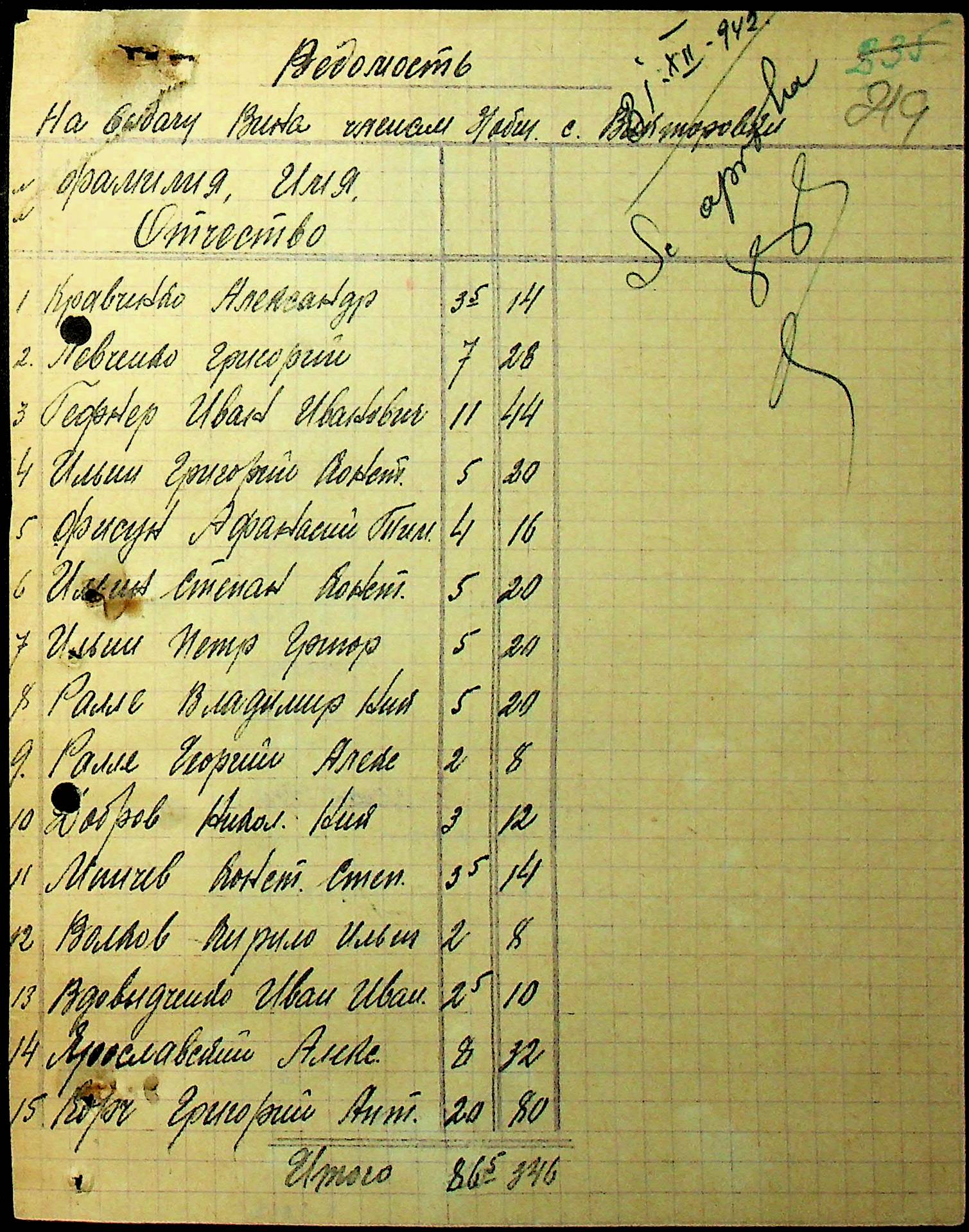 ◦ ◦ ◦ Опис № 5 справ постійного зберігання за 1942–1943 роки