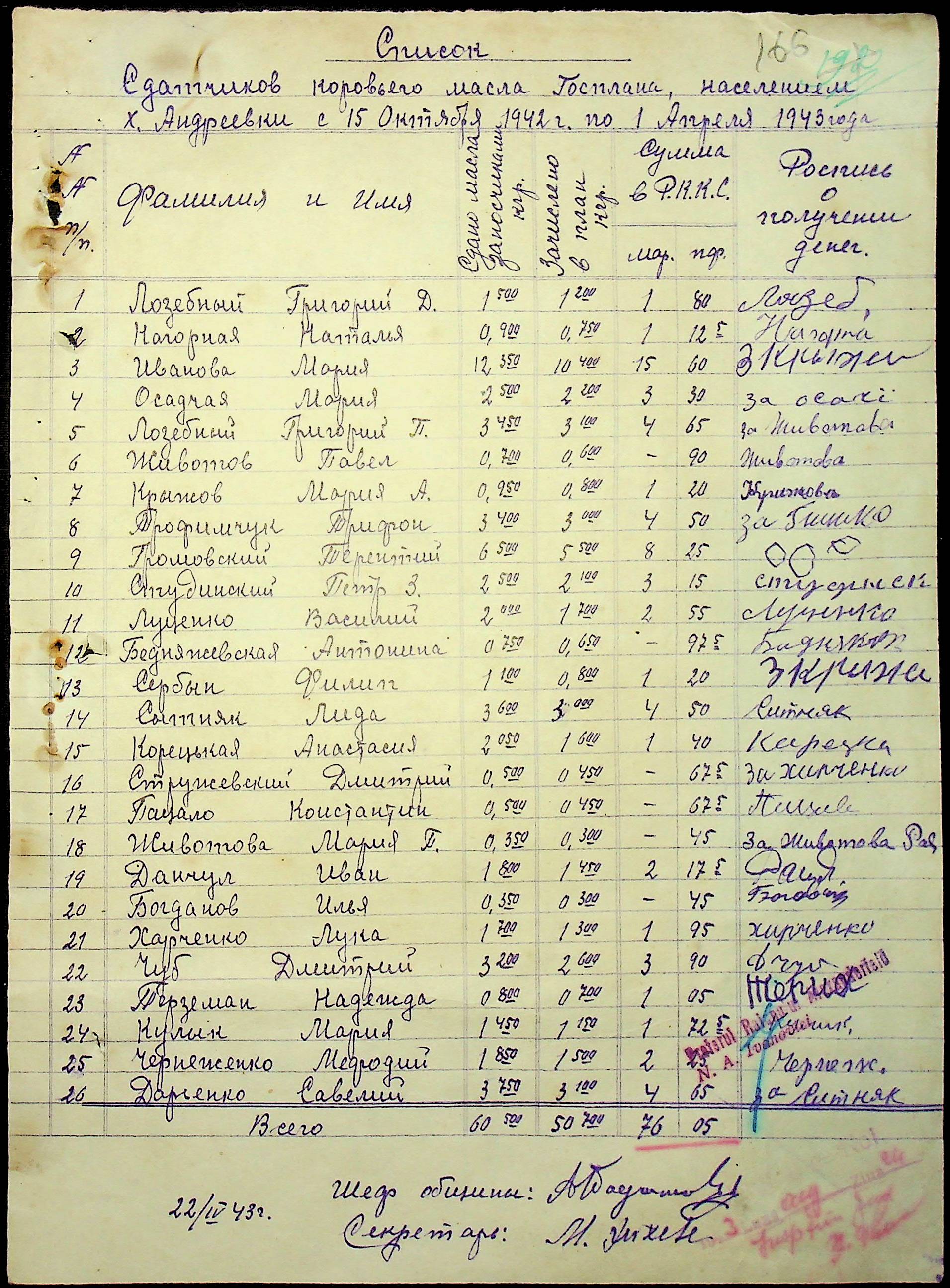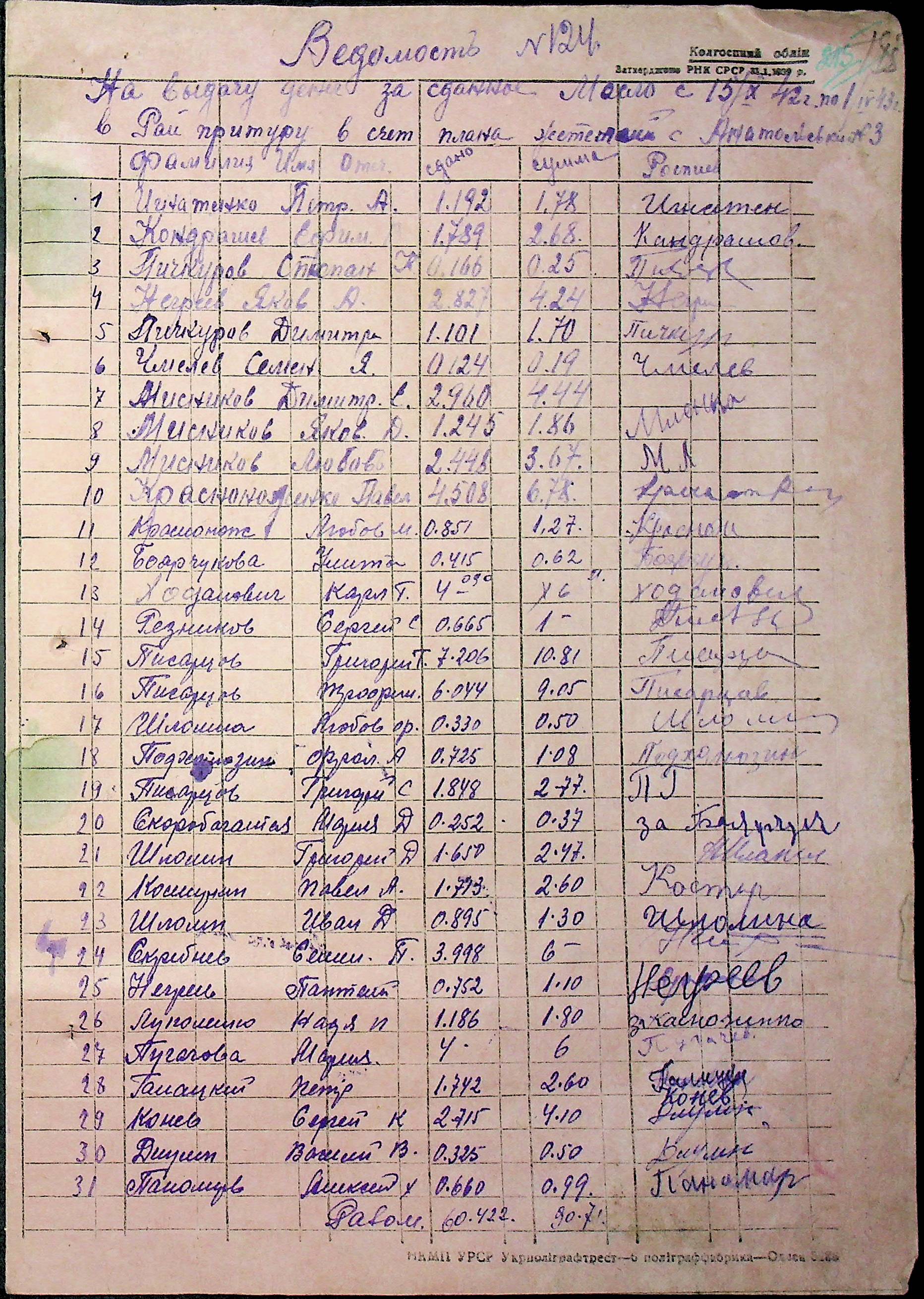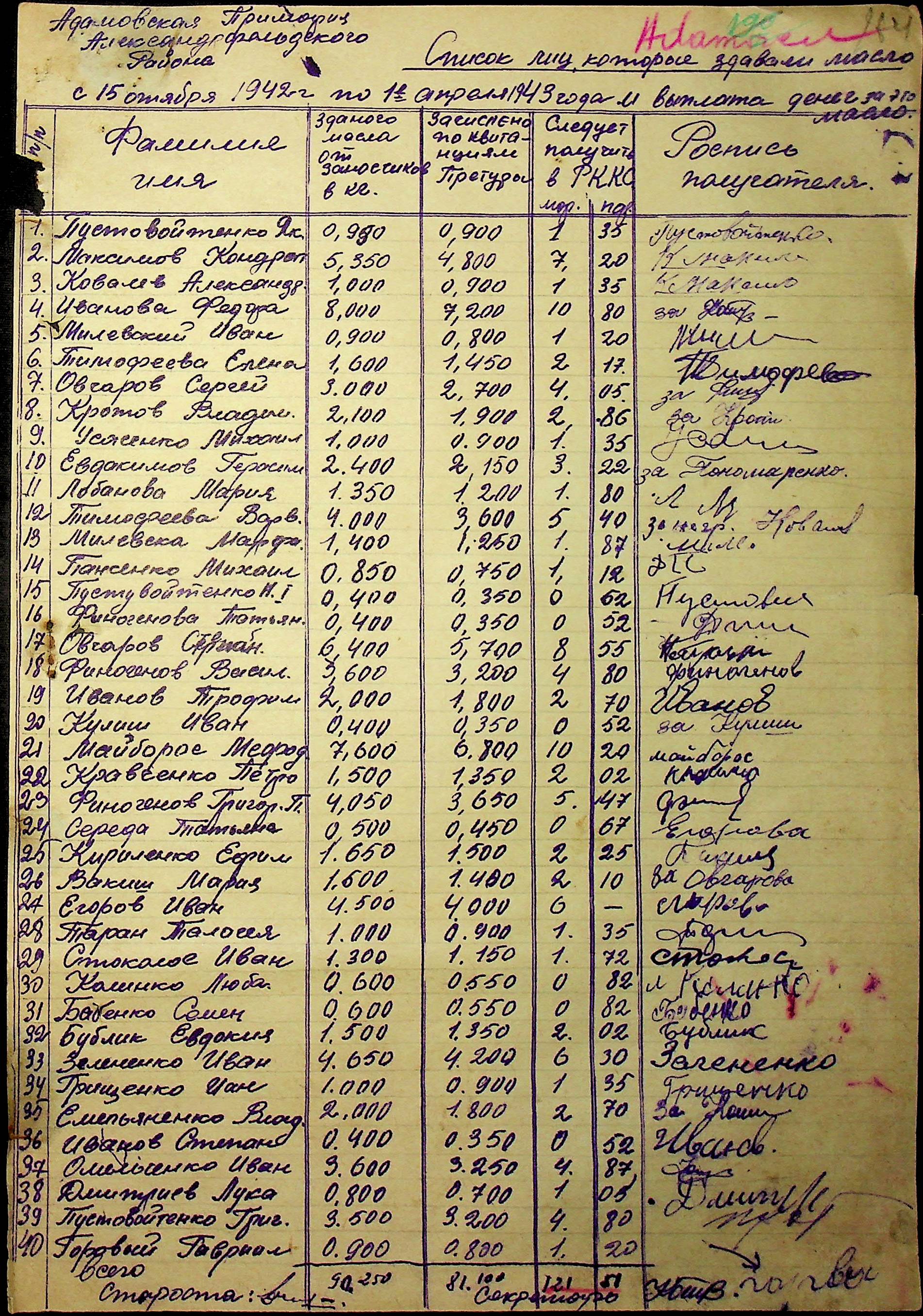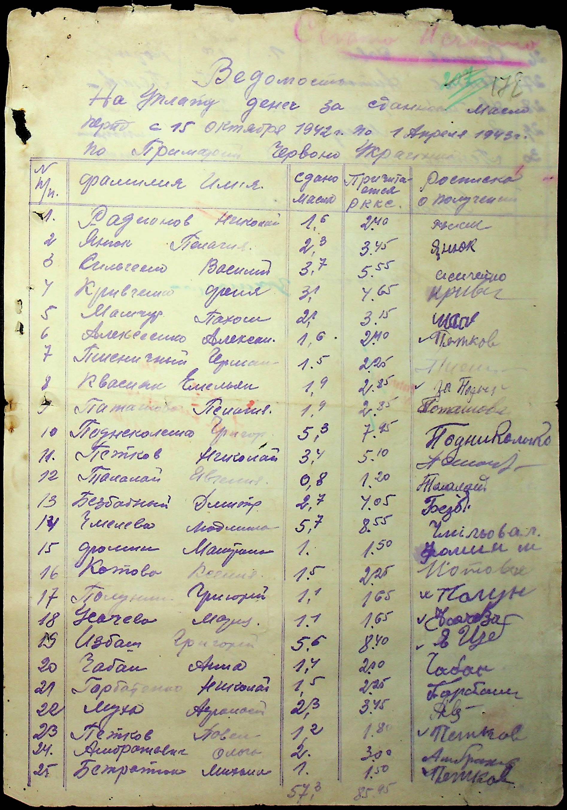 • • • • Справа № 38 “Списки мешканців сіл Новоселівка, Вікторівка та інших – платників податків за 1942 рік”