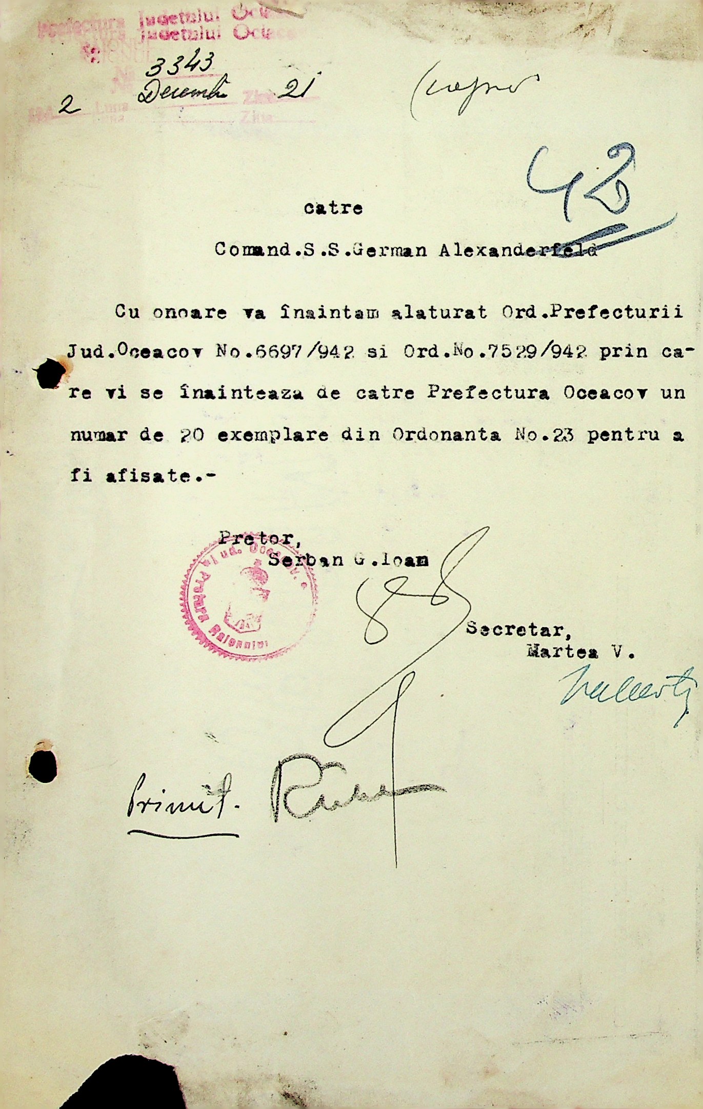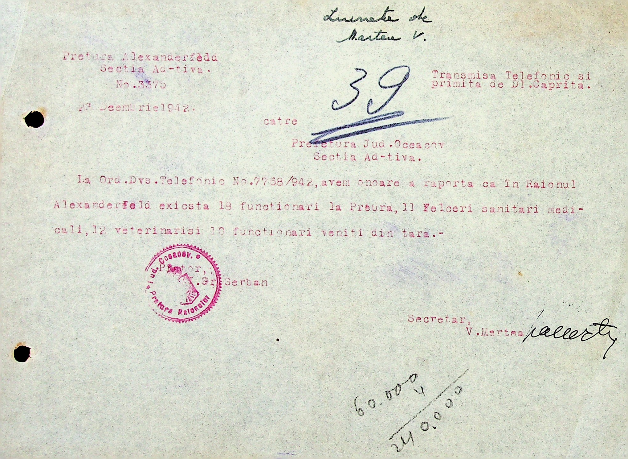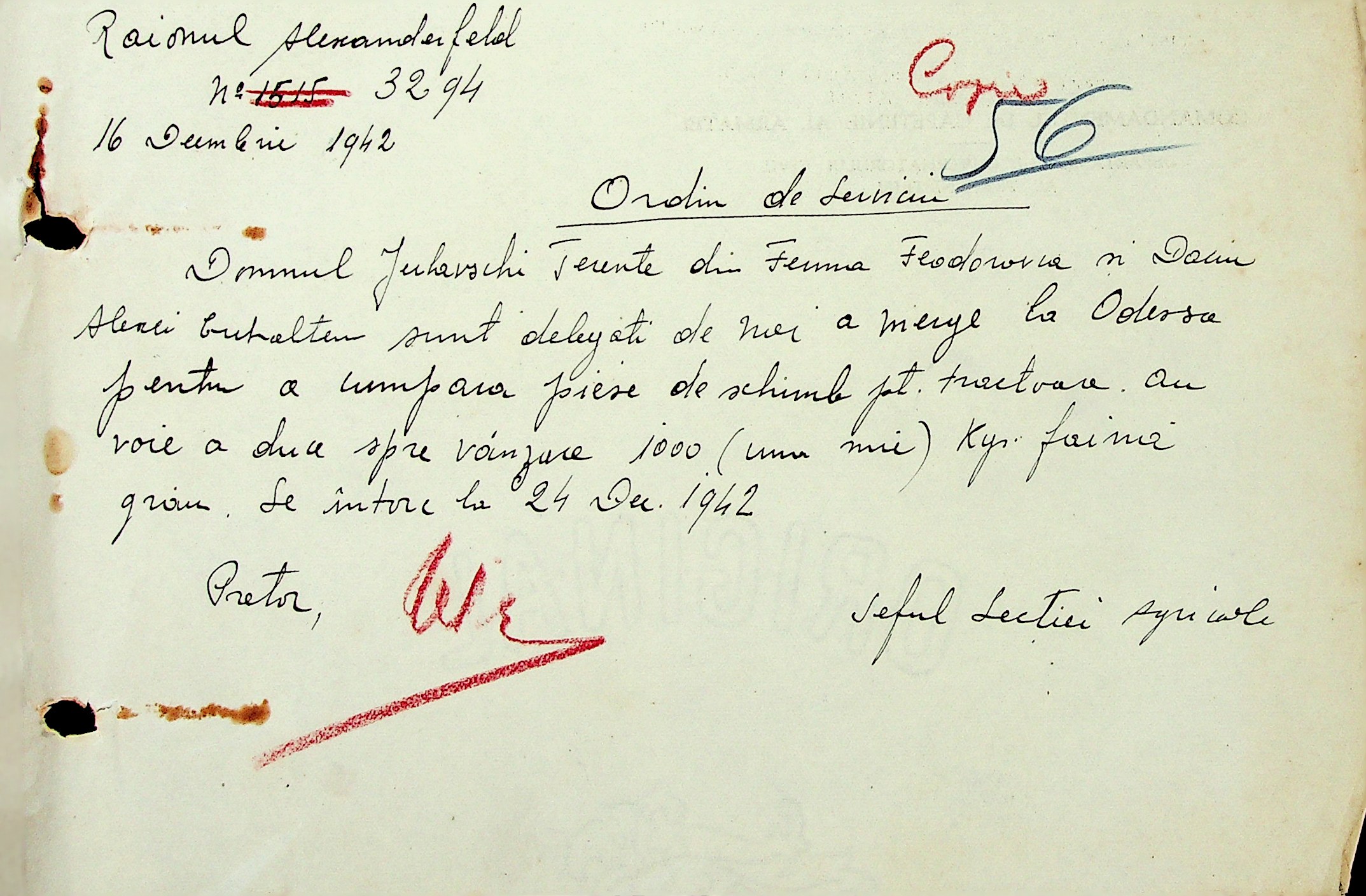 • • • • Справа № 40б “Списки осіб, які отримали медалі «За хрестовий похід проти комунізму». Розпорядження претури Александерфельдського району з адміністративних питань. Посвідчення про відрядження працівників установ району. Відомості про наявність озимої пшениці та жита. Листування з претором Александерфельдського району з різних питань. Табеля виходу на роботу. Том 3”