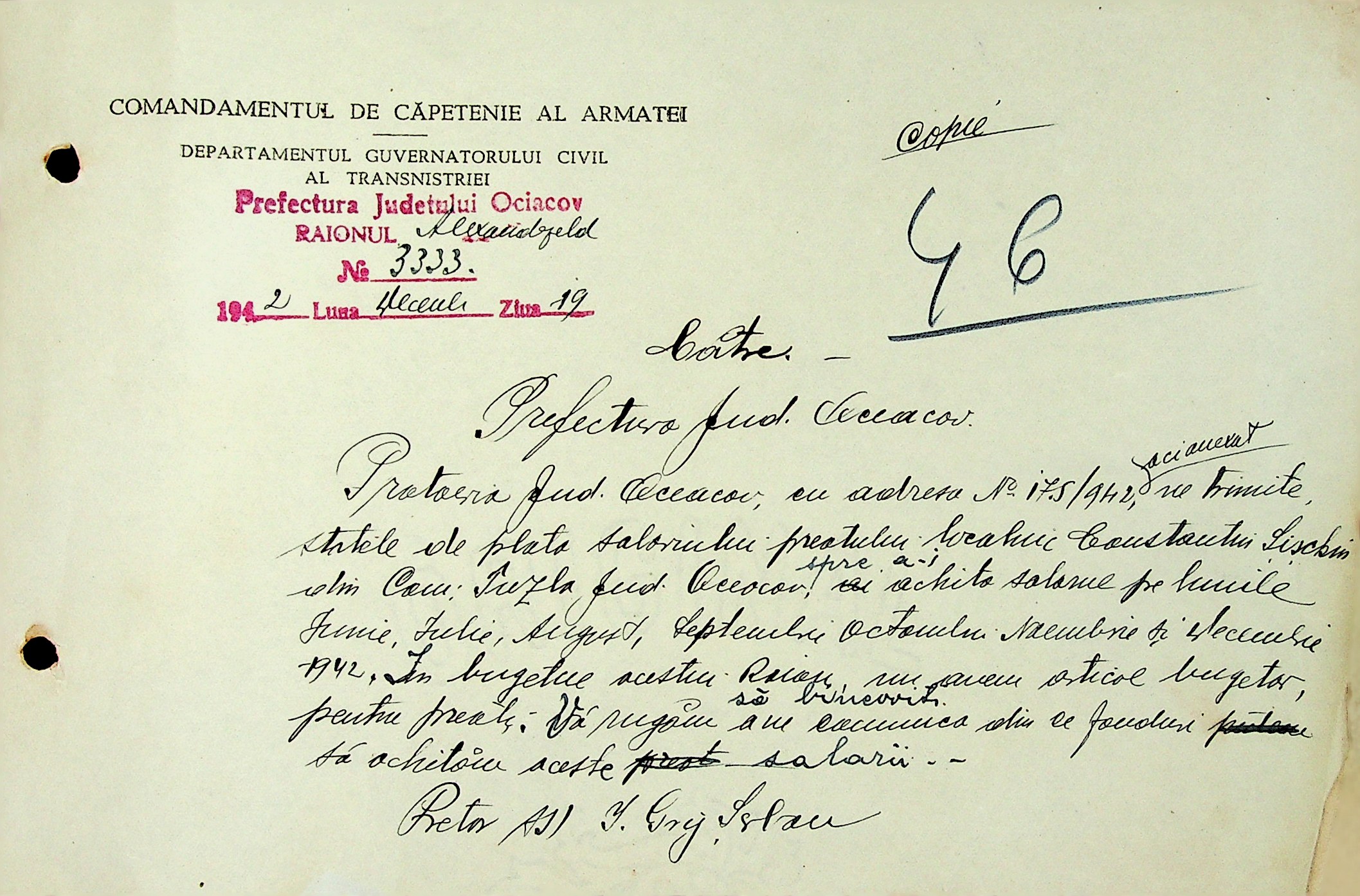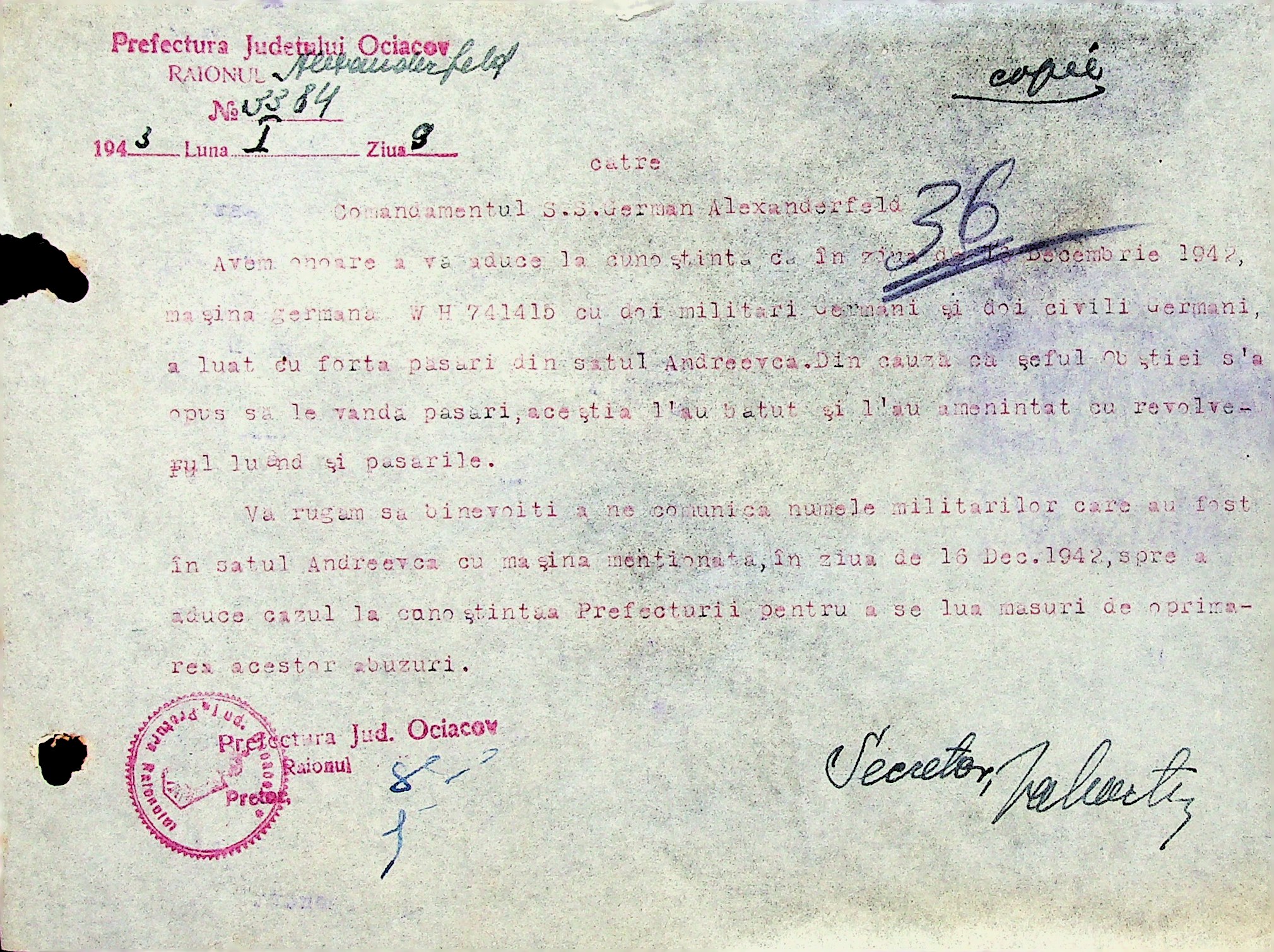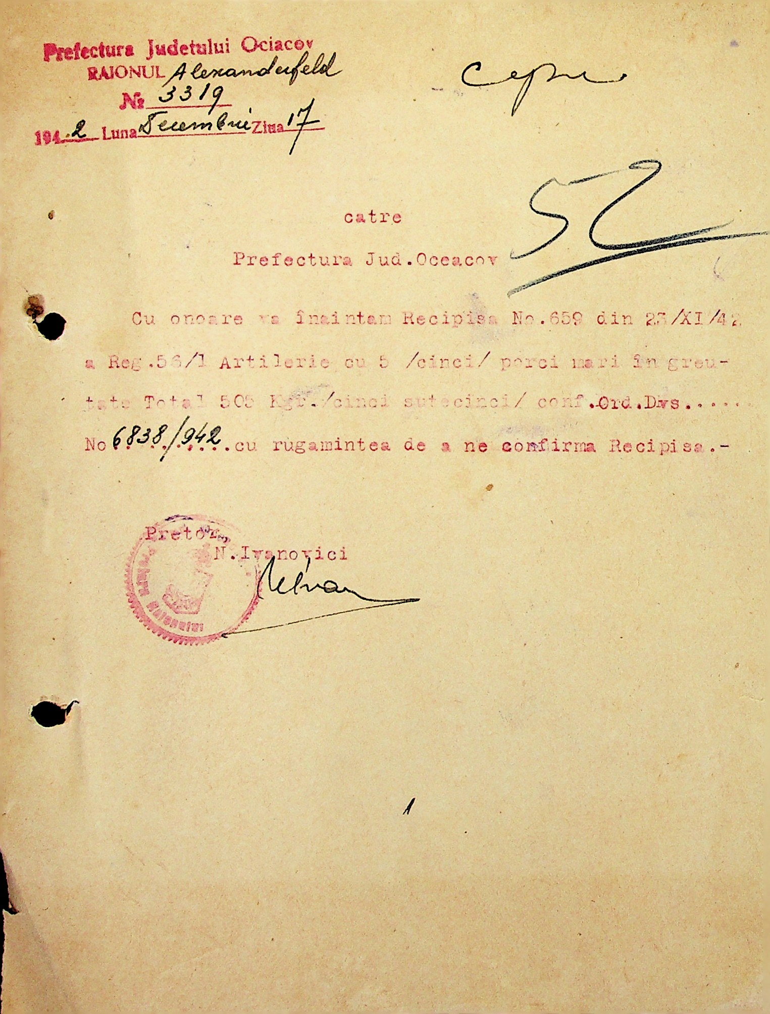 • • • • Справа № 40б “Списки осіб, які отримали медалі «За хрестовий похід проти комунізму». Розпорядження претури Александерфельдського району з адміністративних питань. Посвідчення про відрядження працівників установ району. Відомості про наявність озимої пшениці та жита. Листування з претором Александерфельдського району з різних питань. Табеля виходу на роботу. Том 3”