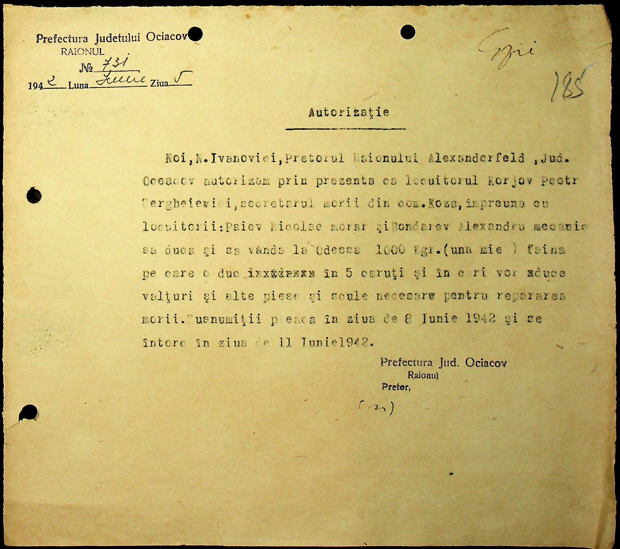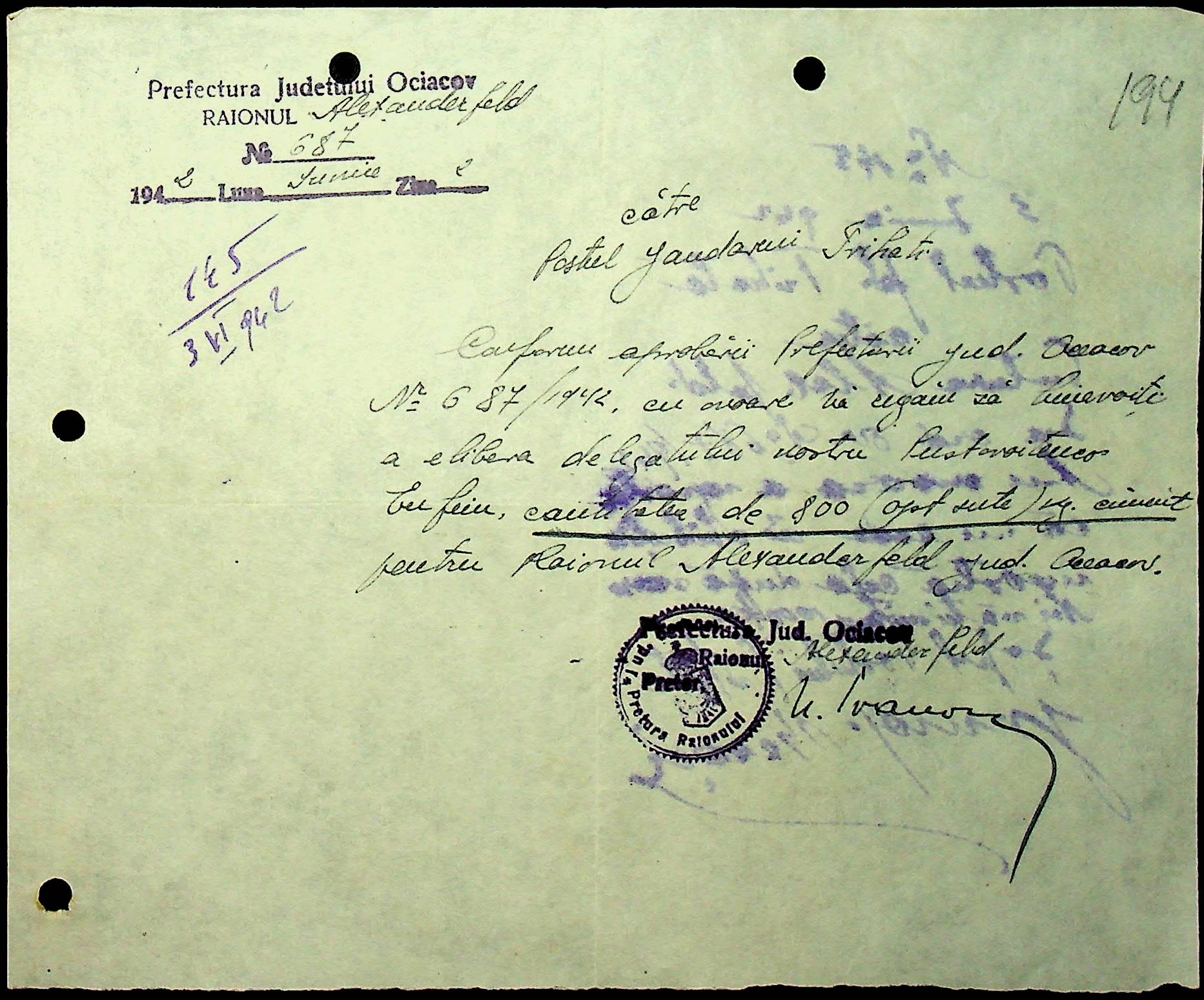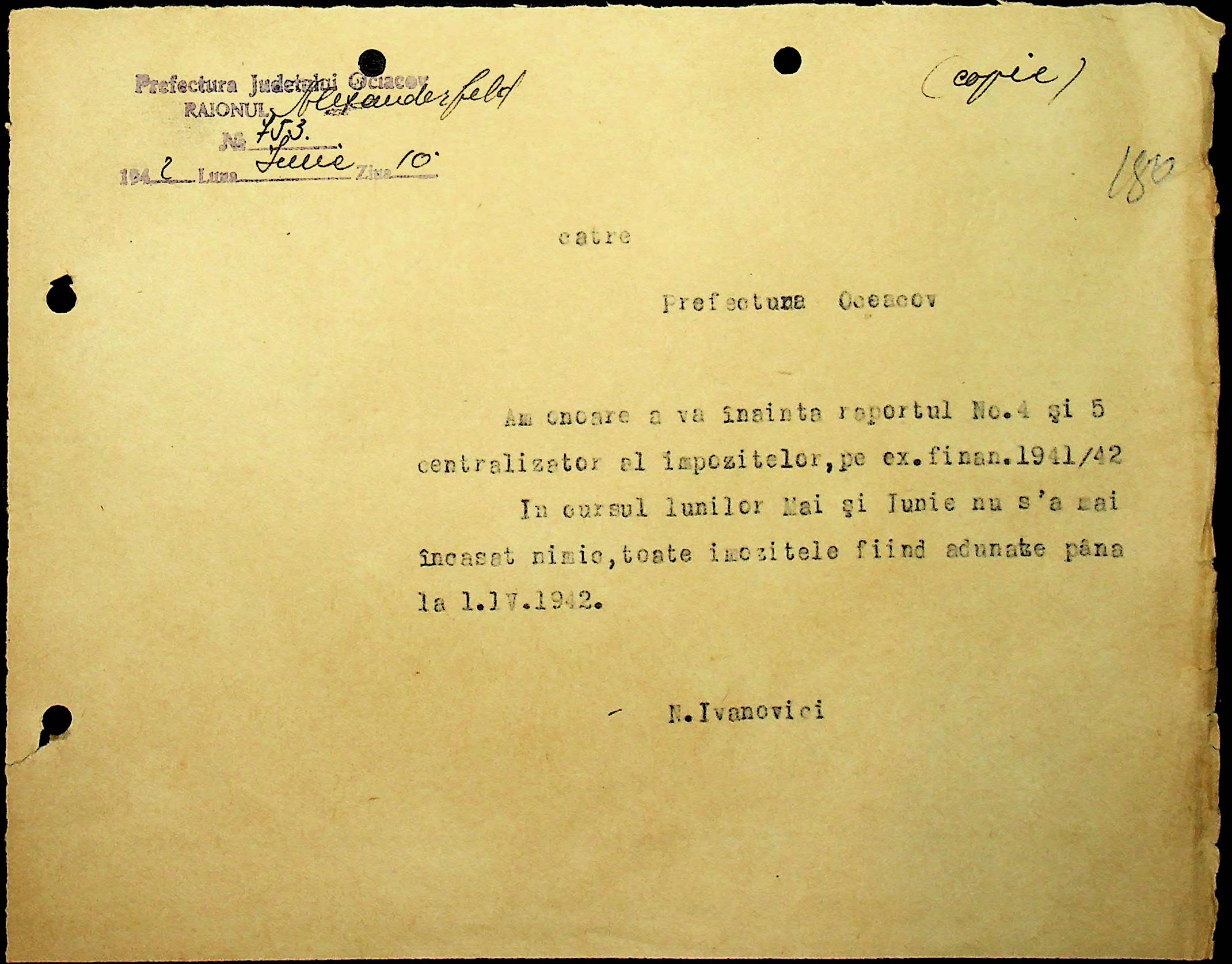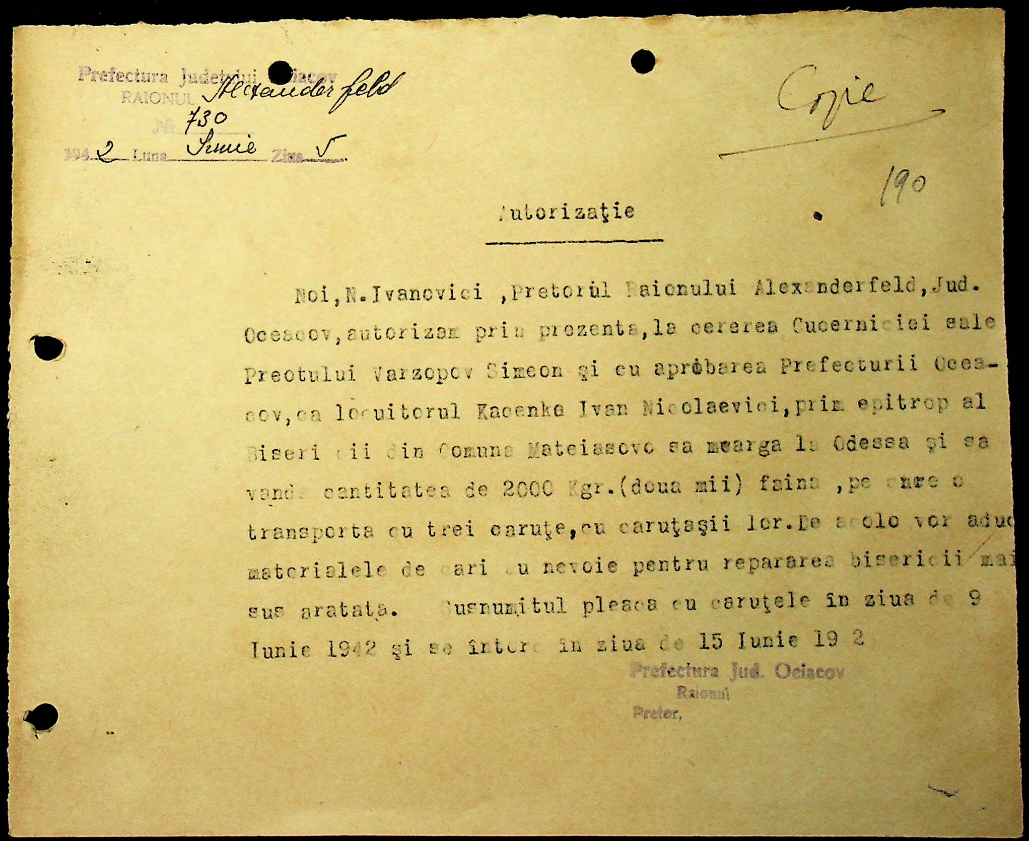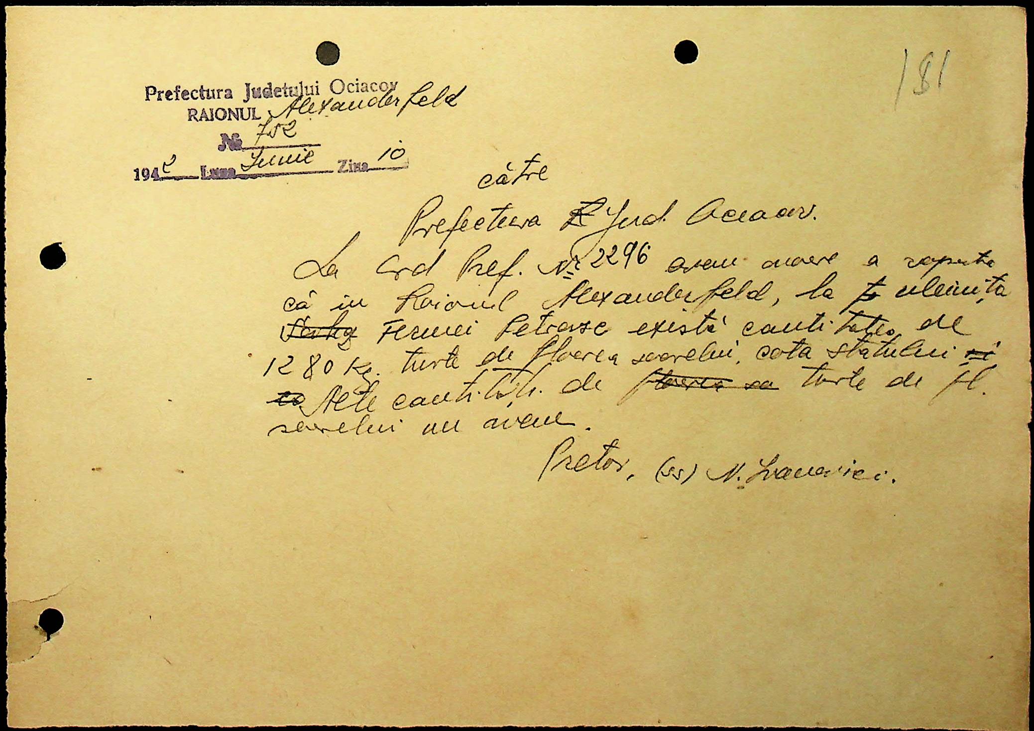 • • • • Справа № 40 “Списки осіб, які отримали медалі «За хрестовий похід проти комунізму». Розпорядження претури Александерфельдського району з адміністративних питань. Посвідчення про відрядження працівників установ району. Відомості про наявність озимої пшениці та жита. Листування з претором Александерфельдського району з різних питань. Табеля виходу на роботу. Том 1”