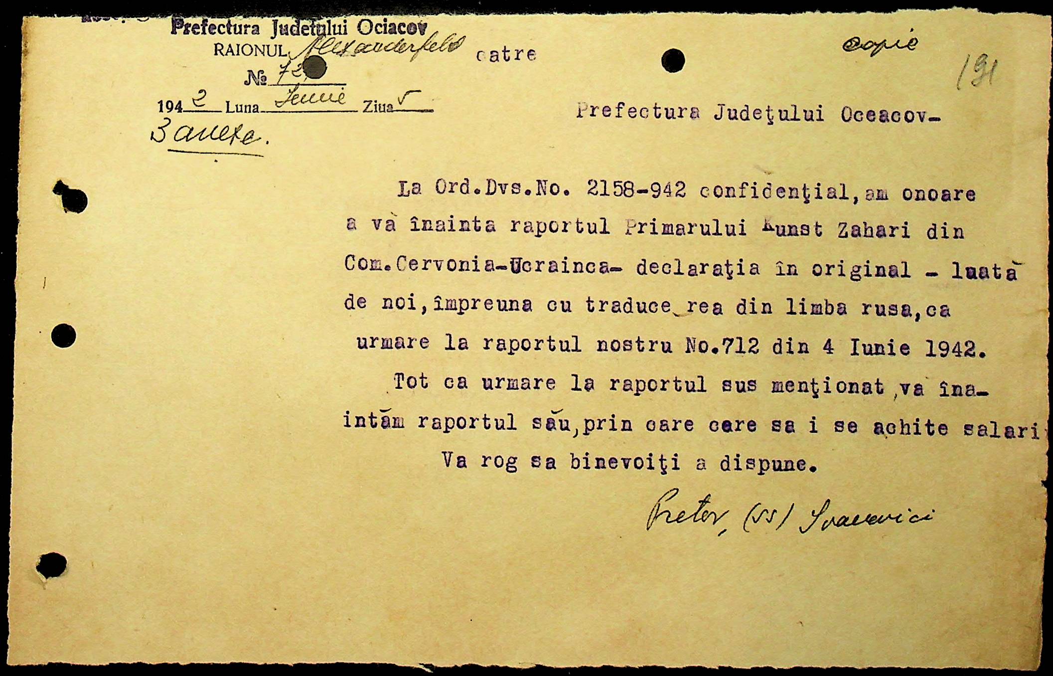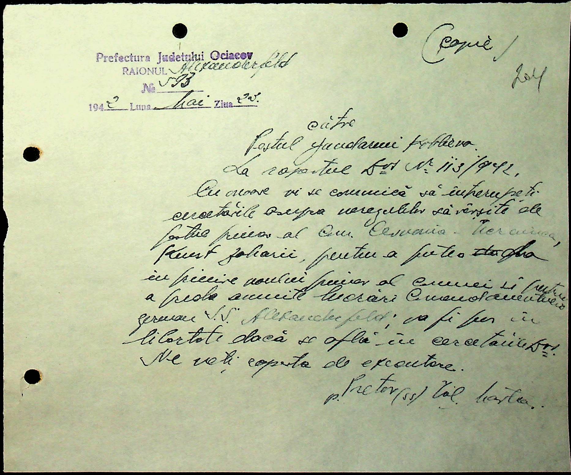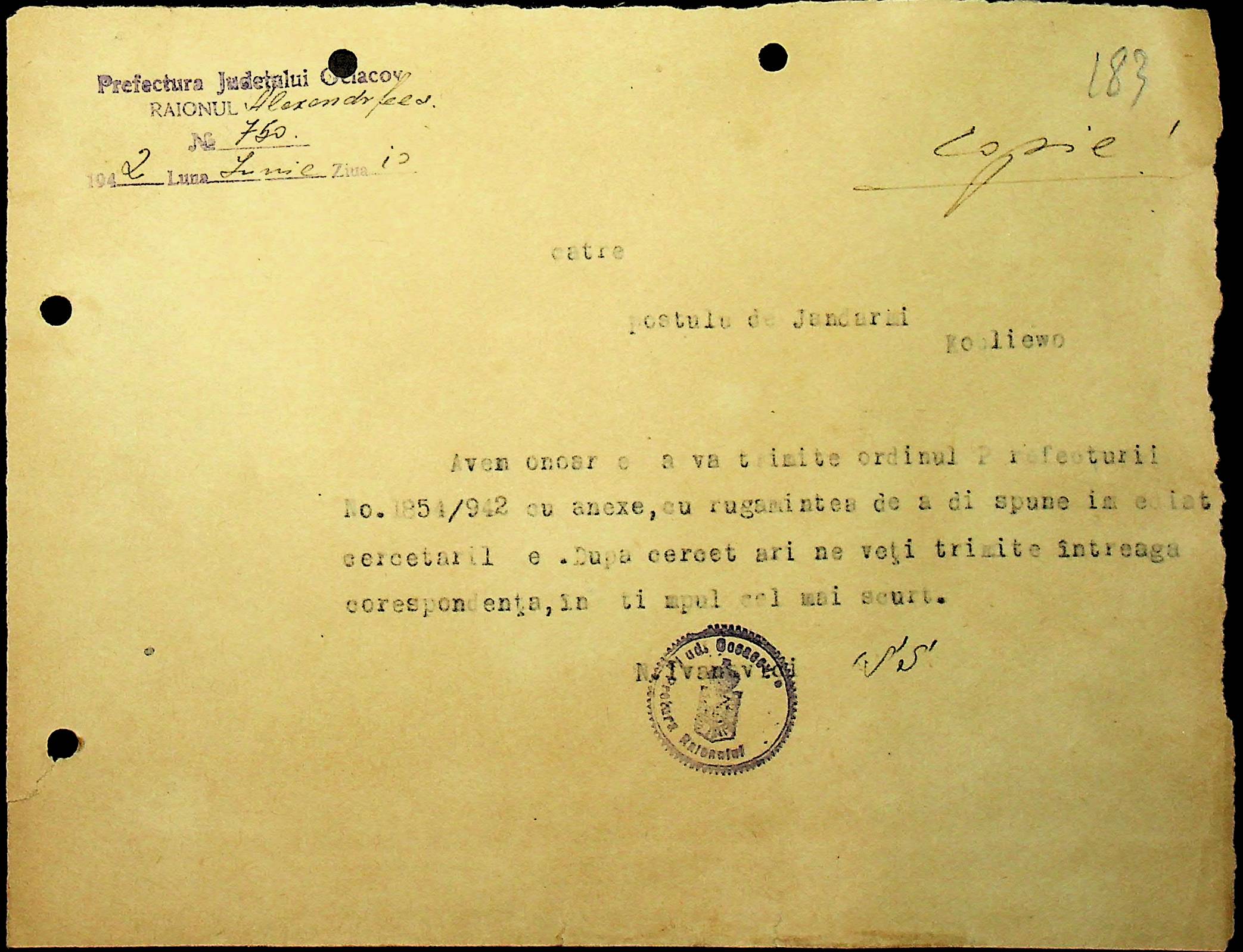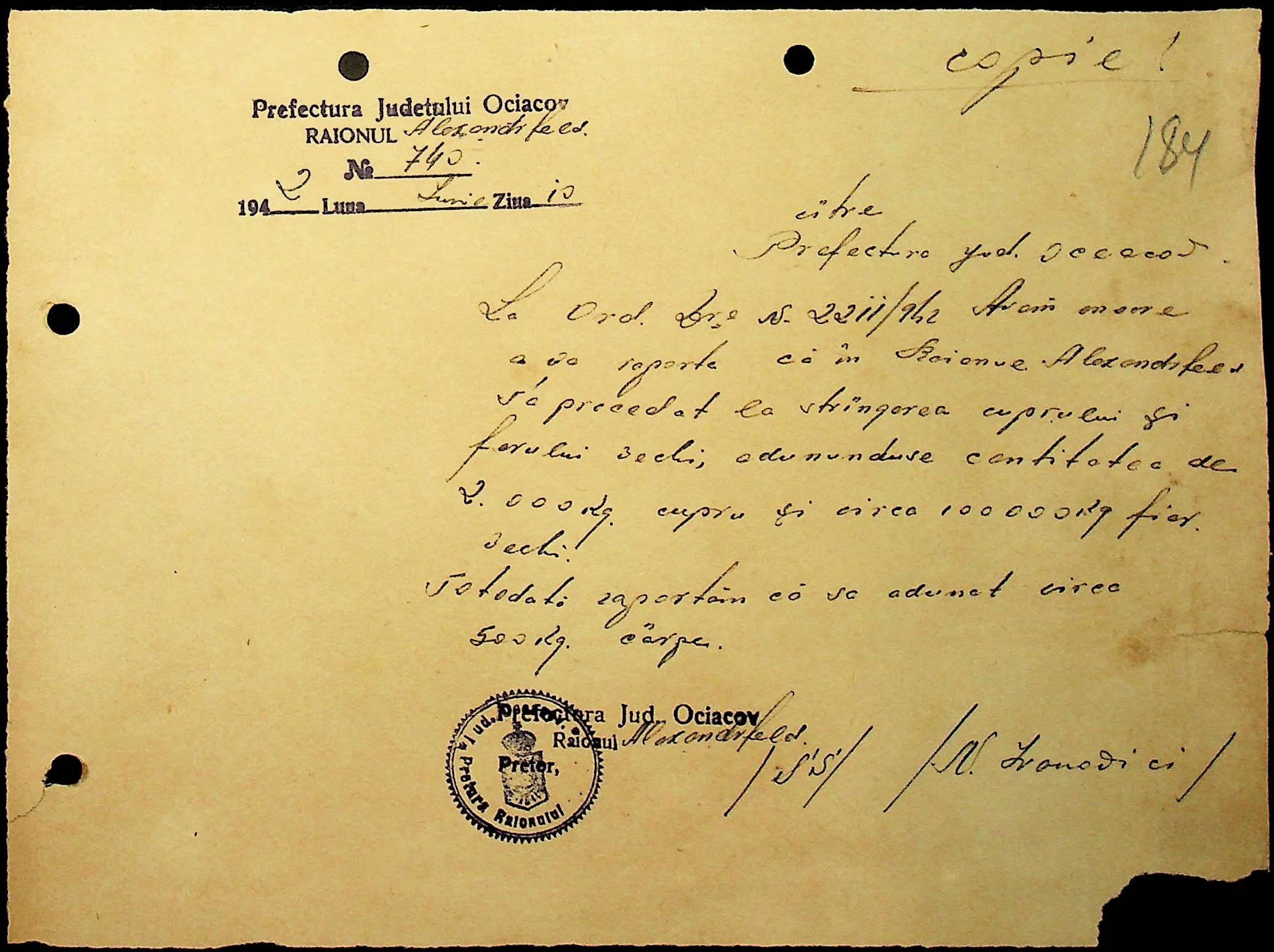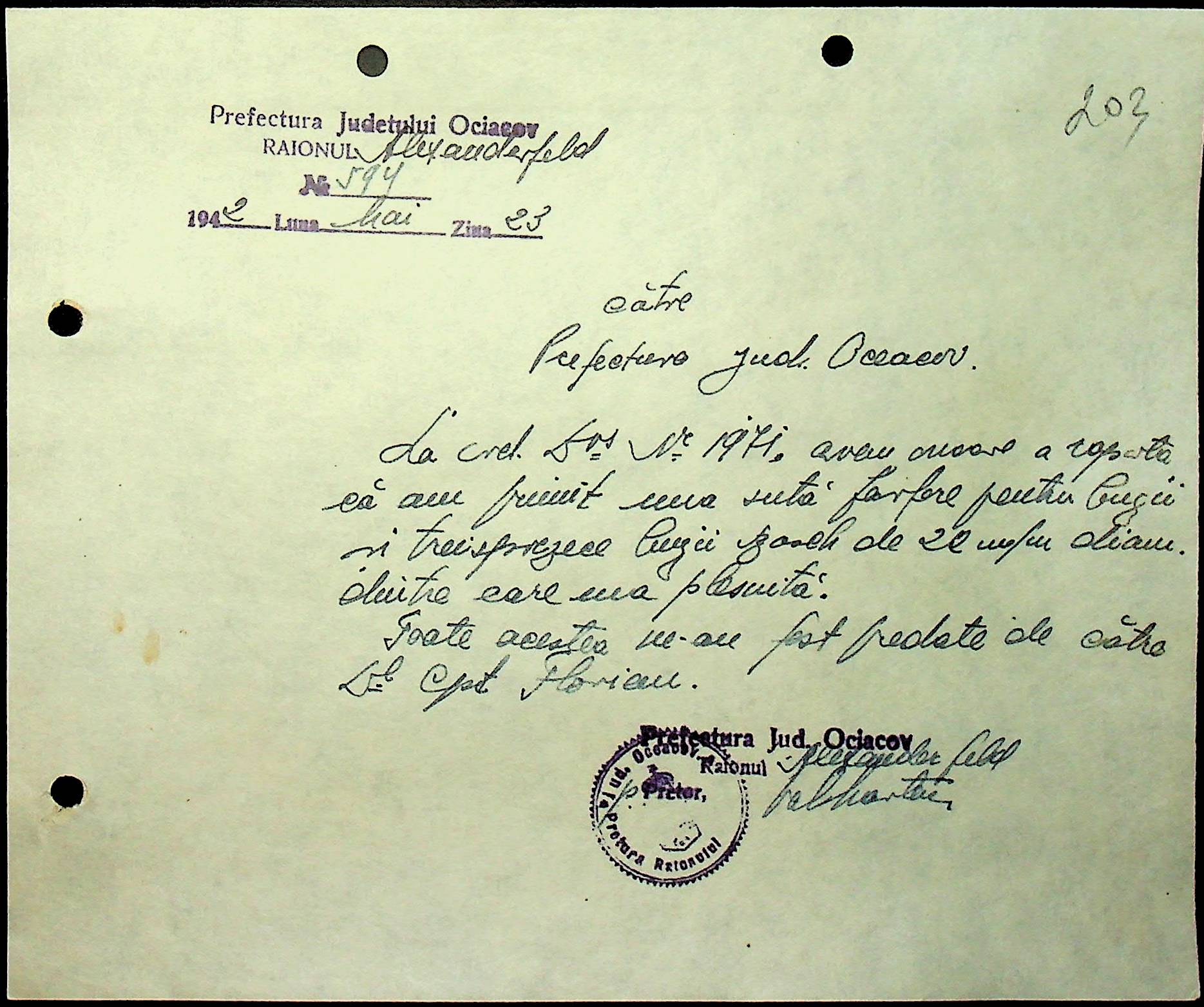 • • • • Справа № 40 “Списки осіб, які отримали медалі «За хрестовий похід проти комунізму». Розпорядження претури Александерфельдського району з адміністративних питань. Посвідчення про відрядження працівників установ району. Відомості про наявність озимої пшениці та жита. Листування з претором Александерфельдського району з різних питань. Табеля виходу на роботу. Том 1”