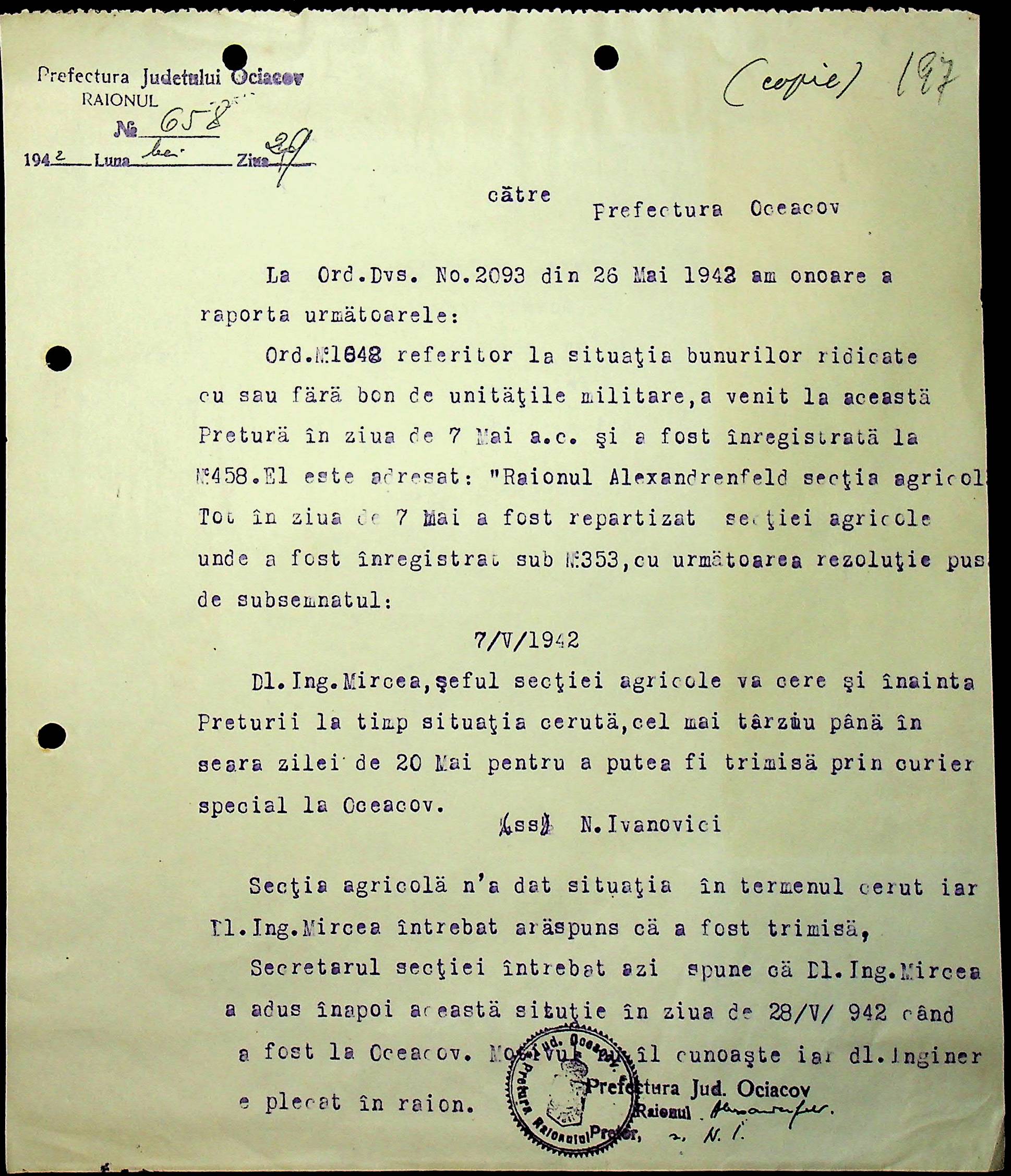◦ ◦ Фонд № Н-1588 “Претура Александерфельдського району Очаківського повіту”