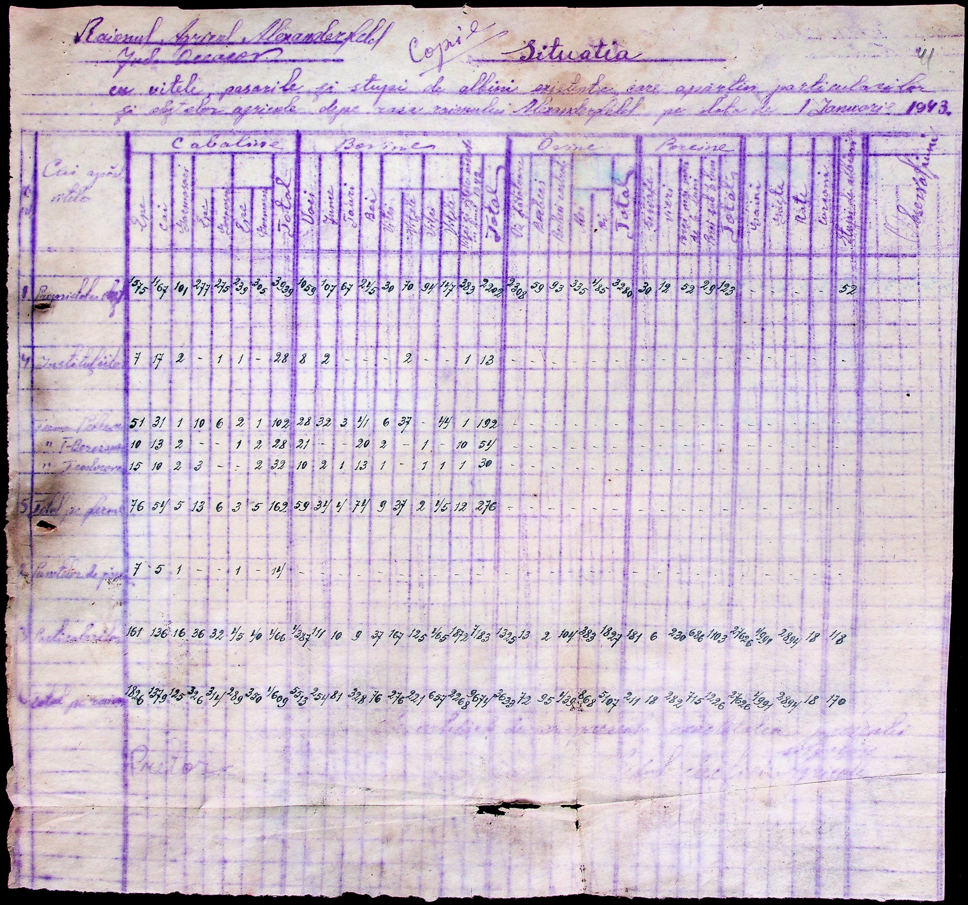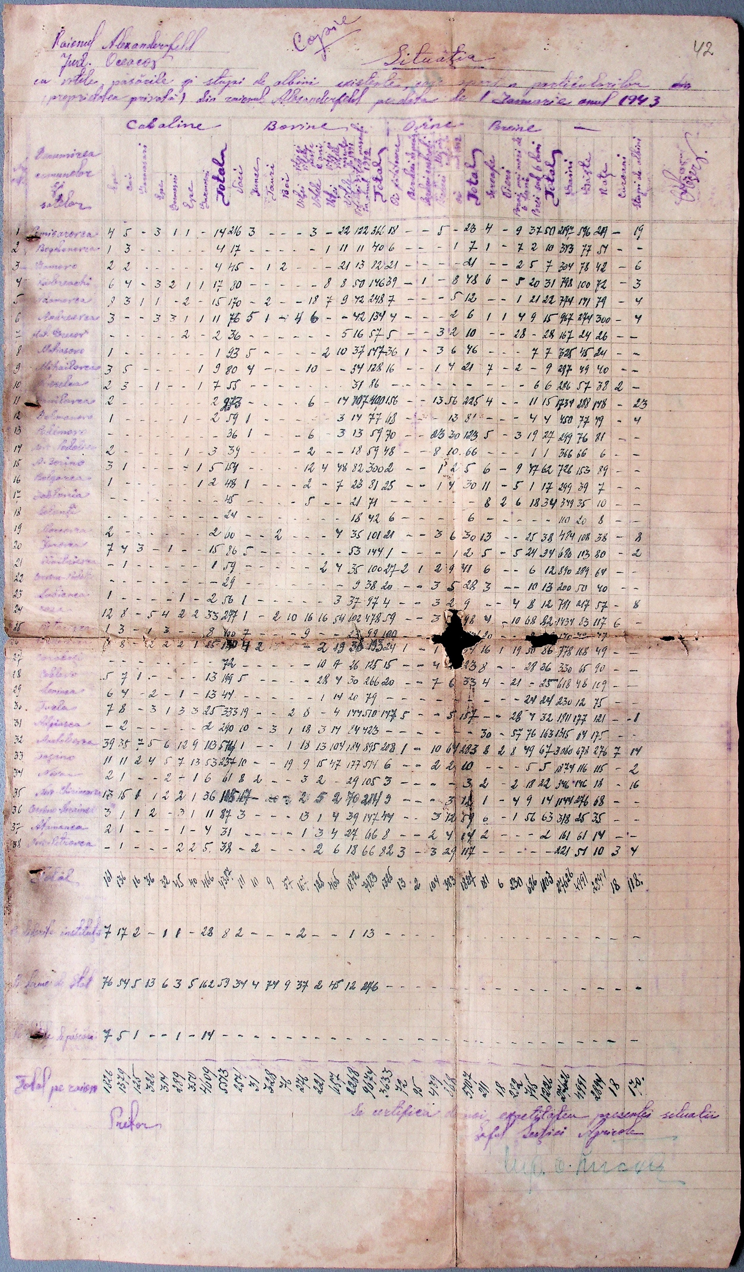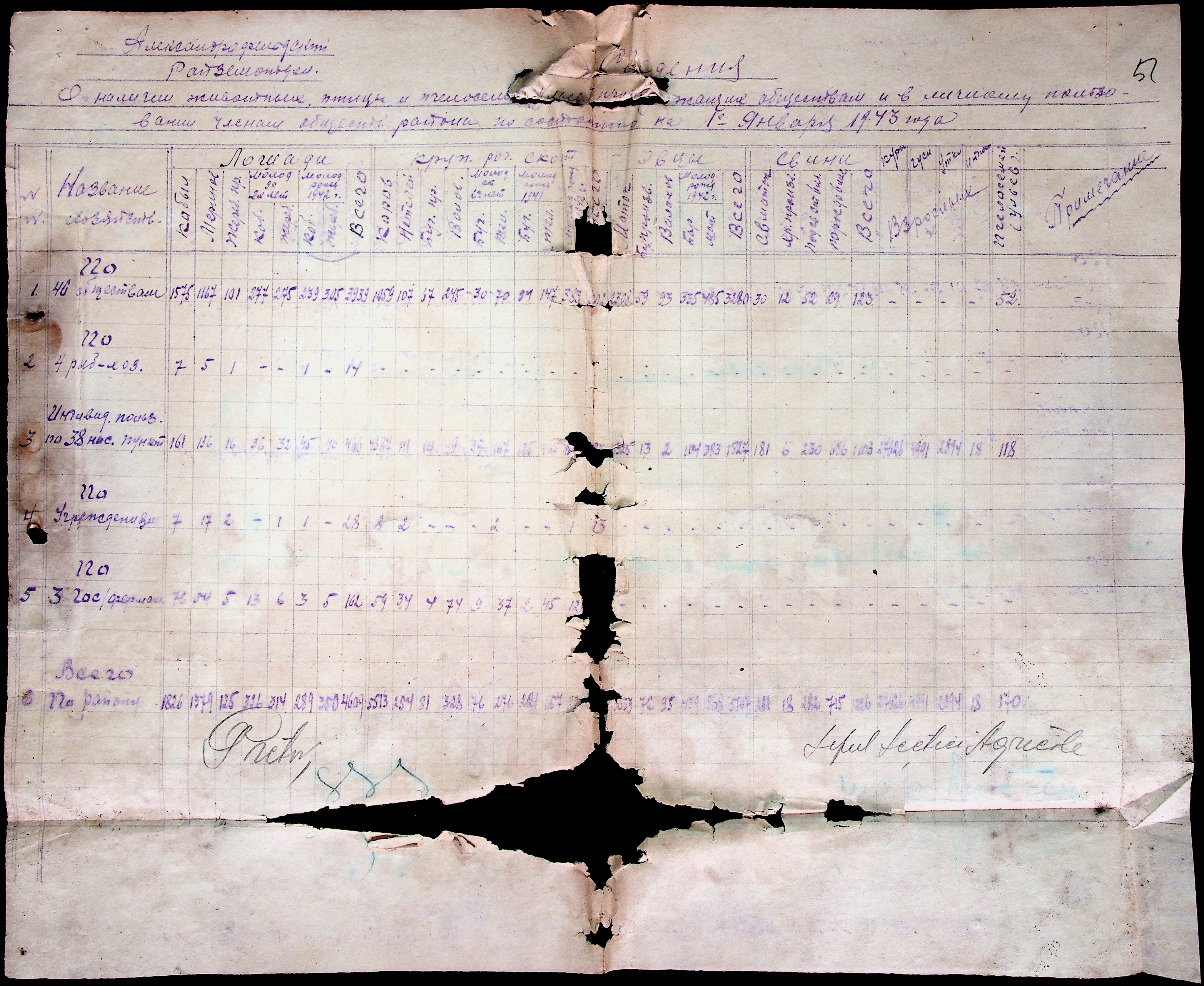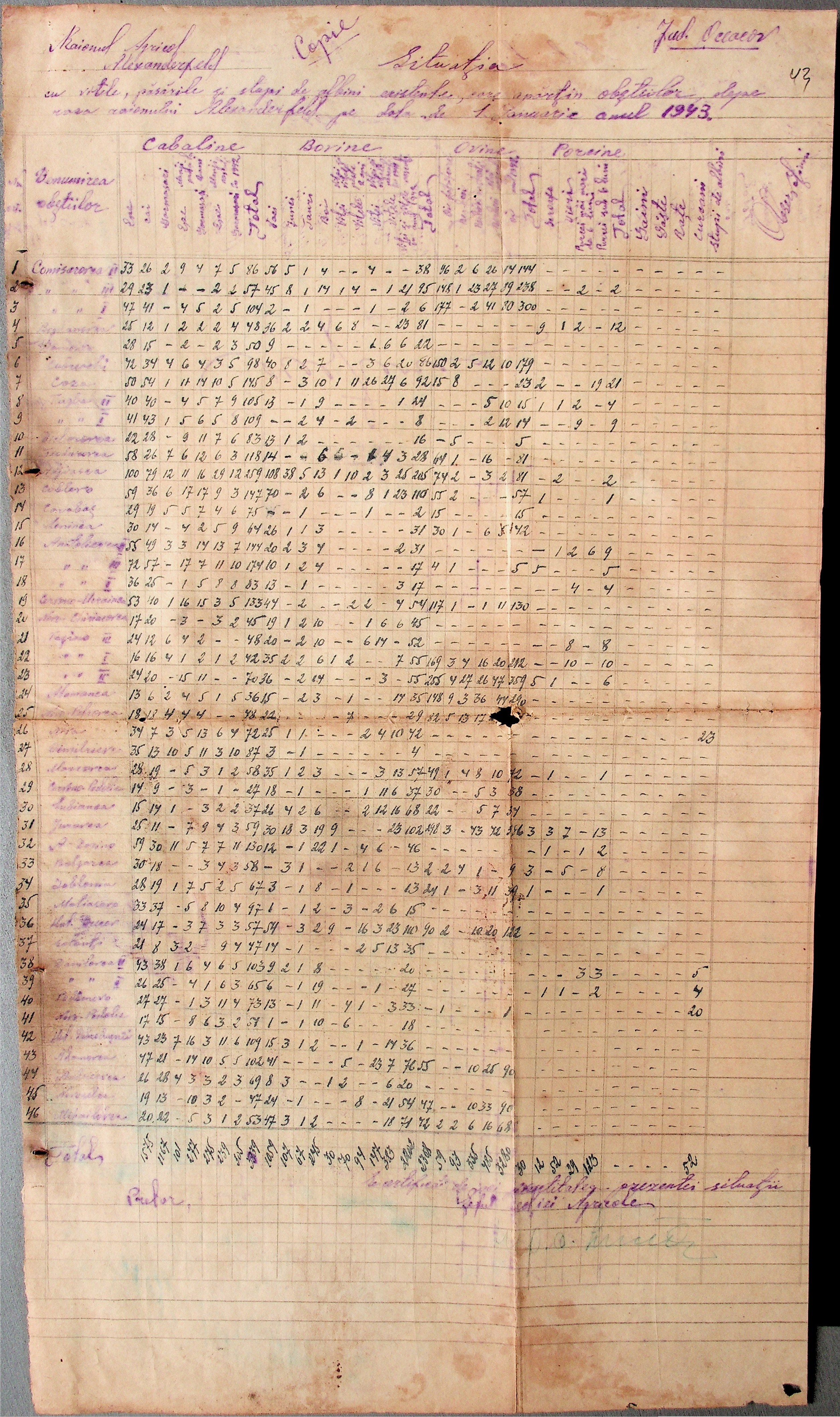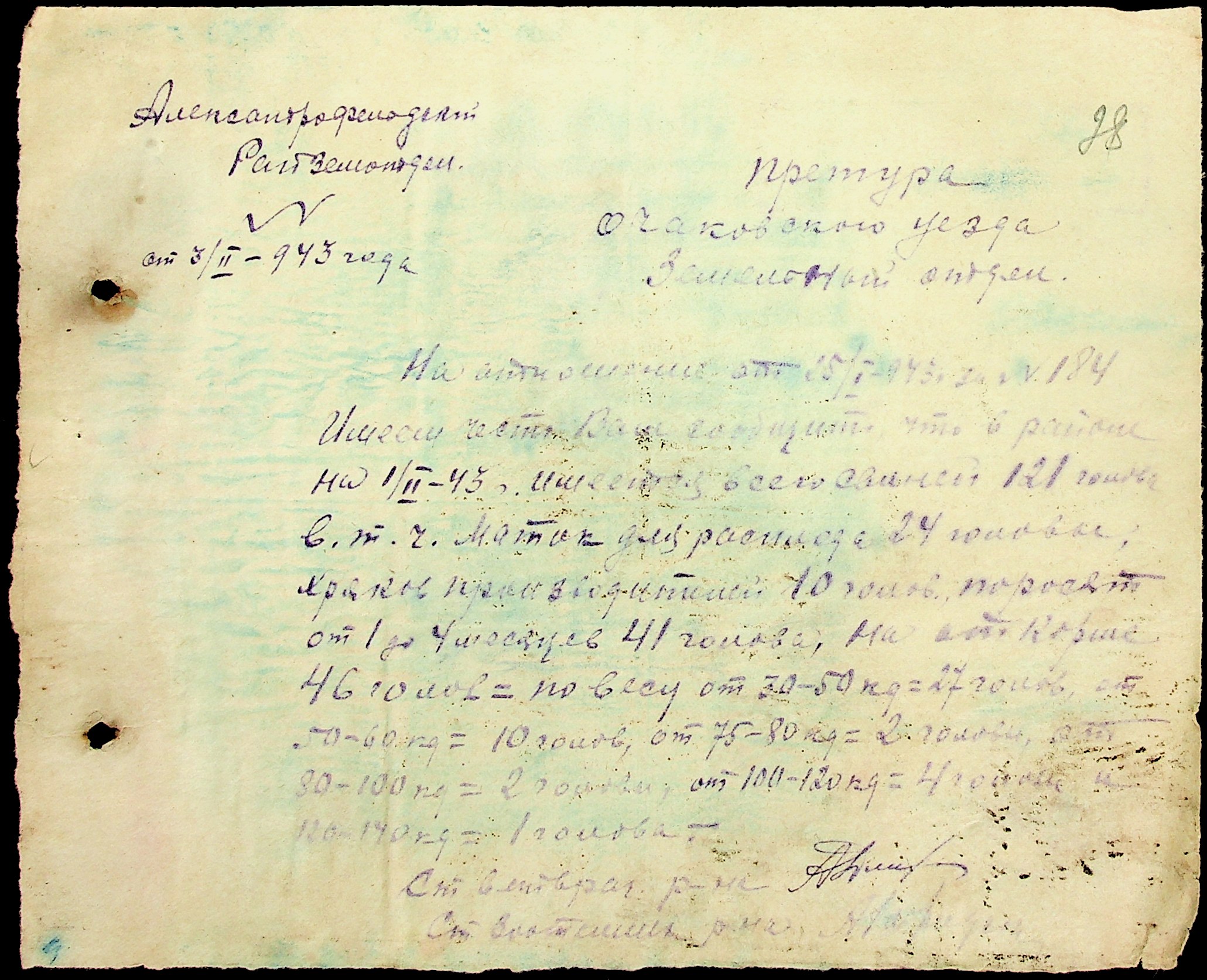 • • • • Справа № 45 “Статистичні відомості про наявність худоби та вуликів у трудових товариствах району за 1943 рік”