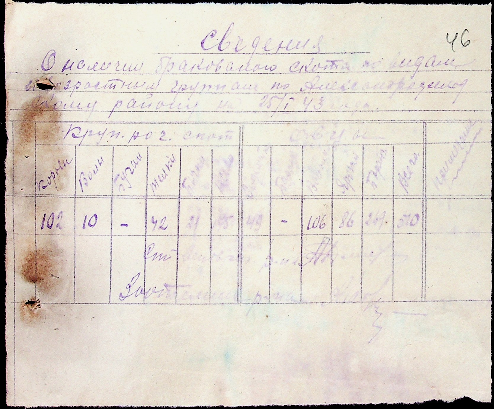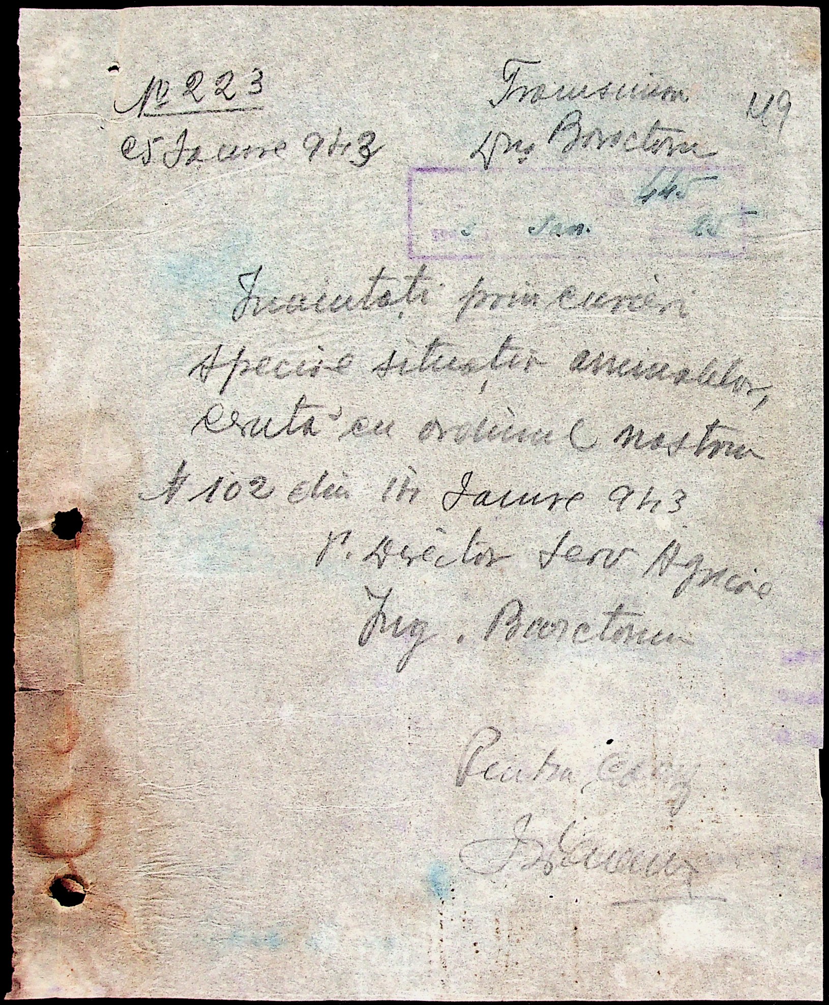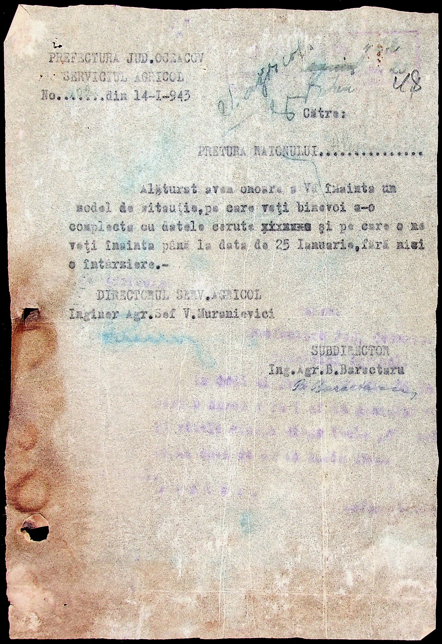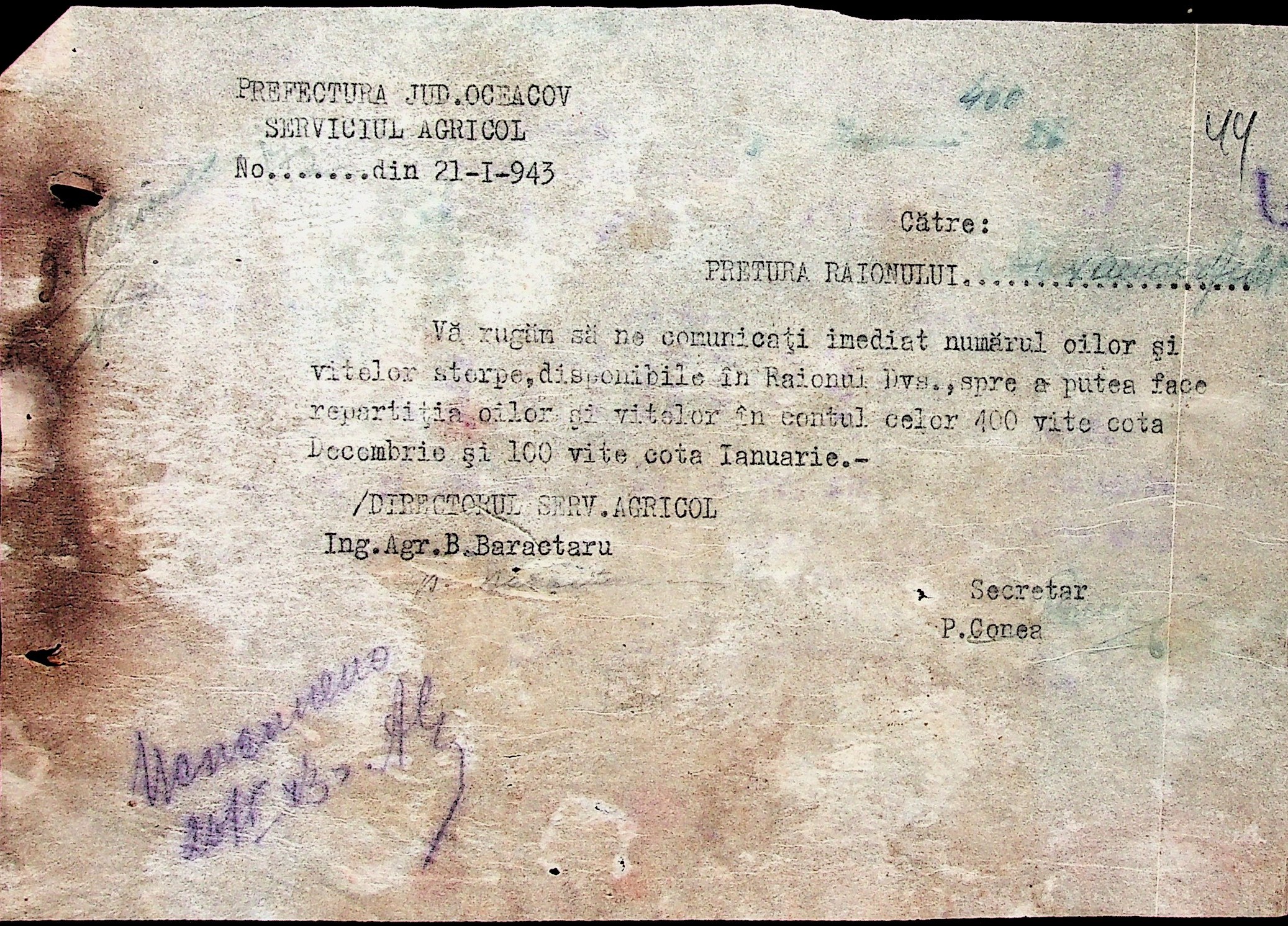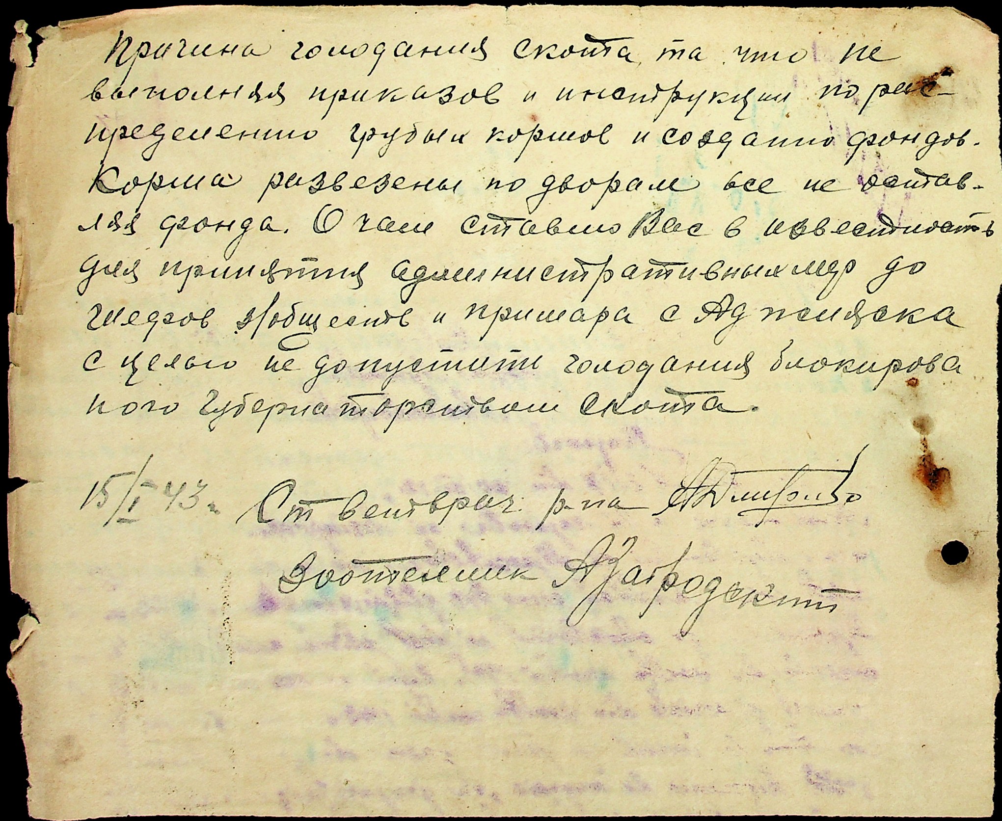 • • • • Справа № 45 “Статистичні відомості про наявність худоби та вуликів у трудових товариствах району за 1943 рік”