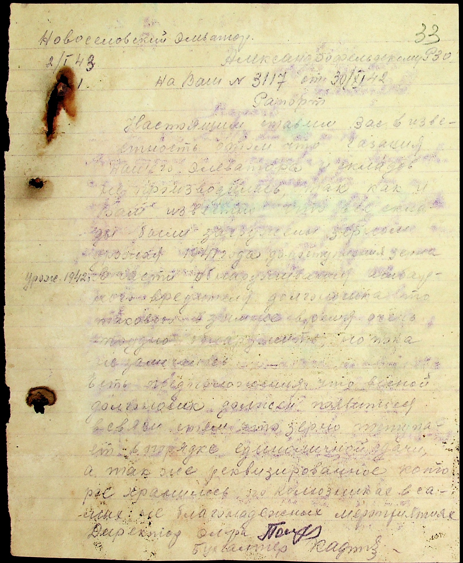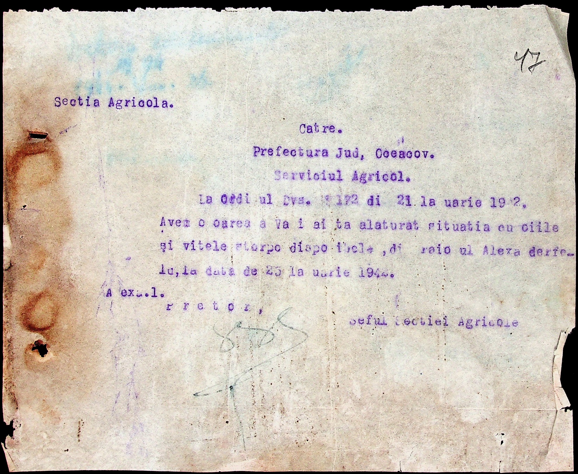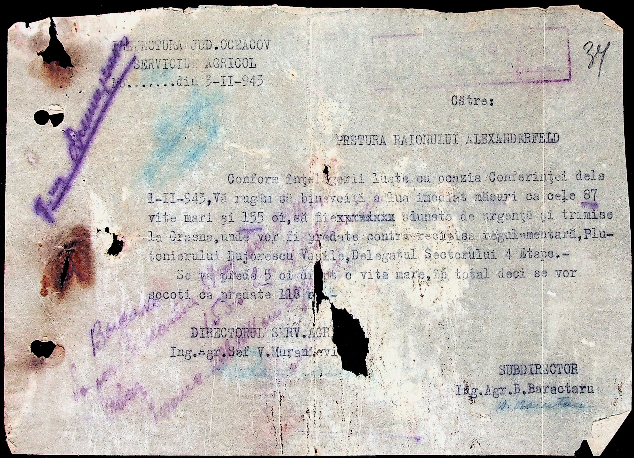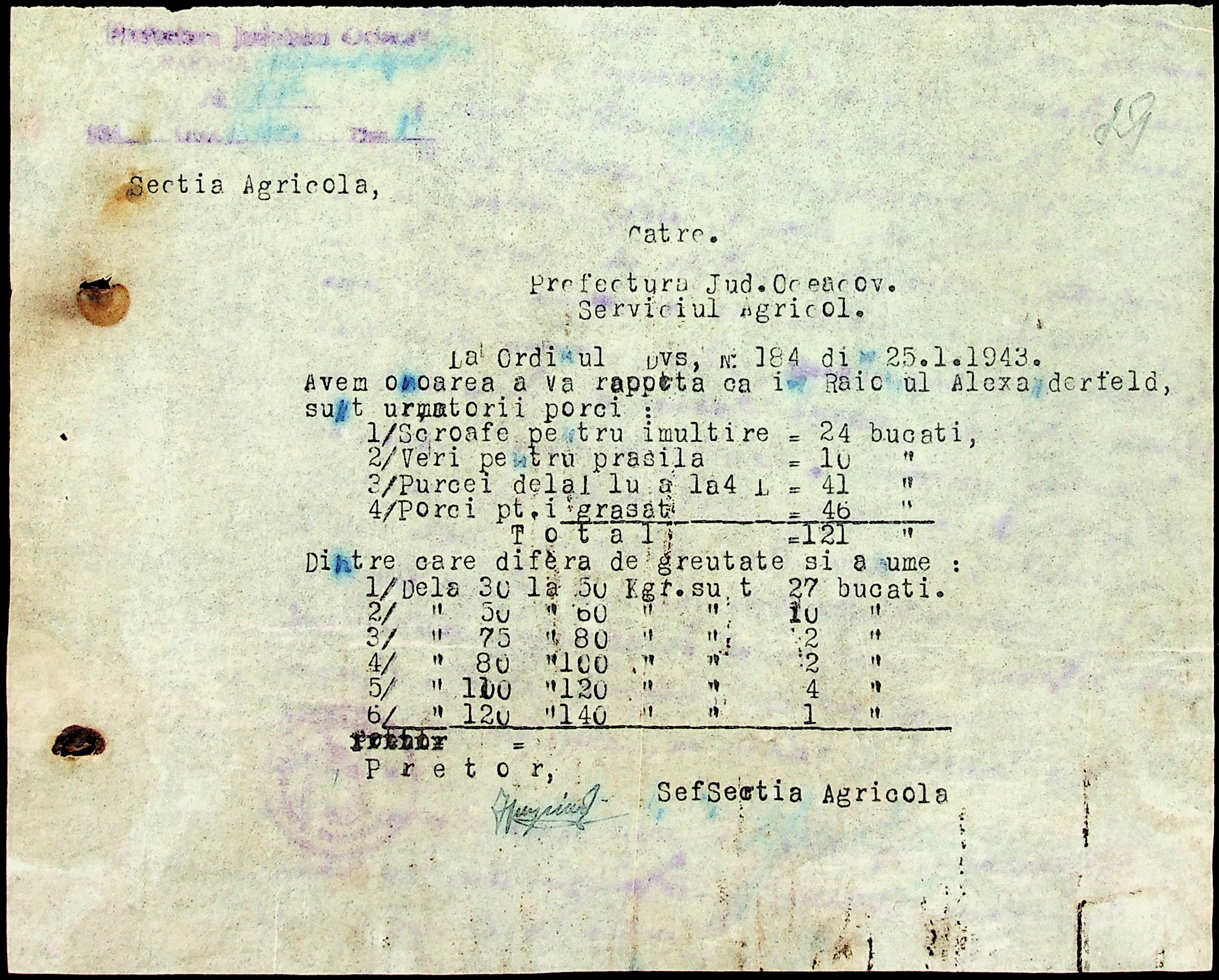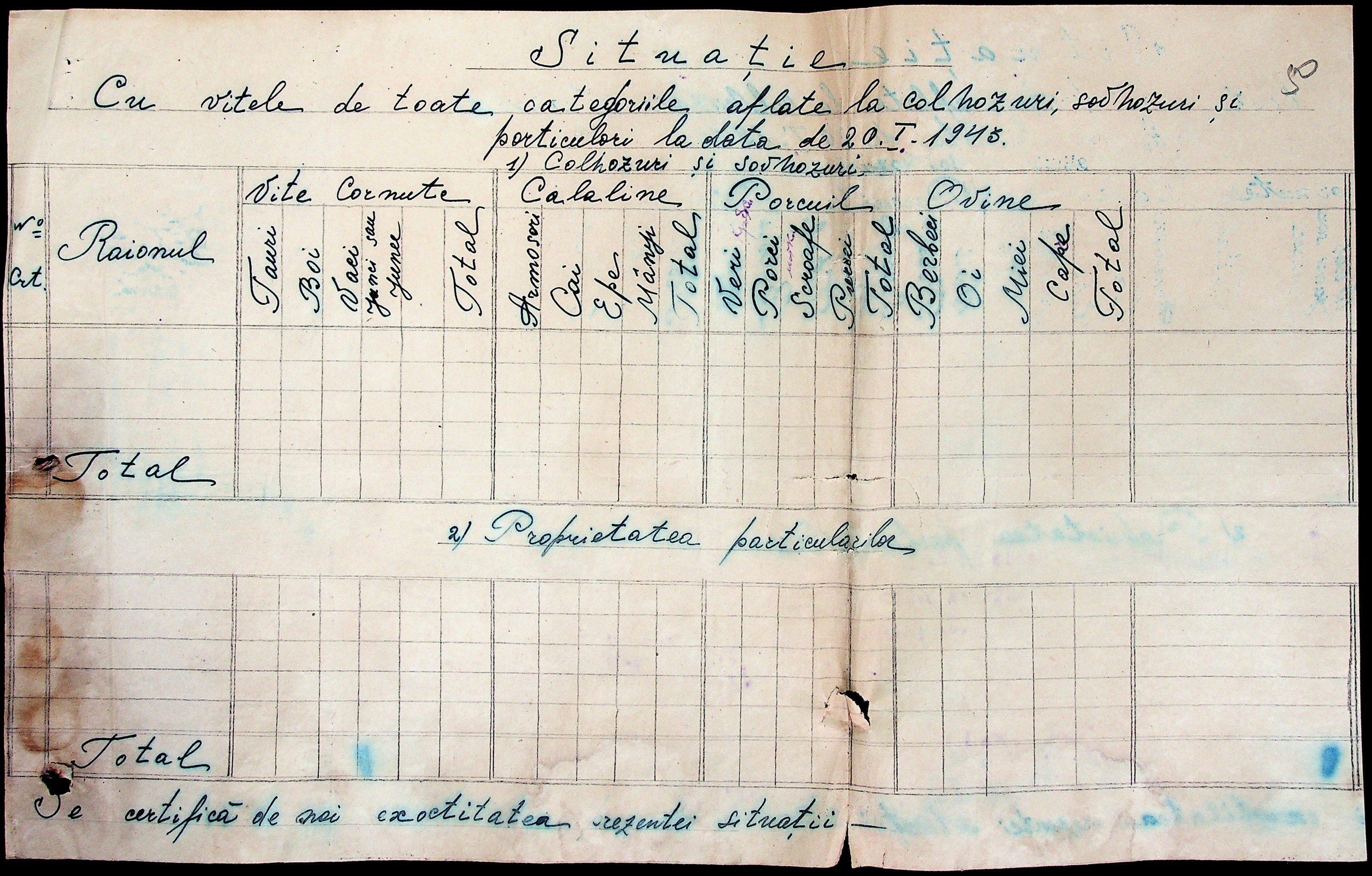• • • • Справа № 45 “Статистичні відомості про наявність худоби та вуликів у трудових товариствах району за 1943 рік”