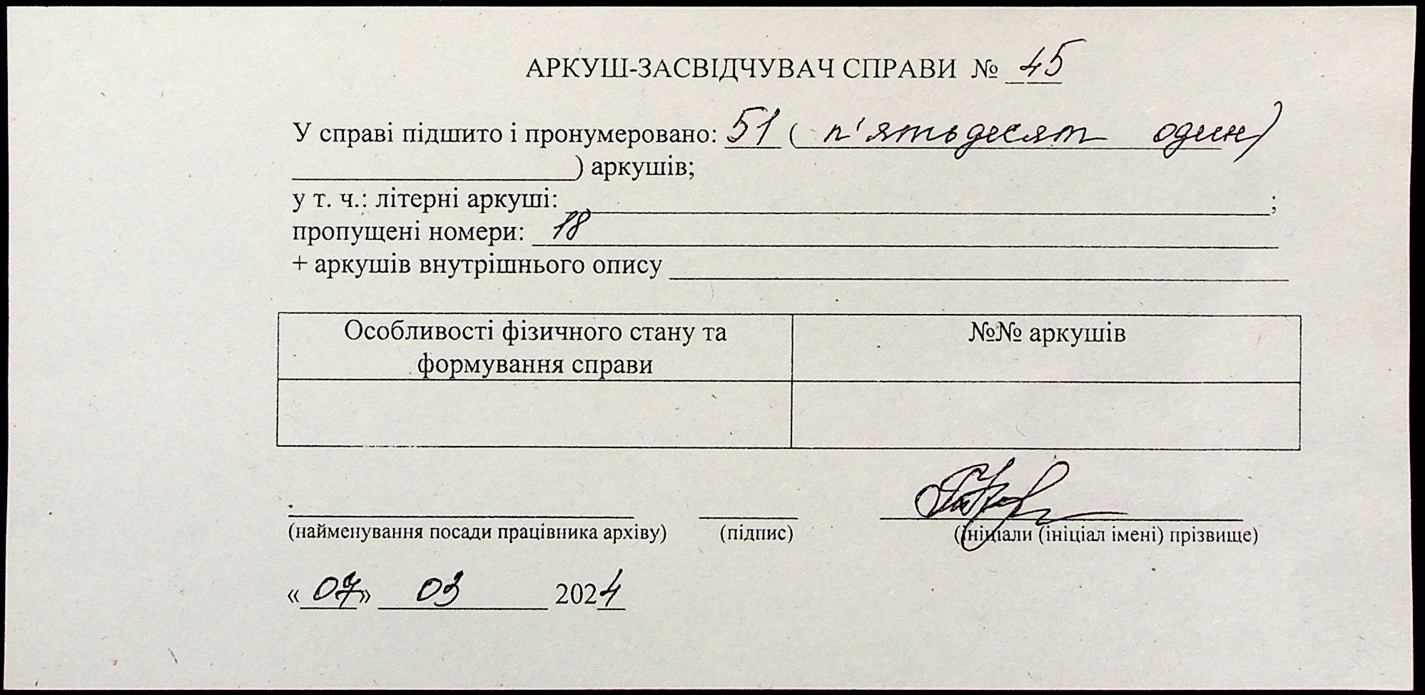 ◦ ◦ ◦ Опис № 5 справ постійного зберігання за 1942–1943 роки