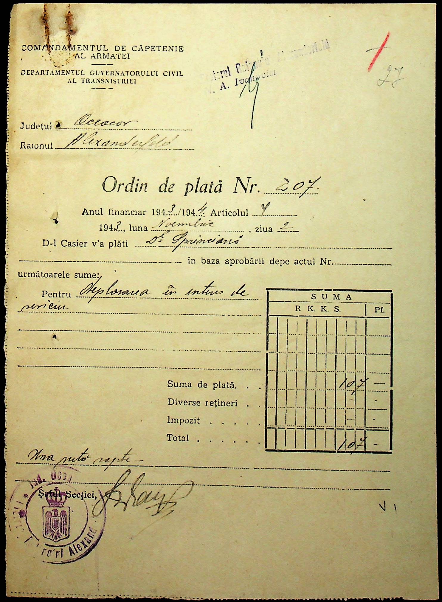 ◦ ◦ Фонд № Н-1588 “Претура Александерфельдського району Очаківського повіту”