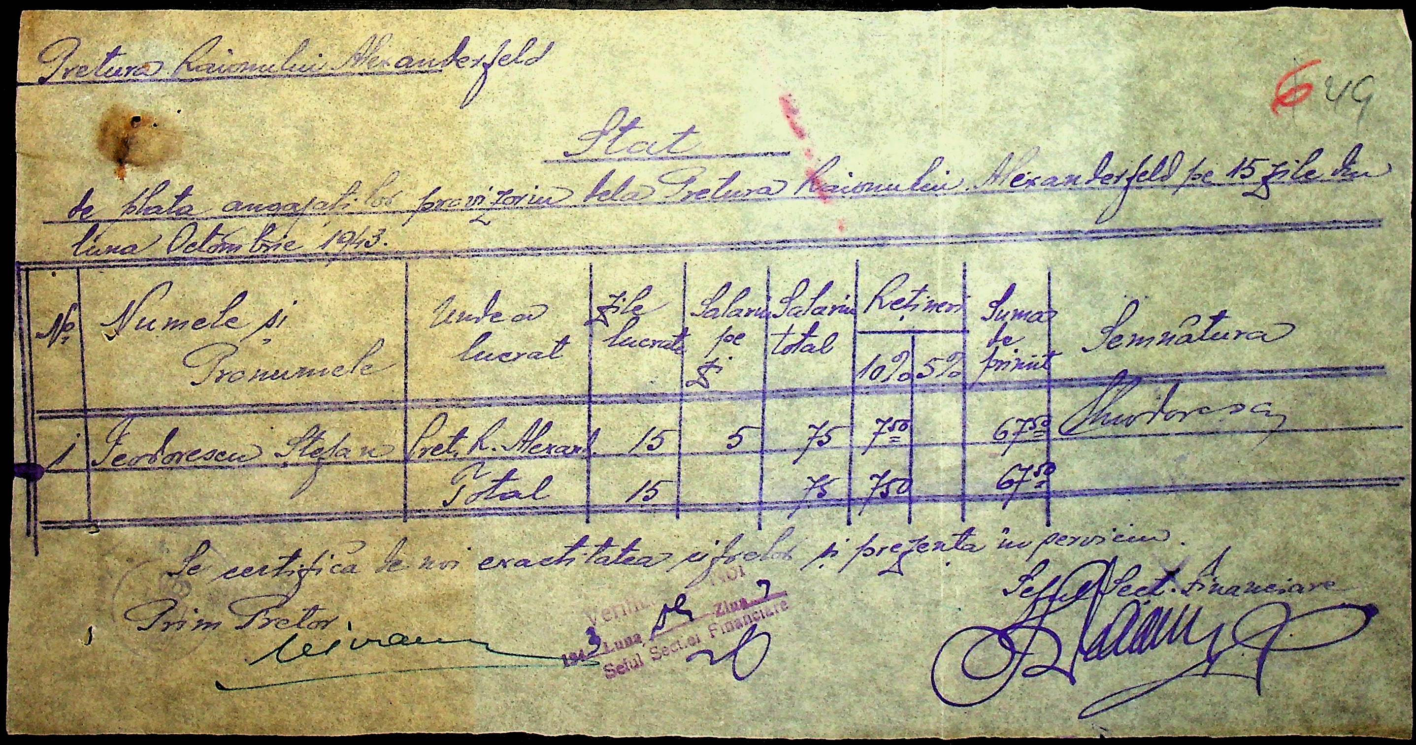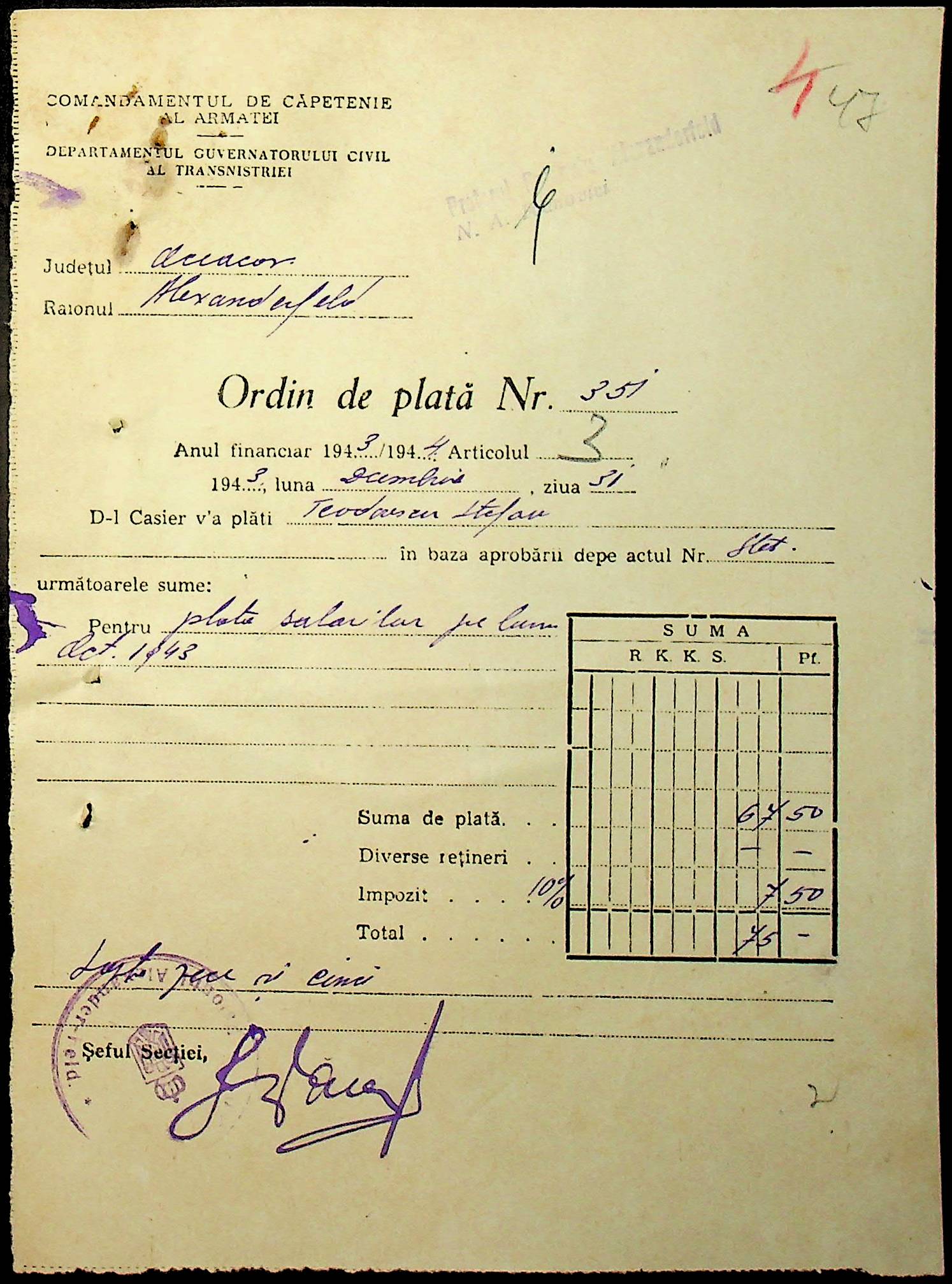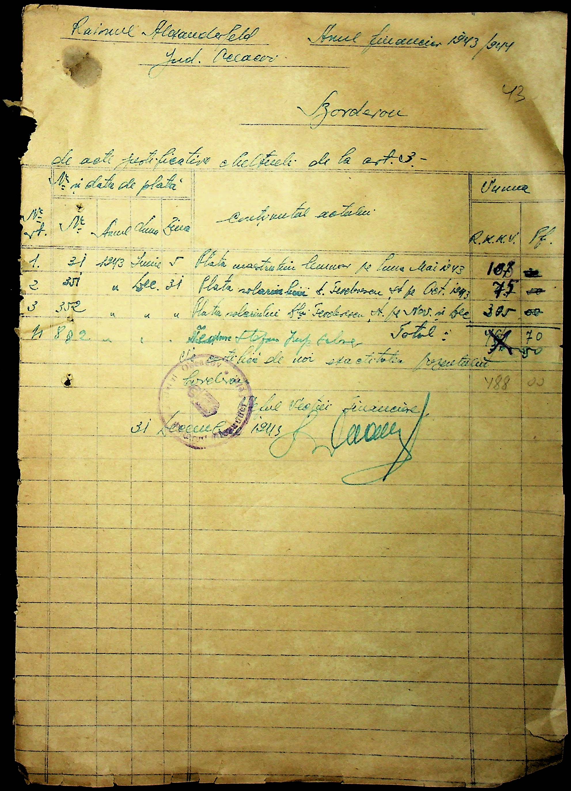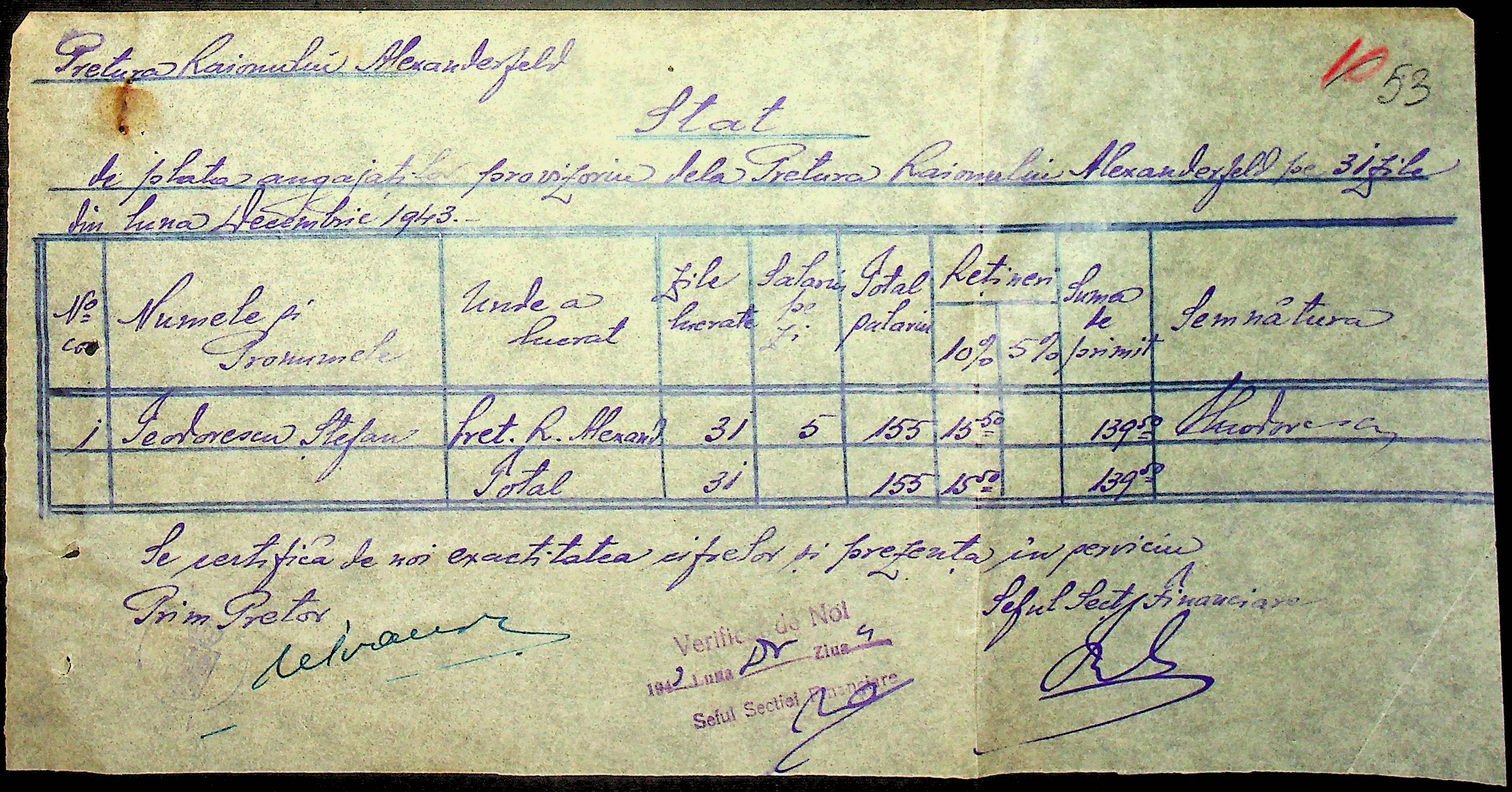 • • • • Справа № 47 “Відомості на видачу заробітної плати працівникам претури, списки мешканців району – платників податків за 1943 рік”