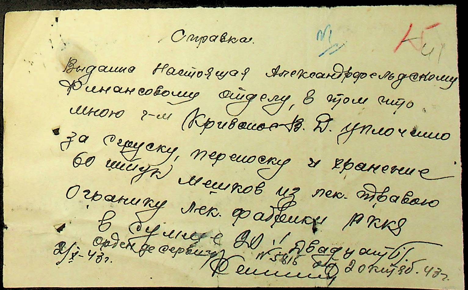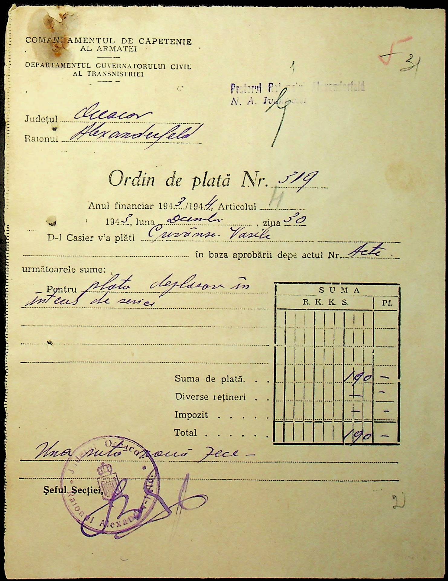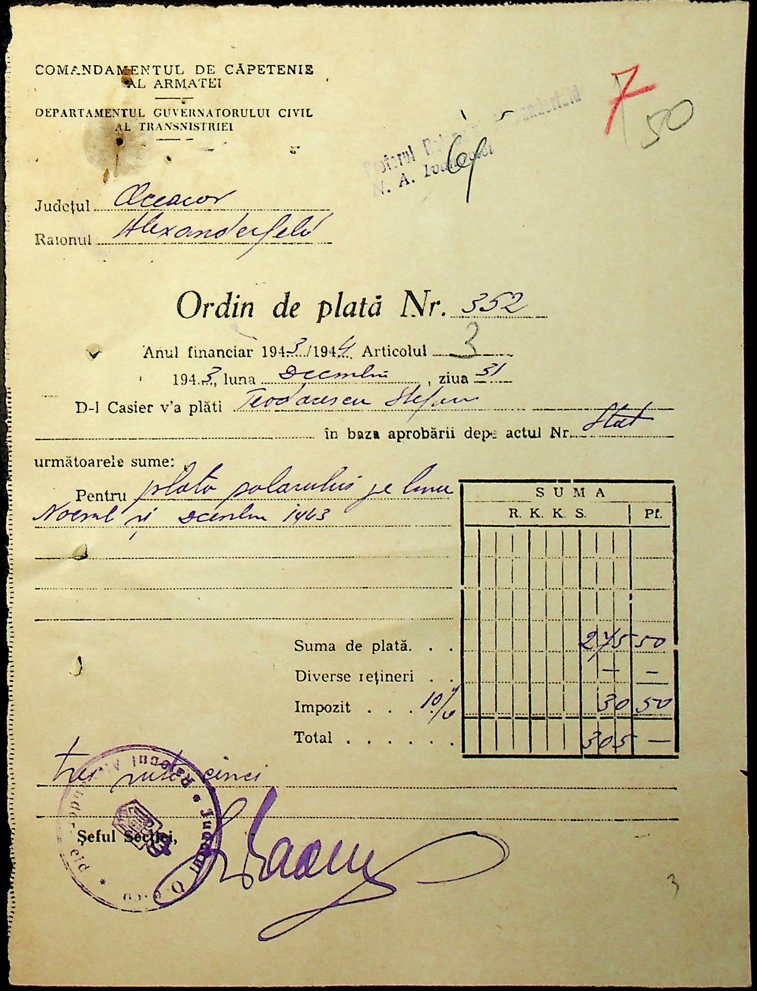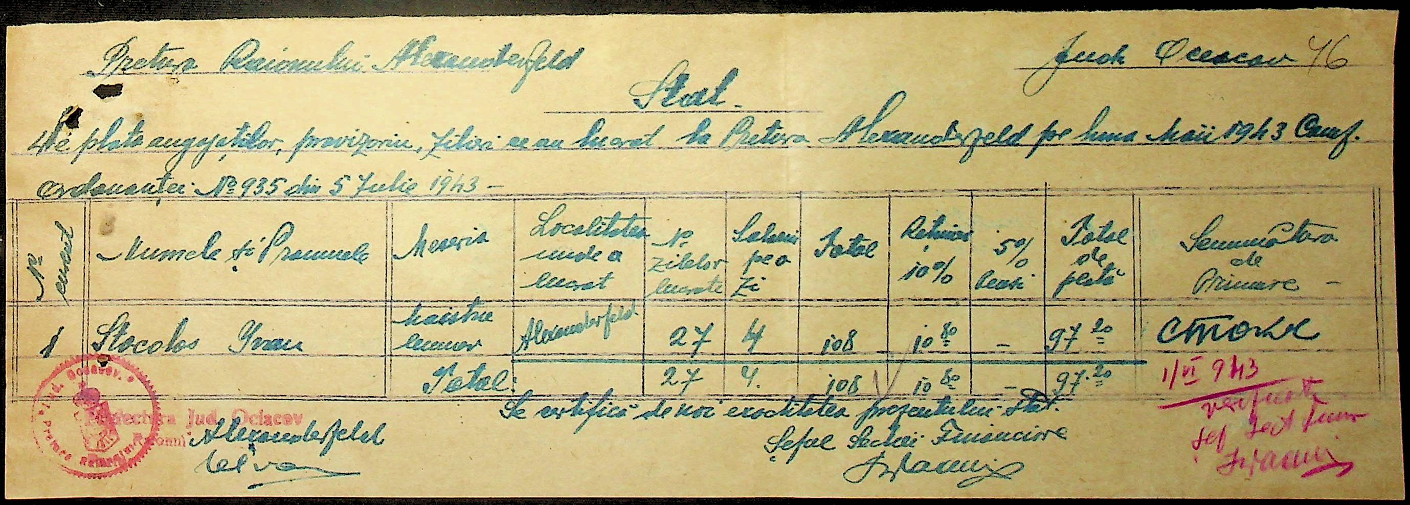 • • • • Справа № 47 “Відомості на видачу заробітної плати працівникам претури, списки мешканців району – платників податків за 1943 рік”