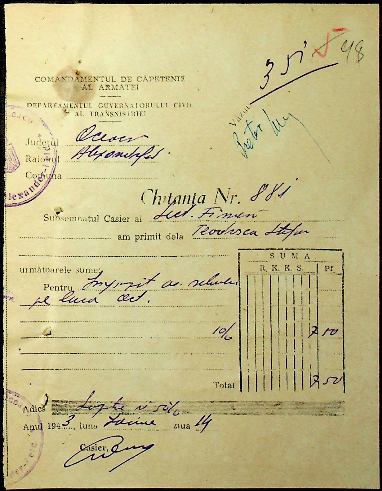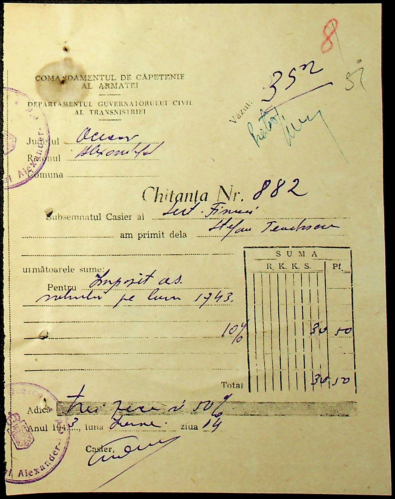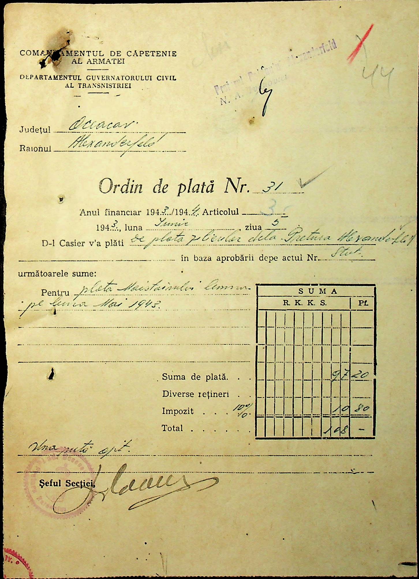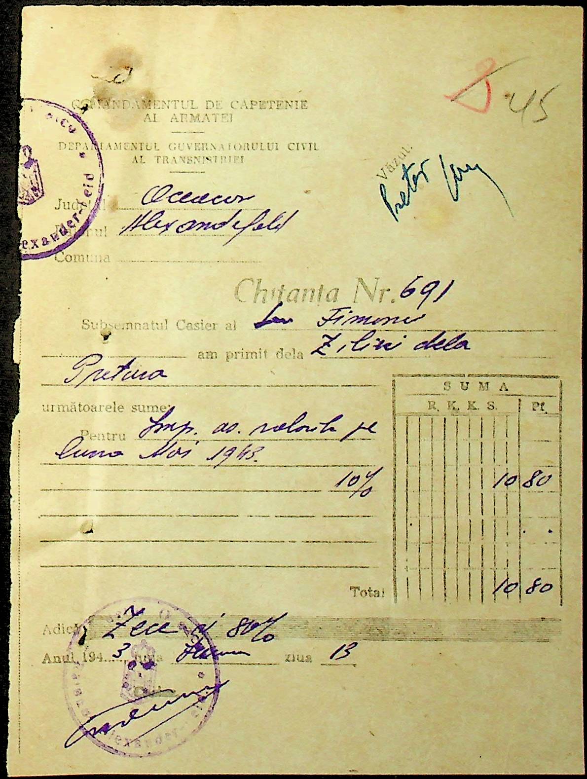 • • • • Справа № 47 “Відомості на видачу заробітної плати працівникам претури, списки мешканців району – платників податків за 1943 рік”