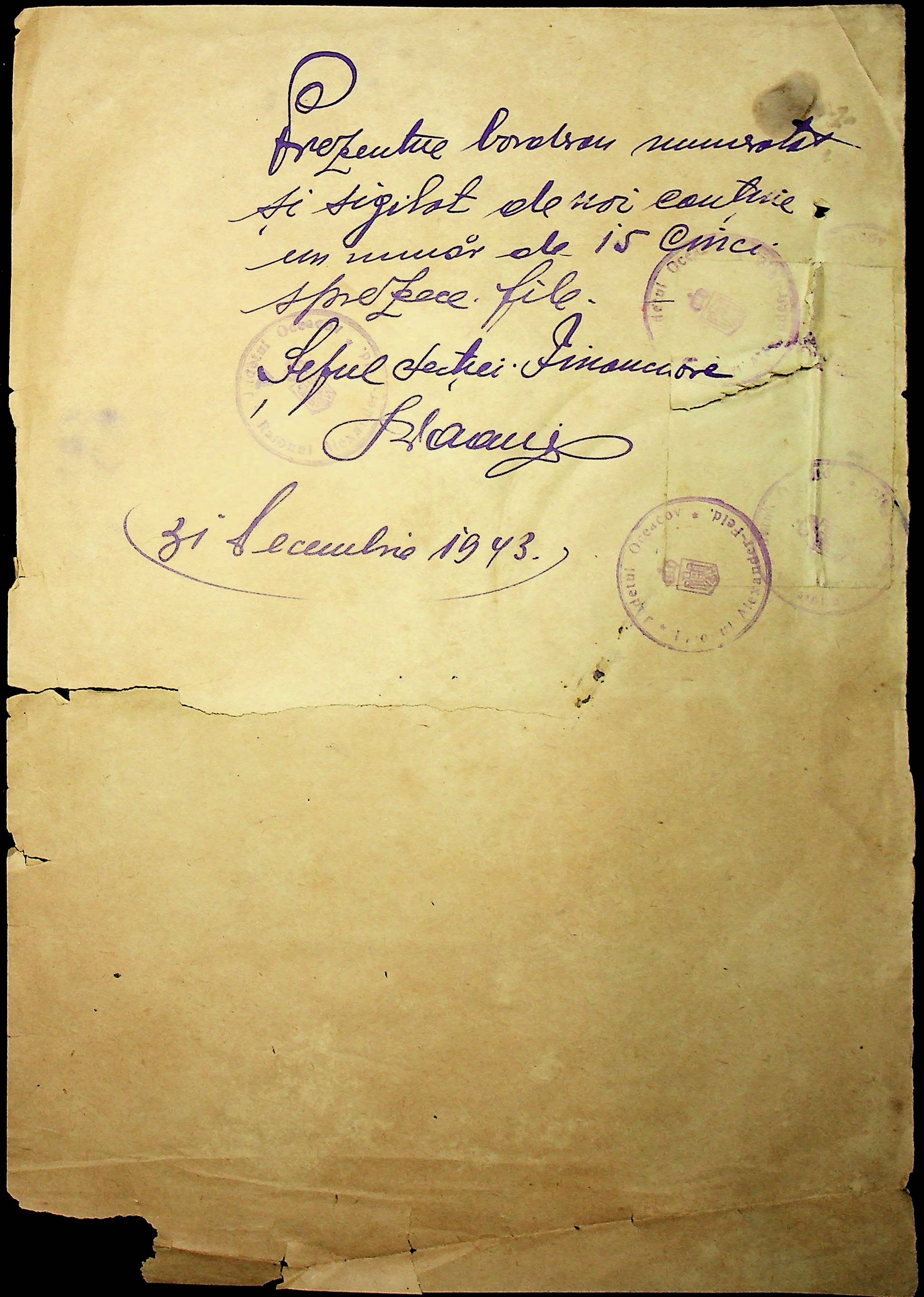 ◦ ◦ ◦ Опис № 5 справ постійного зберігання за 1942–1943 роки