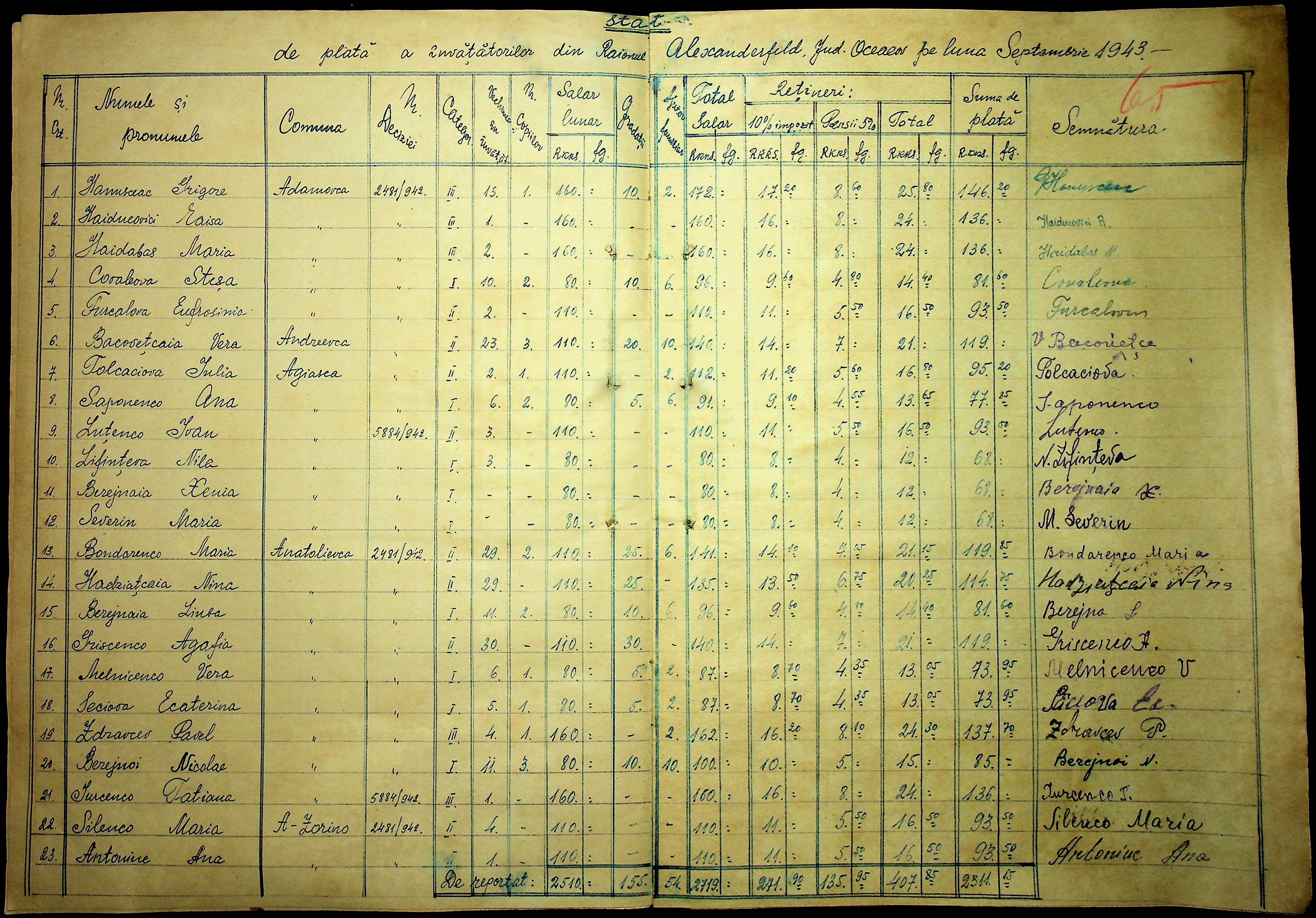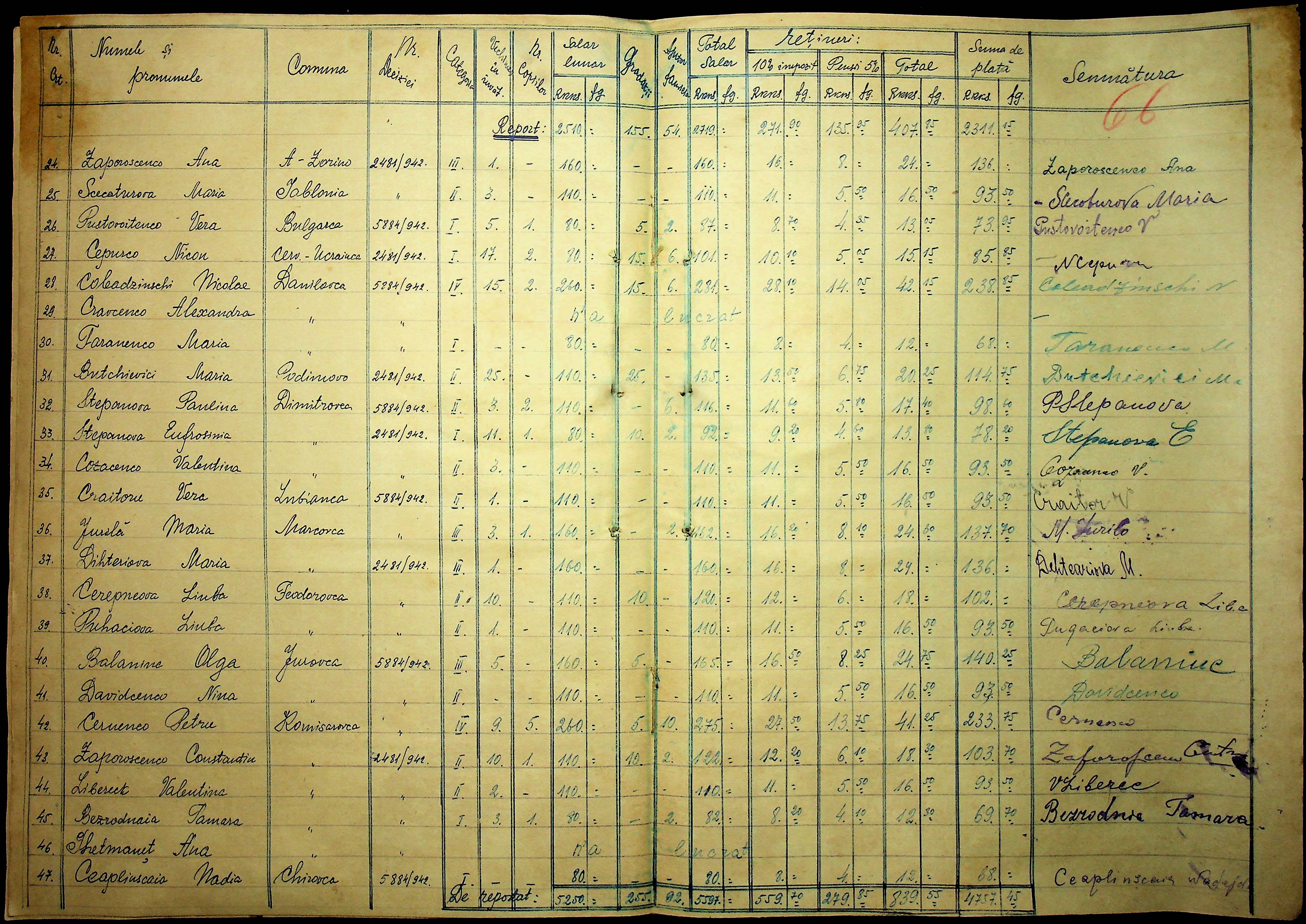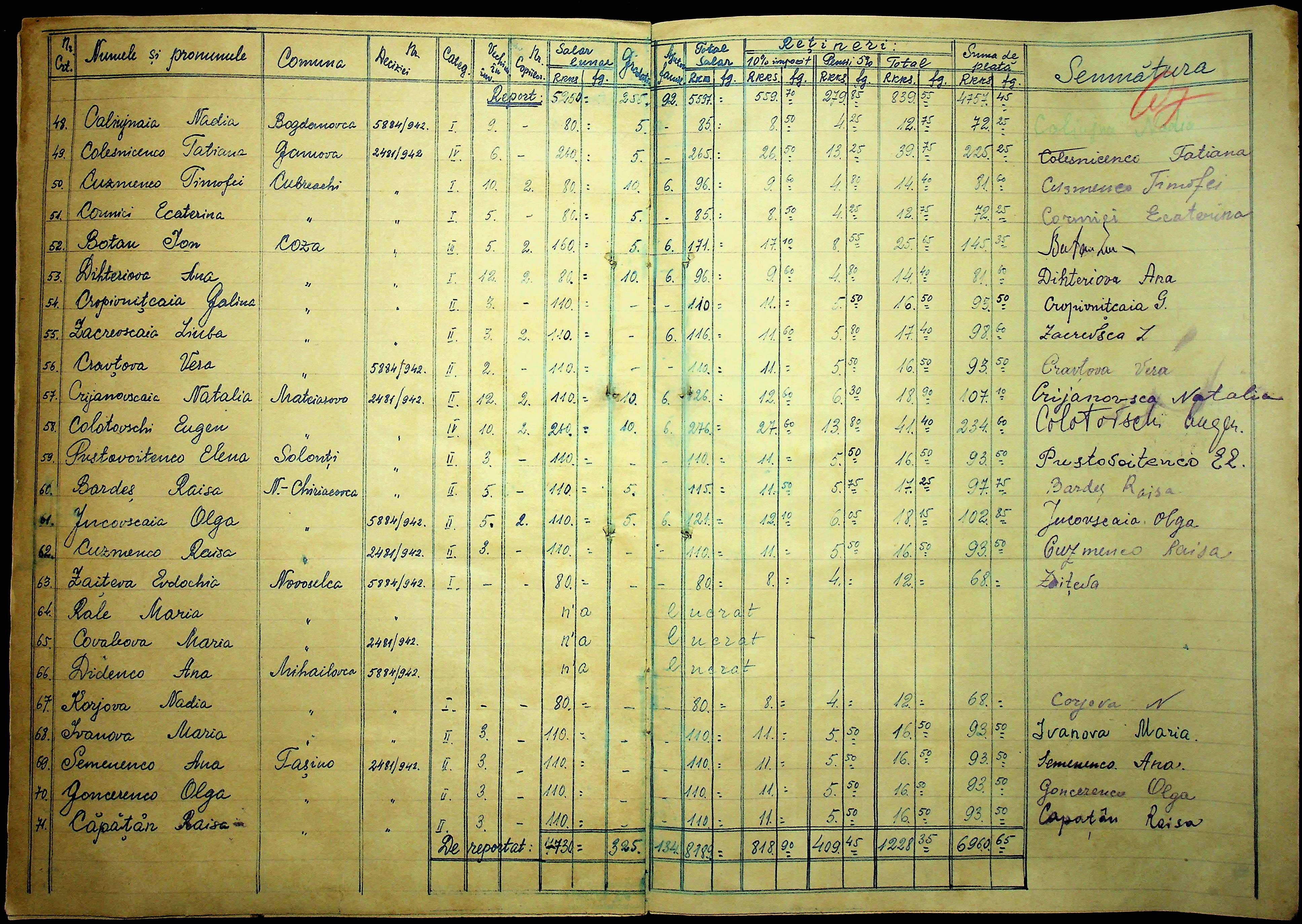 • • • • Справа № 49 “Відомості на видачу заробітної плати викладацькому складу шкіл за 1943 рік”