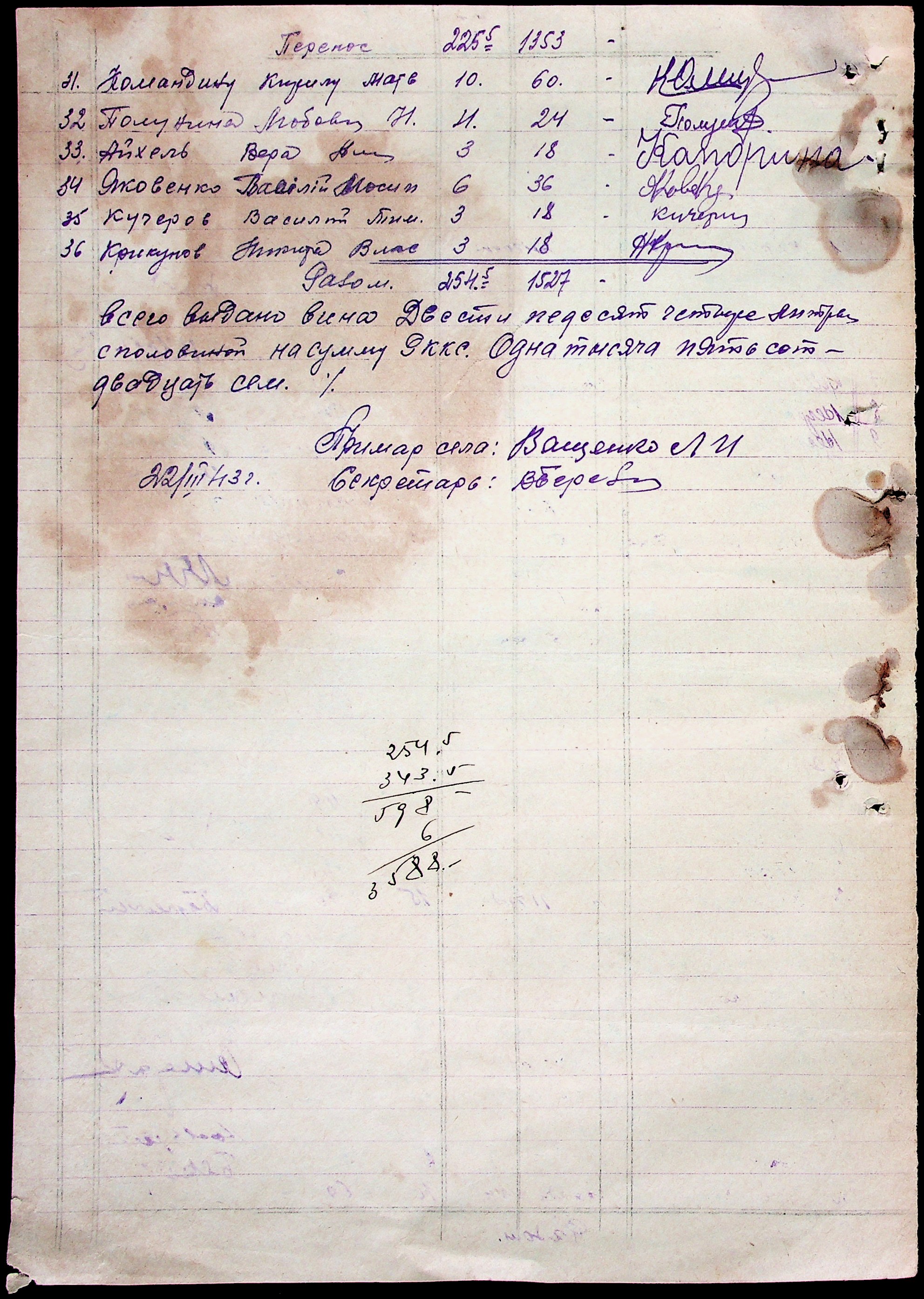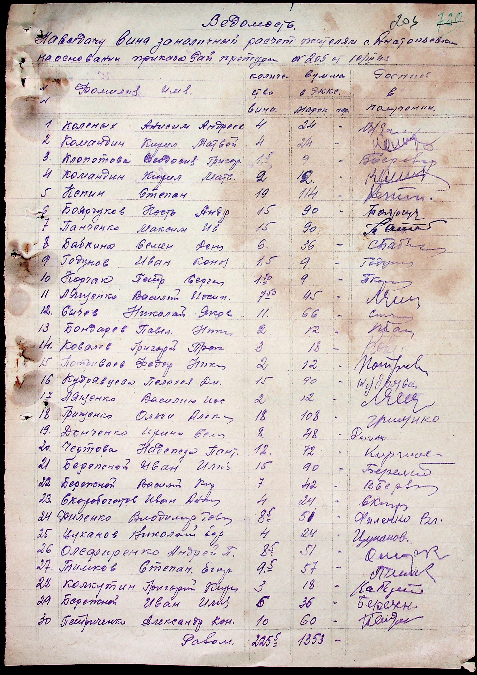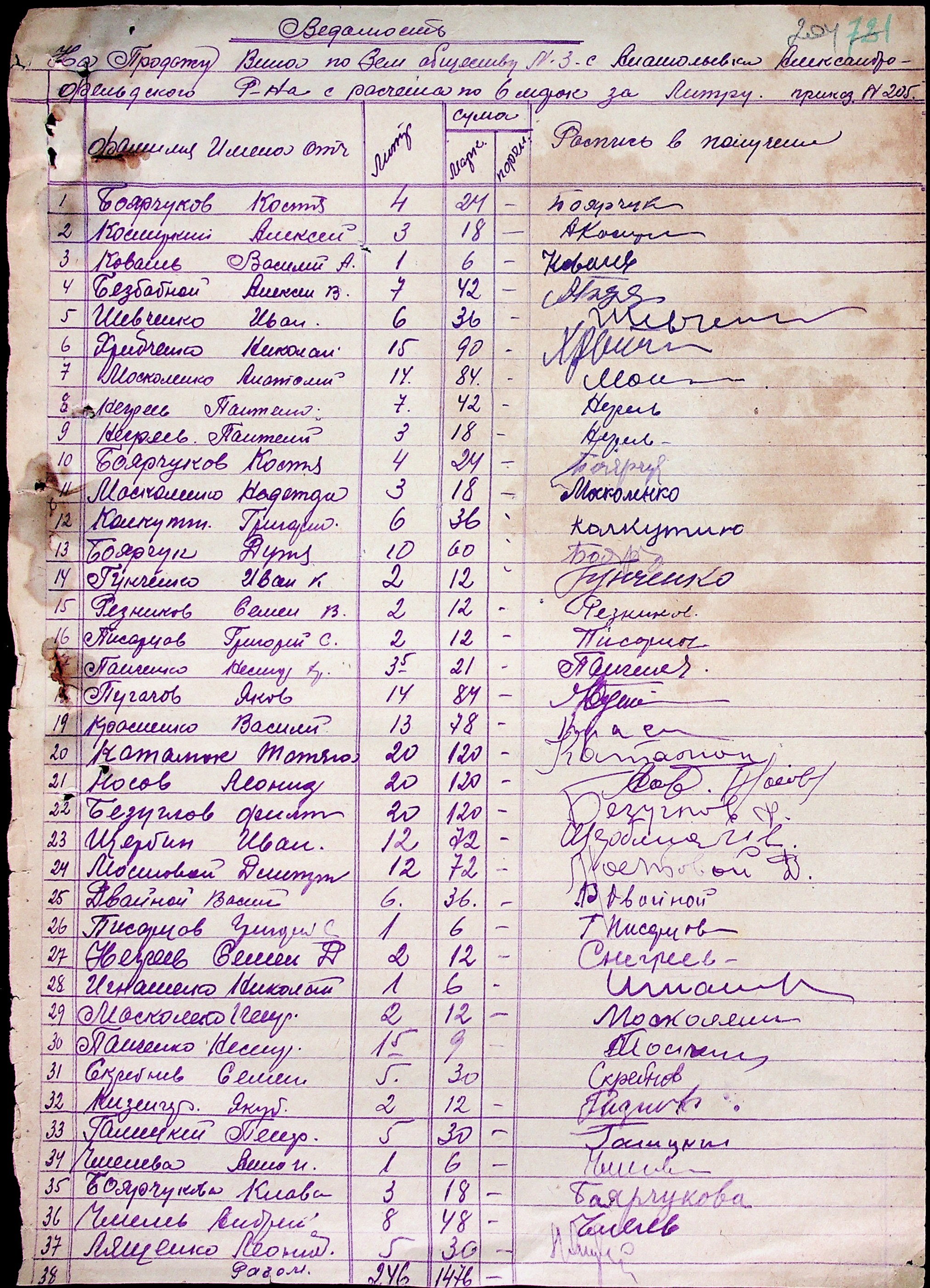 • • • • Справа № 51 “Документи ( рапорти, списки службовців примарій, шкіл, працівників МТС, елеваторів, трудових товариств та мешканців сіл району, заяви, відомості про отримання продуктів, зерна, ячменю та грошей, продаж вина, ордери, листування з різних питань) про роботу Александерфельдської претури”