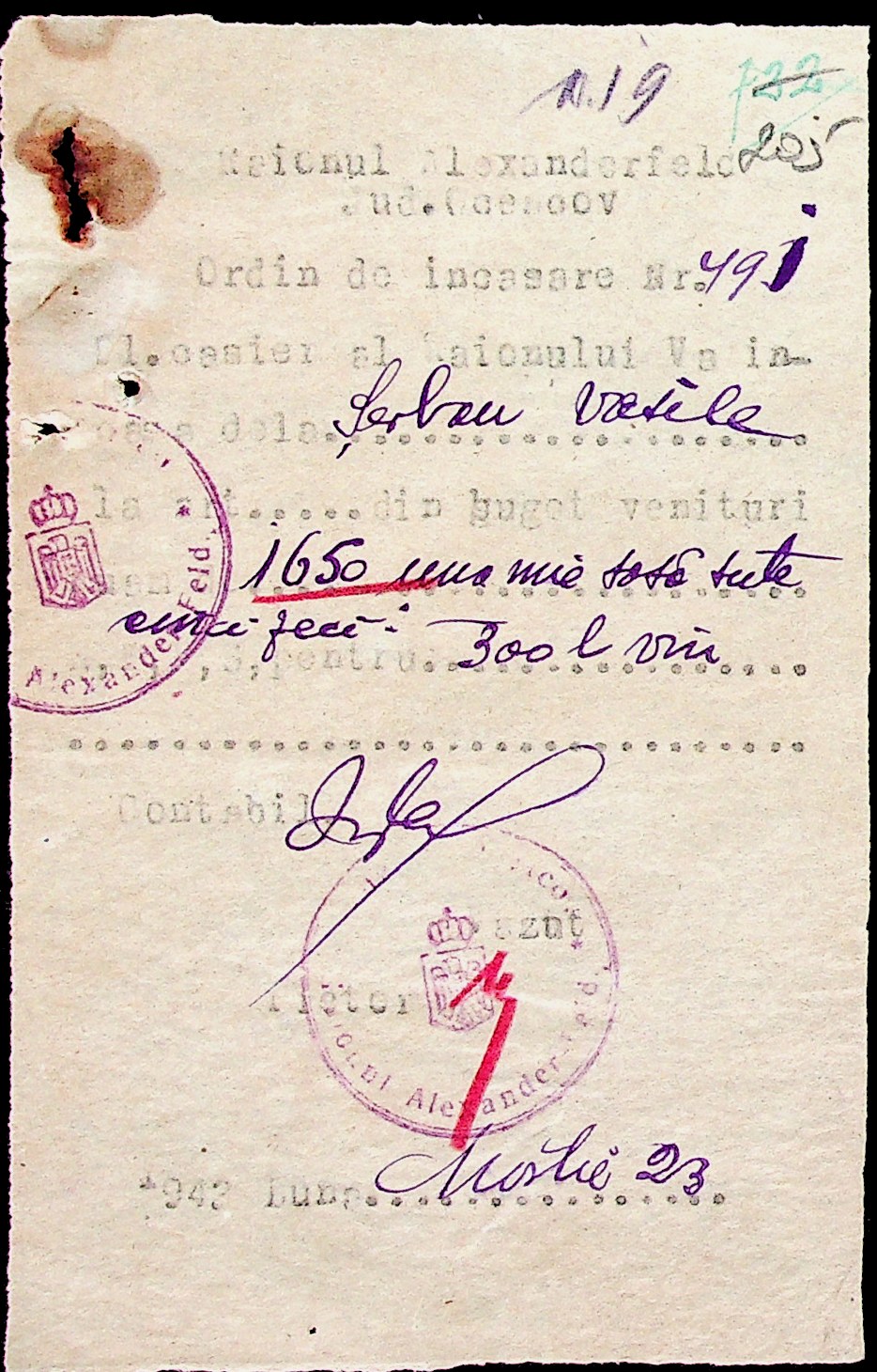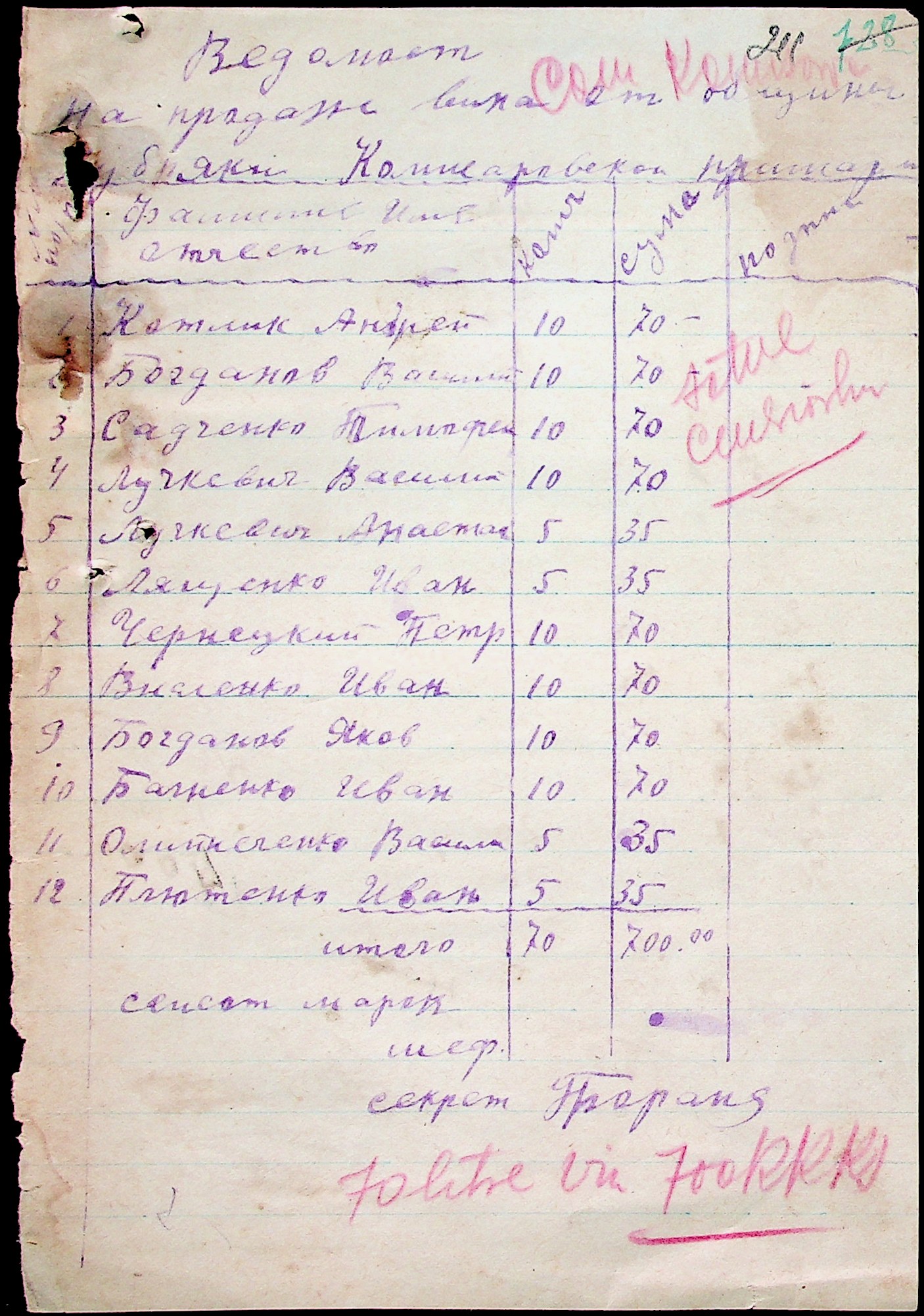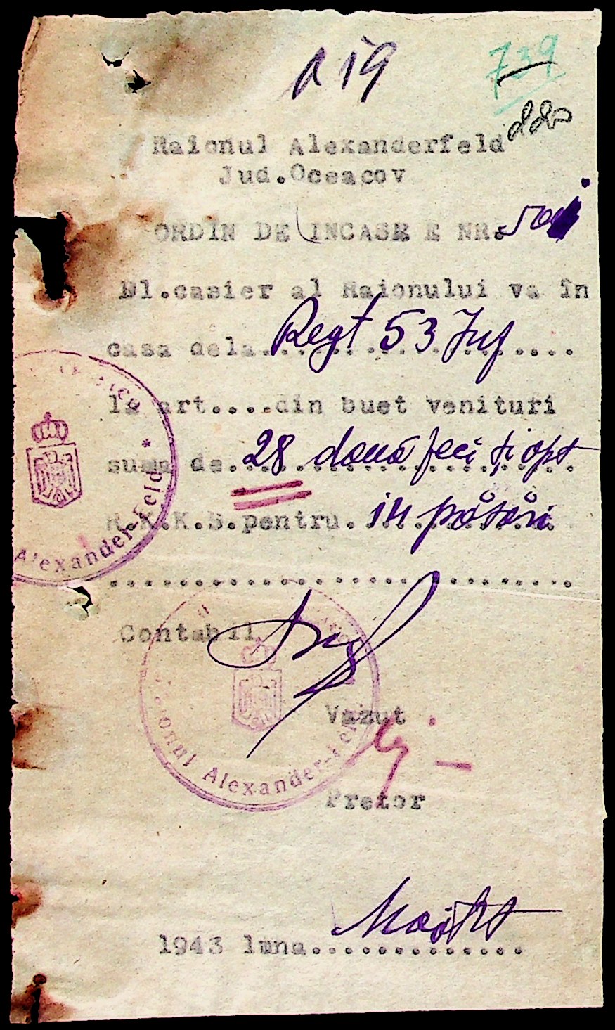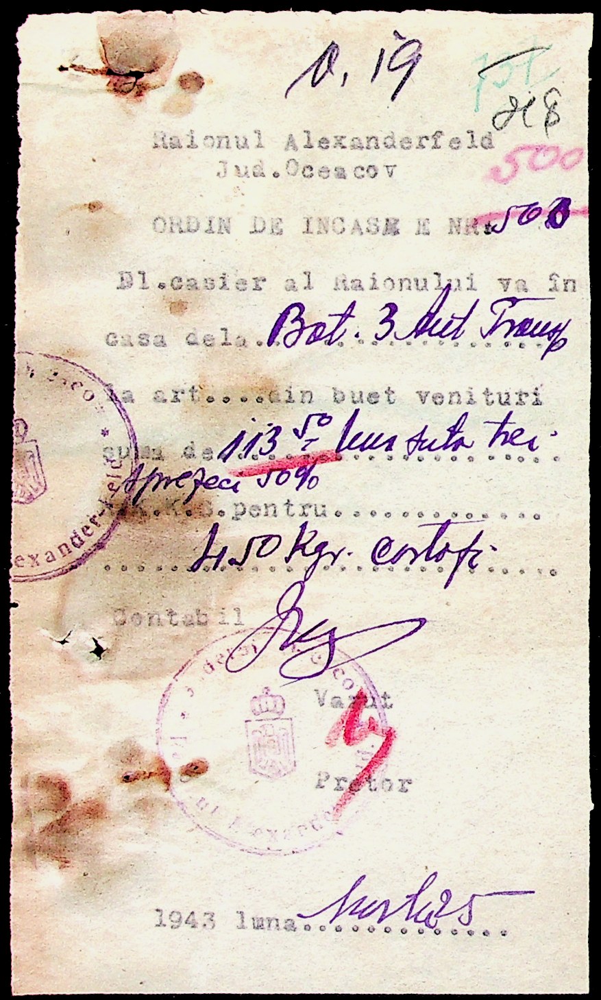 • • • • Справа № 51 “Документи ( рапорти, списки службовців примарій, шкіл, працівників МТС, елеваторів, трудових товариств та мешканців сіл району, заяви, відомості про отримання продуктів, зерна, ячменю та грошей, продаж вина, ордери, листування з різних питань) про роботу Александерфельдської претури”