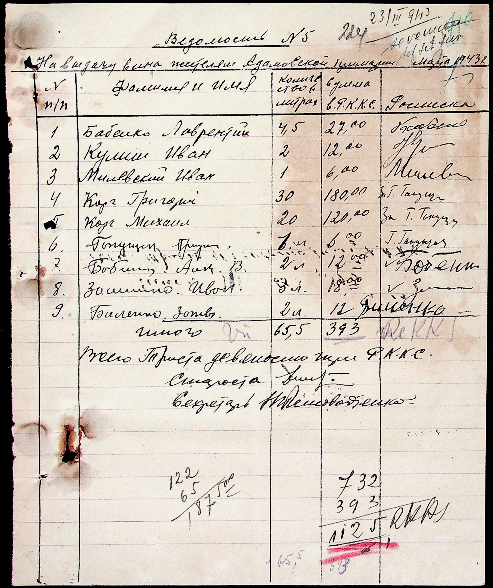 ◦ ◦ ◦ Опис № 5 справ постійного зберігання за 1942–1943 роки
