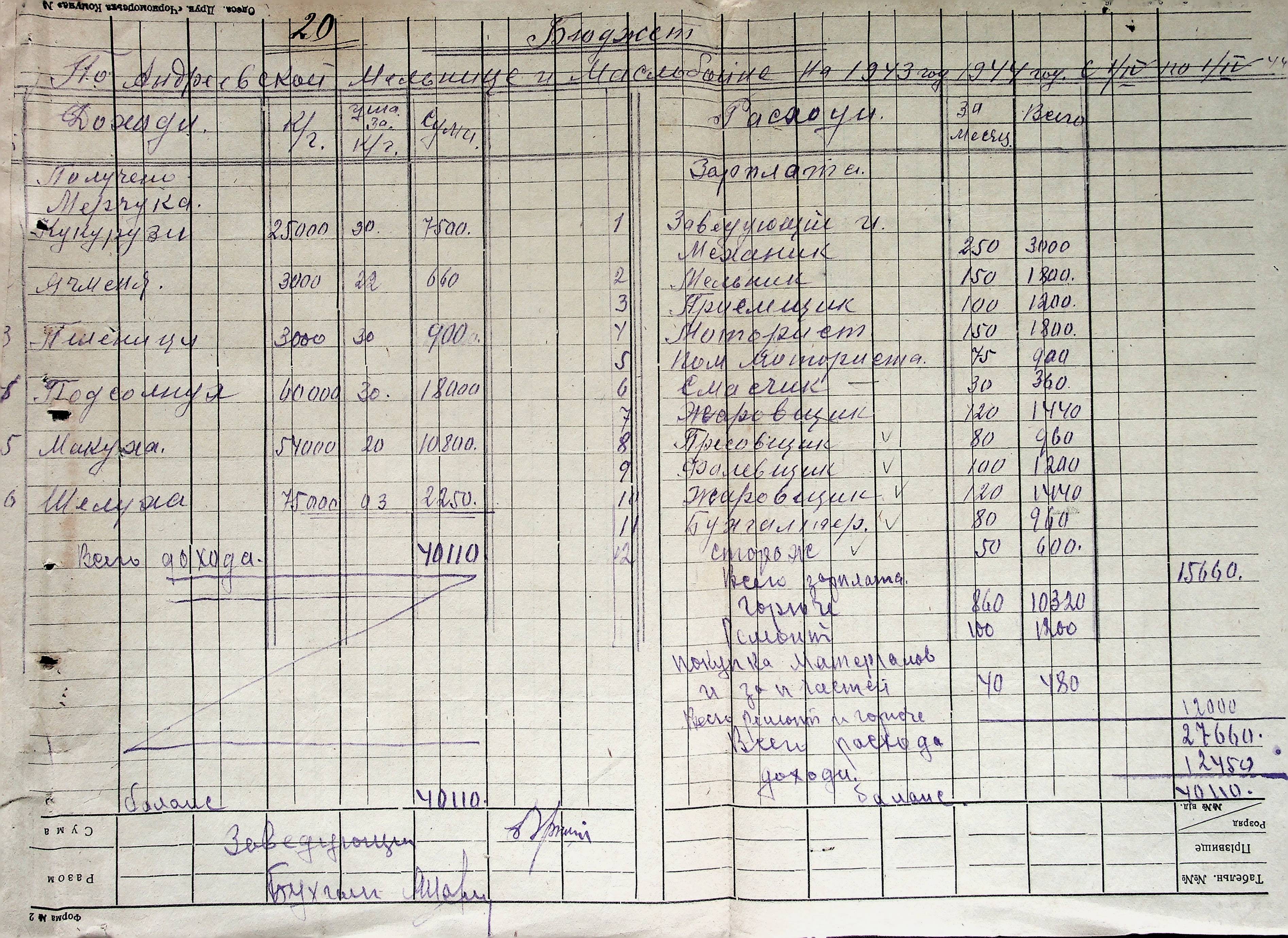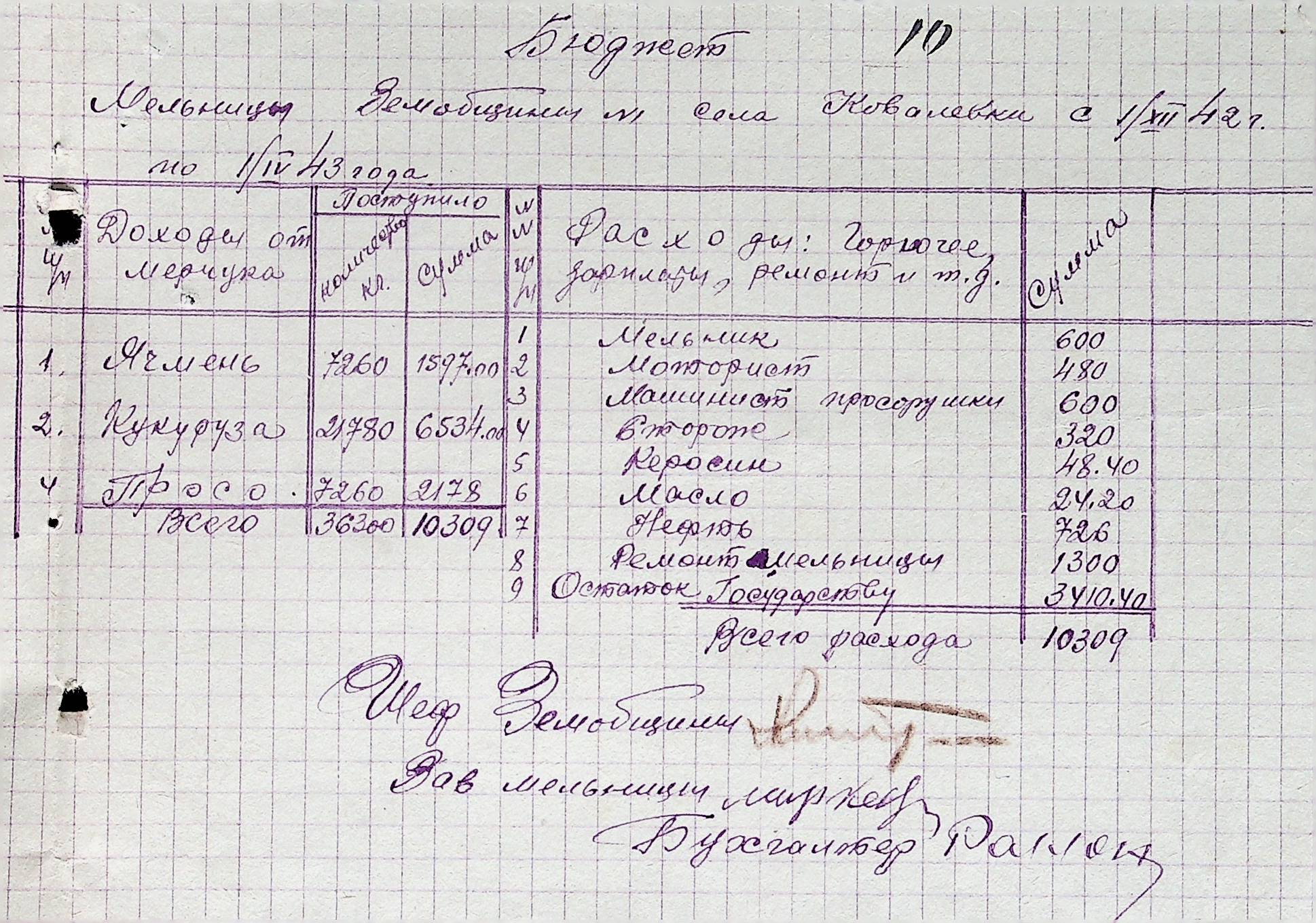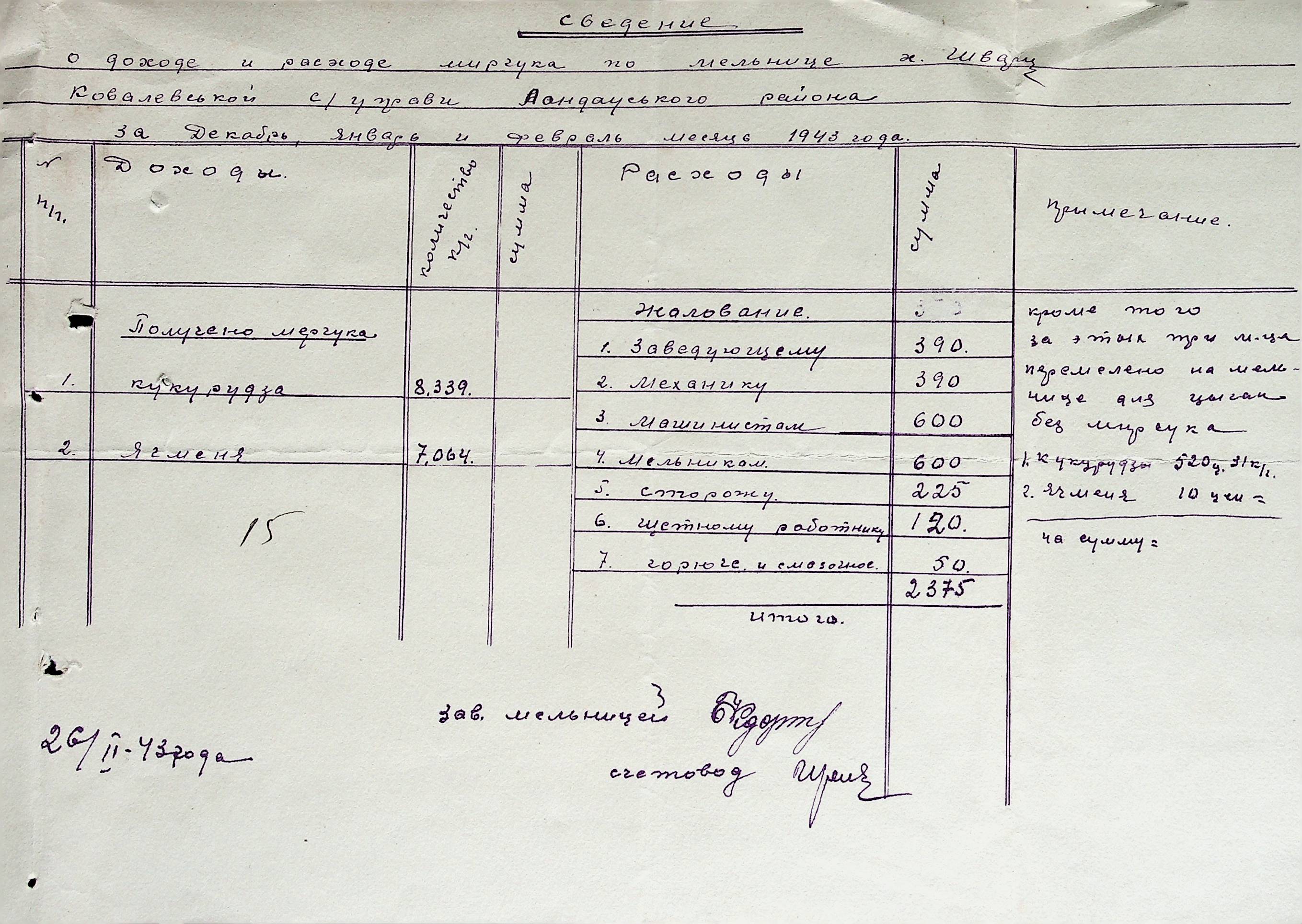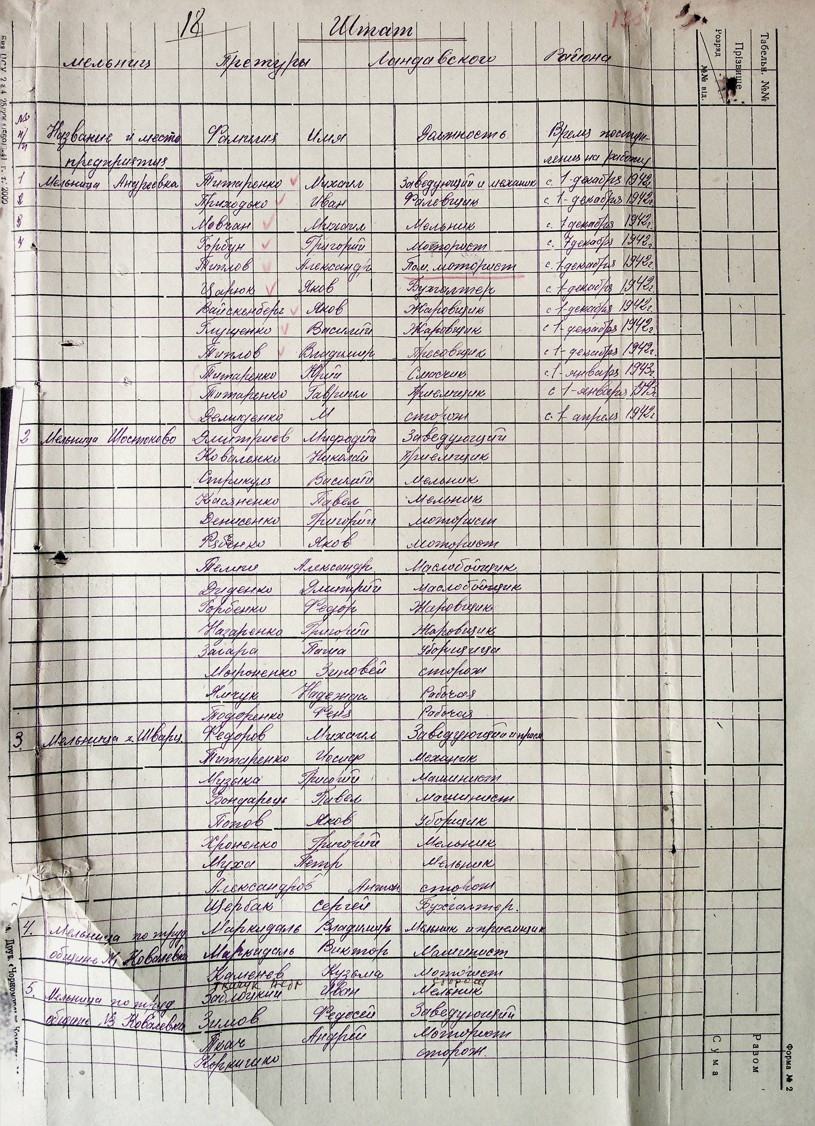 • • • • Справа № 38 “Документи (штатні розписи, бюджети, розрахунки, відомості, рапорт, списки) по млинах і олійнях Ландауського району”