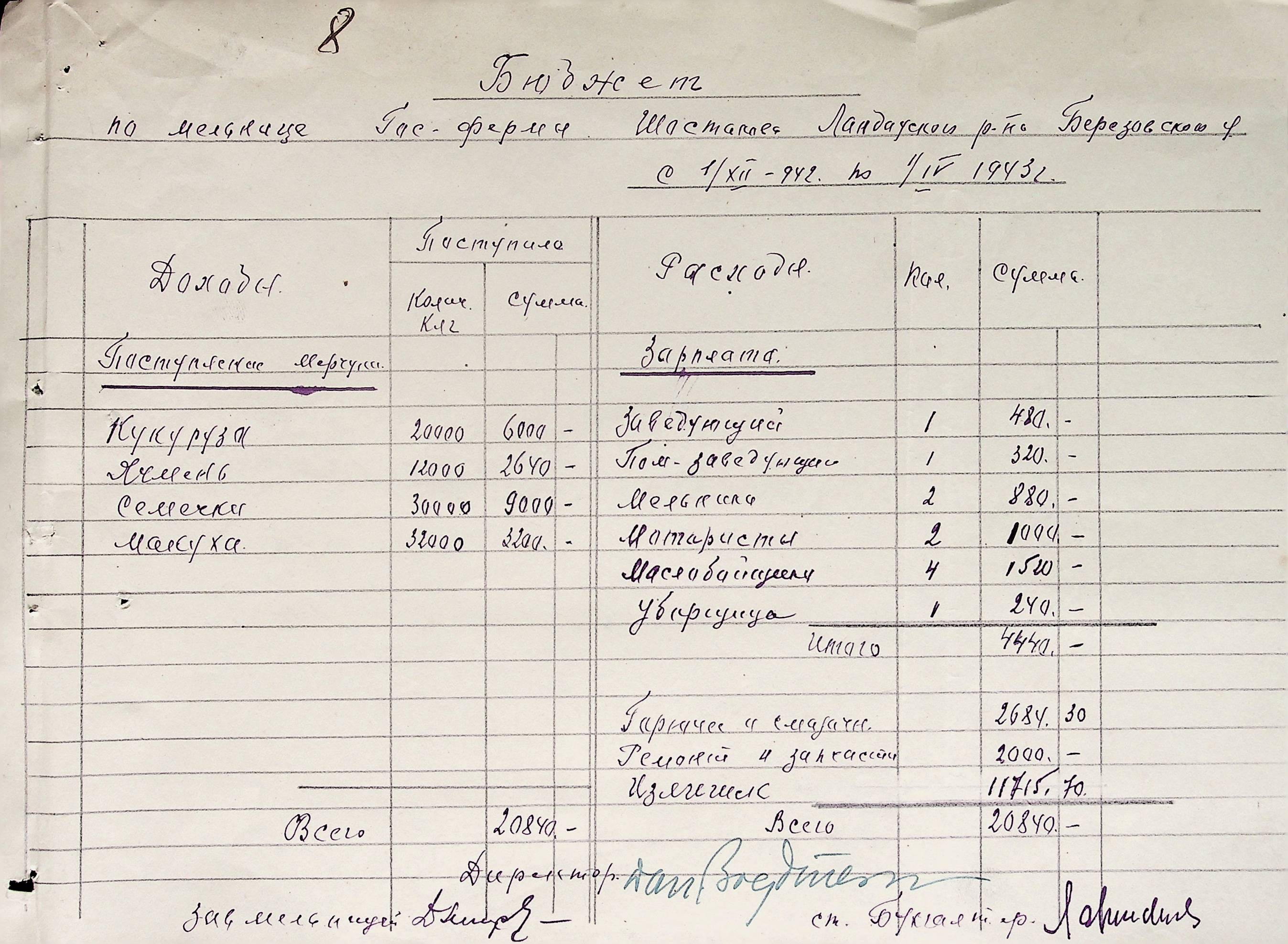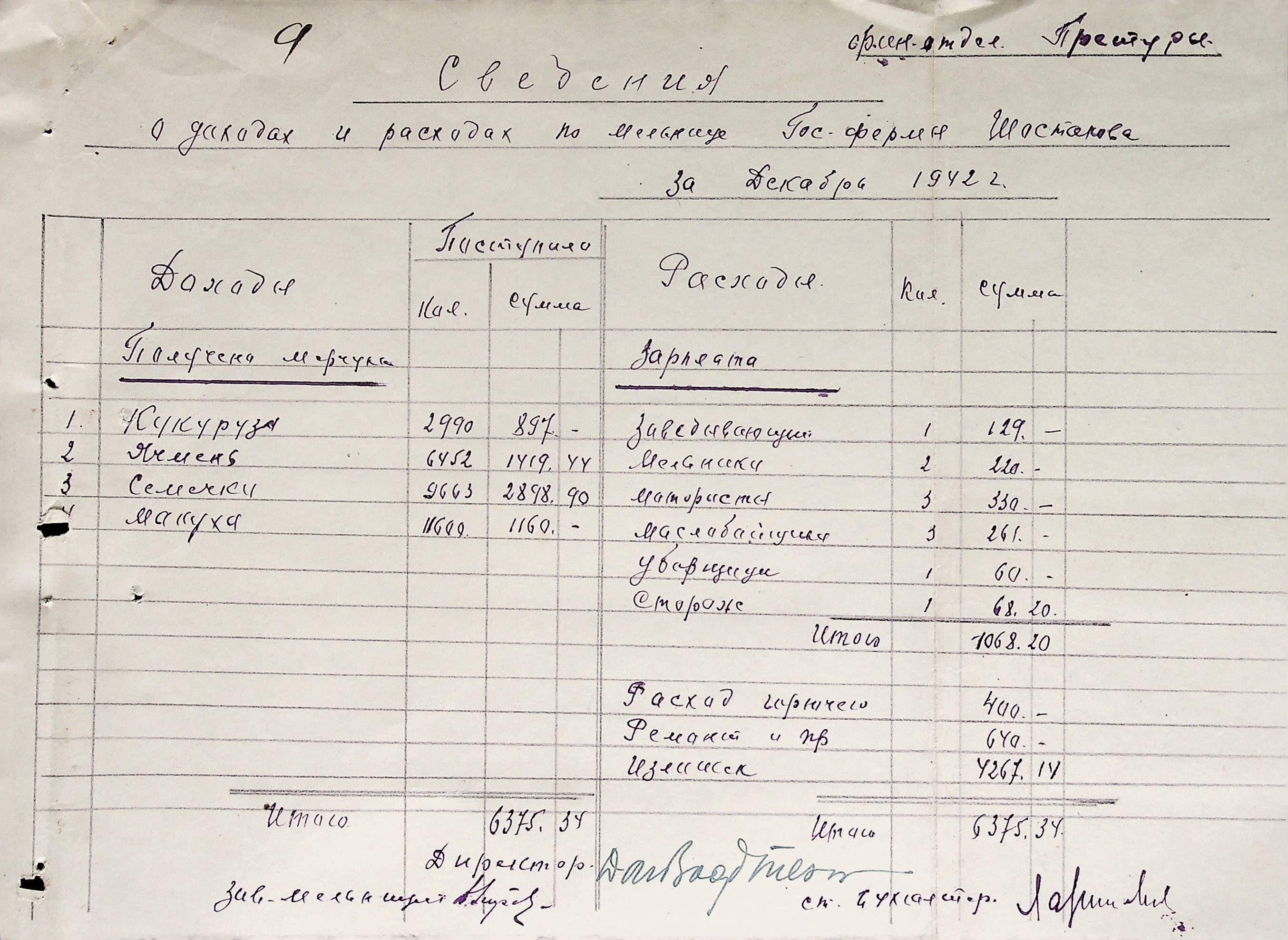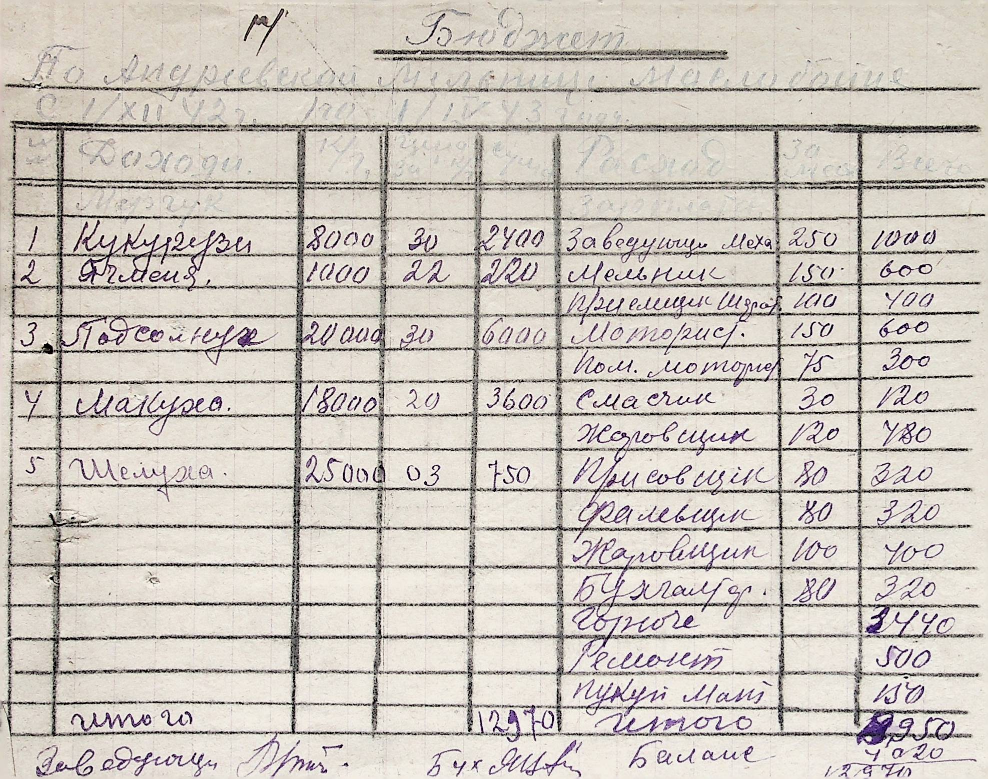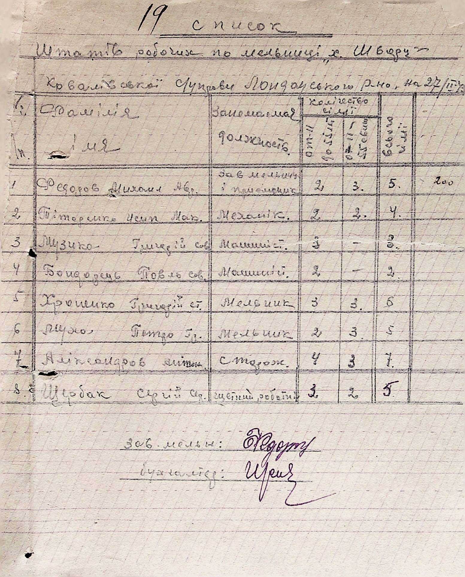 • • • • Справа № 38 “Документи (штатні розписи, бюджети, розрахунки, відомості, рапорт, списки) по млинах і олійнях Ландауського району”
