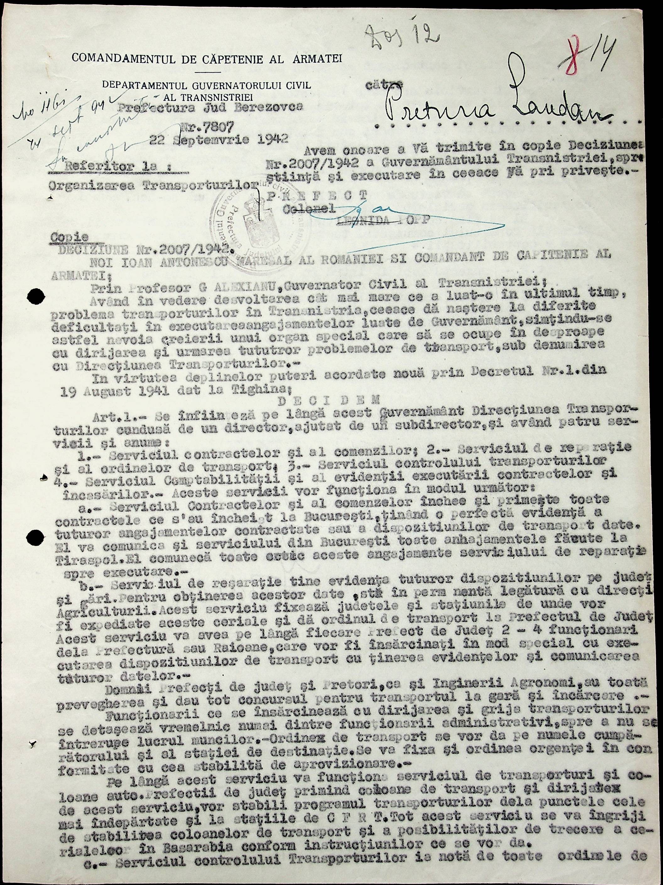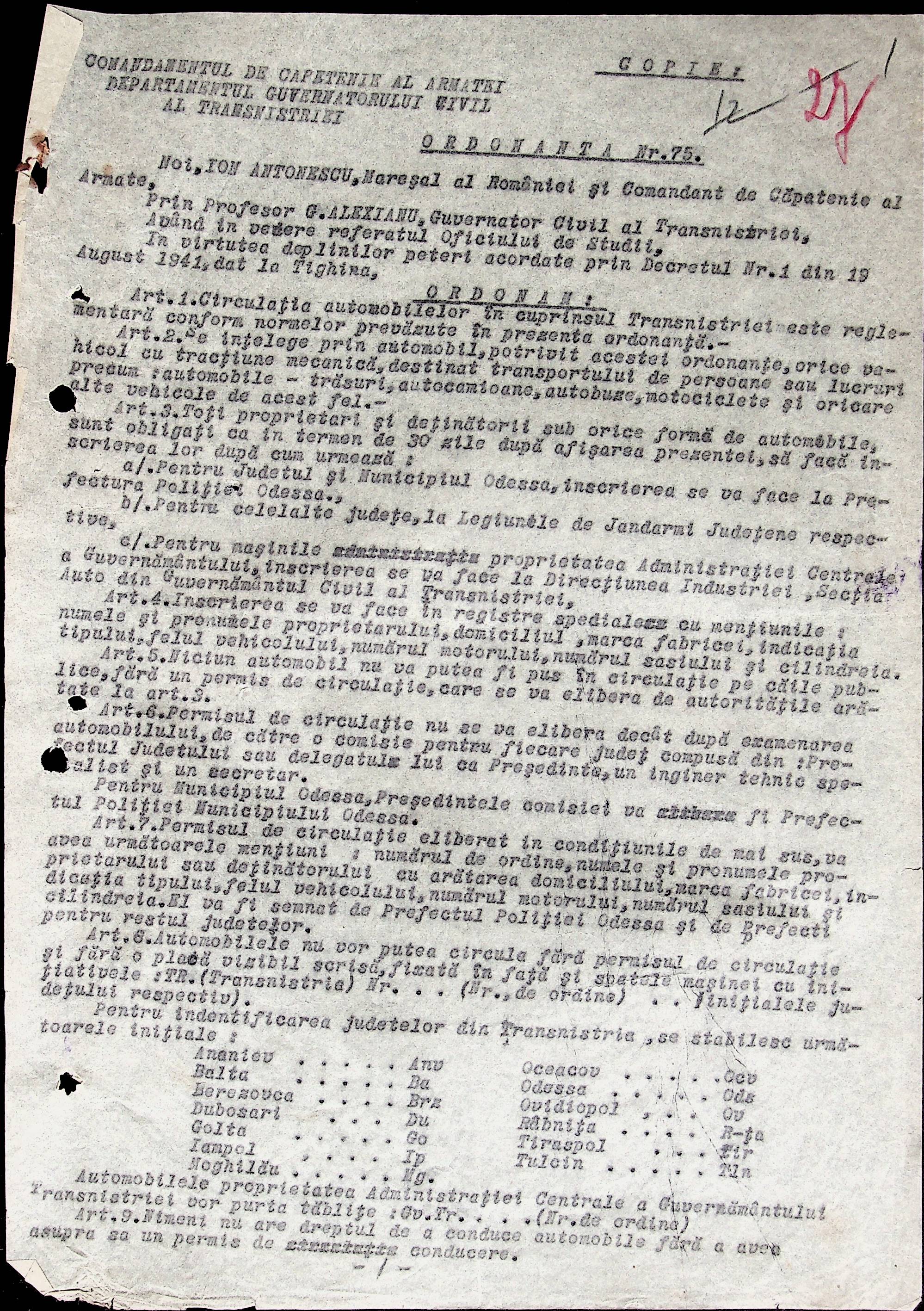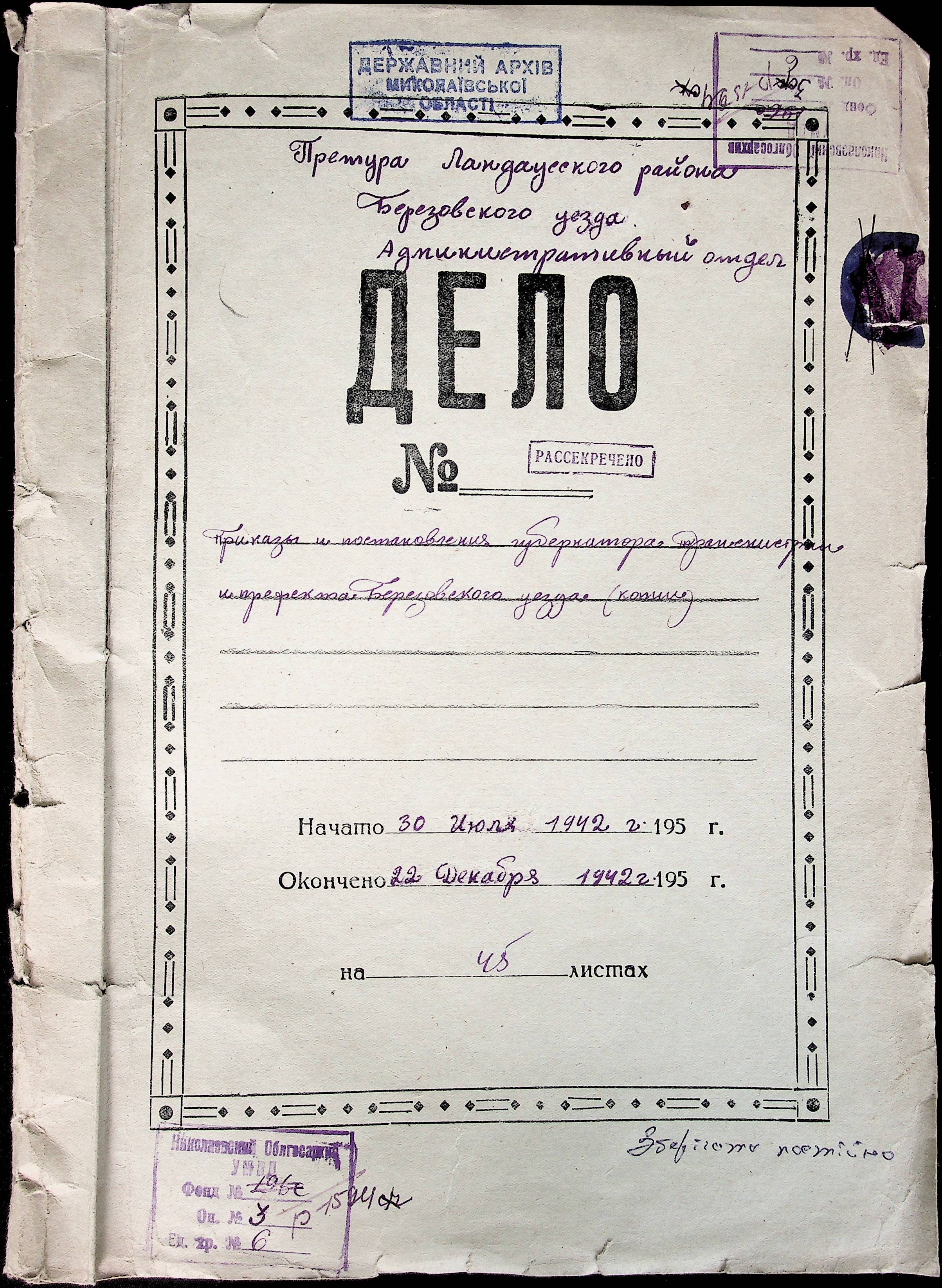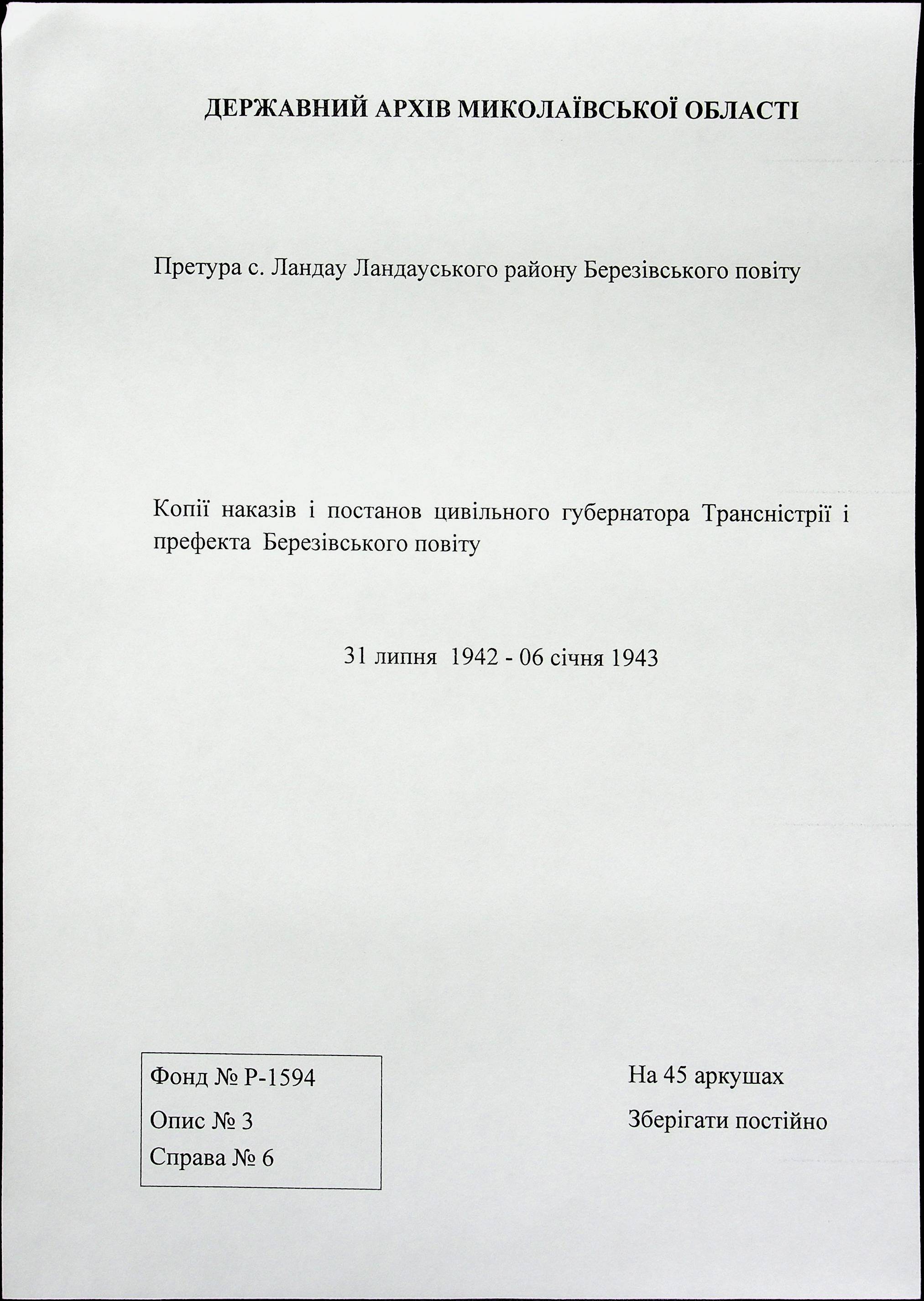 • • • • Справа № 6 “Копії наказів і постанов цивільного губернатора Трансністрії і префекта Березівського повіту”