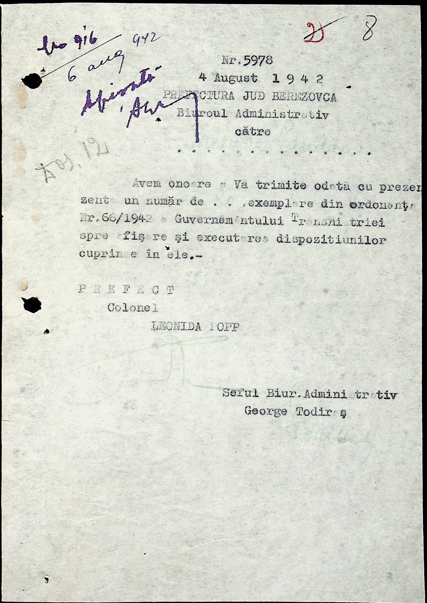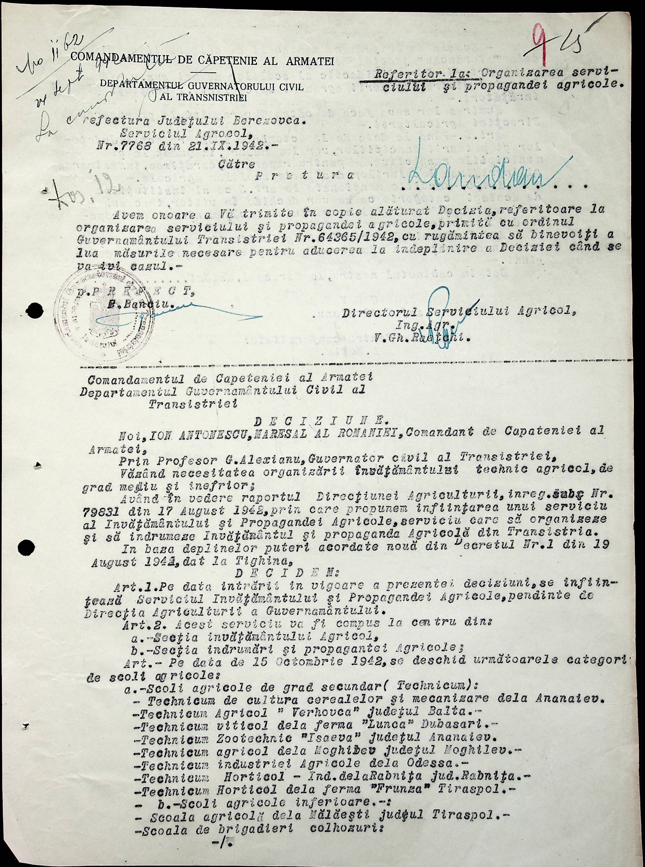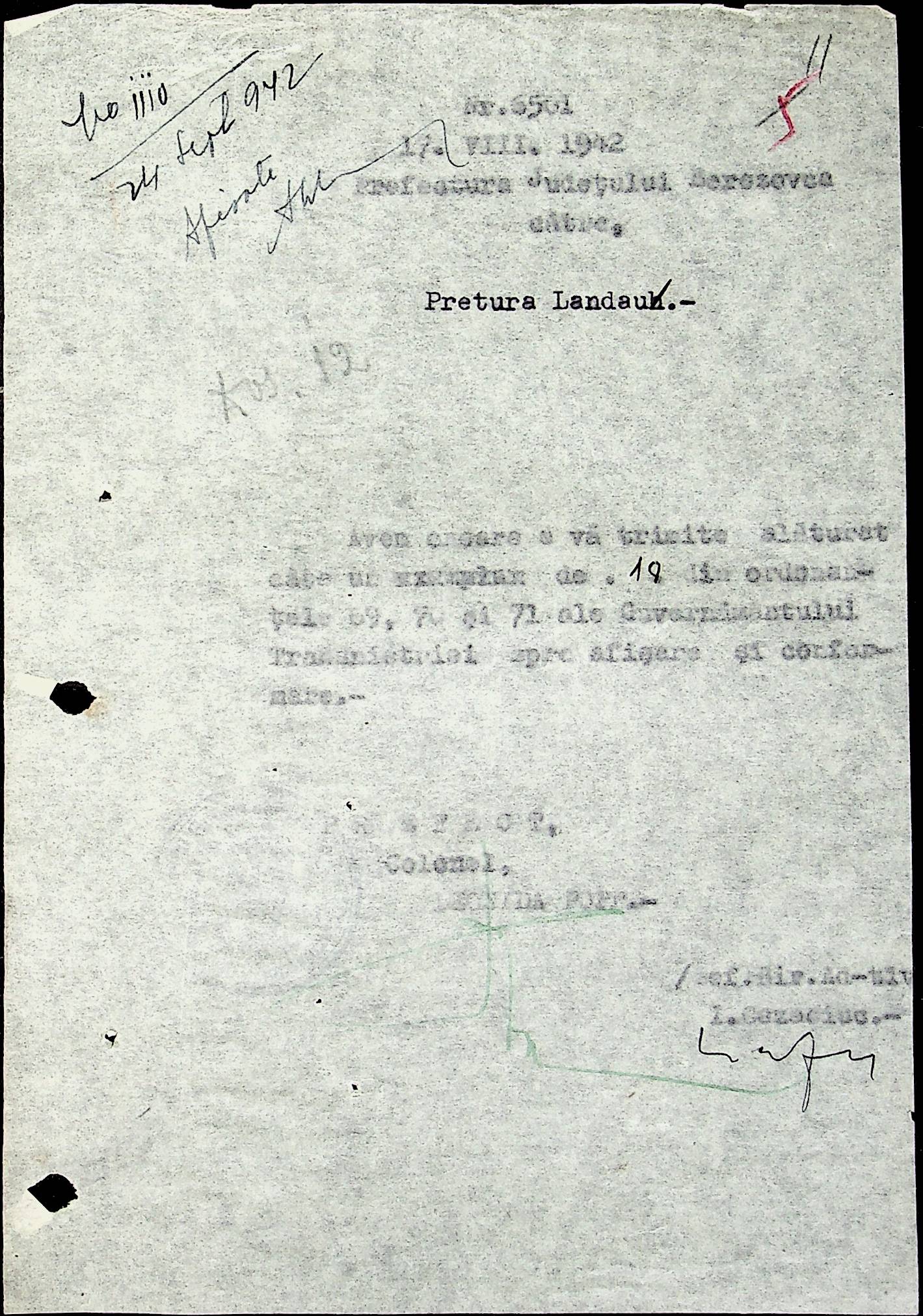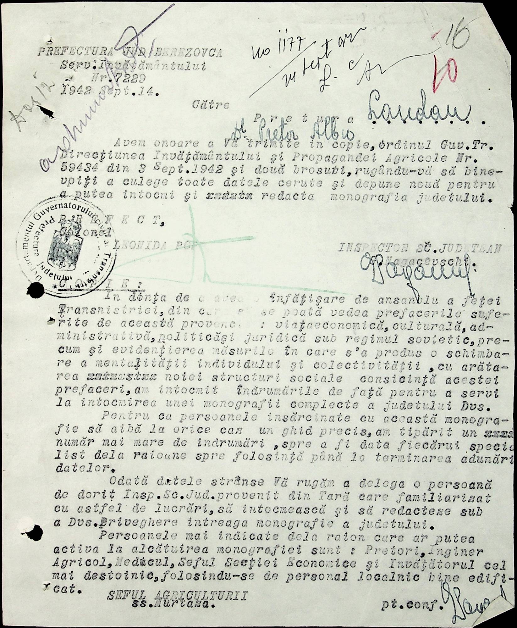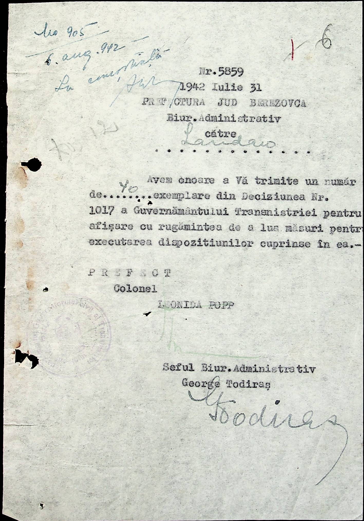 • • • • Справа № 6 “Копії наказів і постанов цивільного губернатора Трансністрії і префекта Березівського повіту”