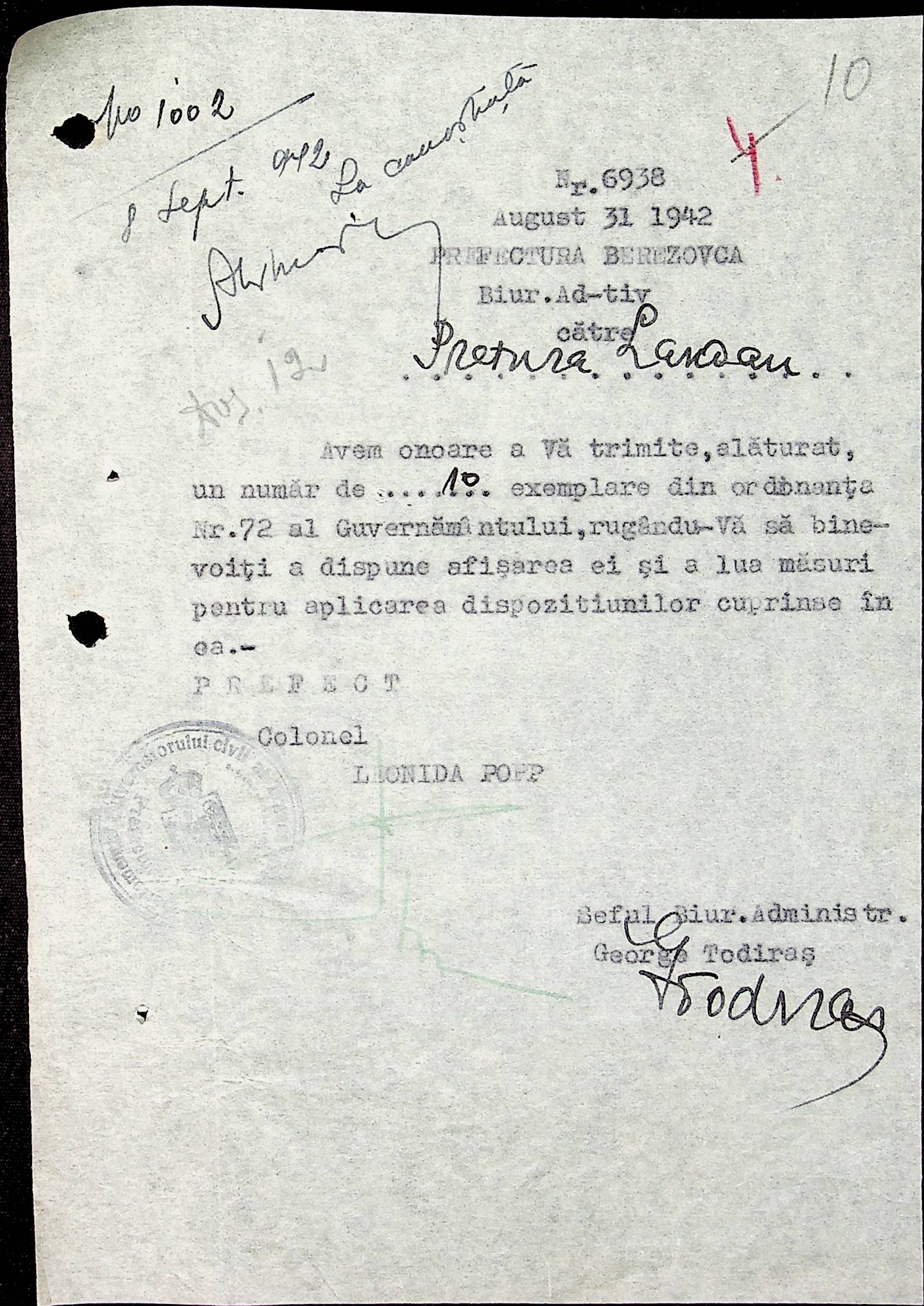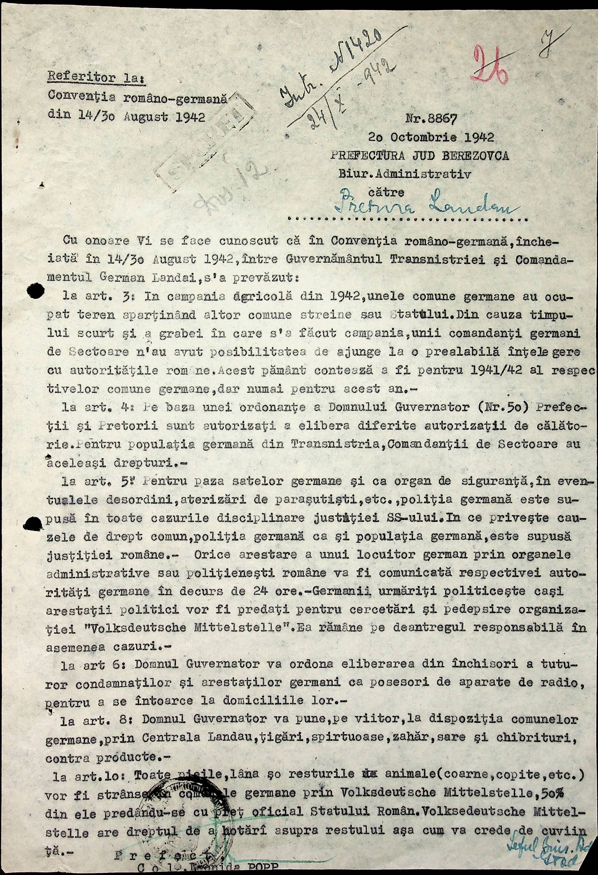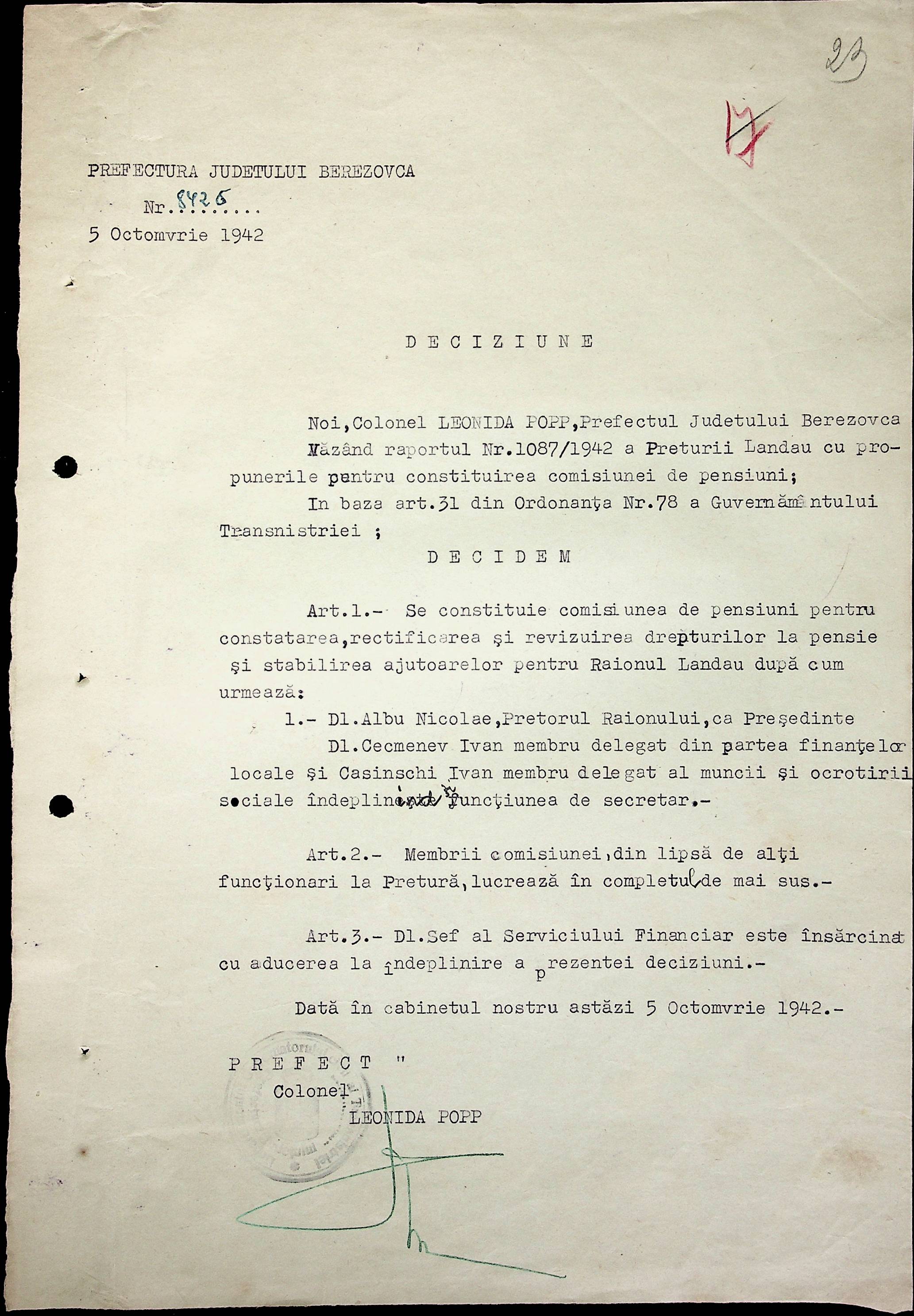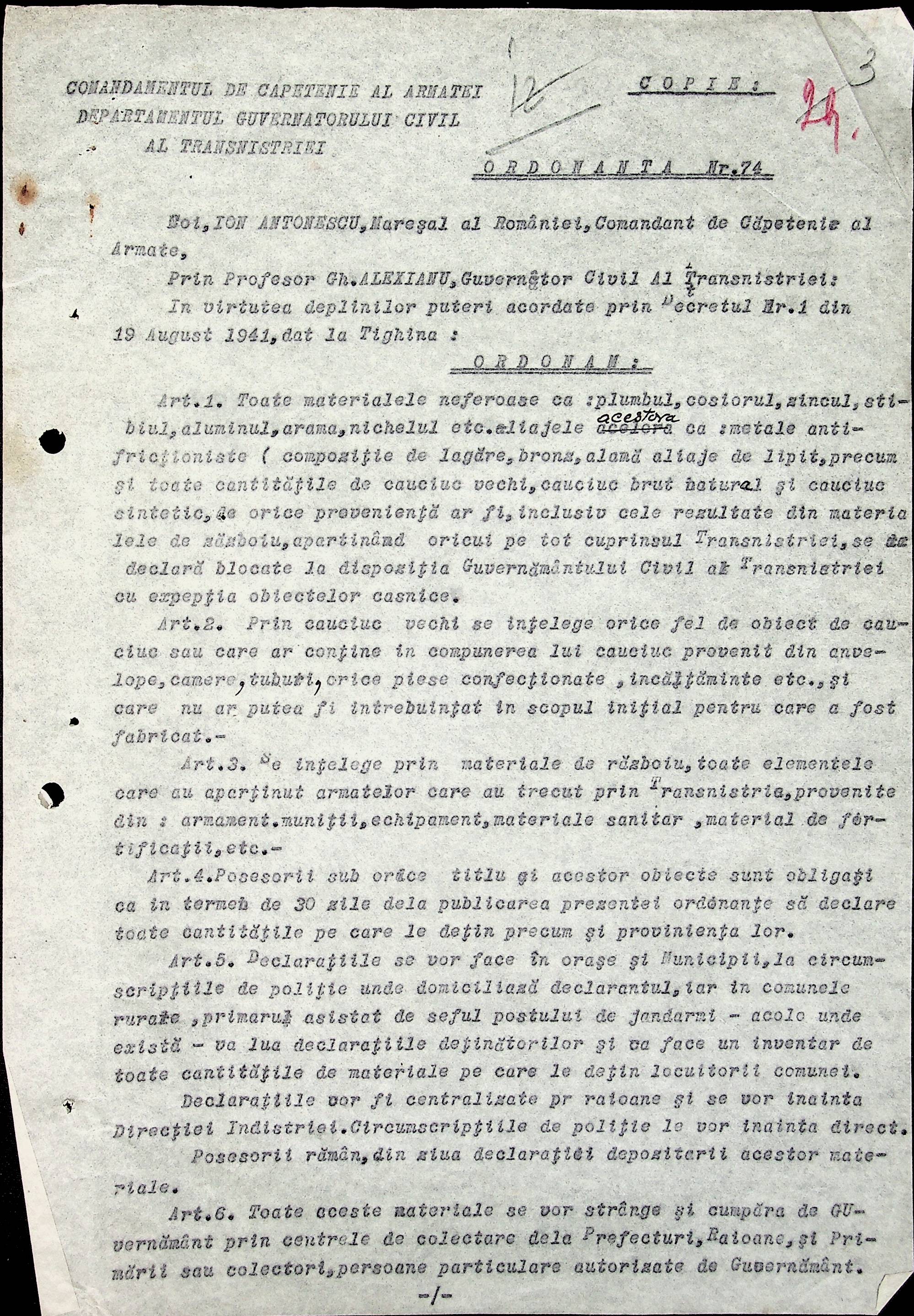 • • • • Справа № 6 “Копії наказів і постанов цивільного губернатора Трансністрії і префекта Березівського повіту”