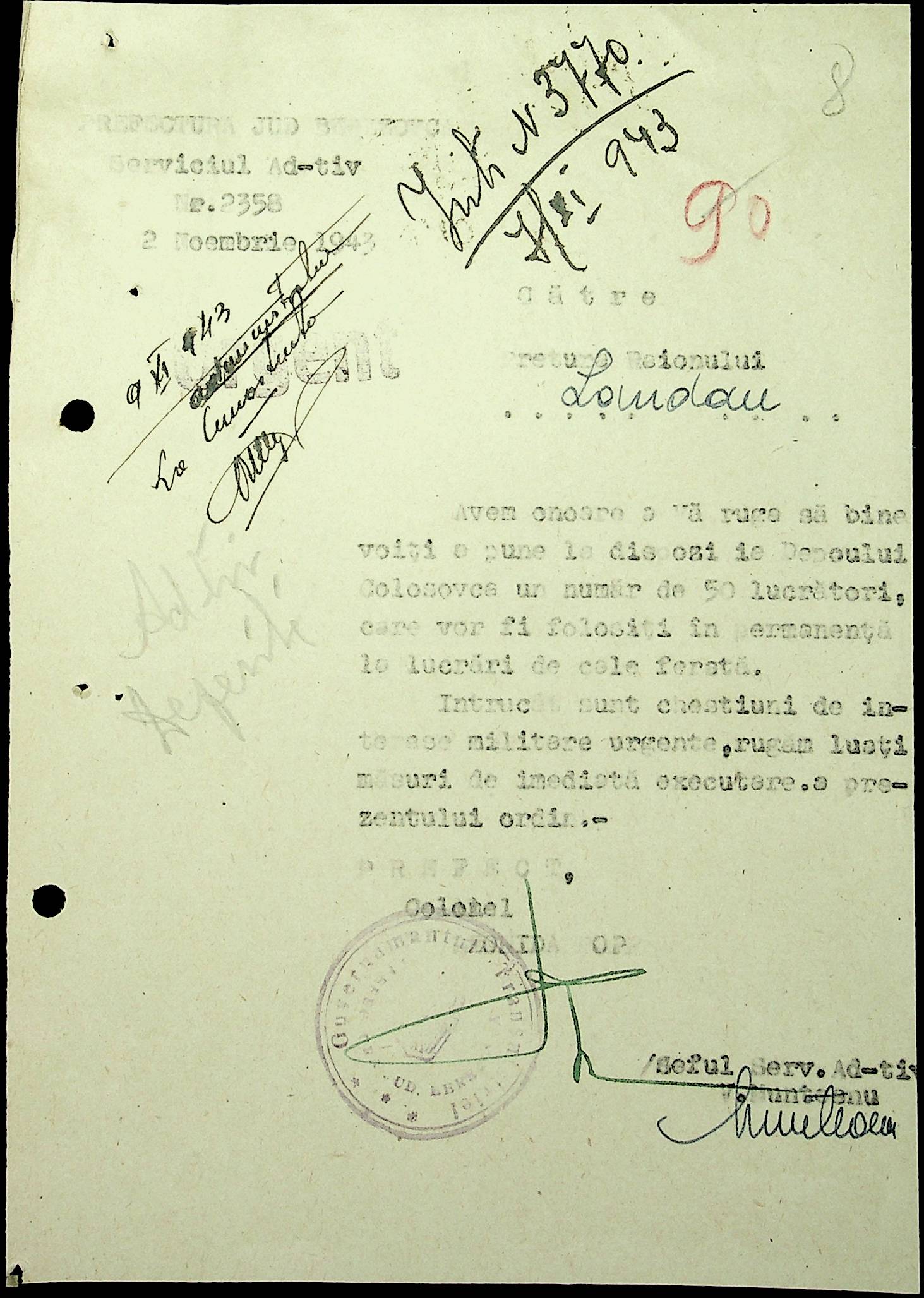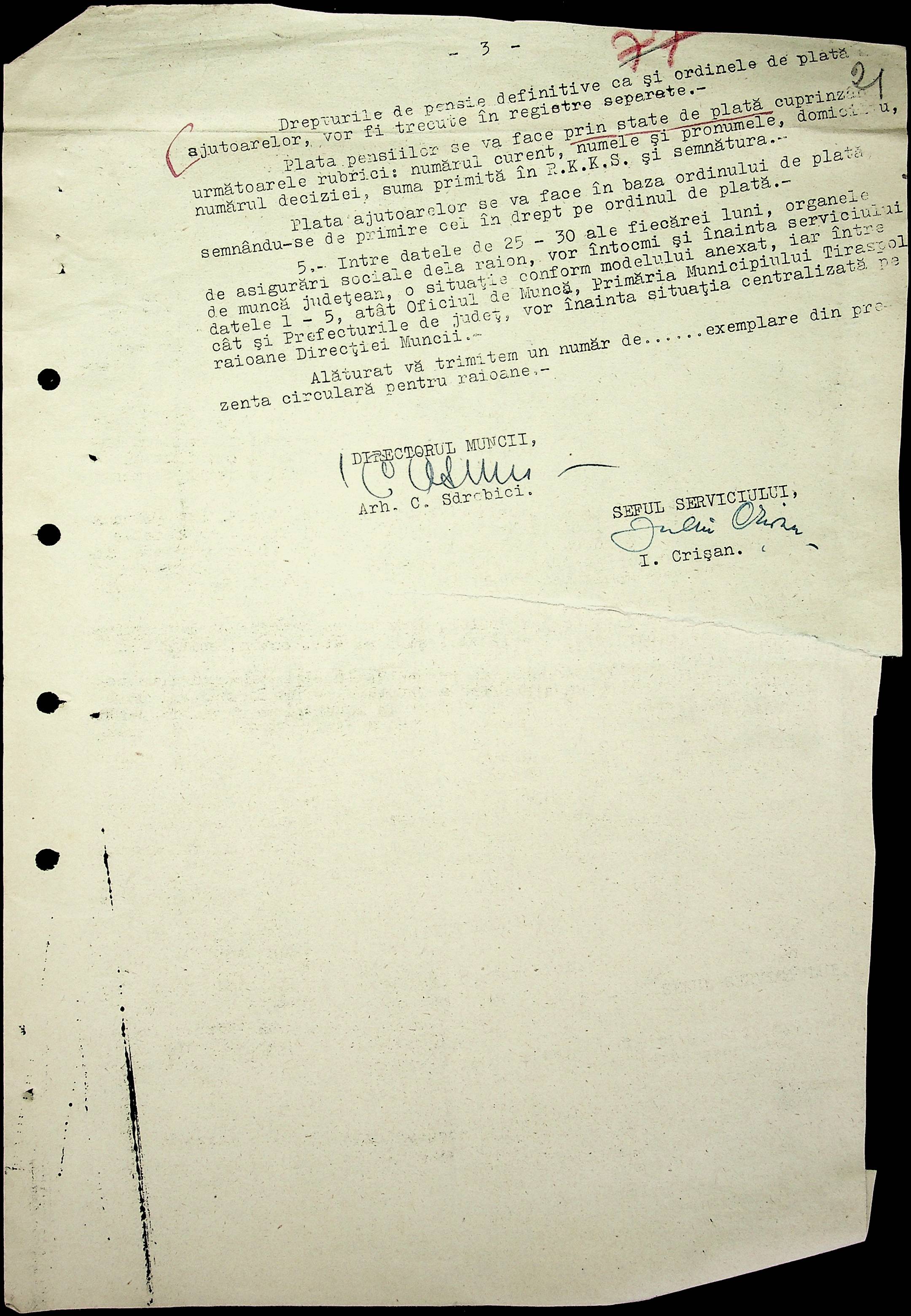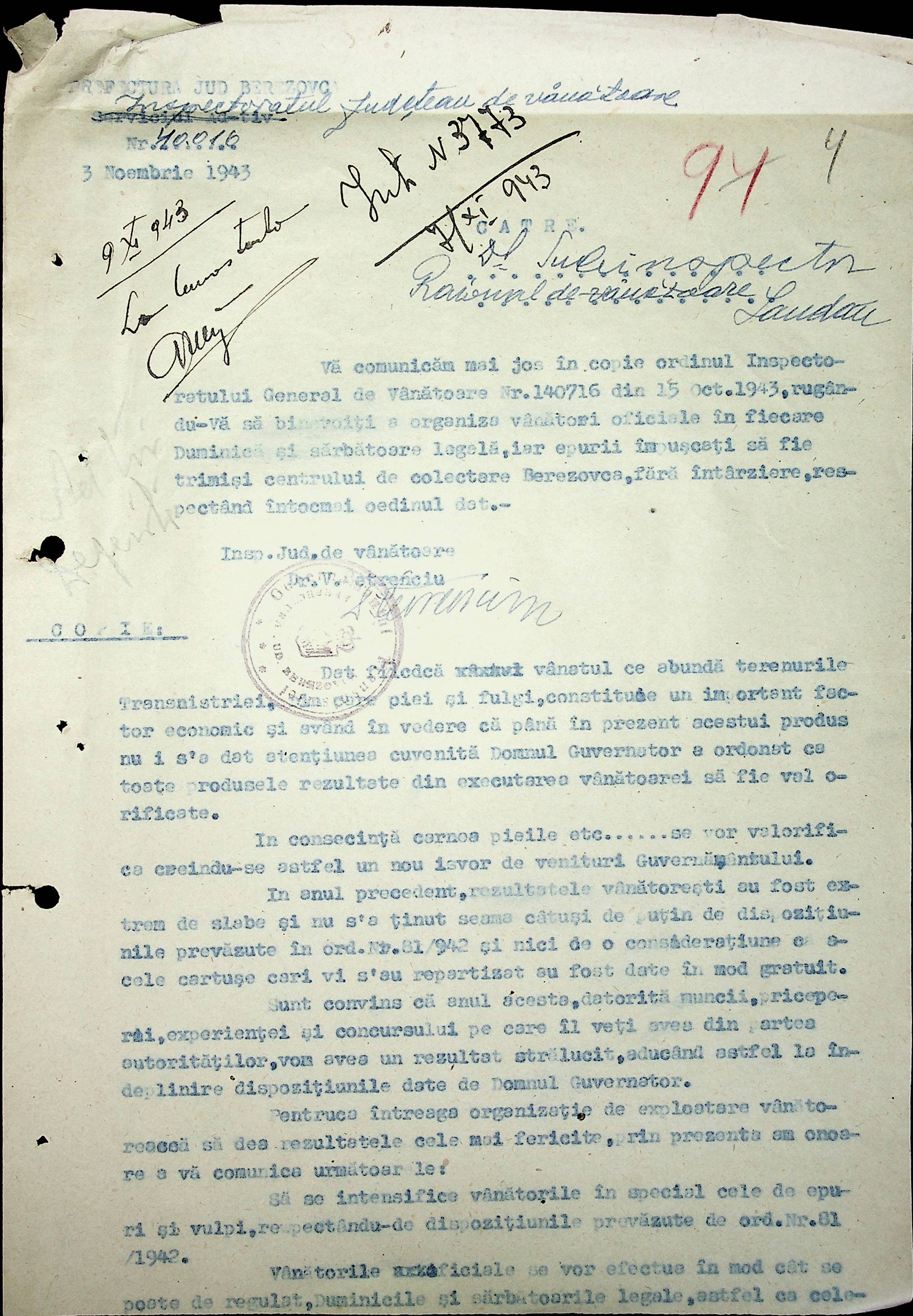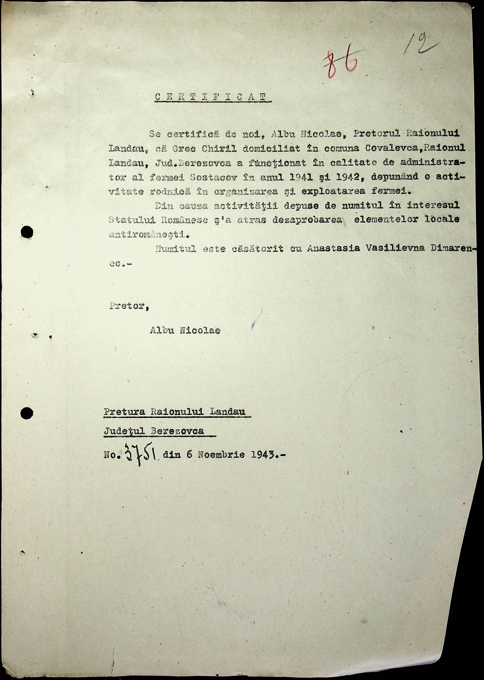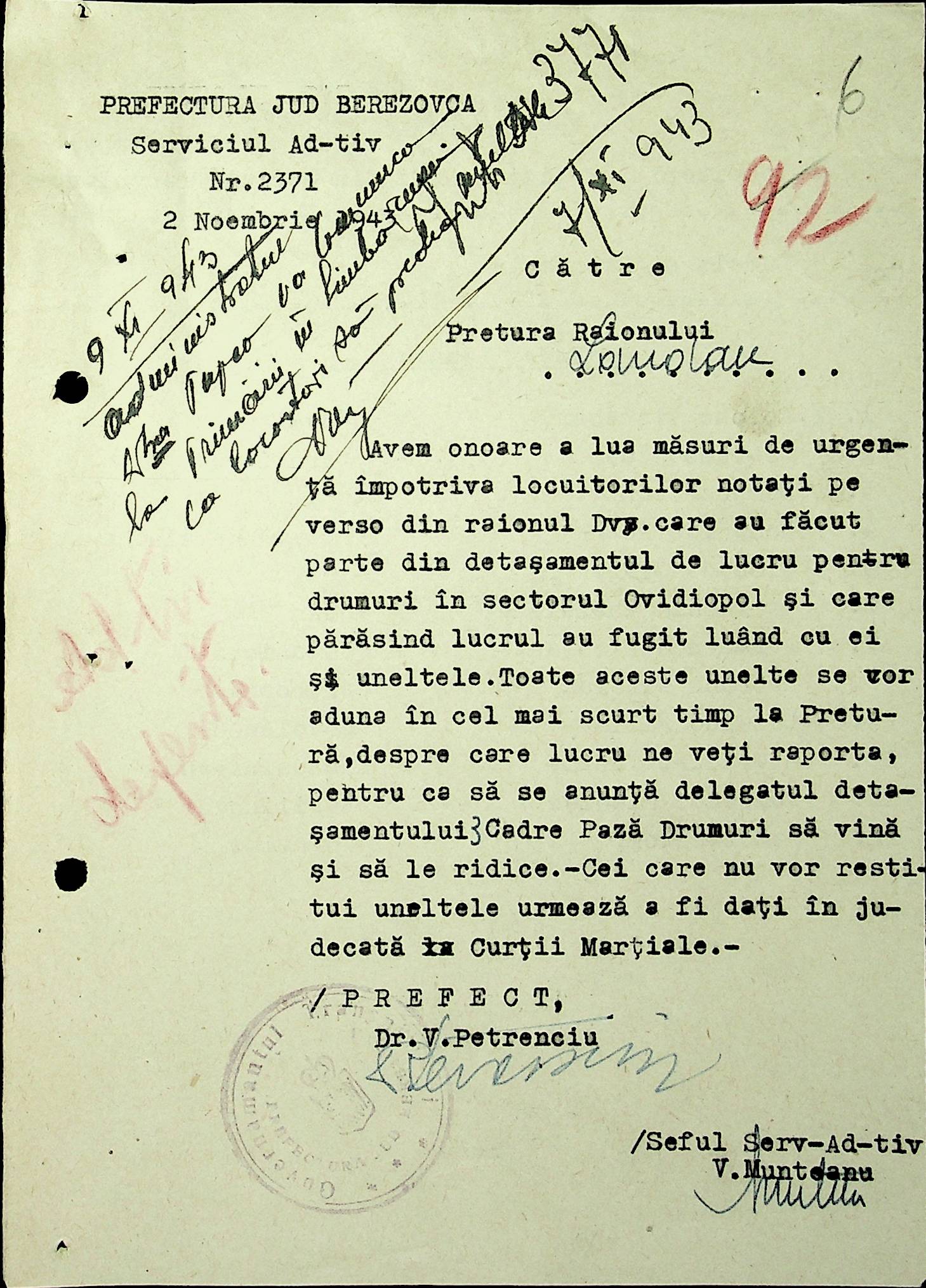 • • • • Справа № 7 “Копії постанов, наказ і обіжник дирекції праці губернаторства Трансністрії і 15-ої піхотної дивізії румунської армії про організацію страхування в Трансністрії, створення загонів захисту місцевої протипожежної оборони. Листування з префектурою про покарання окремих жителів, які відмовилися співпрацювати з окупаційною владою. Список співробітників Ландауської претури, призначених до евакуації в Румунію”