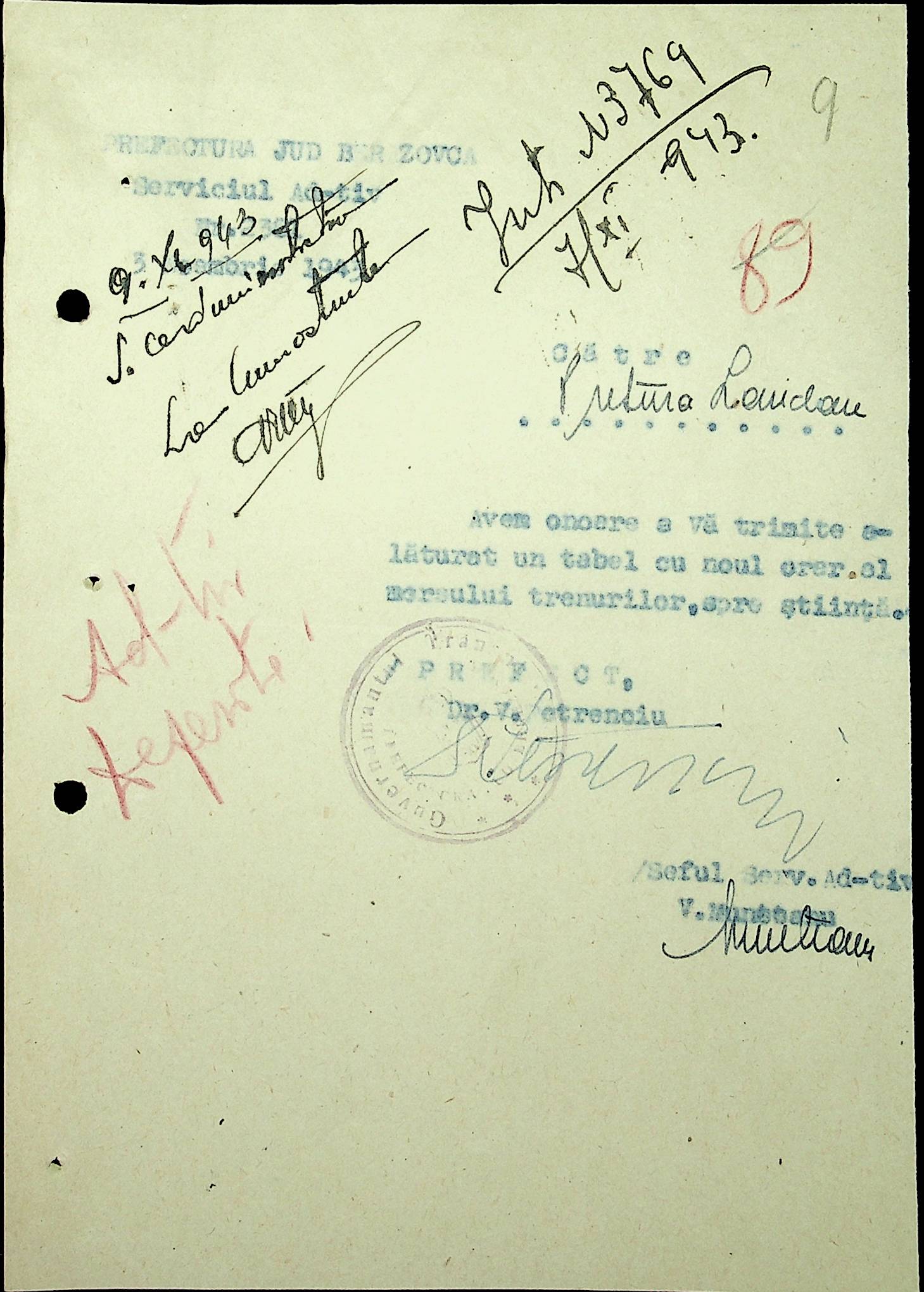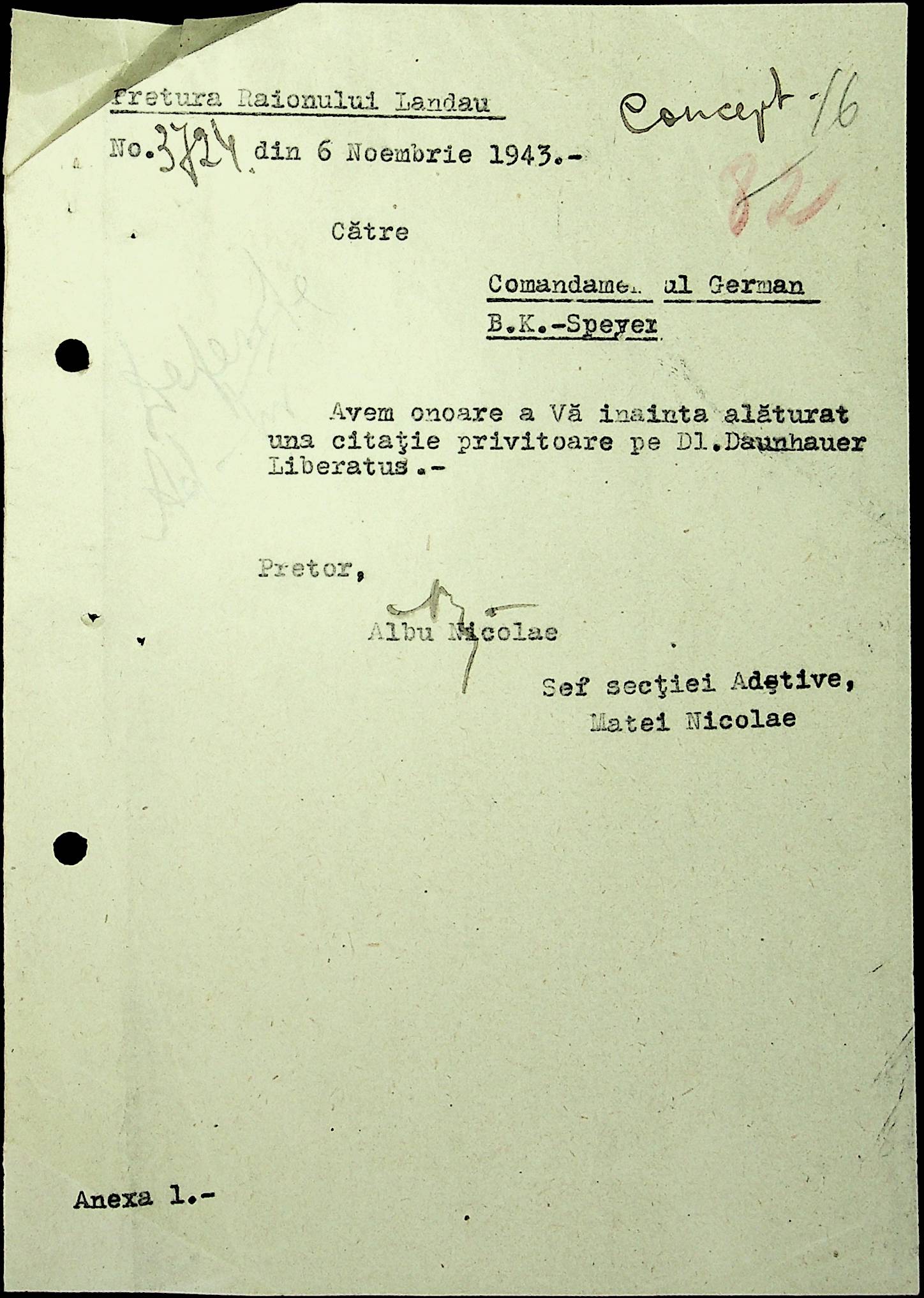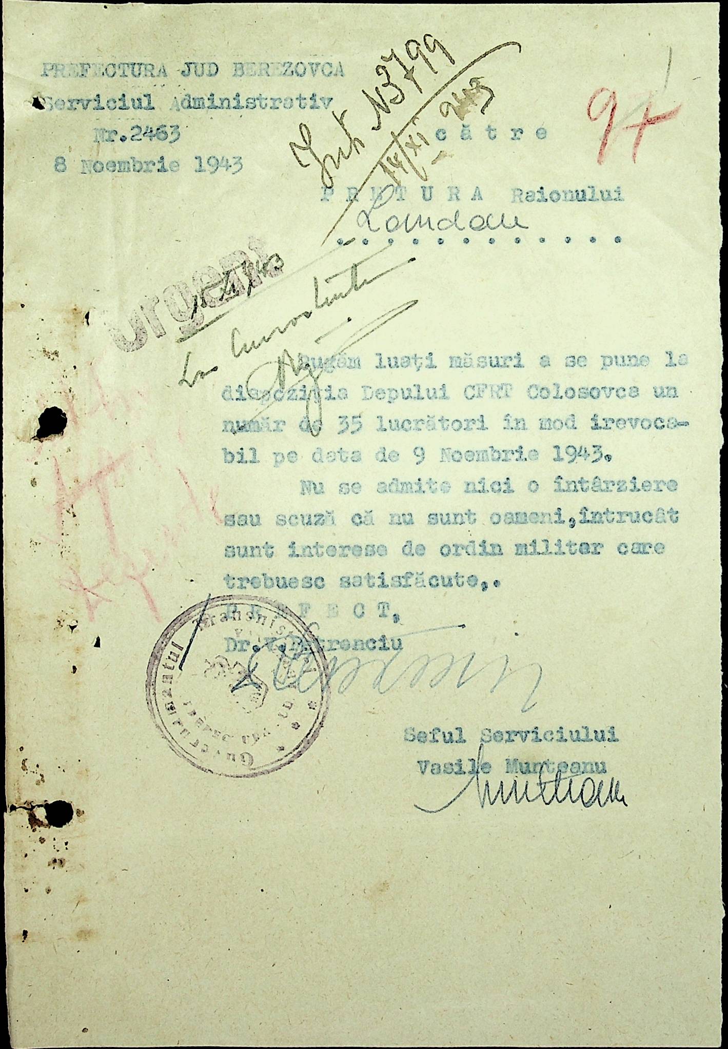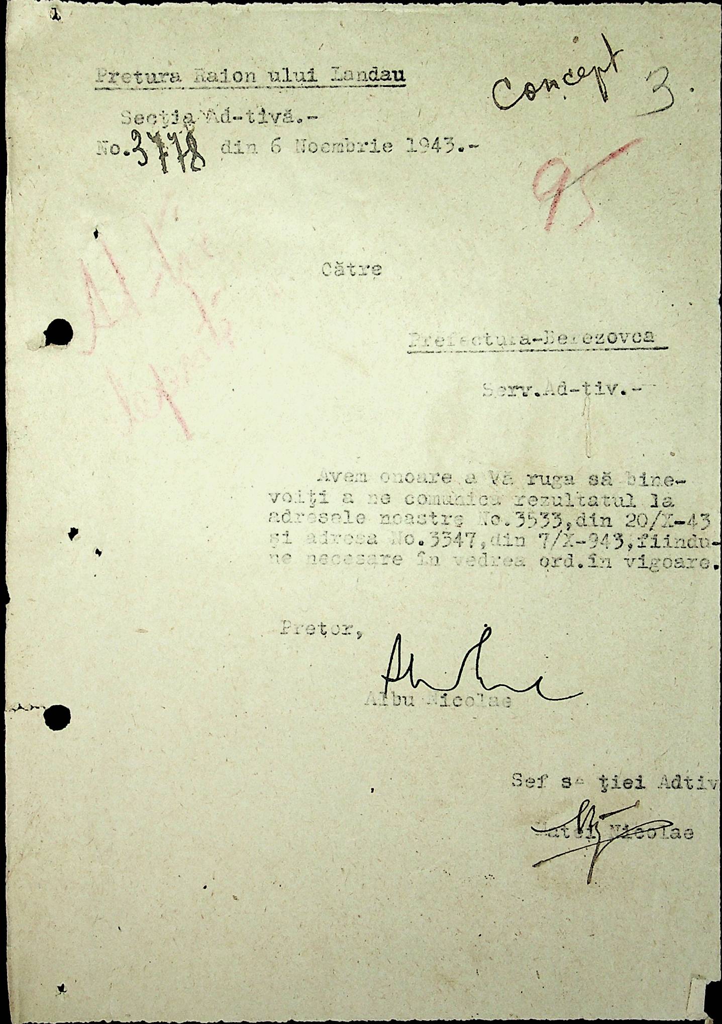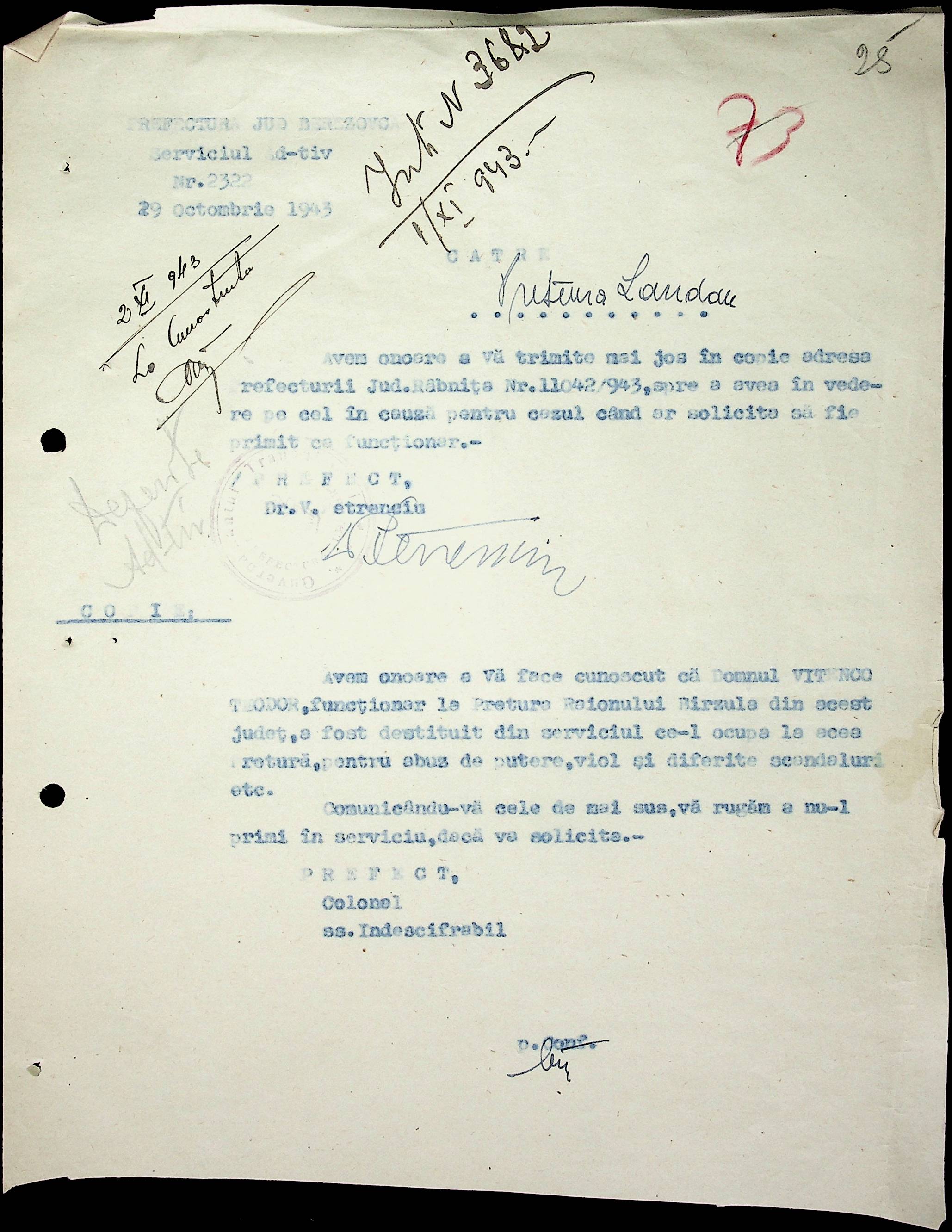 • • • • Справа № 7 “Копії постанов, наказ і обіжник дирекції праці губернаторства Трансністрії і 15-ої піхотної дивізії румунської армії про організацію страхування в Трансністрії, створення загонів захисту місцевої протипожежної оборони. Листування з префектурою про покарання окремих жителів, які відмовилися співпрацювати з окупаційною владою. Список співробітників Ландауської претури, призначених до евакуації в Румунію”