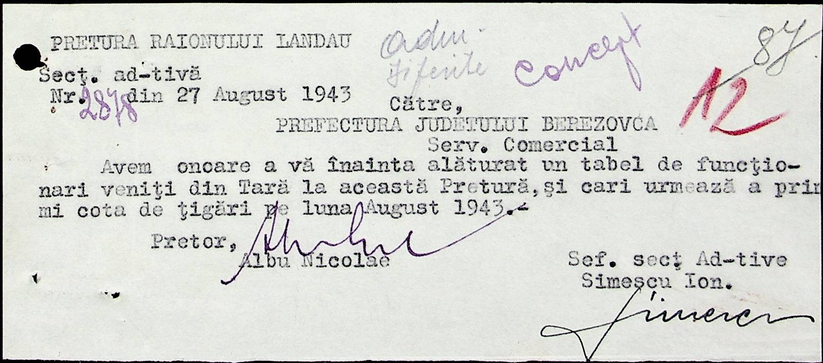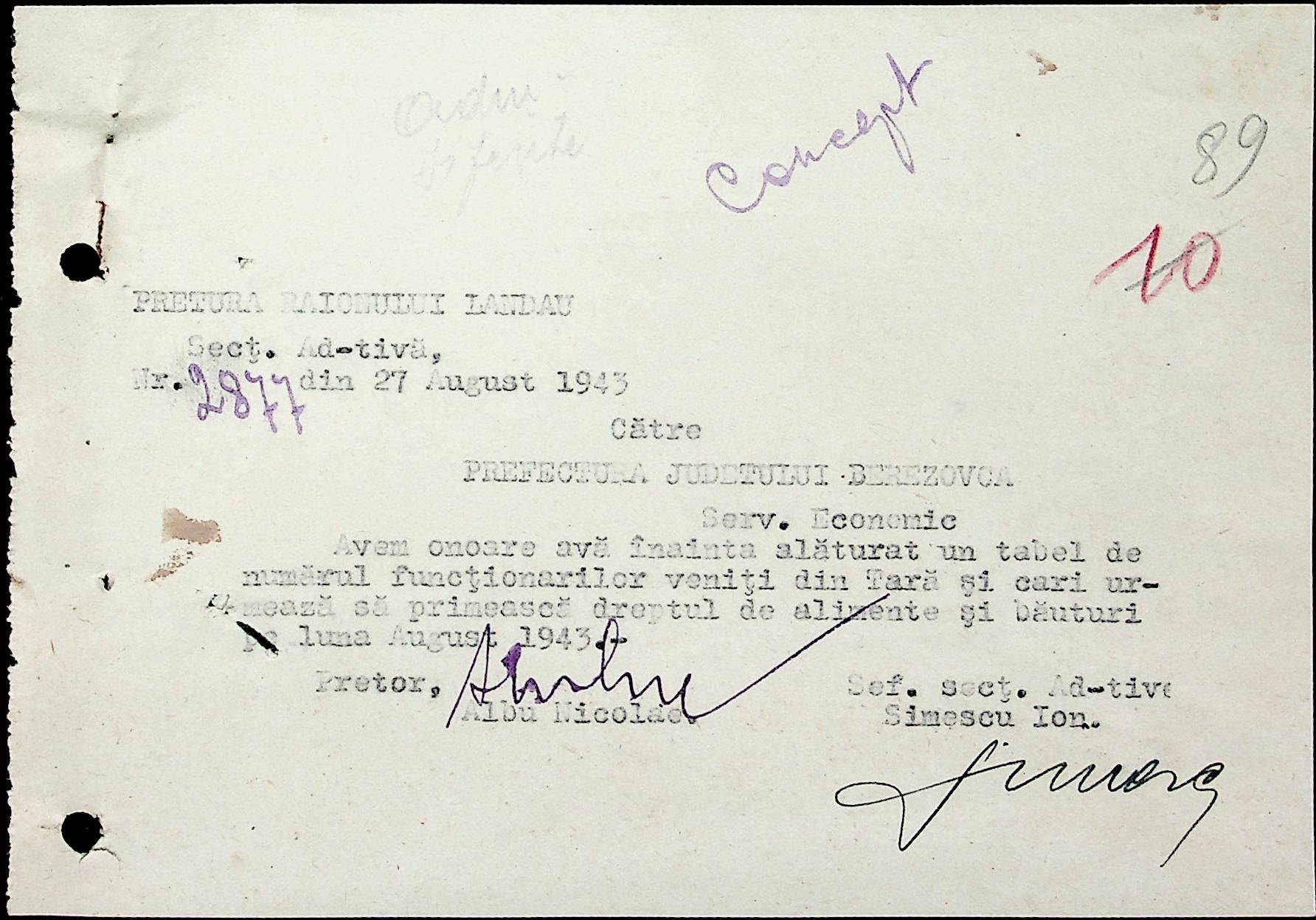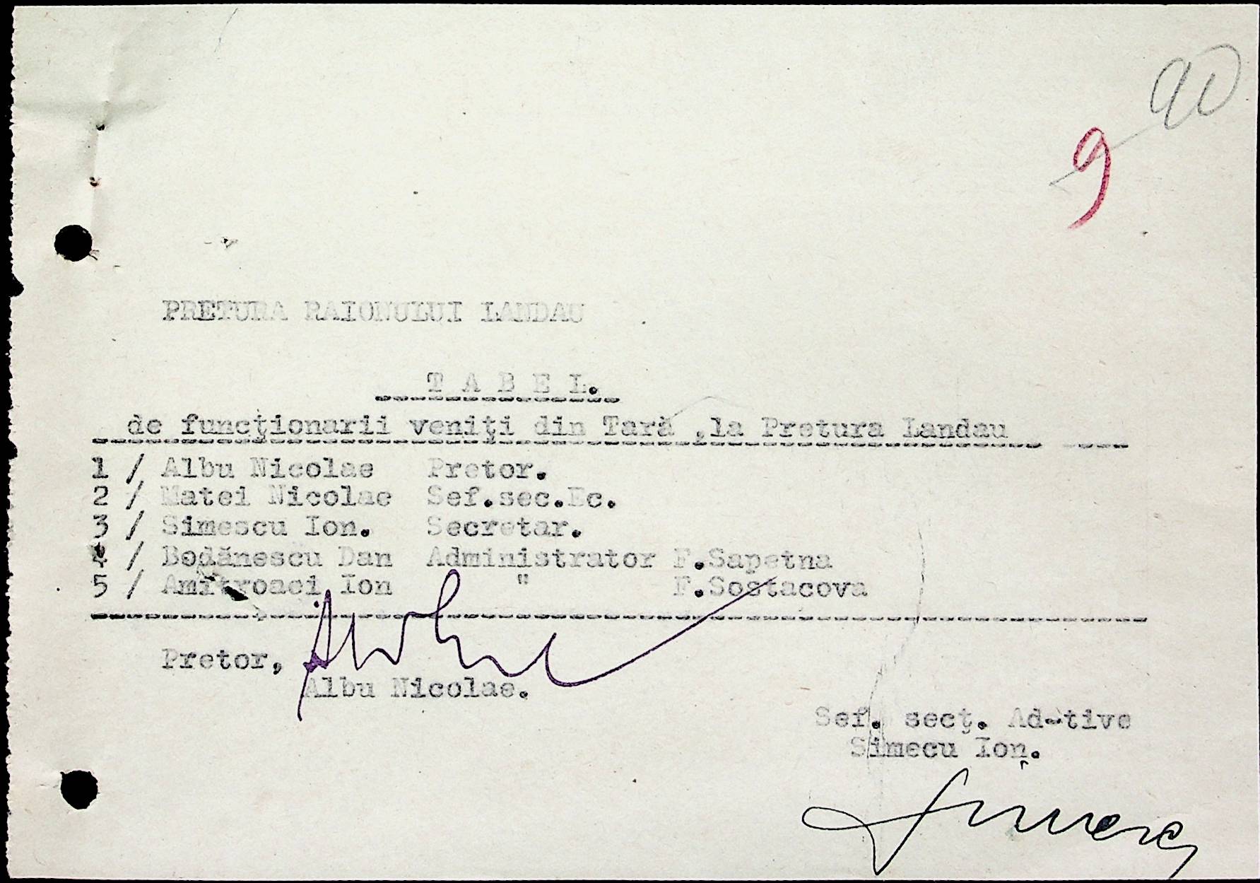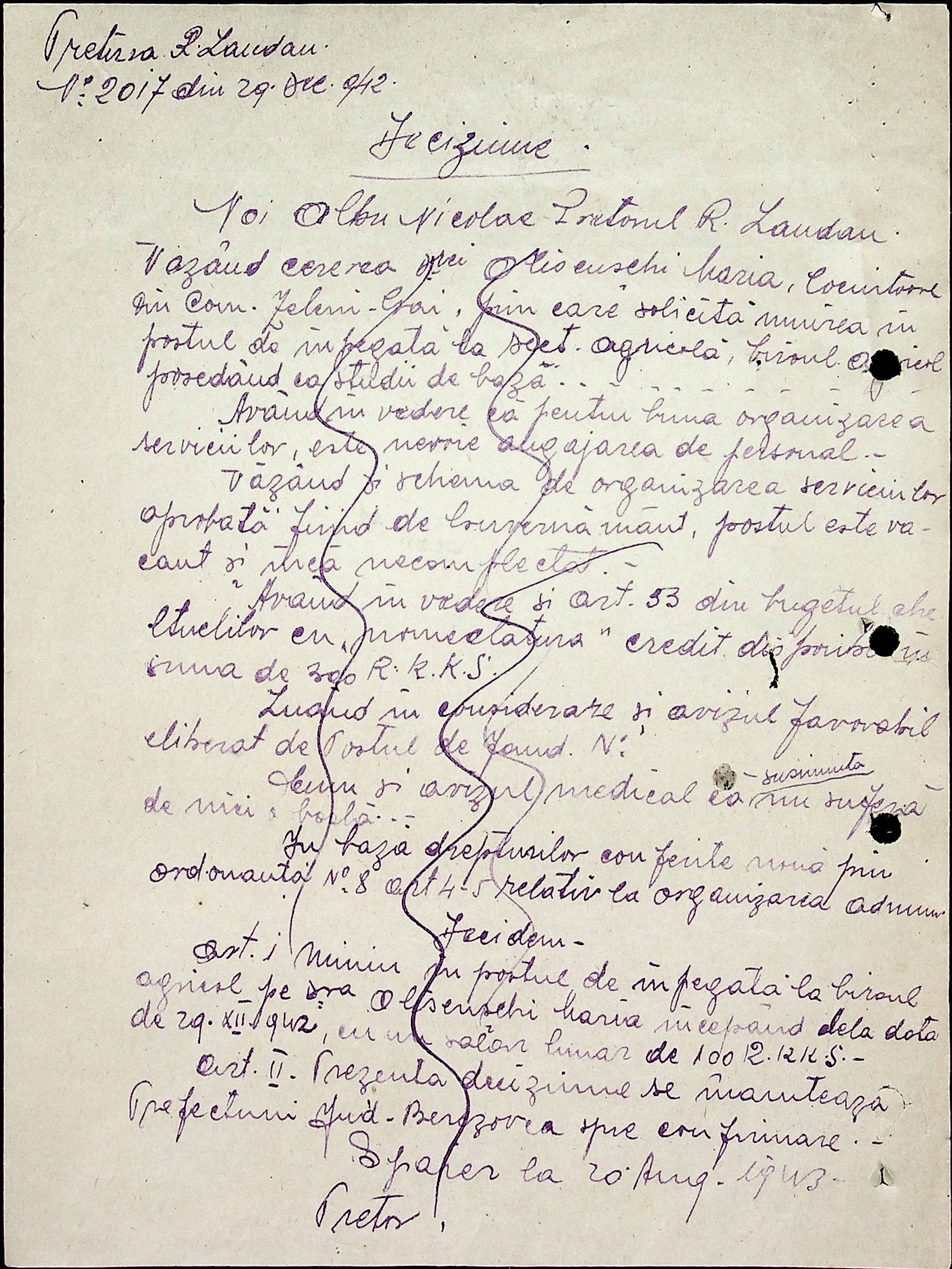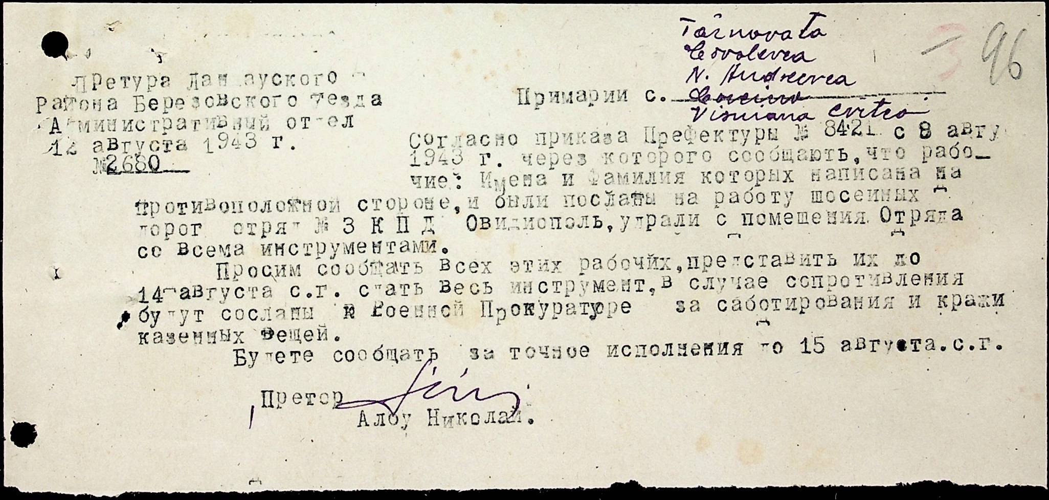 • • • • Справа № 7 “Копії постанов, наказ і обіжник дирекції праці губернаторства Трансністрії і 15-ої піхотної дивізії румунської армії про організацію страхування в Трансністрії, створення загонів захисту місцевої протипожежної оборони. Листування з префектурою про покарання окремих жителів, які відмовилися співпрацювати з окупаційною владою. Список співробітників Ландауської претури, призначених до евакуації в Румунію”