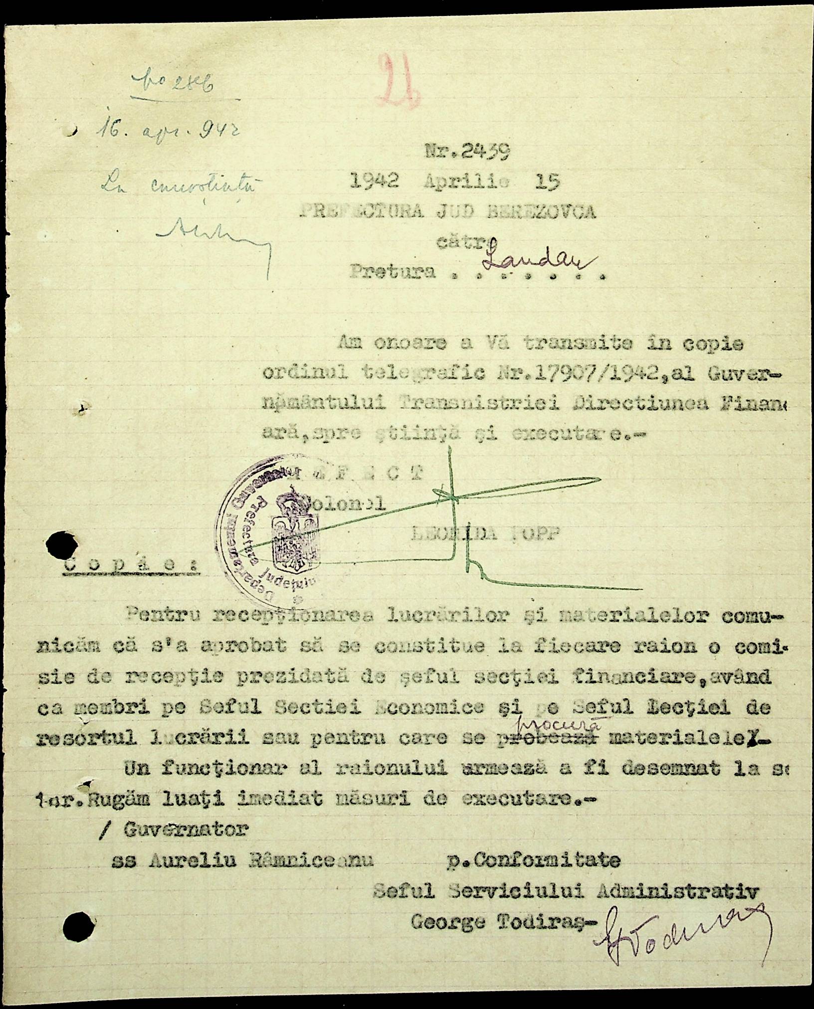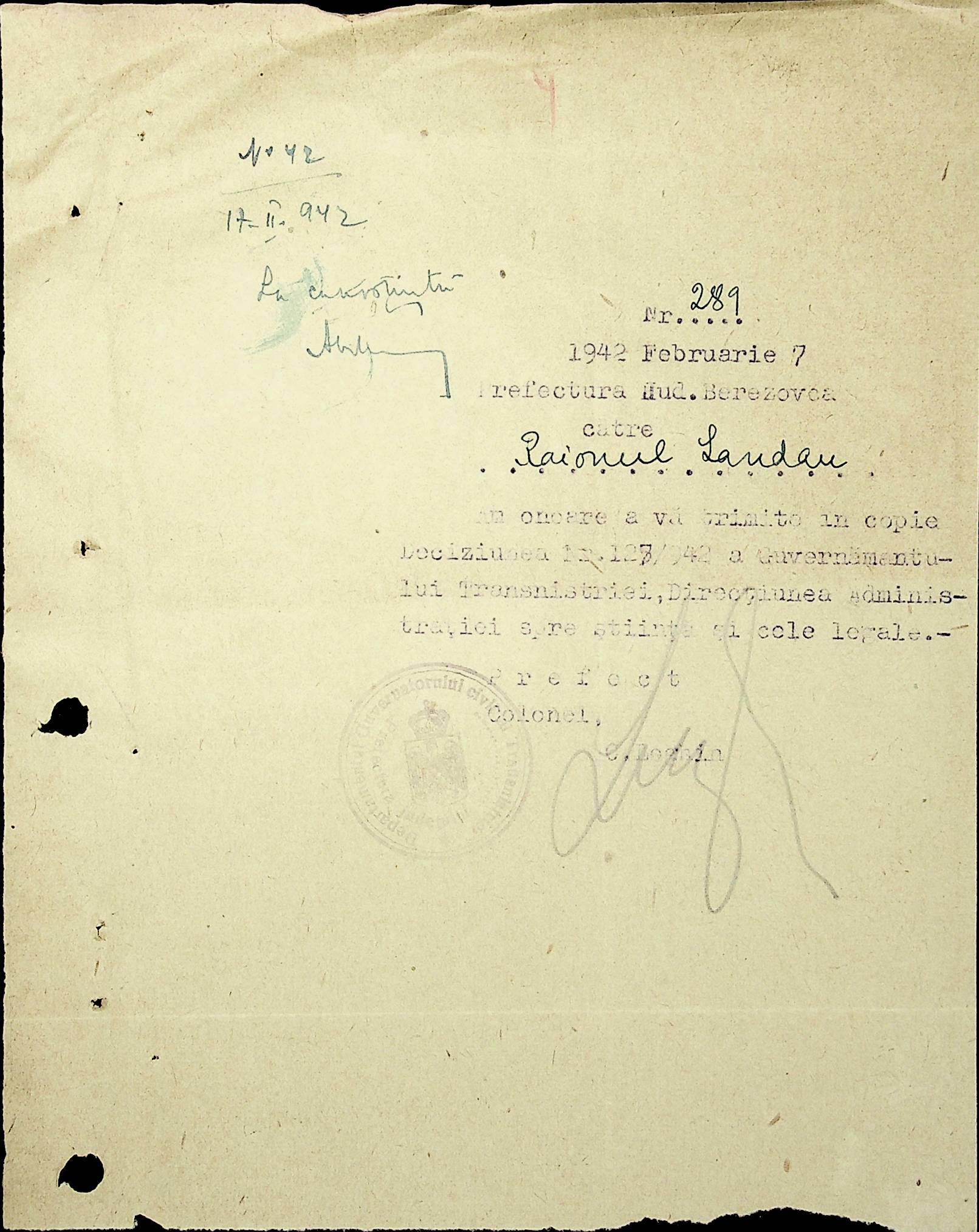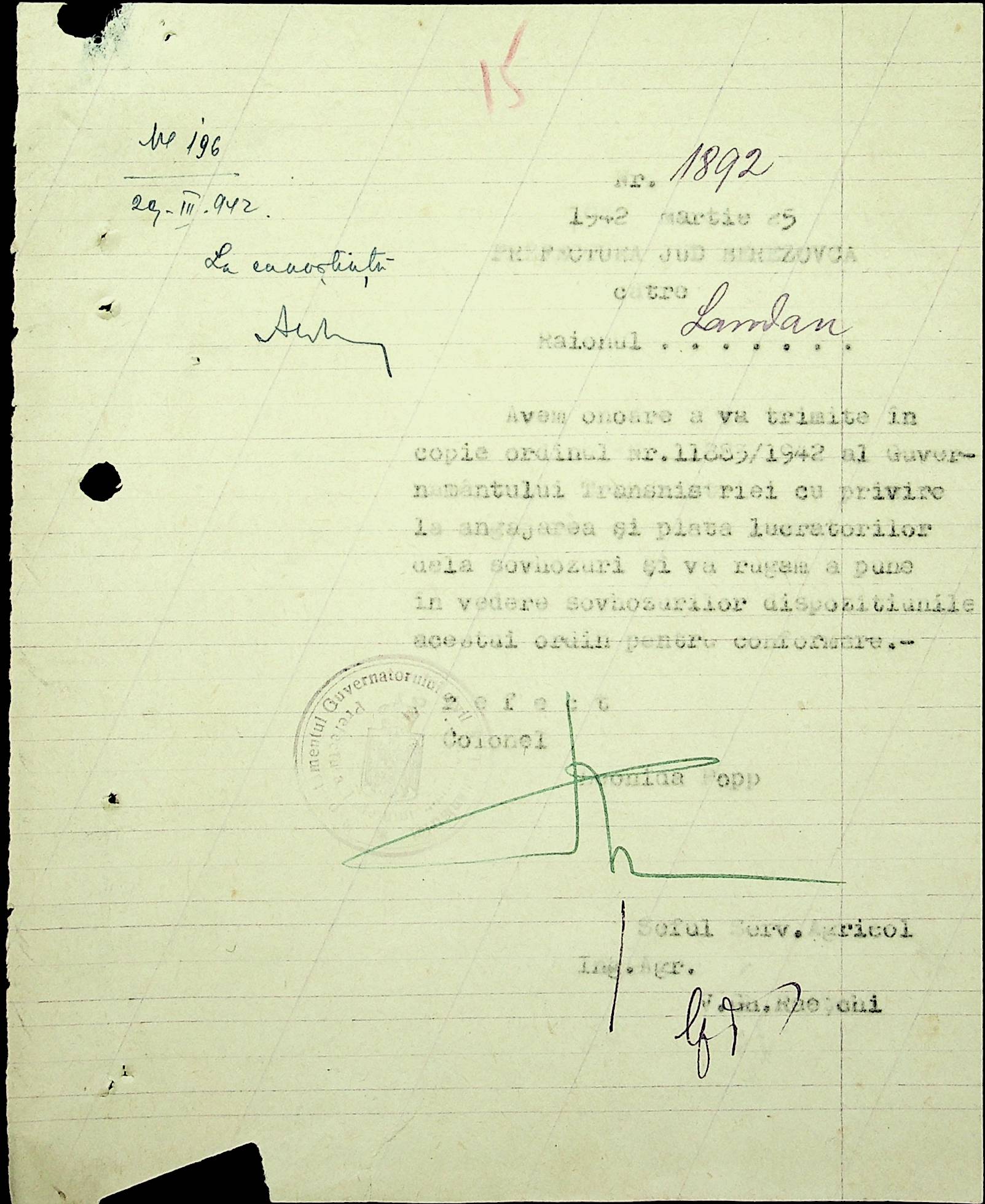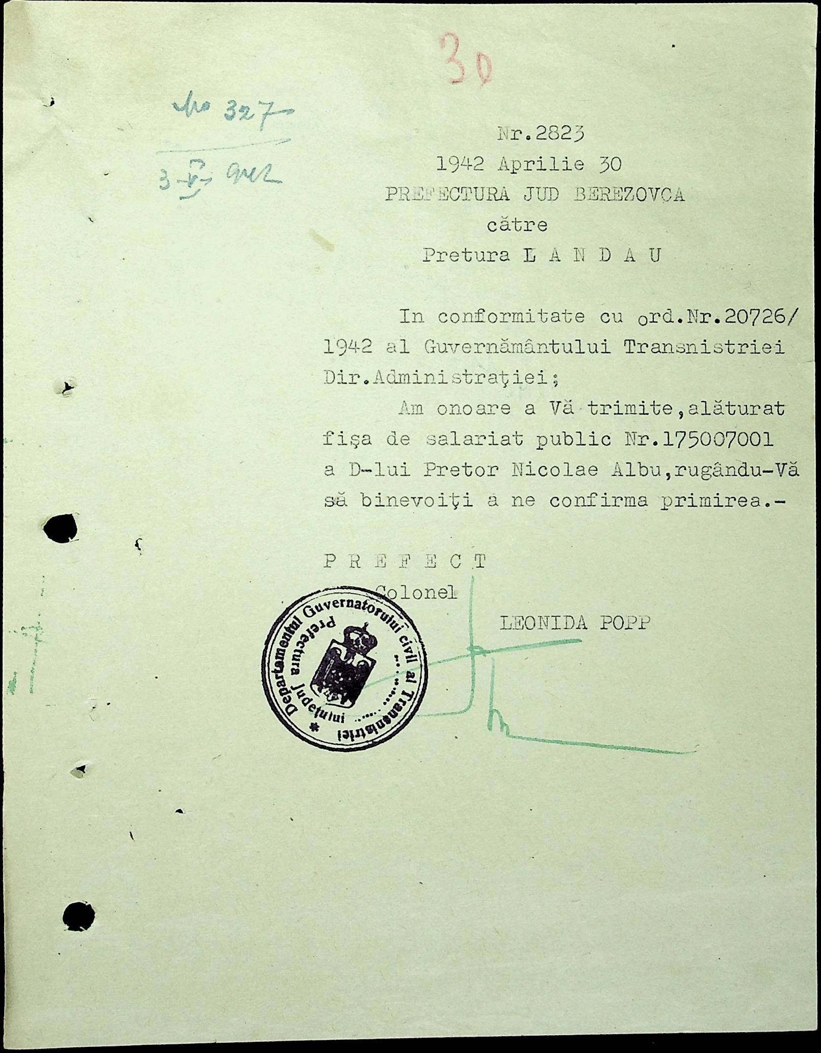 • • • • Справа № 8 “Копії постанов цивільного губернатора Трансністрії і претора Ландауського району про призначення працівників на роботу, прохання різних осіб про прийом на роботу”