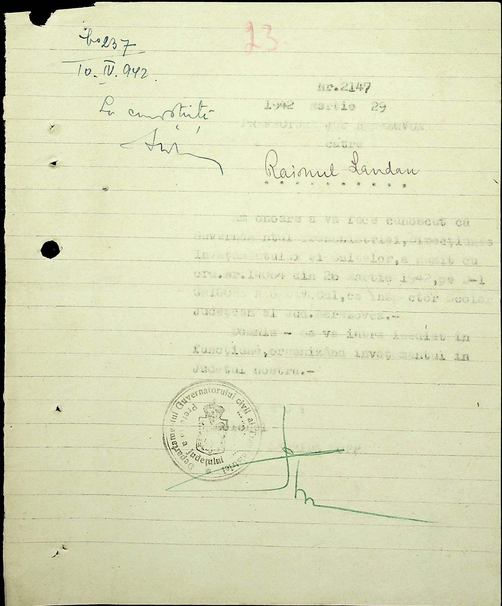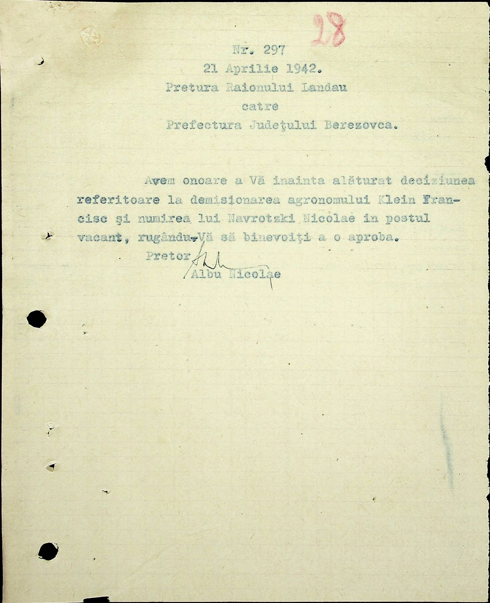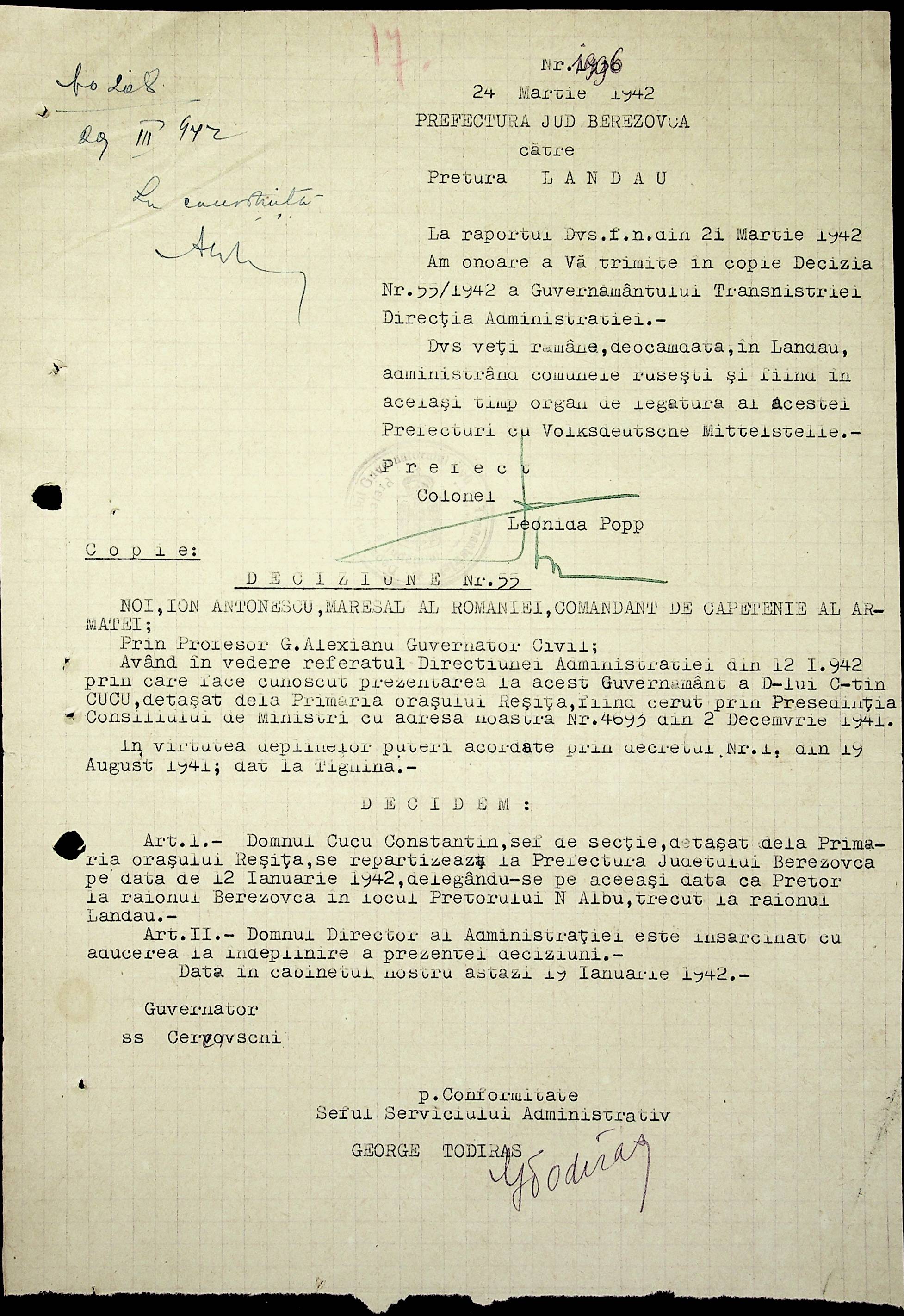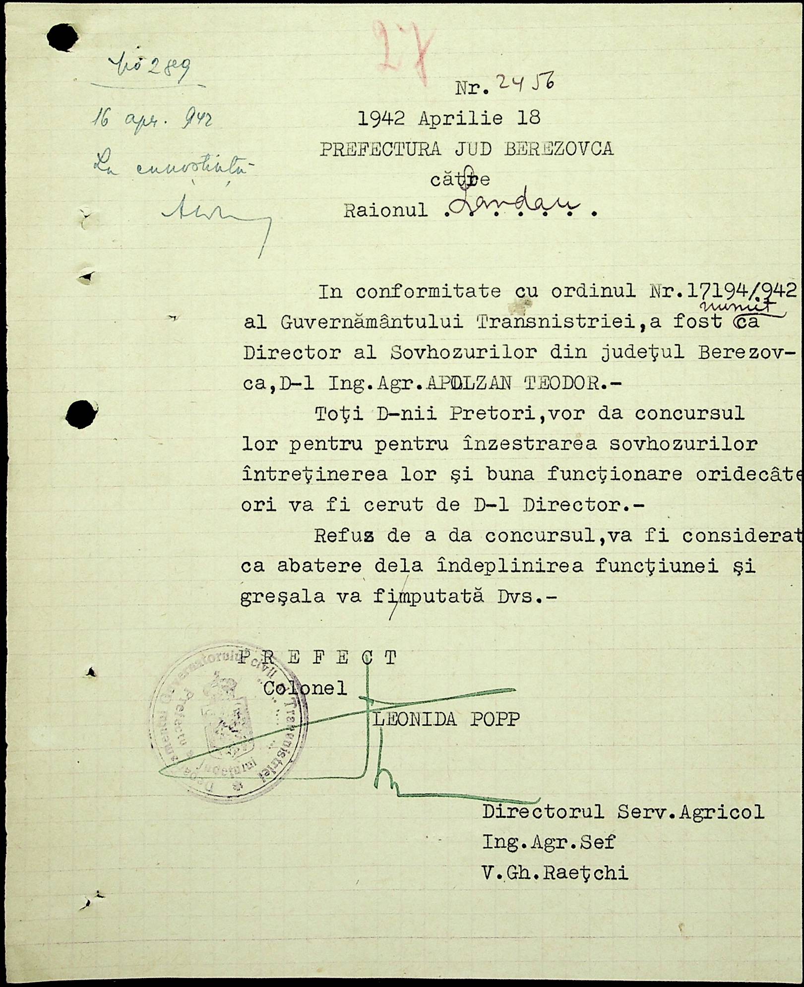 • • • • Справа № 8 “Копії постанов цивільного губернатора Трансністрії і претора Ландауського району про призначення працівників на роботу, прохання різних осіб про прийом на роботу”