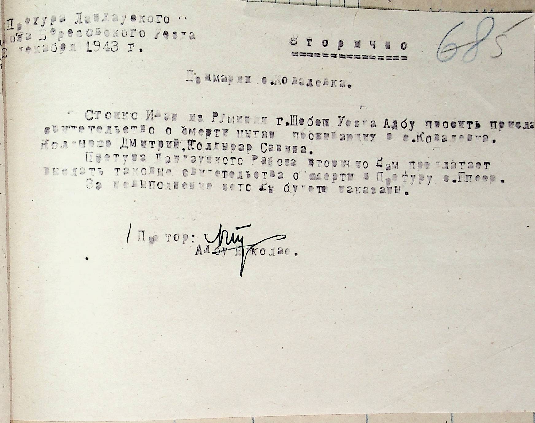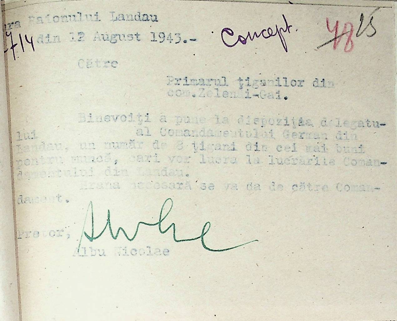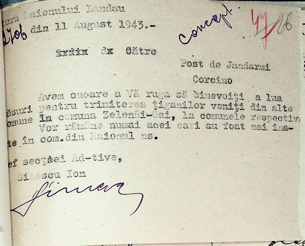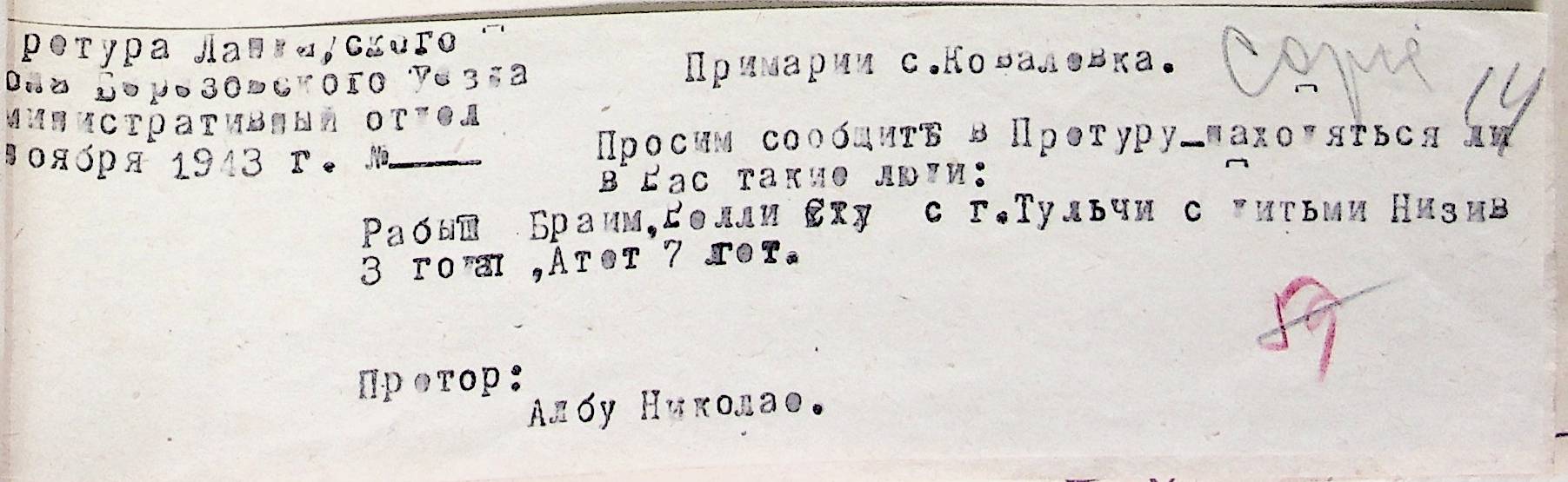 • • • • Справа № 10 “Копії постанов, наказ цивільного губернатора Трансністрії про особливе цензурування кореспонденції циган; про використання єврейського населення на роботах; листування з адміністративним відділом Березівської префектури про відпуск будівельних матеріалів для будівництва бараків для циган, списки циган, які проживають у Ландауському районі”