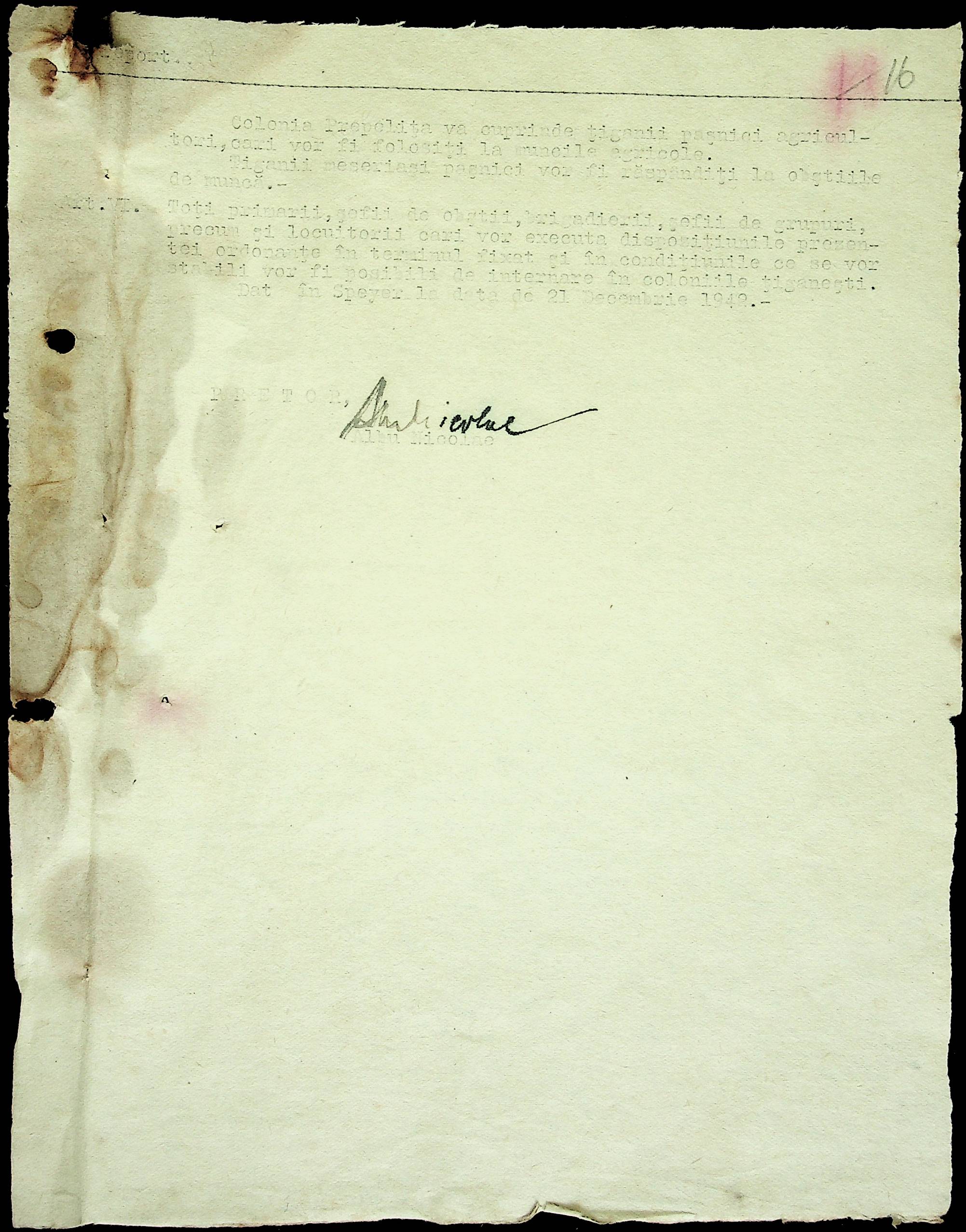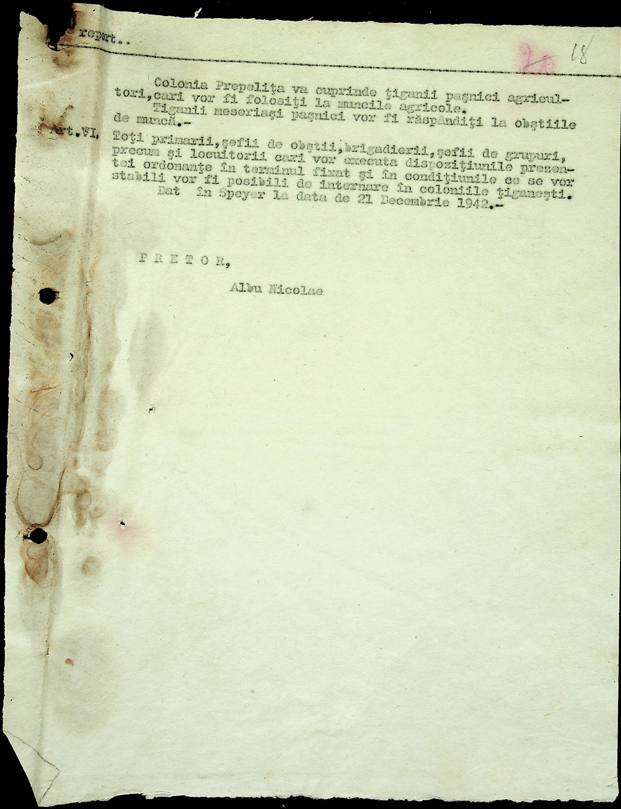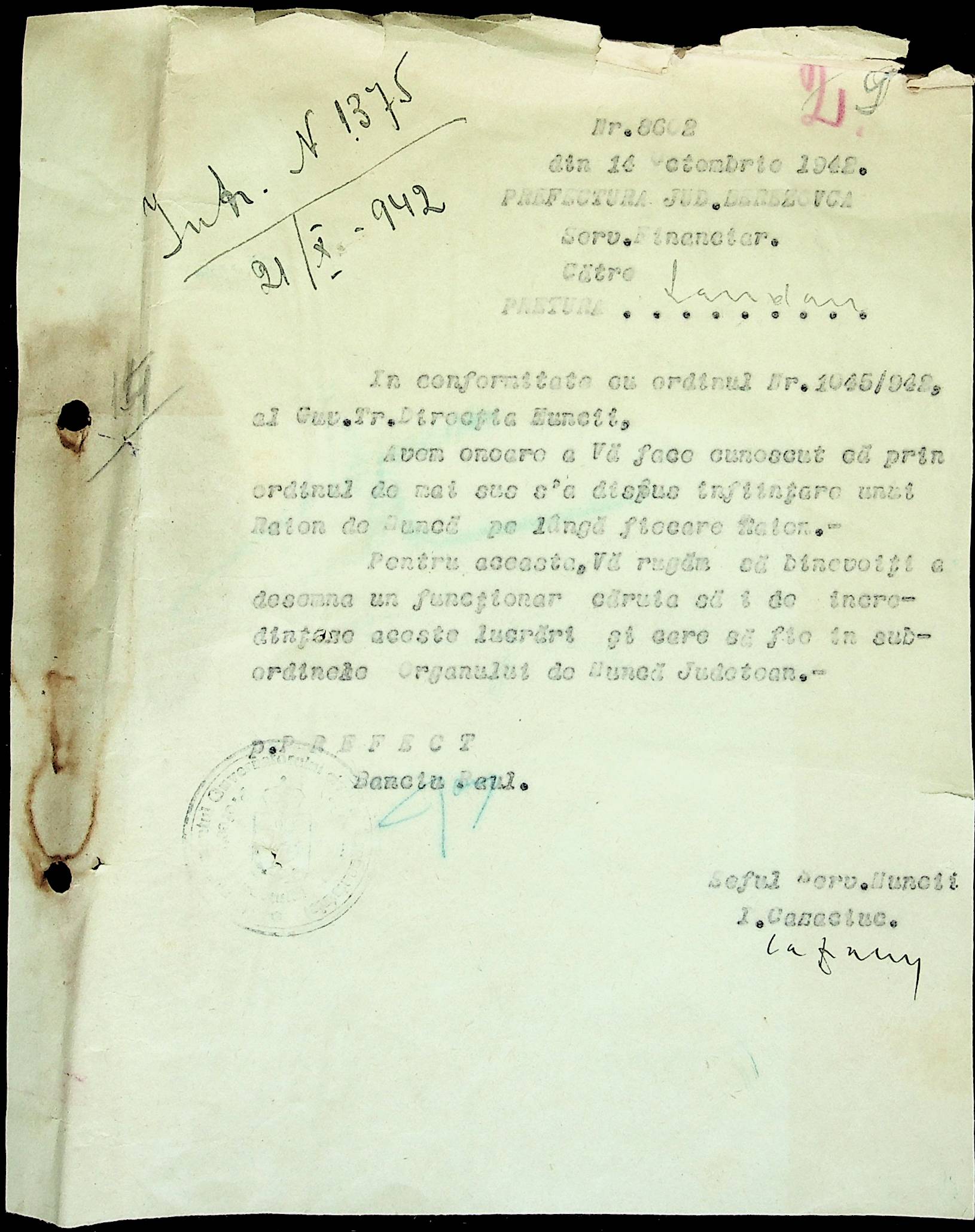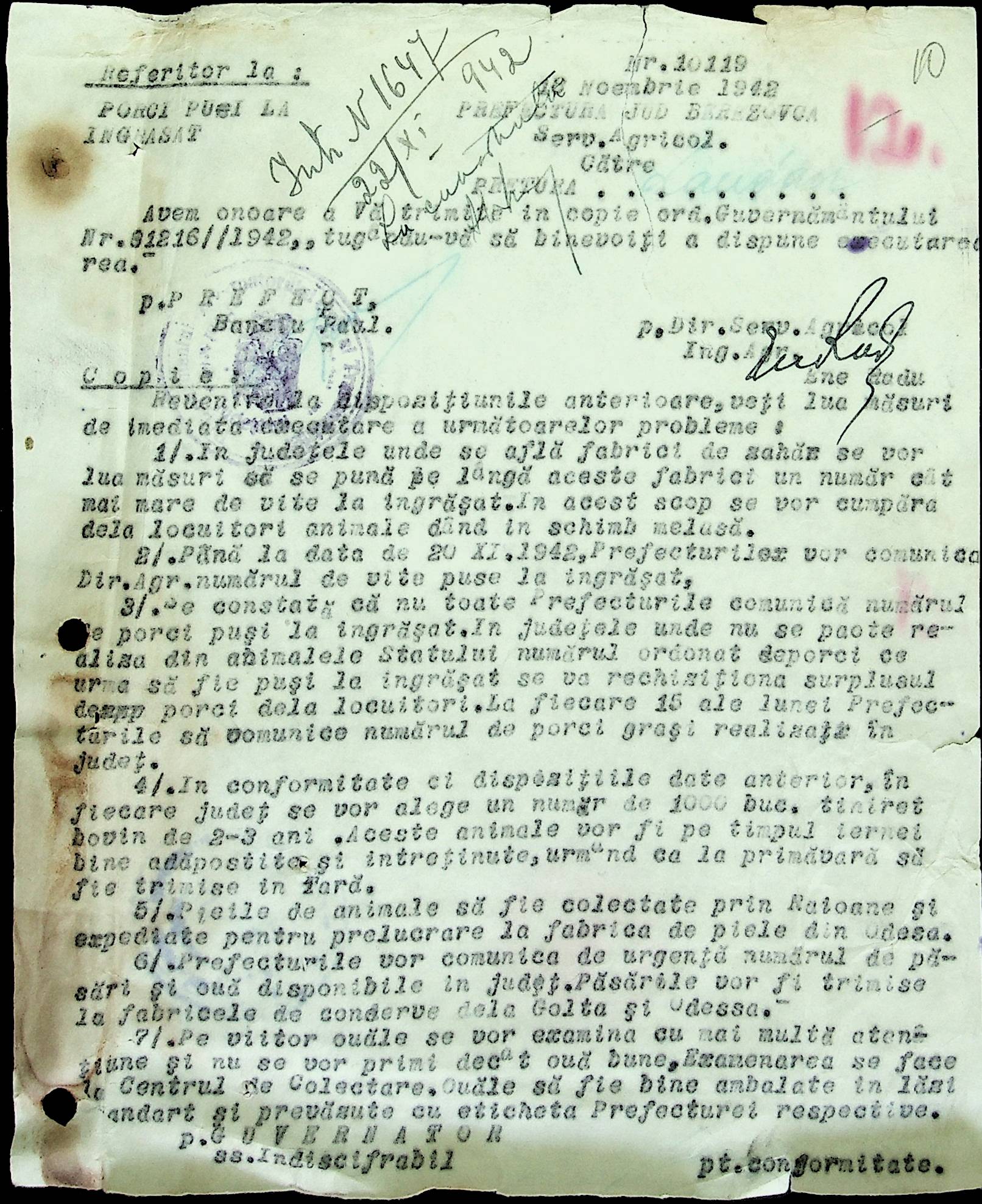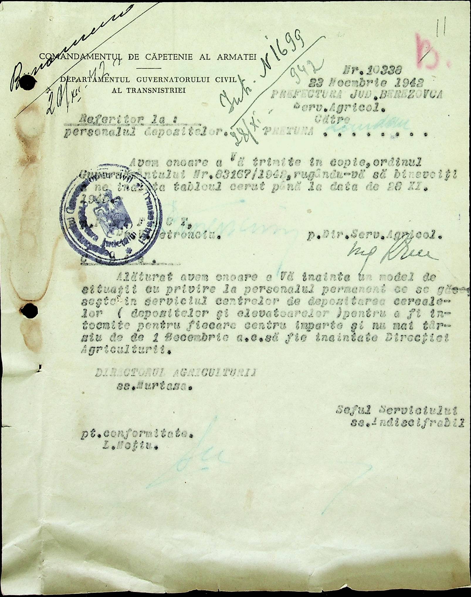 • • • • Справа № 12 “Копії інструкцій та постанов цивільного губернатора Трансністрії про правила відправки товарів залізницею, організацію єврейського гетто та використання єврейських спеціалістів на роботі; наказ претора Ландауського району про будівництво бараків для циган-колоністів”