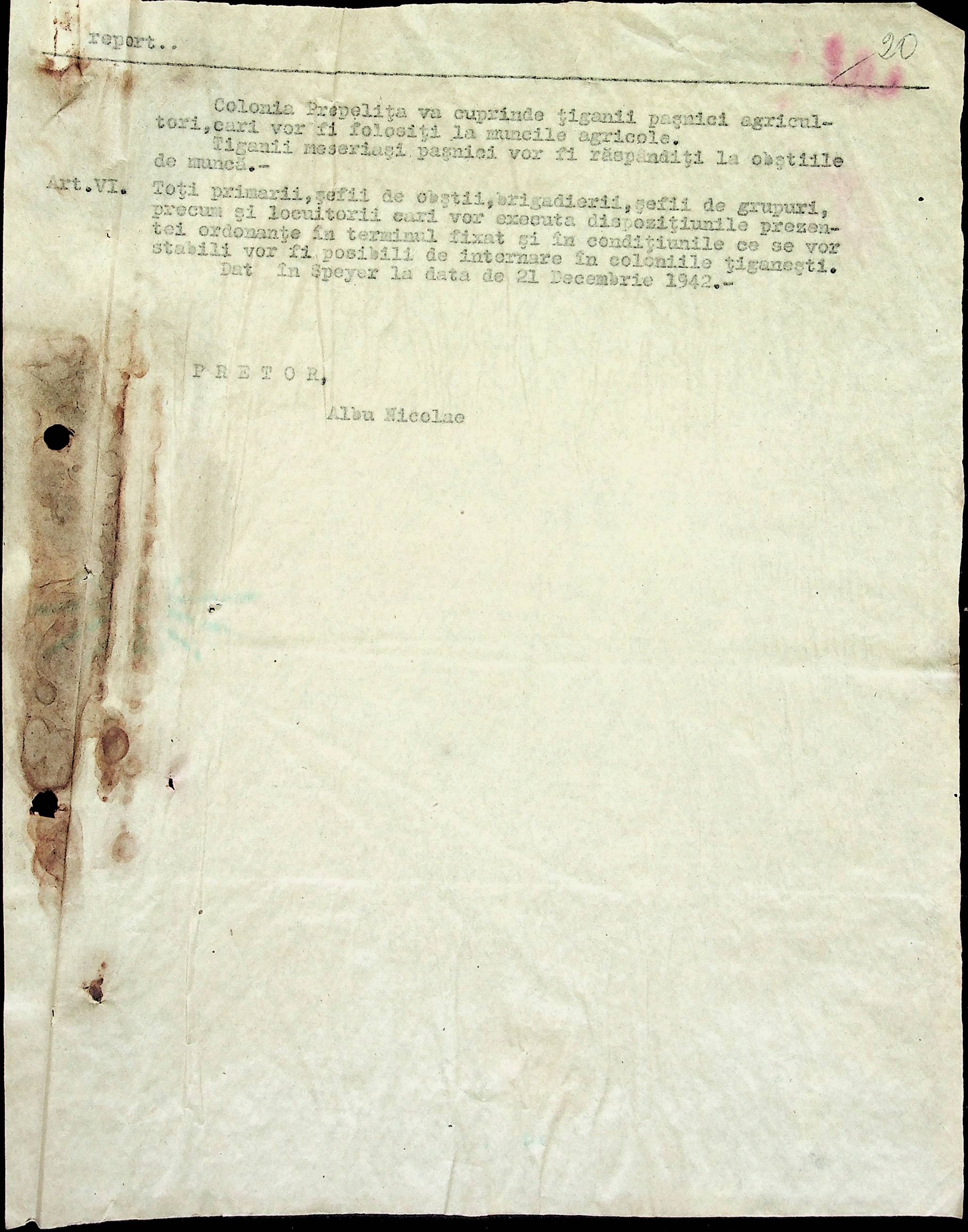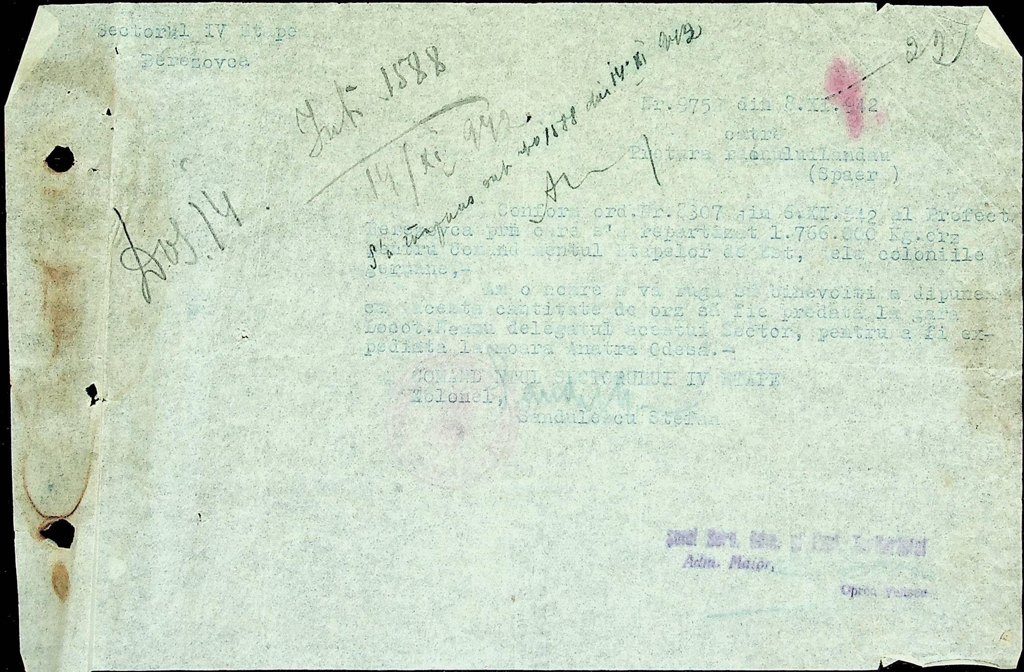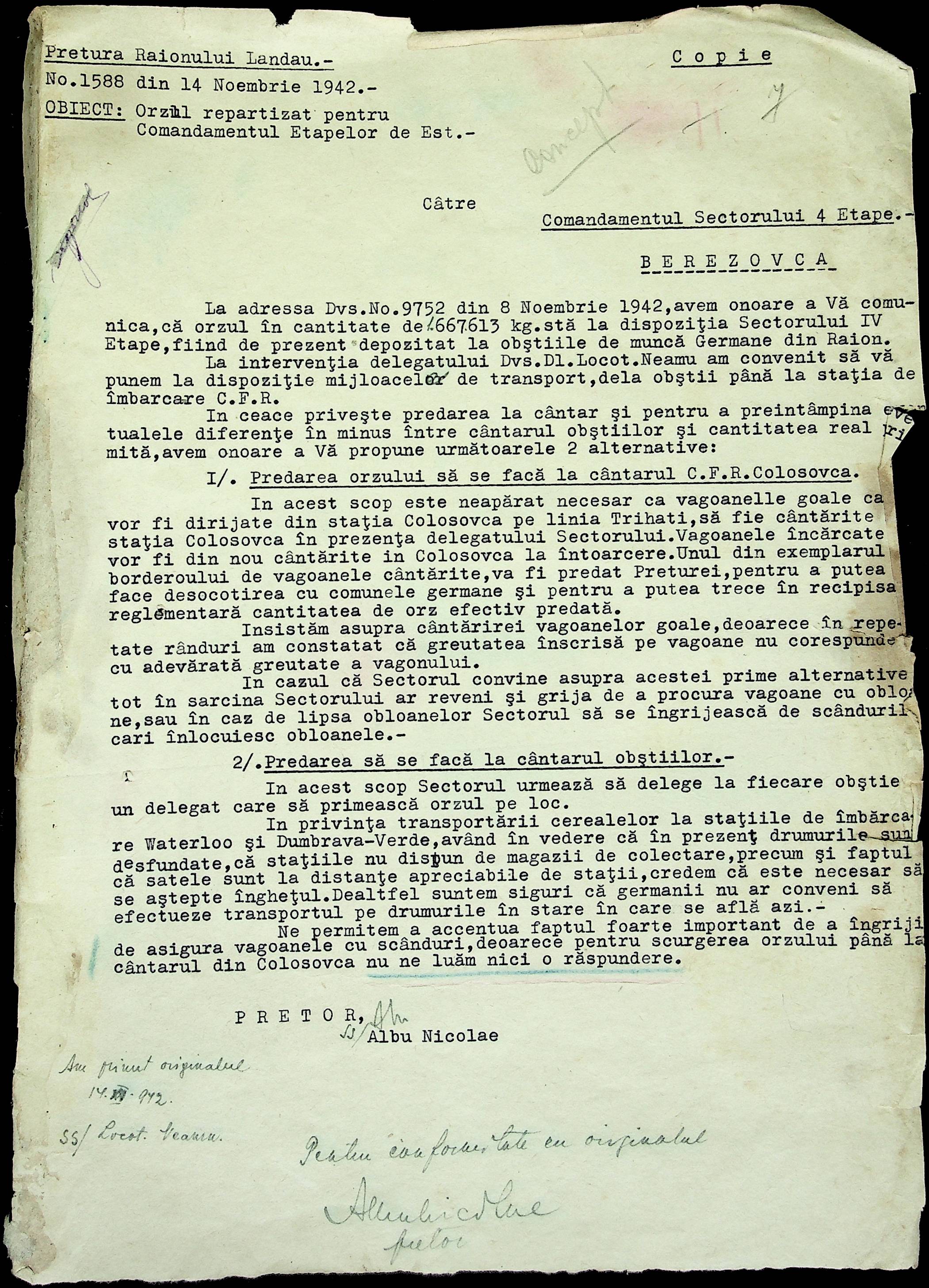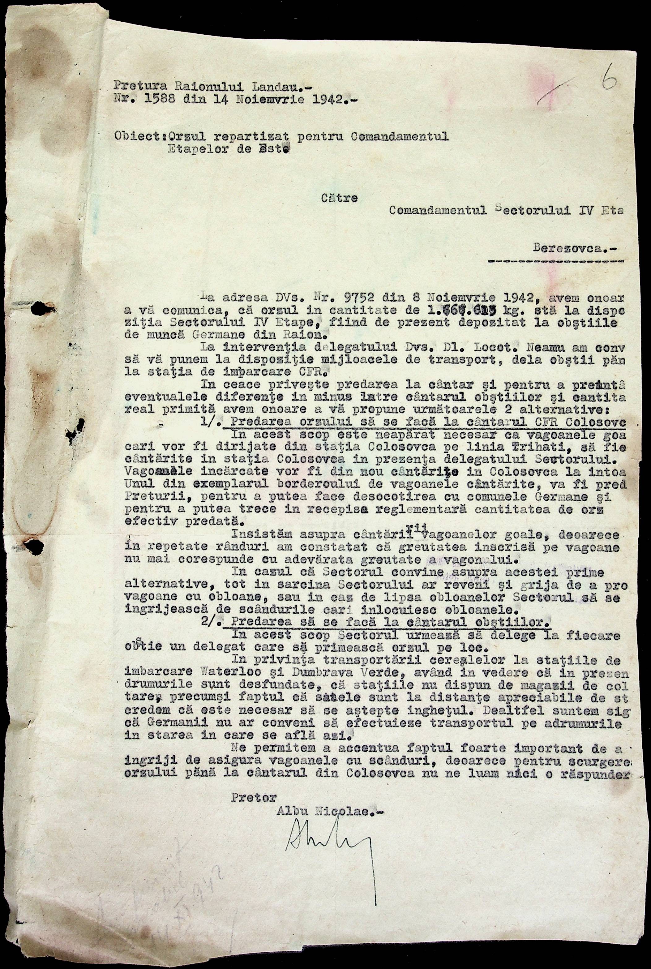 • • • • Справа № 12 “Копії інструкцій та постанов цивільного губернатора Трансністрії про правила відправки товарів залізницею, організацію єврейського гетто та використання єврейських спеціалістів на роботі; наказ претора Ландауського району про будівництво бараків для циган-колоністів”